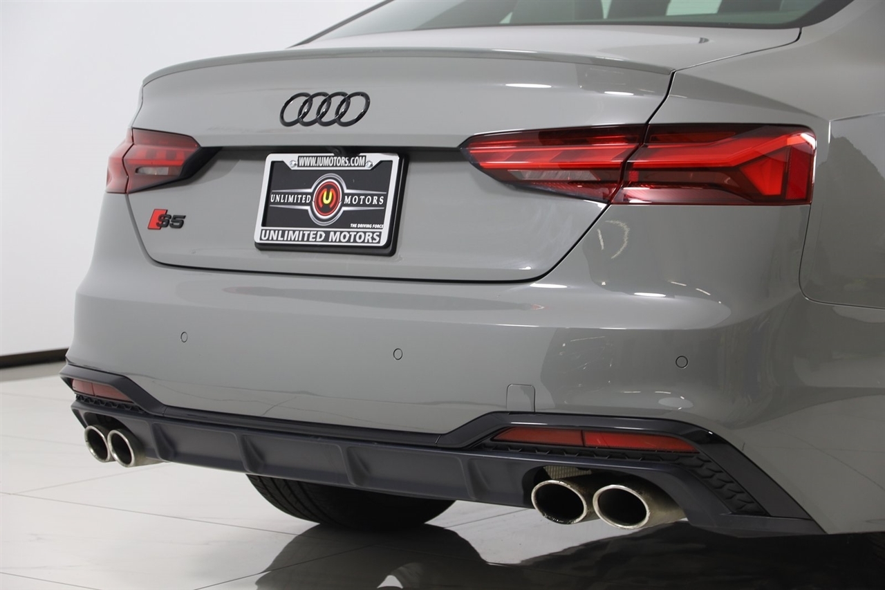 Navigation, Back Up Camera, Bluetooth, Sun/Moon Roof, Heated Seats, Touch Screen, Blind Spot, Heated Steering Wheel, Apple Play, S5 3.0T Premium Plus quattro, 2D Coupe, 3.0L TFSI, 8-Speed Automatic with Tiptronic, quattro, Quantum Gray, Black Leather, Black Exterior Mirror Housings, Black Exterior Trim, Black Optic Package, Front & Rear Red Brake Calipers, MMI Navigation Plus, Navigation Package, Navigation System, S Sport Package, Sport Adaptive Damping Suspension, Sport Rear Differential, Wheels: 20 5-Twin-Spoke Polygon Design. Clean CARFAX. Priced below KBB Fair Purchase Price! 21/30 City/Highway MPG2022 Quantum Gray Audi 2D Coupe S5 3.0T Premium Plus quattro quattro 8-Speed Automatic with Tiptronic 3.0L TFSIVisit our website www.iumotors.com to view 100s of newer vehicles, more pictures and info, or to apply for financing. Rates are incredibly low for approved credit. We offer extended warranties, protection packages, and insurance. We assure you the best experience at any of our 4 locations and unbeatable prices and quality. At Unlimited Motors we believe in MARKET VALUE PRICING. We use real-time Internet price comparisons to constantly adjust prices to provide ALL BUYERS The BEST PRICE possible. We do not mark them up, to mark them down! Our entire team is committed to helping you buy a car the way we would want to buy a car! We utilize state-of-the-art technology to constantly monitor pricing trends to offer our shoppers the best competitive pricing, value, and experience. We sell and service all makes and models of Pre-owned / Used Vehicles Used Cars, Used Trucks, Used Sport Utility, Lamborghini, Ferrari, Bentley, Rolls Royce, McLaren, Maserati, Ford, Chevrolet/Chevy, Honda, Toyota, Porsche, Land Rover, Jaguar, INFINITI, Audi, Nissan, Mazda, Hyundai, Chrysler, Jeep, Dodge, Ram, SRT, Mitsubishi, Lexus, Kia, Volkswagen, Mini, BMW, Mercedes, Fiat, Volvo, GMC, Cadillac, Lincoln as well as other brands. Proudly serving these areas of Indianapolis, Fishers, Carmel, Noblesville, Greenwood, Avon, Plainfield, Zionsville, & Brownsburg, Indiana, Midwest. We also serve the entire nation with our seamless and easy online purchasing process, and offer shipping nationwide.Advertised prices DO NOT include Sales Tax, Dealer Fees, Title Processing Charges, and Dealer Pre-installed Products.