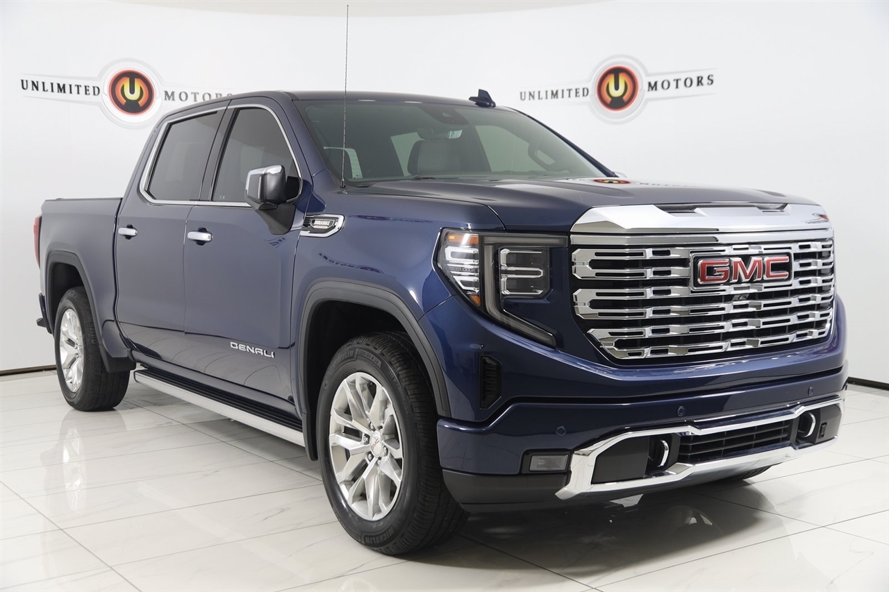 Navigation, Back Up Camera, Bluetooth, Sun/Moon Roof, Power Running Boards, Heated Seats, Touch Screen, Cooled Heats, Blind Spot, Heated Steering Wheel, Apple Play, Sierra 1500 Denali, 4D Crew Cab, 3.0L I6, 10-Speed Automatic, 4WD, Pacific Blue Metallic, Atmosphere/Brownstone Leather, 120-Volt Instrument Panel Power Outlet, 170 Amp Alternator, 2 Charge/Data USB Ports Inside Center Console, 2 Type-C Charge-Only Rear USB Ports, 2 USB Ports, Adaptive Cruise Control, Auto-Locking Rear Differential, Auxiliary External Transmission Oil Cooler, Bed View Camera, Chrome Header w/Signature Denali Chrome Grille, Chrome Recovery Hooks, Chrome Wheel To Wheel Assist Steps, Color-Keyed Carpeting Floor Covering, Compass, Deep-Tinted Glass, Denali Reserve Package, Electric Rear-Window Defogger, Electrical Steering Column Lock, Floor-Mounted Center Console, Front Rainsensing Wipers, GMC Connected Access Capable, GMC MultiPro Power Steps, HD Surround Vision, Heated 2nd Row Outboard Seats, Heated Driver & Front Outboard Passenger Seating, Heavy-Duty Air Filter, Hill Descent Control, Hitch Guidance, Hitch Guidance w/Hitch View, In-Vehicle Trailering App, Integrated Trailer Brake Controller, Keyless Open & Start, LED Cargo Area Lighting, Multicolor 15 Diagonal Head-Up Display, Navigation System, OnStar & GMC Connected Services Capable, Perimeter Lighting, Power Door Locks, Power Front Passenger Windows w/Express Up/Down, Power Front Windows w/Driver Express Up/Down, Power Rake & Telescoping Steering Column, Power Rear Windows w/Express Down, Power Sliding Rear Window w/Rear Defogger, Power Sunroof, Preferred Equipment Group 5SA, Premium Bose 7-Speaker Sound System, Push Button Start, Rear Camera Mirror, Rear Cross Traffic Braking, Rear Pedestrian Detection, Rear Wheelhouse Liners, Remote Vehicle Starter System, SiriusXM w/360L, Spray-On Pickup Bed Liner w/Denali Logo, Steering Wheel Audio Controls, Technology Package, Theft Deterrent System (Unauthorized Entry), Trailer Camera Provisions, Trailer Side Blind Zone Alert, Trailering Package, Ultrasonic Front & Rear Park Assist, Universal Home Remote, Ventilated Driver & Front Passenger Seats, Wheels: 22 x 9 Painted Aluminum, Wi-Fi Hotspot Capable, Wireless Charging, Wireless Phone Projection. Clean CARFAX. Odometer is 9631 miles below market average! 22/27 City/Highway MPG2023 Pacific Blue Metallic GMC 4D Crew Cab Sierra 1500 Denali 4WD 10-Speed Automatic 3.0L I6Visit our website www.iumotors.com to view 100s of newer vehicles, more pictures and info, or to apply for financing. Rates are incredibly low for approved credit. We offer extended warranties, protection packages, and insurance. We assure you the best experience at any of our 4 locations and unbeatable prices and quality. At Unlimited Motors we believe in MARKET VALUE PRICING. We use real-time Internet price comparisons to constantly adjust prices to provide ALL BUYERS The BEST PRICE possible. We do not mark them up, to mark them down! Our entire team is committed to helping you buy a car the way we would want to buy a car! We utilize state-of-the-art technology to constantly monitor pricing trends to offer our shoppers the best competitive pricing, value, and experience. We sell and service all makes and models of Pre-owned / Used Vehicles Used Cars, Used Trucks, Used Sport Utility, Lamborghini, Ferrari, Bentley, Rolls Royce, McLaren, Maserati, Ford, Chevrolet/Chevy, Honda, Toyota, Porsche, Land Rover, Jaguar, INFINITI, Audi, Nissan, Mazda, Hyundai, Chrysler, Jeep, Dodge, Ram, SRT, Mitsubishi, Lexus, Kia, Volkswagen, Mini, BMW, Mercedes, Fiat, Volvo, GMC, Cadillac, Lincoln as well as other brands. Proudly serving these areas of Indianapolis, Fishers, Carmel, Noblesville, Greenwood, Avon, Plainfield, Zionsville, & Brownsburg, Indiana, Midwest. We also serve the entire nation with our seamless and easy online purchasing process, and offer shipping nationwide.Advertised prices DO NOT include Sales Tax, Deal