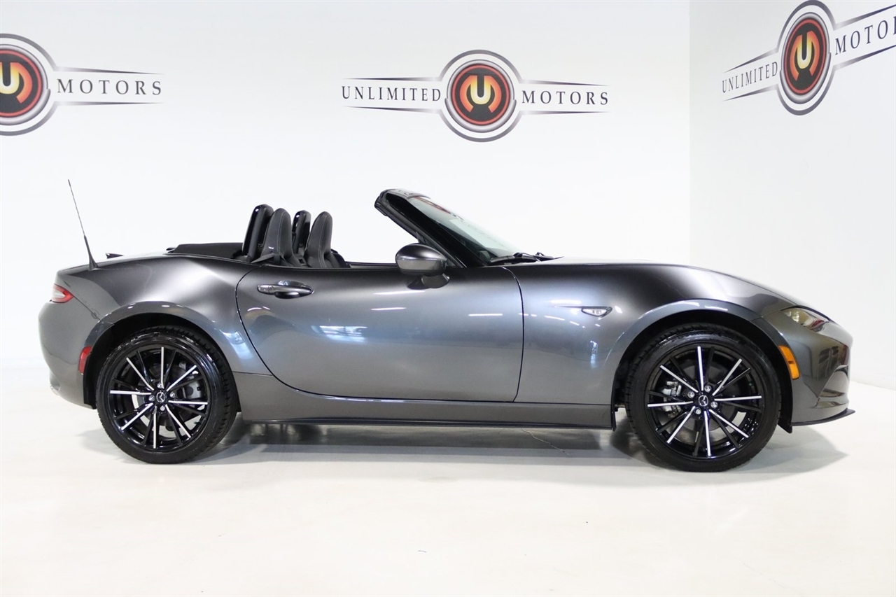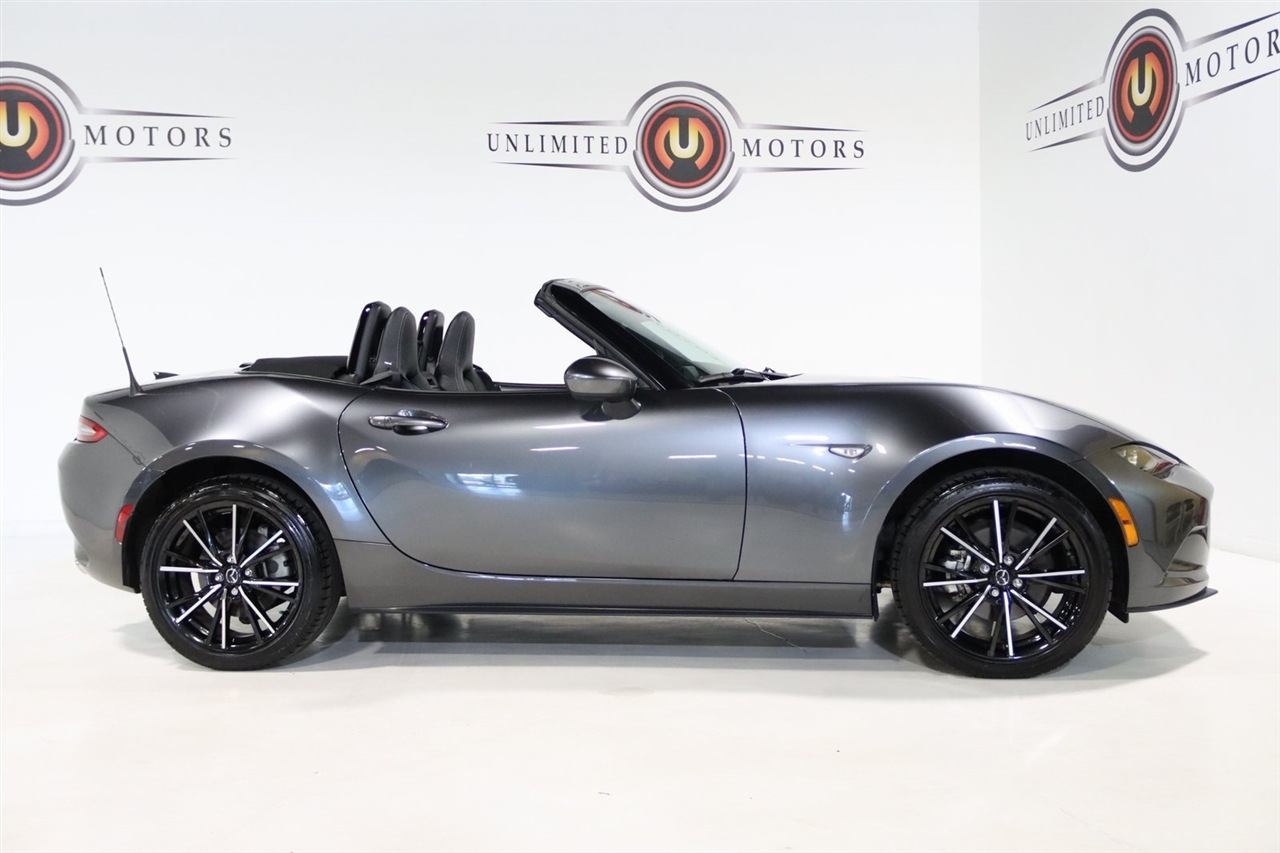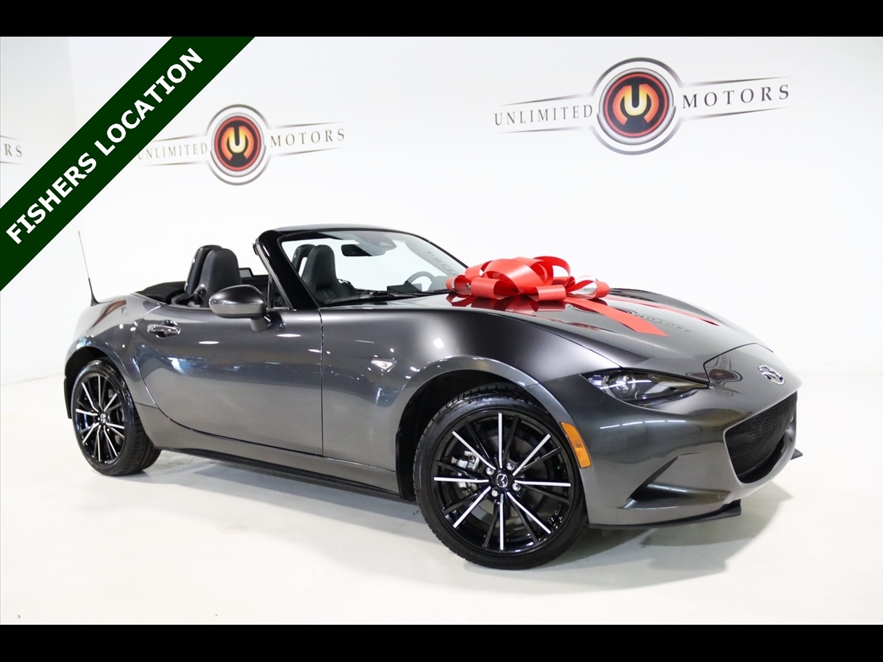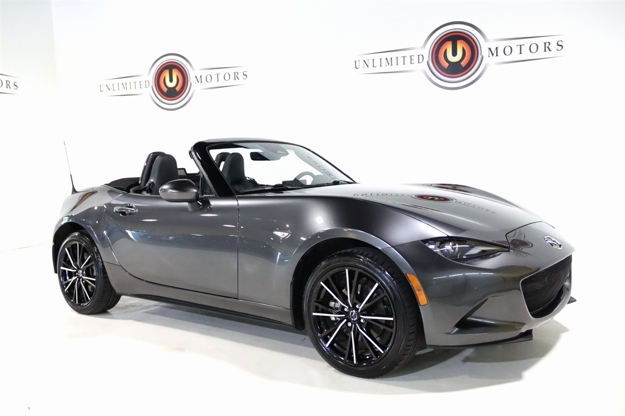 Navigation, Bluetooth, Back Up Camera, Soft Top, Heated Seats, Touch Screen, 4-Wheel Disc Brakes, 9 Speakers, ABS brakes, Air Conditioning, Alloy wheels, AM/FM radio: SiriusXM, AppLink/Apple CarPlay and Android Auto, Auto High-beam Headlights, Auto-dimming door mirrors, Auto-dimming Rear-View mirror, Automatic temperature control, Brake assist, Bumpers: body-color, Convertible roof lining, Convertible roof wind blocker, Delay-off headlights, Driver vanity mirror, Dual front impact airbags, Dual front side impact airbags, Electronic Stability Control, Emergency communication system: MAZDA CONNECT, Exterior Parking Camera Rear, First Aid Kit, Four wheel independent suspension, Front anti-roll bar, Front Bucket Seats, Front Center Armrest, Fully automatic headlights, Garage door transmitter: HomeLink, Glass rear window, Heated door mirrors, Heated Front Bucket Seats, Heated front seats, Illuminated entry, Leather Shift Knob, Leather Upholstery, Low tire pressure warning, Machine Gray Metallic Paint Charge, MAZDA CONNECT Infotainment System, Navigation System, Occupant sensing airbag, Outside temperature display, Panic alarm, Passenger vanity mirror, Power door mirrors, Power steering, Power windows, Radio data system, Radio: Bose Audio System w/AudioPilot, Rain sensing wipers, Rear anti-roll bar, Rear window defroster, Remote keyless entry, Speed control, Speed-sensing steering, Sport steering wheel, Steering wheel mounted audio controls, Tachometer, Telescoping steering wheel, Tilt steering wheel, Traction control, Trip computer, Variably intermittent wipers, Wheels: 17 x 7 Metallic Black Alloy. CARFAX One-Owner. 26/34 City/Highway MPG2024 Machine Gray Metallic Mazda 2D Convertible MX-5 Miata Grand Touring RWD 6-Speed Manual 2.0L 4-Cylinder DOHC 16VVisit our website www.iumotors.com to view 100s of newer vehicles, more pictures and info, or to apply for financing. Rates are incredibly low for approved credit. We offer extended warranties, protection packages, and insurance. We assure you the best experience at any of our 4 locations and unbeatable prices and quality. At Unlimited Motors we believe in MARKET VALUE PRICING. We use real-time Internet price comparisons to constantly adjust prices to provide ALL BUYERS The BEST PRICE possible. We do not mark them up, to mark them down! Our entire team is committed to helping you buy a car the way we would want to buy a car! We utilize state-of-the-art technology to constantly monitor pricing trends to offer our shoppers the best competitive pricing, value, and experience. We sell and service all makes and models of Pre-owned / Used Vehicles Used Cars, Used Trucks, Used Sport Utility, Lamborghini, Ferrari, Bentley, Rolls Royce, McLaren, Maserati, Ford, Chevrolet/Chevy, Honda, Toyota, Porsche, Land Rover, Jaguar, INFINITI, Audi, Nissan, Mazda, Hyundai, Chrysler, Jeep, Dodge, Ram, SRT, Mitsubishi, Lexus, Kia, Volkswagen, Mini, BMW, Mercedes, Fiat, Volvo, GMC, Cadillac, Lincoln as well as other brands. Proudly serving these areas of Indianapolis, Fishers, Carmel, Noblesville, Greenwood, Avon, Plainfield, Zionsville, & Brownsburg, Indiana, Midwest. We also serve the entire nation with our seamless and easy online purchasing process, and offer shipping nationwide.Advertised prices DO NOT include Sales Tax, Dealer Fees, Title Processing Charges, and Dealer Pre-installed Products.