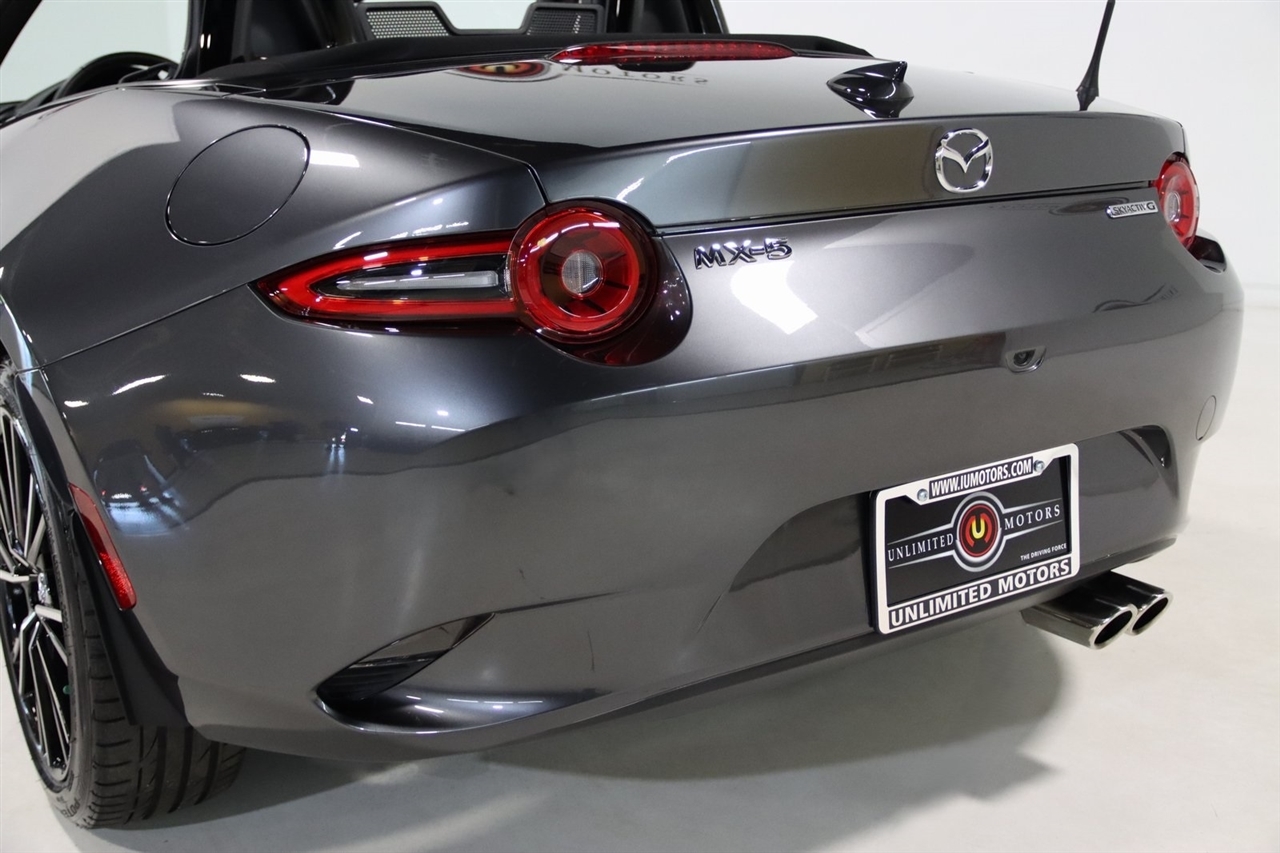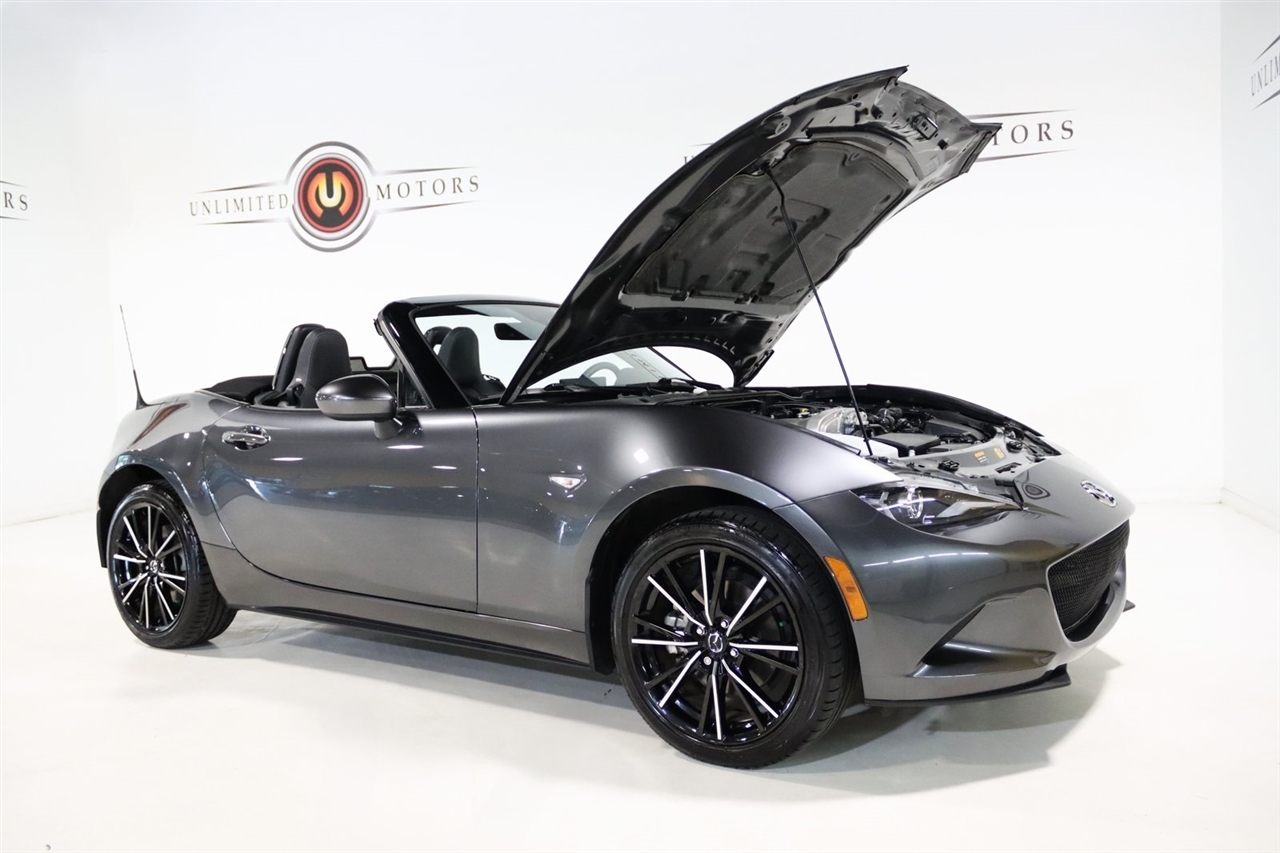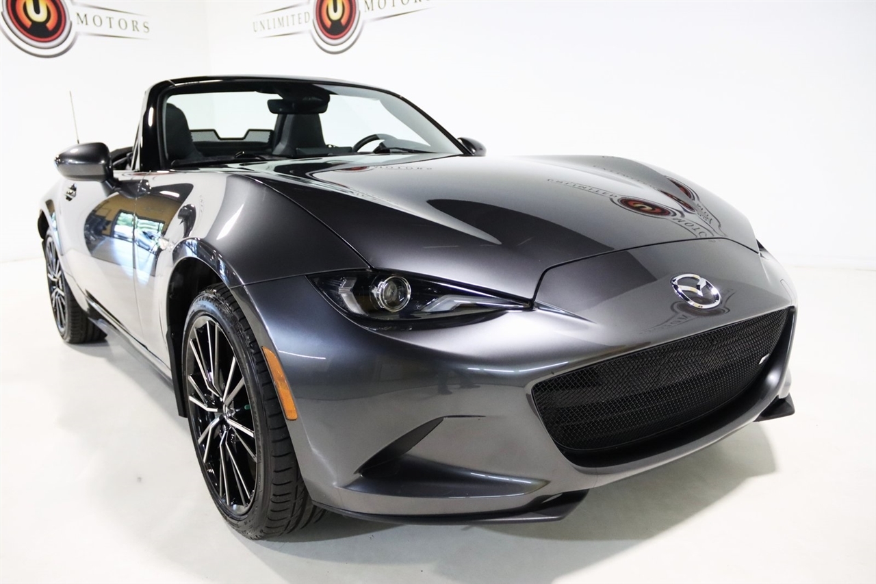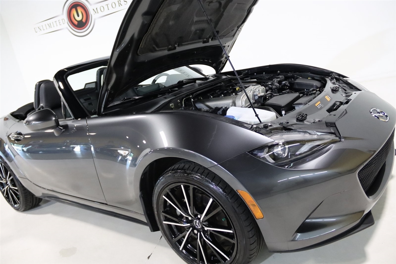 Navigation, Bluetooth, Back Up Camera, Soft Top, Heated Seats, Touch Screen, 4-Wheel Disc Brakes, 9 Speakers, ABS brakes, Air Conditioning, Alloy wheels, AM/FM radio: SiriusXM, AppLink/Apple CarPlay and Android Auto, Auto High-beam Headlights, Auto-dimming door mirrors, Auto-dimming Rear-View mirror, Automatic temperature control, Brake assist, Bumpers: body-color, Convertible roof lining, Convertible roof wind blocker, Delay-off headlights, Driver vanity mirror, Dual front impact airbags, Dual front side impact airbags, Electronic Stability Control, Emergency communication system: MAZDA CONNECT, Exterior Parking Camera Rear, First Aid Kit, Four wheel independent suspension, Front anti-roll bar, Front Bucket Seats, Front Center Armrest, Fully automatic headlights, Garage door transmitter: HomeLink, Glass rear window, Heated door mirrors, Heated Front Bucket Seats, Heated front seats, Illuminated entry, Leather Shift Knob, Leather Upholstery, Low tire pressure warning, Machine Gray Metallic Paint Charge, MAZDA CONNECT Infotainment System, Navigation System, Occupant sensing airbag, Outside temperature display, Panic alarm, Passenger vanity mirror, Power door mirrors, Power steering, Power windows, Radio data system, Radio: Bose Audio System w/AudioPilot, Rain sensing wipers, Rear anti-roll bar, Rear window defroster, Remote keyless entry, Speed control, Speed-sensing steering, Sport steering wheel, Steering wheel mounted audio controls, Tachometer, Telescoping steering wheel, Tilt steering wheel, Traction control, Trip computer, Variably intermittent wipers, Wheels: 17 x 7 Metallic Black Alloy. CARFAX One-Owner. 26/34 City/Highway MPG2024 Machine Gray Metallic Mazda 2D Convertible MX-5 Miata Grand Touring RWD 6-Speed Manual 2.0L 4-Cylinder DOHC 16VVisit our website www.iumotors.com to view 100s of newer vehicles, more pictures and info, or to apply for financing. Rates are incredibly low for approved credit. We offer extended warranties, protection packages, and insurance. We assure you the best experience at any of our 4 locations and unbeatable prices and quality. At Unlimited Motors we believe in MARKET VALUE PRICING. We use real-time Internet price comparisons to constantly adjust prices to provide ALL BUYERS The BEST PRICE possible. We do not mark them up, to mark them down! Our entire team is committed to helping you buy a car the way we would want to buy a car! We utilize state-of-the-art technology to constantly monitor pricing trends to offer our shoppers the best competitive pricing, value, and experience. We sell and service all makes and models of Pre-owned / Used Vehicles Used Cars, Used Trucks, Used Sport Utility, Lamborghini, Ferrari, Bentley, Rolls Royce, McLaren, Maserati, Ford, Chevrolet/Chevy, Honda, Toyota, Porsche, Land Rover, Jaguar, INFINITI, Audi, Nissan, Mazda, Hyundai, Chrysler, Jeep, Dodge, Ram, SRT, Mitsubishi, Lexus, Kia, Volkswagen, Mini, BMW, Mercedes, Fiat, Volvo, GMC, Cadillac, Lincoln as well as other brands. Proudly serving these areas of Indianapolis, Fishers, Carmel, Noblesville, Greenwood, Avon, Plainfield, Zionsville, & Brownsburg, Indiana, Midwest. We also serve the entire nation with our seamless and easy online purchasing process, and offer shipping nationwide.Advertised prices DO NOT include Sales Tax, Dealer Fees, Title Processing Charges, and Dealer Pre-installed Products.