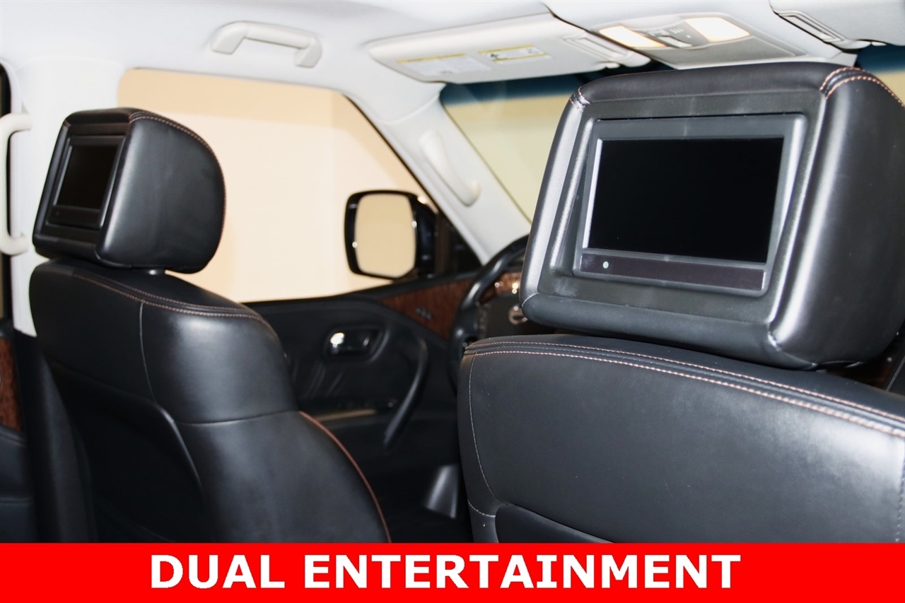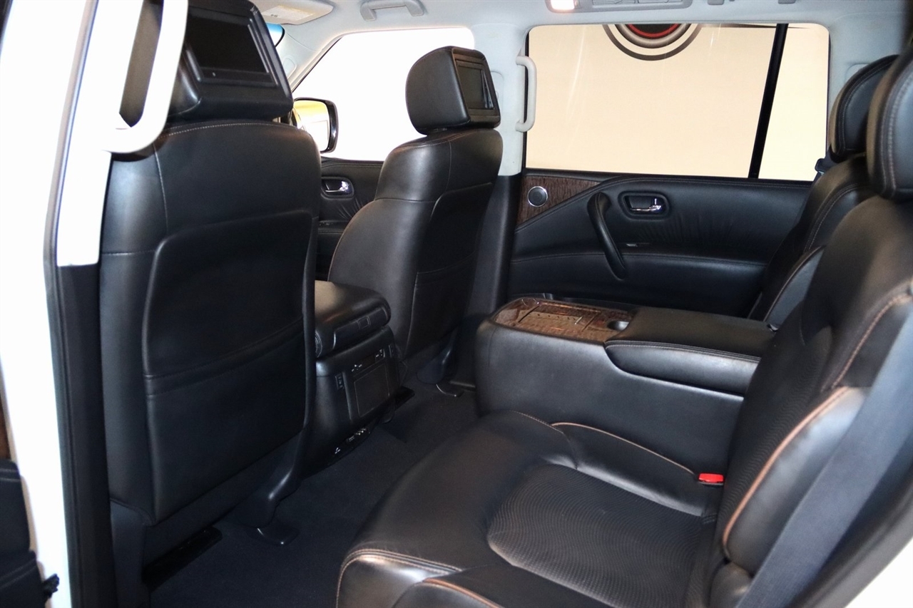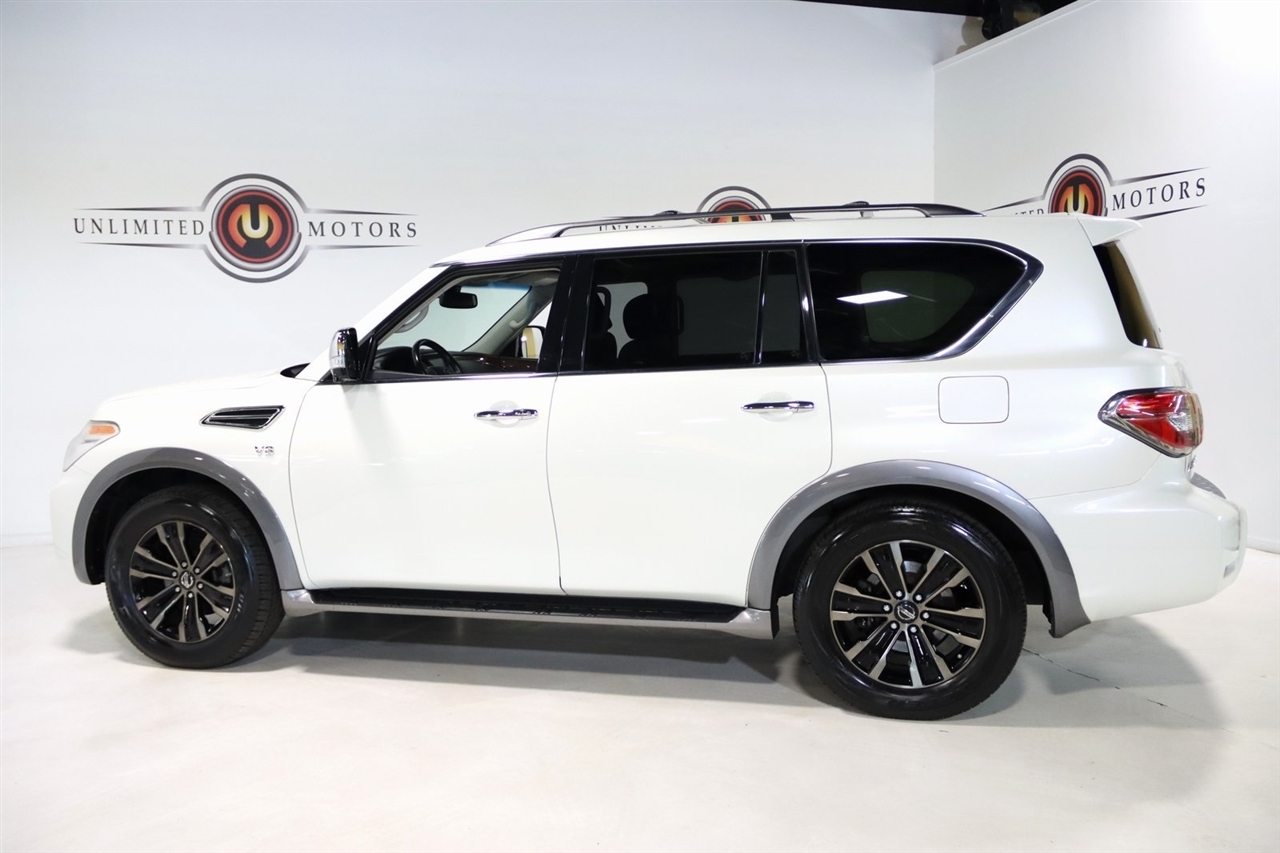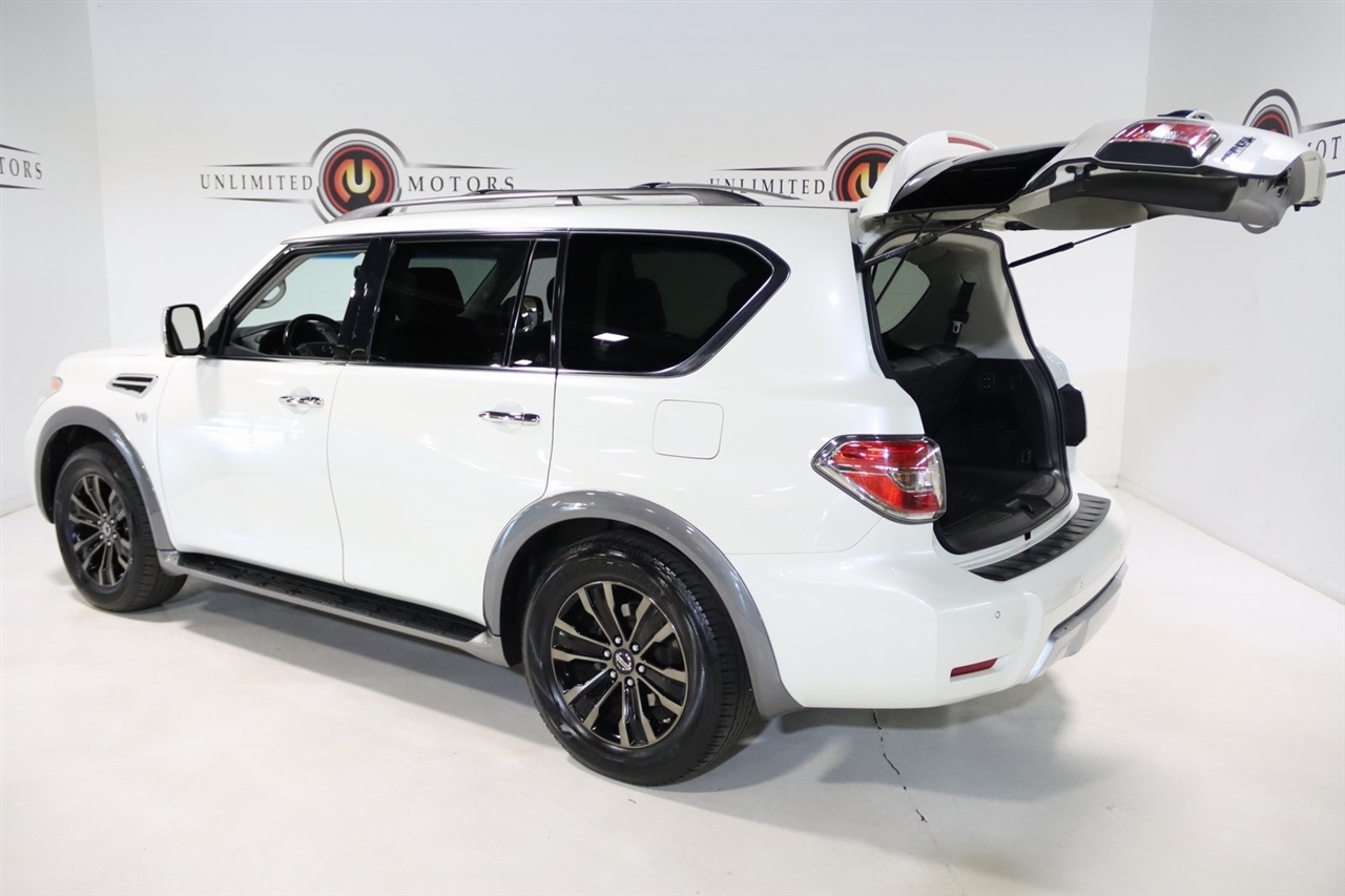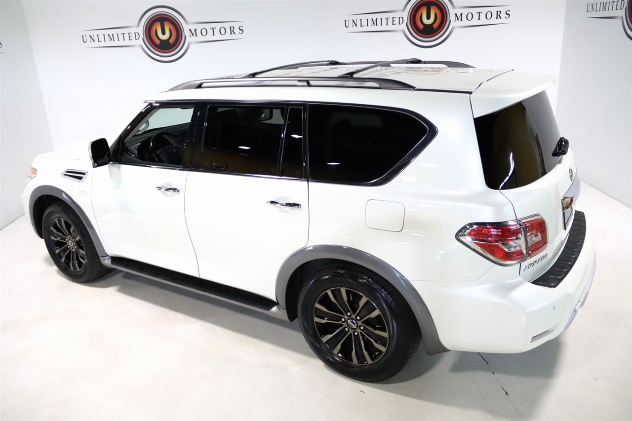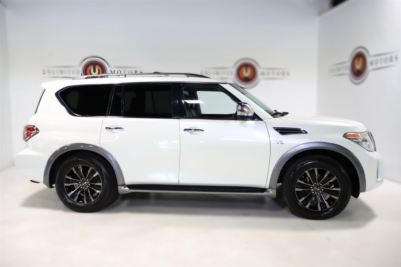 Navigation, Bluetooth, Back Up Camera, Entertainment, Sun/Moon Roof, 3rd Row, Heated Seats, Touch Screen, 13 Speakers, 2.937 Axle Ratio, 3rd row seats: split-bench, 4-Wheel Disc Brakes, A/V remote, ABS brakes, Air Conditioning, Alloy wheels, AM/FM radio: SiriusXM, Anti-whiplash front head restraints, Auto tilt-away steering wheel, Auto-dimming door mirrors, Auto-dimming Rear-View mirror, Auto-leveling suspension, Automatic temperature control, Brake assist, Bumpers: body-color, Captain Seat Package, Carpeted Floor Mats w/ Captain Seat Package, CD player, Delay-off headlights, Driver door bin, Driver vanity mirror, Dual front impact airbags, Dual front side impact airbags, Electronic Stability Control, Four wheel independent suspension, Front anti-roll bar, Front Bucket Seats, Front Center Armrest, Front dual zone A/C, Front fog lights, Front reading lights, Fully automatic headlights, Garage door transmitter: HomeLink, Headphones, Heated & Cooled Front Bucket Seats, Heated door mirrors, Heated front seats, Heated rear seats, Heated steering wheel, Illuminated entry, Illuminated Kick Plates, Lane Departure Warning System, Leather Shift Knob, Leather-Appointed Seat Trim, Low tire pressure warning, Memory seat, Navigation System, Occupant sensing airbag, Outside temperature display, Overhead airbag, Overhead console, Panic alarm, Passenger door bin, Passenger vanity mirror, Power door mirrors, Power driver seat, Power Liftgate, Power moonroof, Power passenger seat, Power steering, Power windows, Radio data system, Radio: Bose AM/FM/SXM/CD/MP3 Audio System, Rain sensing wipers, Rear air conditioning, Rear anti-roll bar, Rear reading lights, Rear seat center armrest, Rear window defroster, Rear window wiper, Reclining 3rd row seat, Remote keyless entry, Roof rack: rails only, Roof Rail Cross Bars, Second Row Captain's Chairs, Second Row Center Console w/ Padded Armrest, Security system, Speed control, Speed-sensing steering, Speed-Sensitive Wipers, Split folding rear seat, Steering wheel mounted audio controls, Tachometer, Telescoping steering wheel, Tilt steering wheel, Traction control, Trip computer, Turn signal indicator mirrors, Variably intermittent wipers, Ventilated front seats, Voltmeter, Wheels: 20 Machine-Faced Chrome w/Tinted CC. Clean CARFAX. Odometer is 34258 miles below market average!2017 Pearl White Nissan 4D Sport Utility Armada Platinum 4WD 7-Speed Automatic 5.6L V8 DOHC 32V EnduranceVisit our website www.iumotors.com to view 100s of newer vehicles, more pictures and info, or to apply for financing. Rates are incredibly low for approved credit. We offer extended warranties, protection packages, and insurance. We assure you the best experience at any of our 4 locations and unbeatable prices and quality. At Unlimited Motors we believe in MARKET VALUE PRICING. We use real-time Internet price comparisons to constantly adjust prices to provide ALL BUYERS The BEST PRICE possible. We do not mark them up, to mark them down! Our entire team is committed to helping you buy a car the way we would want to buy a car! We utilize state-of-the-art technology to constantly monitor pricing trends to offer our shoppers the best competitive pricing, value, and experience. We sell and service all makes and models of Pre-owned / Used Vehicles Used Cars, Used Trucks, Used Sport Utility, Lamborghini, Ferrari, Bentley, Rolls Royce, McLaren, Maserati, Ford, Chevrolet/Chevy, Honda, Toyota, Porsche, Land Rover, Jaguar, INFINITI, Audi, Nissan, Mazda, Hyundai, Chrysler, Jeep, Dodge, Ram, SRT, Mitsubishi, Lexus, Kia, Volkswagen, Mini, BMW, Mercedes, Fiat, Volvo, GMC, Cadillac, Lincoln as well as other brands. Proudly serving these areas of Indianapolis, Fishers, Carmel, Noblesville, Greenwood, Avon, Plainfield, Zionsville, & Brownsburg, Indiana, Midwest. We also serve the entire nation with our seamless and easy online purchasing process, and offer shipping nationwide.Advertised prices DO NOT include Sales T