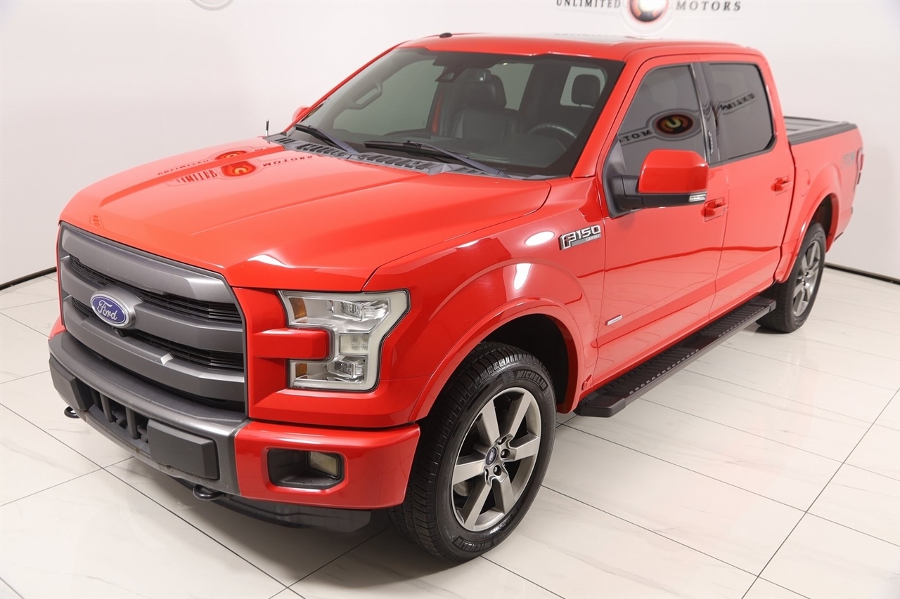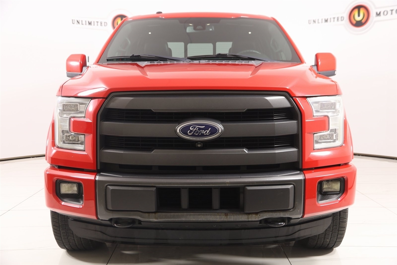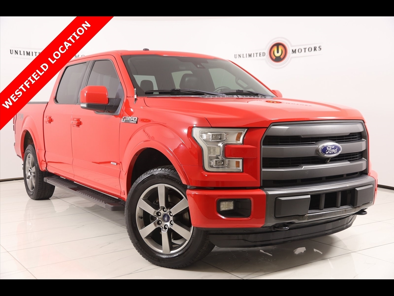Navigation, Back Up Camera, Bluetooth, Panoramic Roof, Running Boards, Heated Seats, Winch, Touch Screen, Cooled Heats, Blind Spot, Heated Steering Wheel, F-150 Lariat, 4D SuperCrew, 3.5L V6, 6-Speed Automatic Electronic, 4WD, Race Red, Black Leather, Navigation System, Voice-Activated Navigation. Clean CARFAX.2015 Race Red Ford 4D SuperCrew F-150 Lariat 4WD 6-Speed Automatic Electronic 3.5L V6Awards: * Green Car Journal 2015 Green Car Technology Award * NACTOY 2015 North American Truck of the Year * 2015 KBB.com Brand Image AwardsBased on 2017 EPA mileage ratings. Use for comparison purposes only. Your mileage will vary depending on how you drive and maintain your vehicle, driving conditions and other factors.Visit our website www.iumotors.com to view 100s of newer vehicles, more pictures and info, or to apply for financing. Rates are incredibly low for approved credit. We offer extended warranties, protection packages, and insurance. We assure you the best experience at any of our 4 locations and unbeatable prices and quality. At Unlimited Motors we believe in MARKET VALUE PRICING. We use real-time Internet price comparisons to constantly adjust prices to provide ALL BUYERS The BEST PRICE possible. We do not mark them up, to mark them down! Our entire team is committed to helping you buy a car the way we would want to buy a car! We utilize state-of-the-art technology to constantly monitor pricing trends to offer our shoppers the best competitive pricing, value, and experience. We sell and service all makes and models of Pre-owned / Used Vehicles Used Cars, Used Trucks, Used Sport Utility, Lamborghini, Ferrari, Bentley, Rolls Royce, McLaren, Maserati, Ford, Chevrolet/Chevy, Honda, Toyota, Porsche, Land Rover, Jaguar, INFINITI, Audi, Nissan, Mazda, Hyundai, Chrysler, Jeep, Dodge, Ram, SRT, Mitsubishi, Lexus, Kia, Volkswagen, Mini, BMW, Mercedes, Fiat, Volvo, GMC, Cadillac, Lincoln as well as other brands. Proudly serving these areas of Indianapolis, Fishers, Carmel, Noblesville, Greenwood, Avon, Plainfield, Zionsville, & Brownsburg, Indiana, Midwest. We also serve the entire nation with our seamless and easy online purchasing process, and offer shipping nationwide.Advertised prices DO NOT include Sales Tax, Dealer Fees, Title Processing Charges, and Dealer Pre-installed Products.
