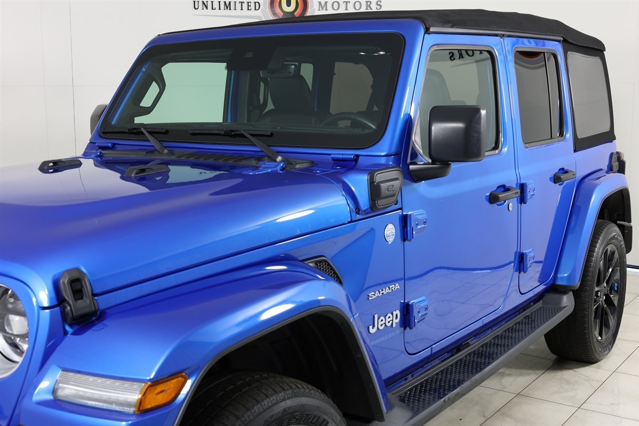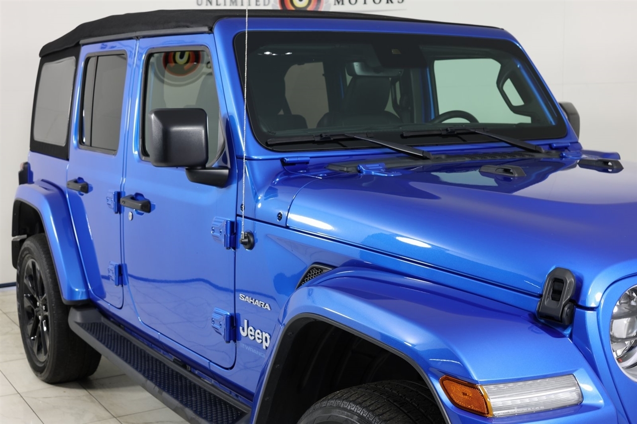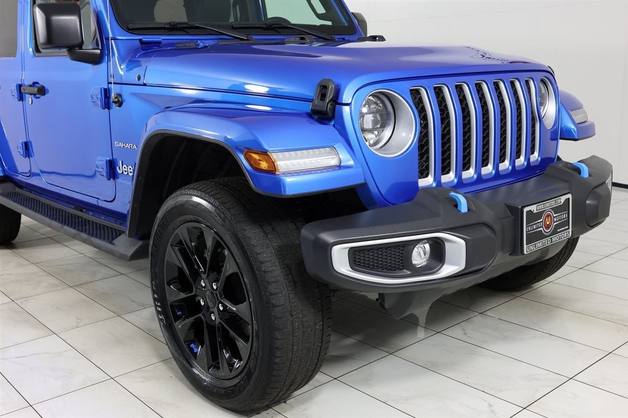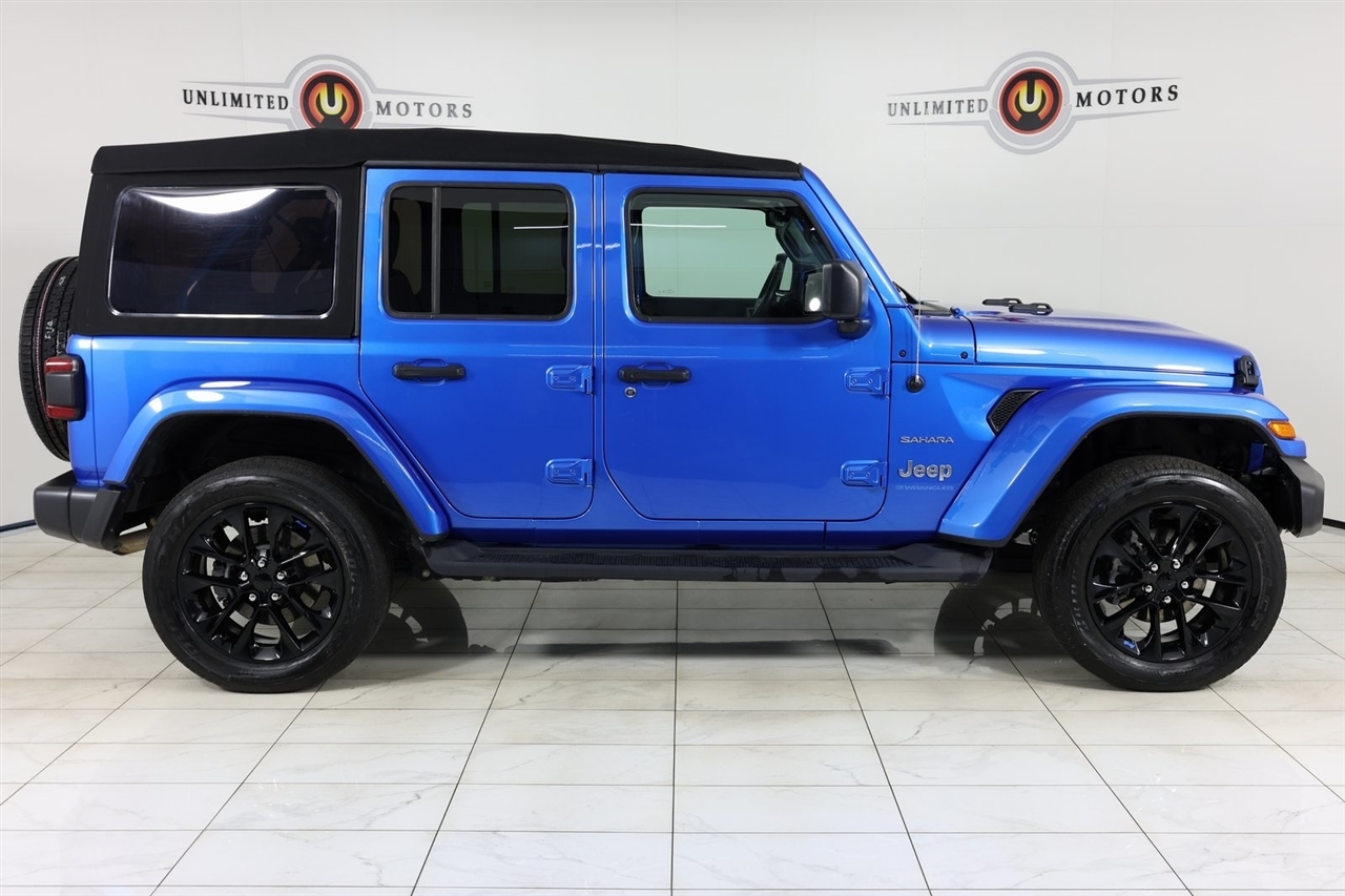 Navigation, Back Up Camera, Bluetooth, Touch Screen, Heated Seats, Heated Steering Wheel, Apple Car Play, Blind Spot, Lane Assist. Odometer is 4818 miles below market average!2023 Hydro Blue Pearl Coat Jeep 4D Sport Utility Wrangler Sahara 4xe 4WD 8-Speed Automatic 2.0L I4 DOHCVisit our website www.iumotors.com to view 100s of newer vehicles, more pictures and info, or to apply for financing. Rates are incredibly low for approved credit. We offer extended warranties, protection packages, and insurance. We assure you the best experience at any of our 4 locations and unbeatable prices and quality. At Unlimited Motors we believe in MARKET VALUE PRICING. We use real-time Internet price comparisons to constantly adjust prices to provide ALL BUYERS The BEST PRICE possible. We do not mark them up, to mark them down! Our entire team is committed to helping you buy a car the way we would want to buy a car! We utilize state-of-the-art technology to constantly monitor pricing trends to offer our shoppers the best competitive pricing, value, and experience. We sell and service all makes and models of Pre-owned / Used Vehicles Used Cars, Used Trucks, Used Sport Utility, Lamborghini, Ferrari, Bentley, Rolls Royce, McLaren, Maserati, Ford, Chevrolet/Chevy, Honda, Toyota, Porsche, Land Rover, Jaguar, INFINITI, Audi, Nissan, Mazda, Hyundai, Chrysler, Jeep, Dodge, Ram, SRT, Mitsubishi, Lexus, Kia, Volkswagen, Mini, BMW, Mercedes, Fiat, Volvo, GMC, Cadillac, Lincoln as well as other brands. Proudly serving these areas of Indianapolis, Fishers, Carmel, Noblesville, Greenwood, Avon, Plainfield, Zionsville, & Brownsburg, Indiana, Midwest. We also serve the entire nation with our seamless and easy online purchasing process, and offer shipping nationwide.Advertised prices DO NOT include Sales Tax, Dealer Fees, Title Processing Charges, and Dealer Pre-installed Products.