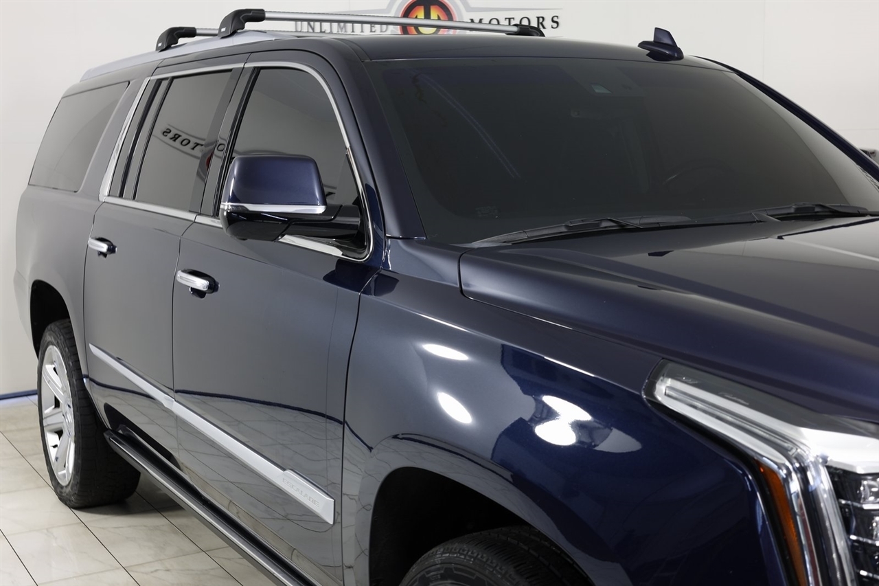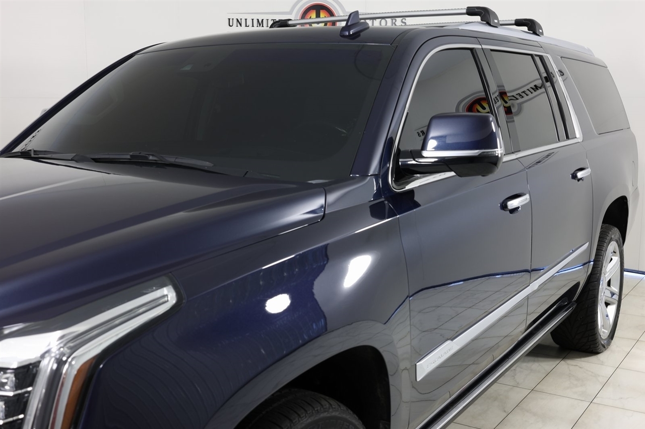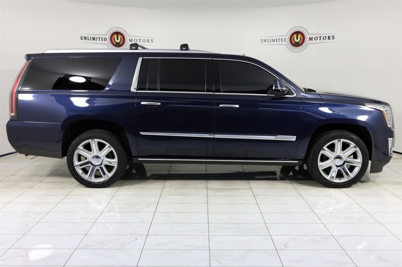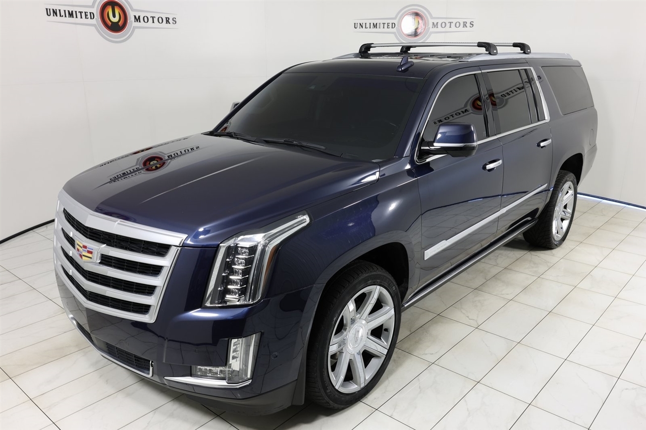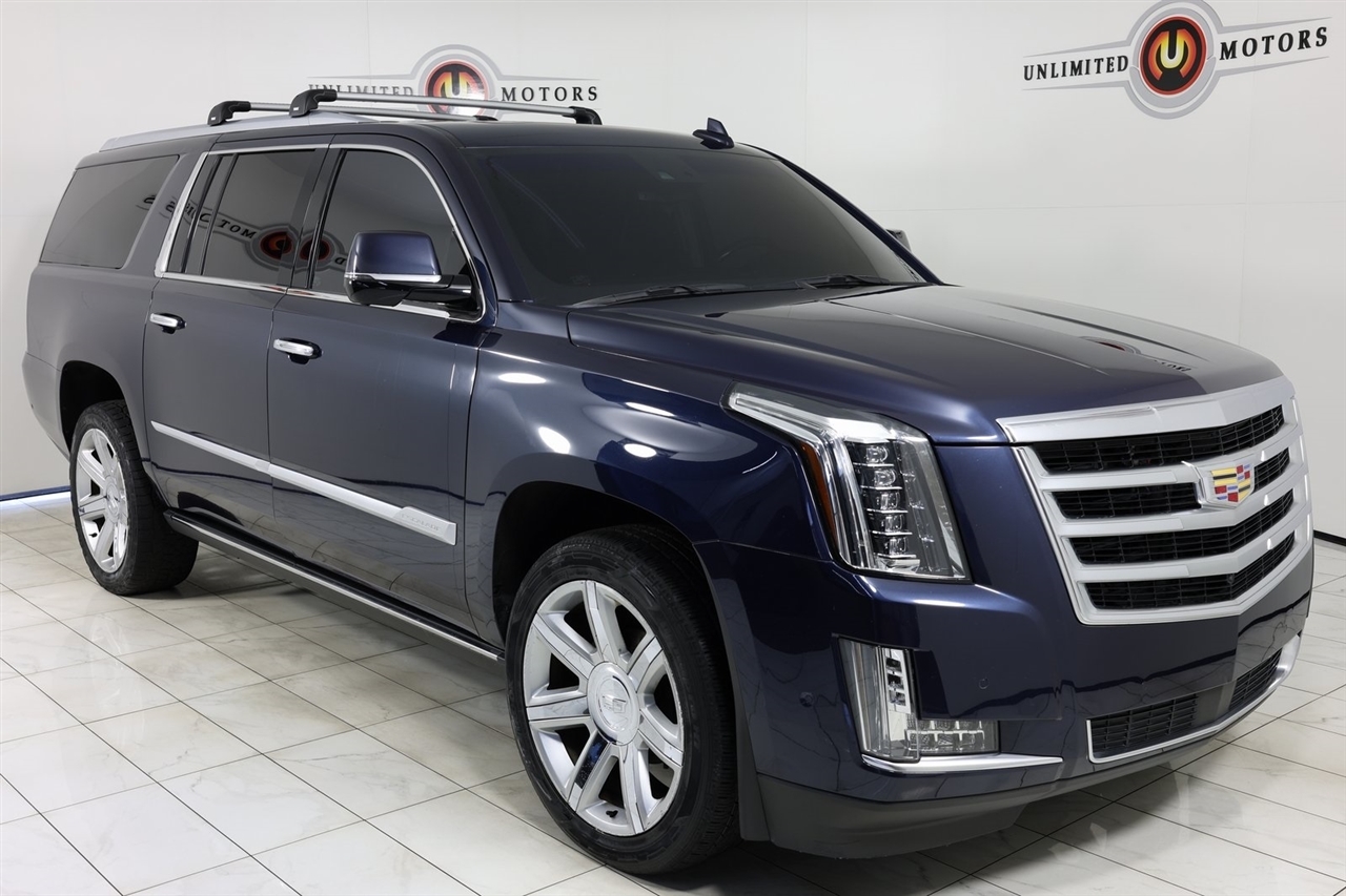 Navigation, Back Up Camera, Sunroof, Bluetooth, Towing, Touch Screen, Heated Seats, Heated Steering Wheel, Ventilated Seats, Apple Car Play, Blind Spot, Clean Carfax, Low Miles, Lane Assist.2018 Dark Adriatic Blue Metallic Cadillac 4D Sport Utility Escalade ESV Premium 4WD 10-Speed Automatic with Overdrive 6.2L Variable Valve Timing V8 SIDIVisit our website www.iumotors.com to view 100s of newer vehicles, more pictures and info, or to apply for financing. Rates are incredibly low for approved credit. We offer extended warranties, protection packages, and insurance. We assure you the best experience at any of our 4 locations and unbeatable prices and quality. At Unlimited Motors we believe in MARKET VALUE PRICING. We use real-time Internet price comparisons to constantly adjust prices to provide ALL BUYERS The BEST PRICE possible. We do not mark them up, to mark them down! Our entire team is committed to helping you buy a car the way we would want to buy a car! We utilize state-of-the-art technology to constantly monitor pricing trends to offer our shoppers the best competitive pricing, value, and experience. We sell and service all makes and models of Pre-owned / Used Vehicles Used Cars, Used Trucks, Used Sport Utility, Lamborghini, Ferrari, Bentley, Rolls Royce, McLaren, Maserati, Ford, Chevrolet/Chevy, Honda, Toyota, Porsche, Land Rover, Jaguar, INFINITI, Audi, Nissan, Mazda, Hyundai, Chrysler, Jeep, Dodge, Ram, SRT, Mitsubishi, Lexus, Kia, Volkswagen, Mini, BMW, Mercedes, Fiat, Volvo, GMC, Cadillac, Lincoln as well as other brands. Proudly serving these areas of Indianapolis, Fishers, Carmel, Noblesville, Greenwood, Avon, Plainfield, Zionsville, & Brownsburg, Indiana, Midwest. We also serve the entire nation with our seamless and easy online purchasing process, and offer shipping nationwide.Advertised prices DO NOT include Sales Tax, Dealer Fees, Title Processing Charges, and Dealer Pre-installed Products.