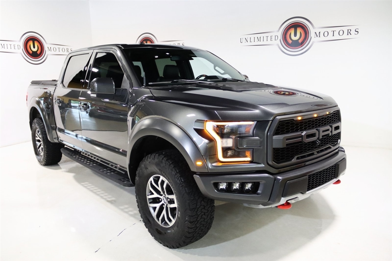 Navigation, Bluetooth, Back Up Camera, Panoramic Roof, Heated Seats, Touch Screen, 10-Way Power Driver & Passenger Seats, 17 Cast Aluminum Wheels, 360 Degree Camera, 4-Wheel Disc Brakes, 4.10 Front Axle w/Torsen Differential, 7 Speakers, 8-Way Power Driver's Seat w/Power Lumbar, 8 Productivity Screen, ABS brakes, Adaptive Cruise Control w/Collision Mitigation, Advanced Security Pack, Air Conditioning, Alloy wheels, AM/FM radio: SiriusXM, Ambient Lighting - Ice Blue Color Only, Auto High Beam, Auto-dimming Rear-View mirror, BLIS Blind Spot Information System, Brake assist, CD player, Compass, Delay-off headlights, Driver door bin, Driver vanity mirror, Dual front impact airbags, Dual front side impact airbags, Dual-Zone Electronic Automatic Temperature Control, Electronic Locking w/4.10 Axle Ratio, Electronic Stability Control, Emergency communication system: 911 Assist, Equipment Group 802A Luxury, Exterior Parking Camera Rear, Front anti-roll bar, Front Bucket Seats, Front Center Armrest, Front fog lights, Front reading lights, Front wheel independent suspension, Fully automatic headlights, GVWR: 7,050 lbs Payload Package, Heated & Ventilated Leather 40/Console/40 Front Seats, Heated Leather 40/Console/40 Front Seats, Heated Steering Wheel, Illuminated entry, Inflatable Rear Safety Belts, Integrated Trailer Brake Controller, Intelligent Access w/Push-Button Start, Lane-Keeping System, Leather steering wheel, LED Box Lighting, LED Sideview Mirror Spotlights, Low tire pressure warning, Memory System (Seat, Pedal, Exterior Mirror), Occupant sensing airbag, Outside temperature display, Overhead airbag, Overhead console, Panic alarm, Passenger door bin, Passenger vanity mirror, Power door mirrors, Power driver seat, Power Glass Heated Sideview Mirrors, Power steering, Power Tilt/Telescoping Steering Column w/Memory, Power windows, Power-Adjustable Pedals, Power-Sliding Rear Window, Pro Trailer Backup Assist, Radio data system, Radio: B&O Play Premium Audio System, Raptor Technology Package, Rear Parking Sensors, Rear reading lights, Rear step bumper, Rear window defroster, Remote keyless entry, Remote Start System w/Remote Tailgate Release, Security system, Speed control, Speed-sensing steering, Split folding rear seat, Steering wheel mounted audio controls, SYNC, SYNC 3, SYNC Connect, Tachometer, Tailgate Applique FORD, Tailgate Step w/Tailgate Lift Assist, Telescoping steering wheel, Tilt steering wheel, Traction control, Trip computer, Twin Panel Moonroof, Unique Cloth Trim Seats, Universal Garage Door Opener, Variably intermittent wipers, Voice-Activated Touchscreen Navigation System. CARFAX One-Owner. Odometer is 16400 miles below market average!2018 Magnetic Ford 4D SuperCrew F-150 Raptor 4WD 10-Speed Automatic 3.5L V6 EcoBoostAwards: * JD Power Automotive Performance, Execution and Layout (APEAL) Study * Motor Trend Automobiles of the year * 2018 KBB.com Brand Image Awards * 2018 KBB.com 10 Most Awarded BrandsVisit our website www.iumotors.com to view 100s of newer vehicles, more pictures and info, or to apply for financing. Rates are incredibly low for approved credit. We offer extended warranties, protection packages, and insurance. We assure you the best experience at any of our 4 locations and unbeatable prices and quality. At Unlimited Motors we believe in MARKET VALUE PRICING. We use real-time Internet price comparisons to constantly adjust prices to provide ALL BUYERS The BEST PRICE possible. We do not mark them up, to mark them down! Our entire team is committed to helping you buy a car the way we would want to buy a car! We utilize state-of-the-art technology to constantly monitor pricing trends to offer our shoppers the best competitive pricing, value, and experience. We sell and service all makes and models of Pre-owned / Used Vehicles Used Cars, Used Trucks, Used Sport Utility, Lamborghini, Ferrari, Bentley, Rolls Royce, McLaren, Maserati, Ford, Chevrolet/Chevy, Honda,