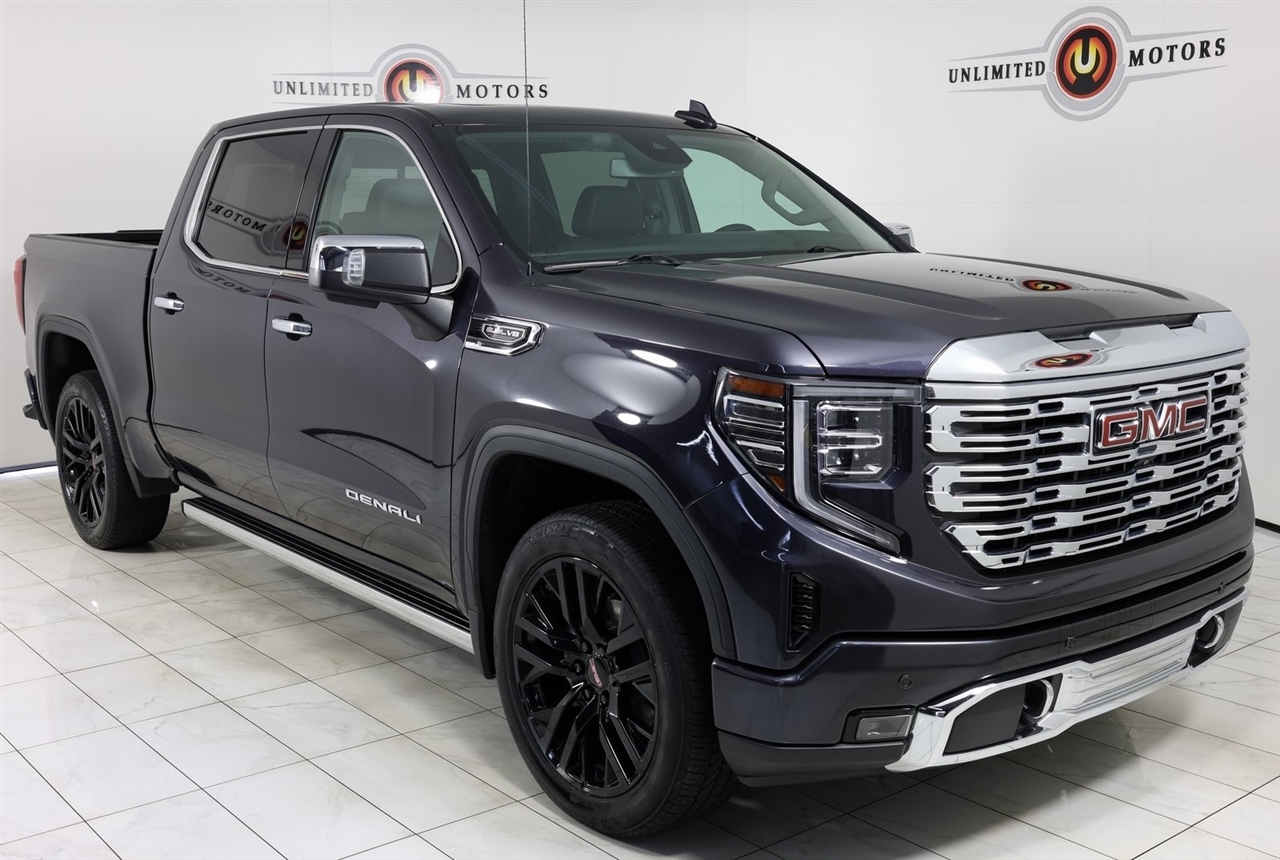 Navigation, Back Up Camera, Sunroof, Bluetooth, Towing, Touch Screen, Heated Seats, Heated Steering Wheel, Apple Car Play, Blind Spot, Low Miles, Lane Assist. Odometer is 14455 miles below market average!2022 Titanium Rush Metallic GMC 4D Crew Cab Sierra 1500 Denali 4WD 10-Speed Automatic EcoTec3 6.2L V8Visit our website www.iumotors.com to view 100s of newer vehicles, more pictures and info, or to apply for financing. Rates are incredibly low for approved credit. We offer extended warranties, protection packages, and insurance. We assure you the best experience at any of our 4 locations and unbeatable prices and quality. At Unlimited Motors we believe in MARKET VALUE PRICING. We use real-time Internet price comparisons to constantly adjust prices to provide ALL BUYERS The BEST PRICE possible. We do not mark them up, to mark them down! Our entire team is committed to helping you buy a car the way we would want to buy a car! We utilize state-of-the-art technology to constantly monitor pricing trends to offer our shoppers the best competitive pricing, value, and experience. We sell and service all makes and models of Pre-owned / Used Vehicles Used Cars, Used Trucks, Used Sport Utility, Lamborghini, Ferrari, Bentley, Rolls Royce, McLaren, Maserati, Ford, Chevrolet/Chevy, Honda, Toyota, Porsche, Land Rover, Jaguar, INFINITI, Audi, Nissan, Mazda, Hyundai, Chrysler, Jeep, Dodge, Ram, SRT, Mitsubishi, Lexus, Kia, Volkswagen, Mini, BMW, Mercedes, Fiat, Volvo, GMC, Cadillac, Lincoln as well as other brands. Proudly serving these areas of Indianapolis, Fishers, Carmel, Noblesville, Greenwood, Avon, Plainfield, Zionsville, & Brownsburg, Indiana, Midwest. We also serve the entire nation with our seamless and easy online purchasing process, and offer shipping nationwide.Advertised prices DO NOT include Sales Tax, Dealer Fees, Title Processing Charges, and Dealer Pre-installed Products.