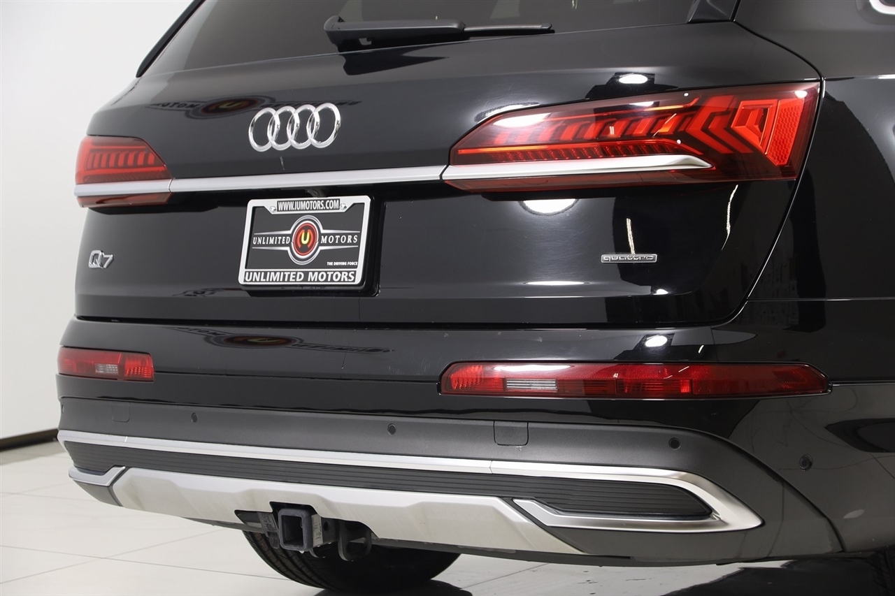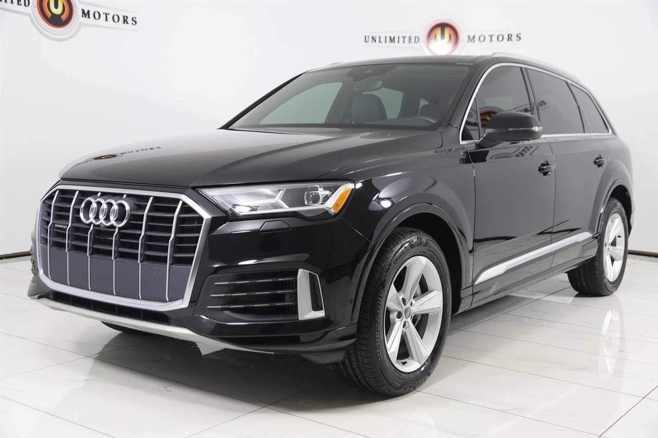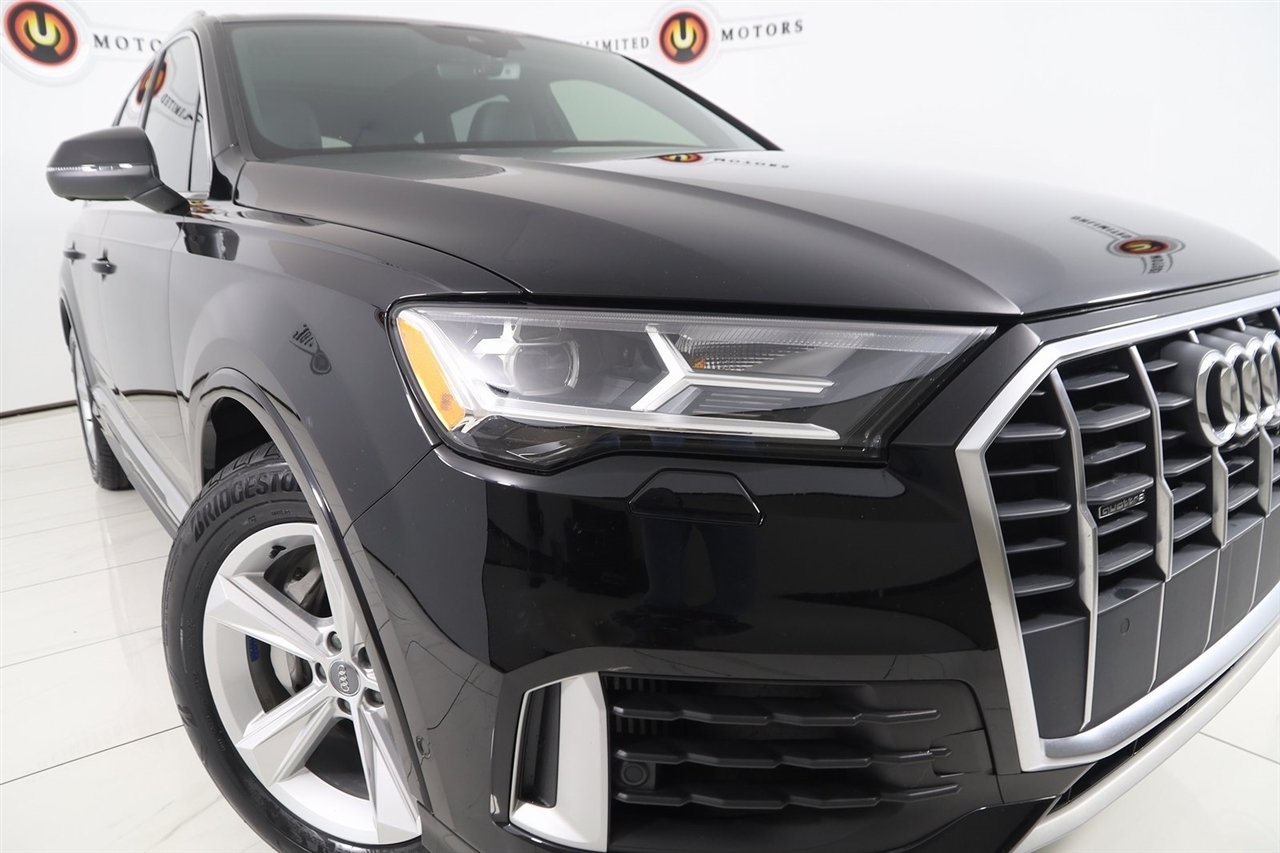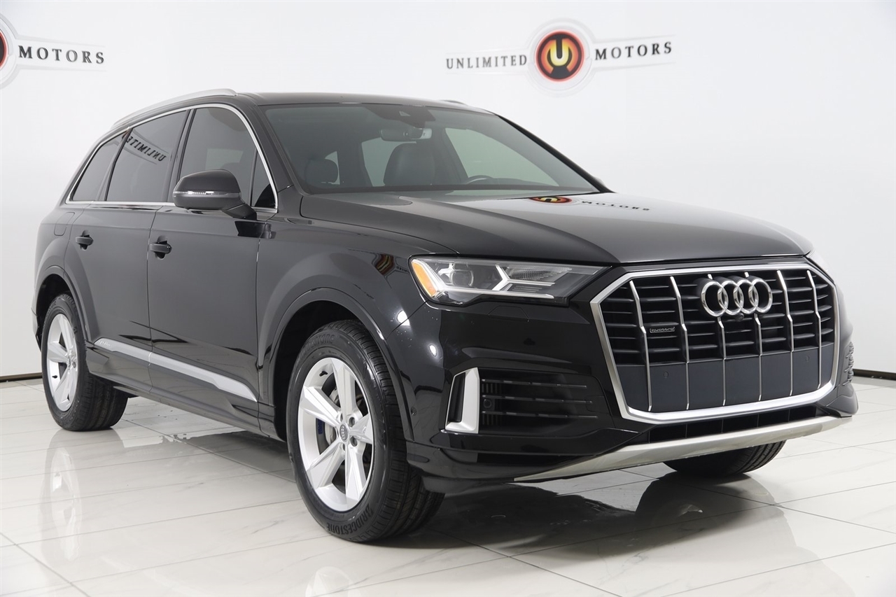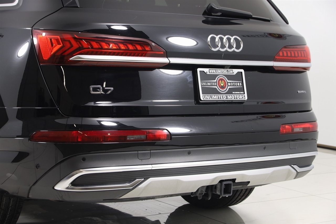 Navigation, Back Up Camera, Bluetooth, Panoramic Roof, Heated Seats, Touch Screen, Blind Spot, Apple Play, Q7 55 Premium quattro, 4D Sport Utility, 3.0L TFSI V6 DOHC, 8-Speed Automatic with Tiptronic, quattro, Black, Black Leather, 3-Spoke Multifunction Steering Wheel w/Paddles, Ambient Interior Lighting Package, Audi Phone Box w/Wireless Charging, Convenience Package, Heated Auto-Dimming Power Folding Exterior Mirrors, Interior Protection Package, Navigation System, Navigation system: Audi MMI Navigation plus with Touch Response, Topview Camera System, Tow Hitch Receiver, Towing Package. Clean CARFAX. Odometer is 37126 miles below market average!2021 Black Audi 4D Sport Utility Q7 55 Premium quattro quattro 8-Speed Automatic with Tiptronic 3.0L TFSI V6 DOHCVisit our website www.iumotors.com to view 100s of newer vehicles, more pictures and info, or to apply for financing. Rates are incredibly low for approved credit. We offer extended warranties, protection packages, and insurance. We assure you the best experience at any of our 4 locations and unbeatable prices and quality. At Unlimited Motors we believe in MARKET VALUE PRICING. We use real-time Internet price comparisons to constantly adjust prices to provide ALL BUYERS The BEST PRICE possible. We do not mark them up, to mark them down! Our entire team is committed to helping you buy a car the way we would want to buy a car! We utilize state-of-the-art technology to constantly monitor pricing trends to offer our shoppers the best competitive pricing, value, and experience. We sell and service all makes and models of Pre-owned / Used Vehicles Used Cars, Used Trucks, Used Sport Utility, Lamborghini, Ferrari, Bentley, Rolls Royce, McLaren, Maserati, Ford, Chevrolet/Chevy, Honda, Toyota, Porsche, Land Rover, Jaguar, INFINITI, Audi, Nissan, Mazda, Hyundai, Chrysler, Jeep, Dodge, Ram, SRT, Mitsubishi, Lexus, Kia, Volkswagen, Mini, BMW, Mercedes, Fiat, Volvo, GMC, Cadillac, Lincoln as well as other brands. Proudly serving these areas of Indianapolis, Fishers, Carmel, Noblesville, Greenwood, Avon, Plainfield, Zionsville, & Brownsburg, Indiana, Midwest. We also serve the entire nation with our seamless and easy online purchasing process, and offer shipping nationwide.Advertised prices DO NOT include Sales Tax, Dealer Fees, Title Processing Charges, and Dealer Pre-installed Products.