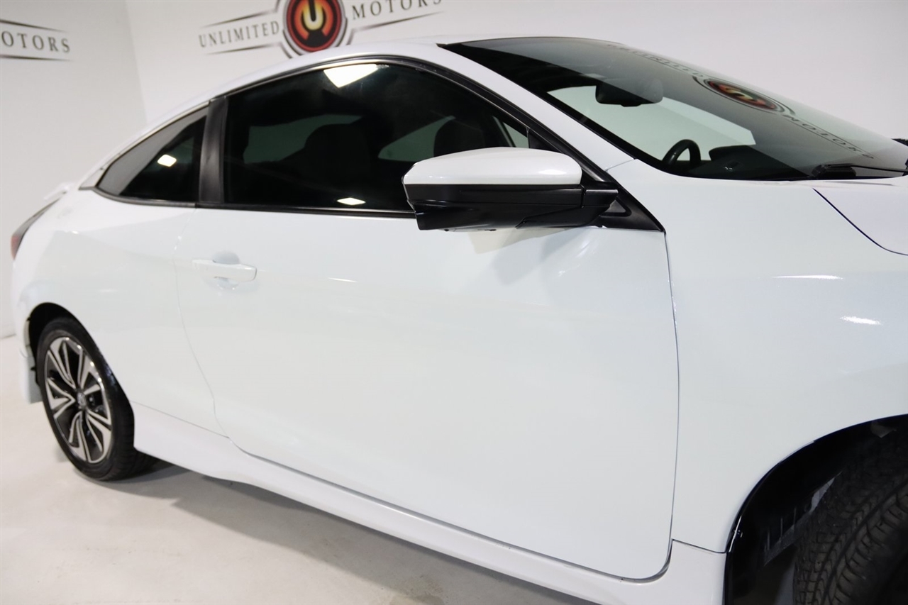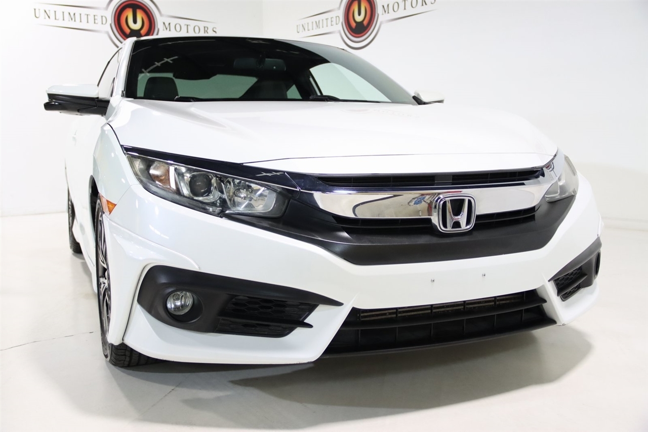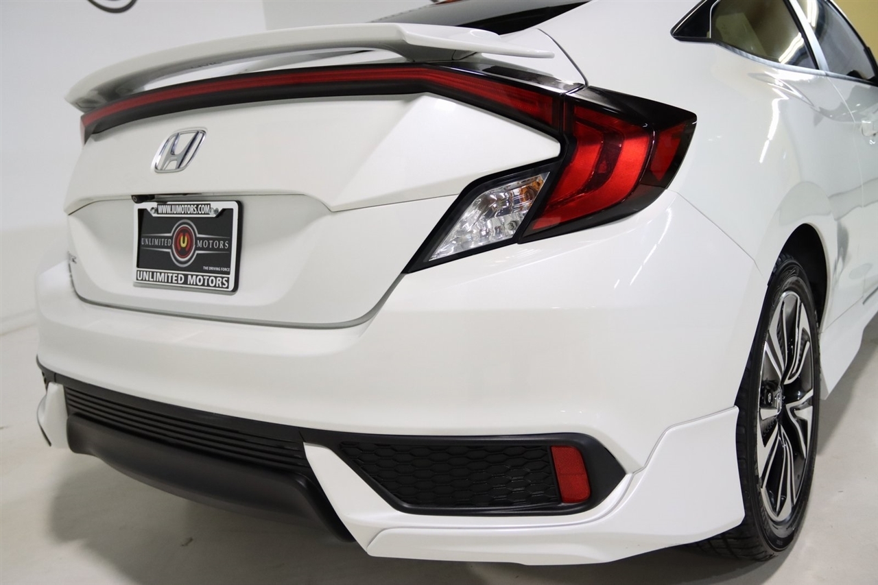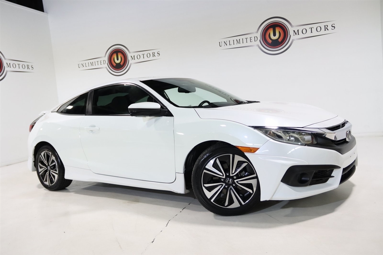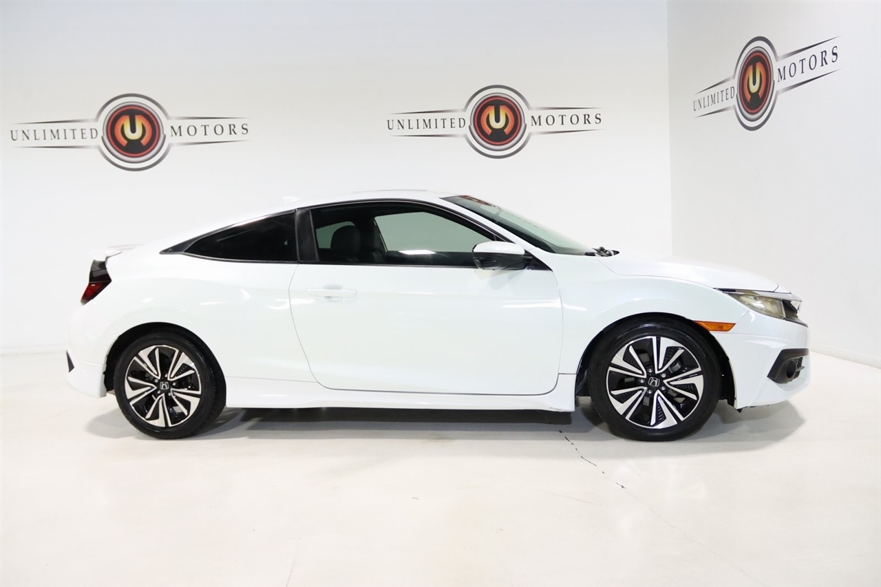 Bluetooth, Back Up Camera, Touch Screen, 10 Speakers, 17 Alloy Wheels, 4-Wheel Disc Brakes, ABS brakes, Air Conditioning, Alloy wheels, AM/FM radio: SiriusXM, Apple CarPlay/Android Auto, Auto-dimming Rear-View mirror, Automatic temperature control, Brake assist, Bumpers: body-color, Compass, Delay-off headlights, Driver door bin, Driver vanity mirror, Dual front impact airbags, Dual front side impact airbags, Electronic Stability Control, Emergency communication system: HondaLink Assist, Exterior Parking Camera Rear, Four wheel independent suspension, Front anti-roll bar, Front Bucket Seats, Front Center Armrest, Front dual zone A/C, Front fog lights, Front reading lights, Fully automatic headlights, Heated door mirrors, Heated front seats, Illuminated entry, Leather Seat Trim, Leather Shift Knob, Low tire pressure warning, Occupant sensing airbag, Outside temperature display, Overhead airbag, Panic alarm, Passenger door bin, Passenger vanity mirror, Power door mirrors, Power moonroof, Power steering, Power windows, Radio data system, Radio: 450-Watt AM/FM/HD/SiriusXM Audio System, Rear anti-roll bar, Rear window defroster, Reclining Heated Front Bucket Seats, Remote keyless entry, Security system, Speed control, Speed-sensing steering, Speed-Sensitive Wipers, Split folding rear seat, Steering wheel mounted audio controls, Tachometer, Telescoping steering wheel, Tilt steering wheel, Traction control, Trip computer, Variably intermittent wipers. 31/41 City/Highway MPG2016 White Honda 2D Coupe Civic EX-L FWD CVT 1.5L I-4 DI DOHC TurbochargedAwards: * 2016 IIHS Top Safety Pick+ (When equipped with honda sensing) * NACTOY 2016 North American Car of the Year * 2016 KBB.com Brand Image AwardsKelley Blue Book Brand Image Awards are based on the Brand Watch(tm) study from Kelley Blue Book Market Intelligence. Award calculated among non-luxury shoppers. For more information, visit www.kbb.com. Kelley Blue Book is a registered trademark of Kelley Blue Book Co., Inc.Visit our website www.iumotors.com to view 100s of newer vehicles, more pictures and info, or to apply for financing. Rates are incredibly low for approved credit. We offer extended warranties, protection packages, and insurance. We assure you the best experience at any of our 4 locations and unbeatable prices and quality. At Unlimited Motors we believe in MARKET VALUE PRICING. We use real-time Internet price comparisons to constantly adjust prices to provide ALL BUYERS The BEST PRICE possible. We do not mark them up, to mark them down! Our entire team is committed to helping you buy a car the way we would want to buy a car! We utilize state-of-the-art technology to constantly monitor pricing trends to offer our shoppers the best competitive pricing, value, and experience. We sell and service all makes and models of Pre-owned / Used Vehicles Used Cars, Used Trucks, Used Sport Utility, Lamborghini, Ferrari, Bentley, Rolls Royce, McLaren, Maserati, Ford, Chevrolet/Chevy, Honda, Toyota, Porsche, Land Rover, Jaguar, INFINITI, Audi, Nissan, Mazda, Hyundai, Chrysler, Jeep, Dodge, Ram, SRT, Mitsubishi, Lexus, Kia, Volkswagen, Mini, BMW, Mercedes, Fiat, Volvo, GMC, Cadillac, Lincoln as well as other brands. Proudly serving these areas of Indianapolis, Fishers, Carmel, Noblesville, Greenwood, Avon, Plainfield, Zionsville, & Brownsburg, Indiana, Midwest. We also serve the entire nation with our seamless and easy online purchasing process, and offer shipping nationwide.Advertised prices DO NOT include Sales Tax, Dealer Fees, Title Processing Charges, and Dealer Pre-installed Products.