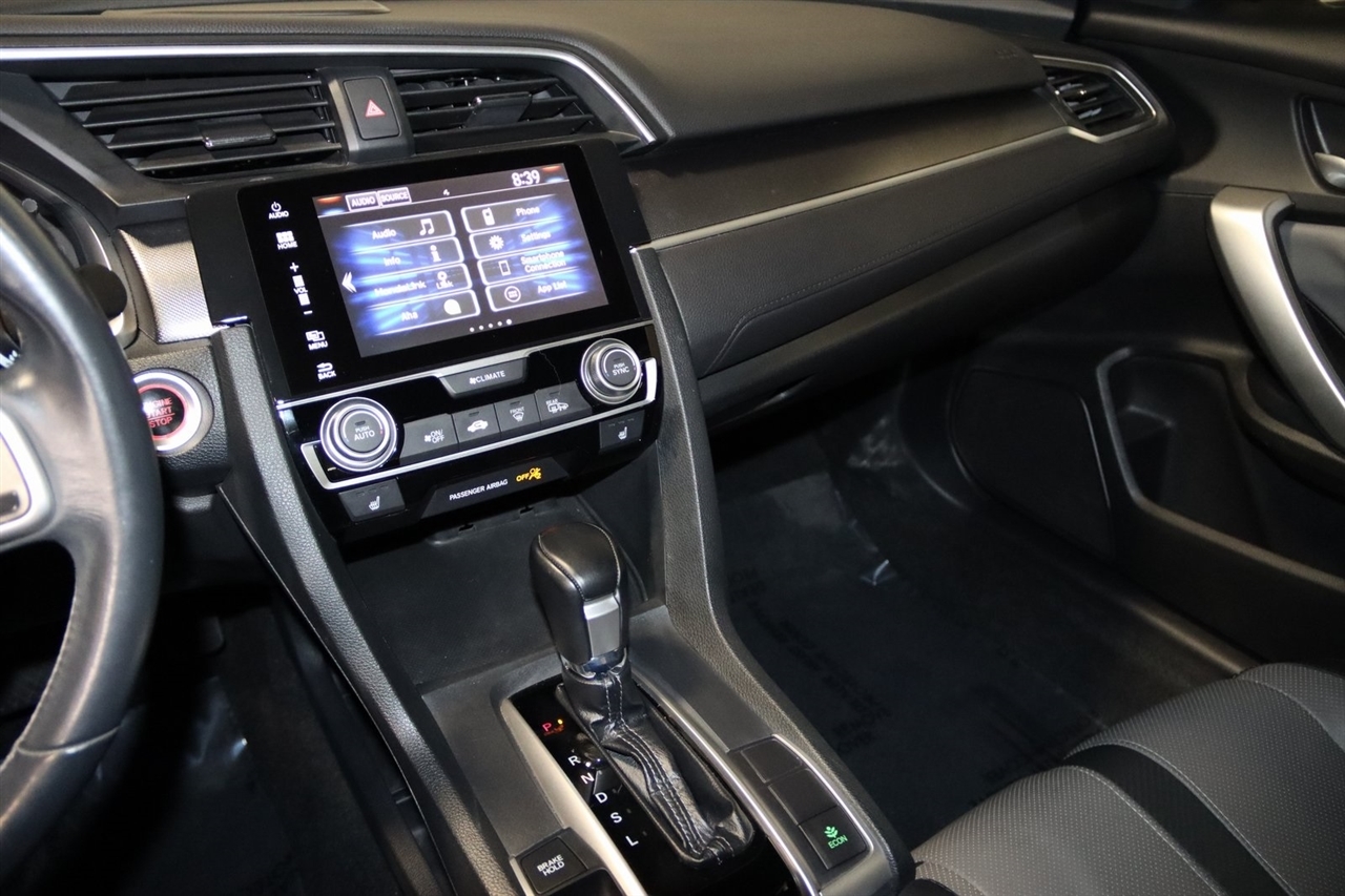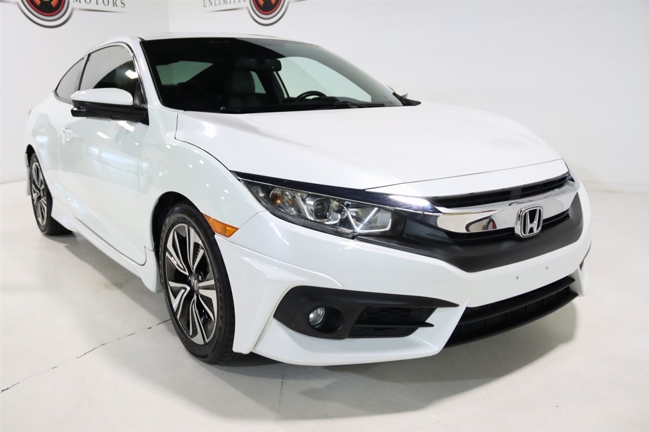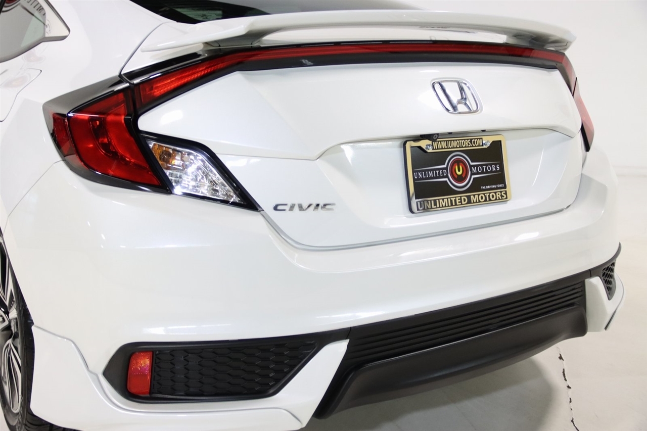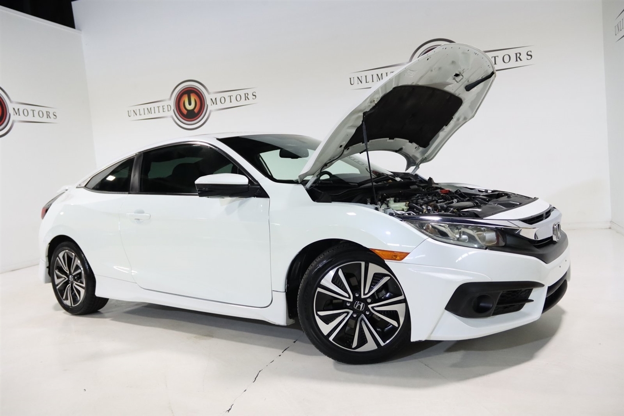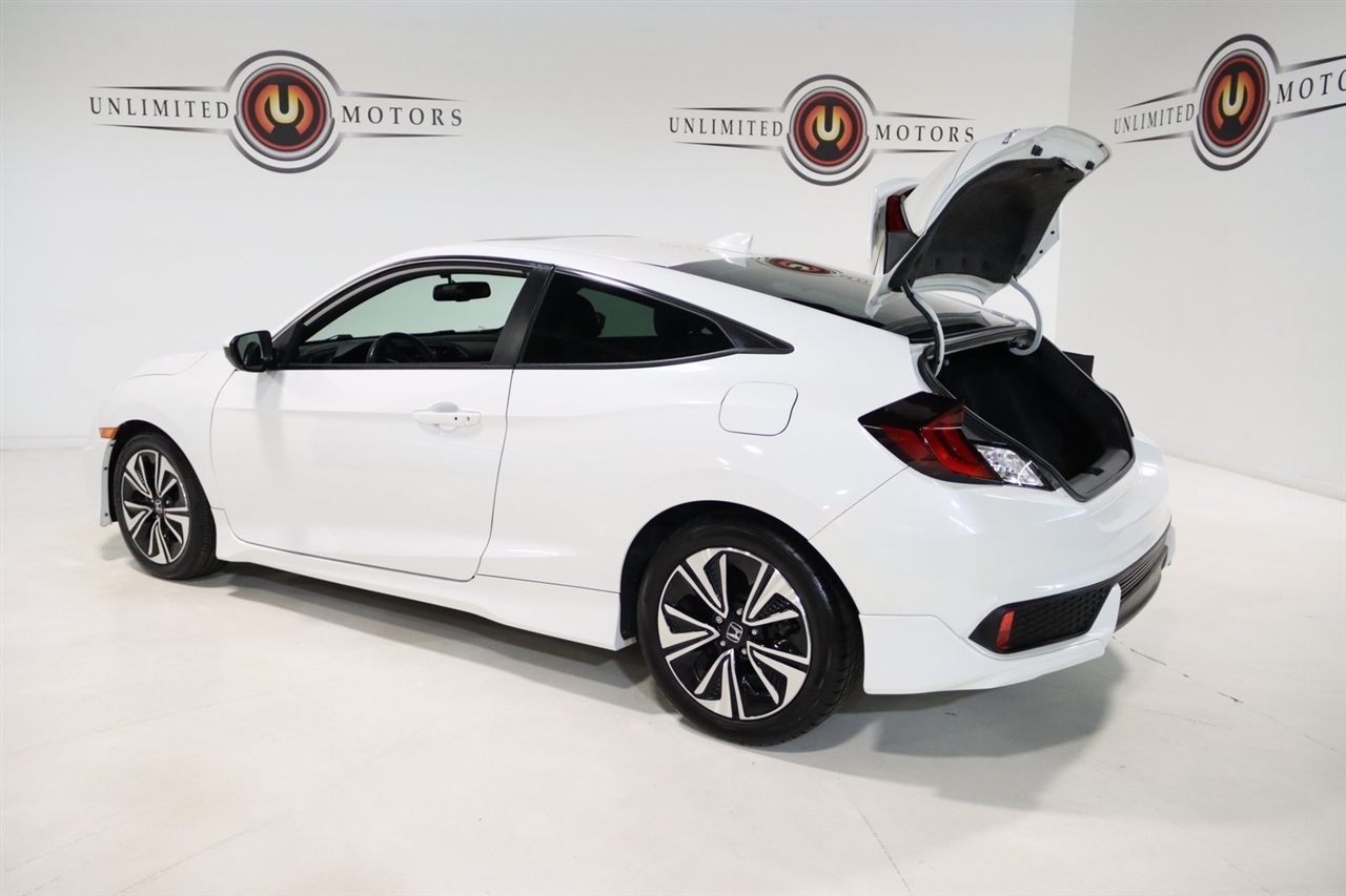 Bluetooth, Back Up Camera, Touch Screen, 10 Speakers, 17 Alloy Wheels, 4-Wheel Disc Brakes, ABS brakes, Air Conditioning, Alloy wheels, AM/FM radio: SiriusXM, Apple CarPlay/Android Auto, Auto-dimming Rear-View mirror, Automatic temperature control, Brake assist, Bumpers: body-color, Compass, Delay-off headlights, Driver door bin, Driver vanity mirror, Dual front impact airbags, Dual front side impact airbags, Electronic Stability Control, Emergency communication system: HondaLink Assist, Exterior Parking Camera Rear, Four wheel independent suspension, Front anti-roll bar, Front Bucket Seats, Front Center Armrest, Front dual zone A/C, Front fog lights, Front reading lights, Fully automatic headlights, Heated door mirrors, Heated front seats, Illuminated entry, Leather Seat Trim, Leather Shift Knob, Low tire pressure warning, Occupant sensing airbag, Outside temperature display, Overhead airbag, Panic alarm, Passenger door bin, Passenger vanity mirror, Power door mirrors, Power moonroof, Power steering, Power windows, Radio data system, Radio: 450-Watt AM/FM/HD/SiriusXM Audio System, Rear anti-roll bar, Rear window defroster, Reclining Heated Front Bucket Seats, Remote keyless entry, Security system, Speed control, Speed-sensing steering, Speed-Sensitive Wipers, Split folding rear seat, Steering wheel mounted audio controls, Tachometer, Telescoping steering wheel, Tilt steering wheel, Traction control, Trip computer, Variably intermittent wipers. 31/41 City/Highway MPG2016 White Honda 2D Coupe Civic EX-L FWD CVT 1.5L I-4 DI DOHC TurbochargedAwards: * 2016 IIHS Top Safety Pick+ (When equipped with honda sensing) * NACTOY 2016 North American Car of the Year * 2016 KBB.com Brand Image AwardsKelley Blue Book Brand Image Awards are based on the Brand Watch(tm) study from Kelley Blue Book Market Intelligence. Award calculated among non-luxury shoppers. For more information, visit www.kbb.com. Kelley Blue Book is a registered trademark of Kelley Blue Book Co., Inc.Visit our website www.iumotors.com to view 100s of newer vehicles, more pictures and info, or to apply for financing. Rates are incredibly low for approved credit. We offer extended warranties, protection packages, and insurance. We assure you the best experience at any of our 4 locations and unbeatable prices and quality. At Unlimited Motors we believe in MARKET VALUE PRICING. We use real-time Internet price comparisons to constantly adjust prices to provide ALL BUYERS The BEST PRICE possible. We do not mark them up, to mark them down! Our entire team is committed to helping you buy a car the way we would want to buy a car! We utilize state-of-the-art technology to constantly monitor pricing trends to offer our shoppers the best competitive pricing, value, and experience. We sell and service all makes and models of Pre-owned / Used Vehicles Used Cars, Used Trucks, Used Sport Utility, Lamborghini, Ferrari, Bentley, Rolls Royce, McLaren, Maserati, Ford, Chevrolet/Chevy, Honda, Toyota, Porsche, Land Rover, Jaguar, INFINITI, Audi, Nissan, Mazda, Hyundai, Chrysler, Jeep, Dodge, Ram, SRT, Mitsubishi, Lexus, Kia, Volkswagen, Mini, BMW, Mercedes, Fiat, Volvo, GMC, Cadillac, Lincoln as well as other brands. Proudly serving these areas of Indianapolis, Fishers, Carmel, Noblesville, Greenwood, Avon, Plainfield, Zionsville, & Brownsburg, Indiana, Midwest. We also serve the entire nation with our seamless and easy online purchasing process, and offer shipping nationwide.Advertised prices DO NOT include Sales Tax, Dealer Fees, Title Processing Charges, and Dealer Pre-installed Products.