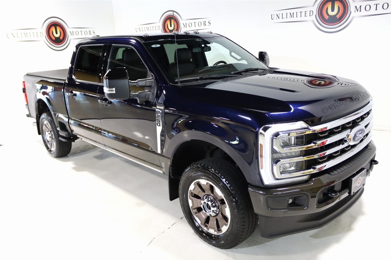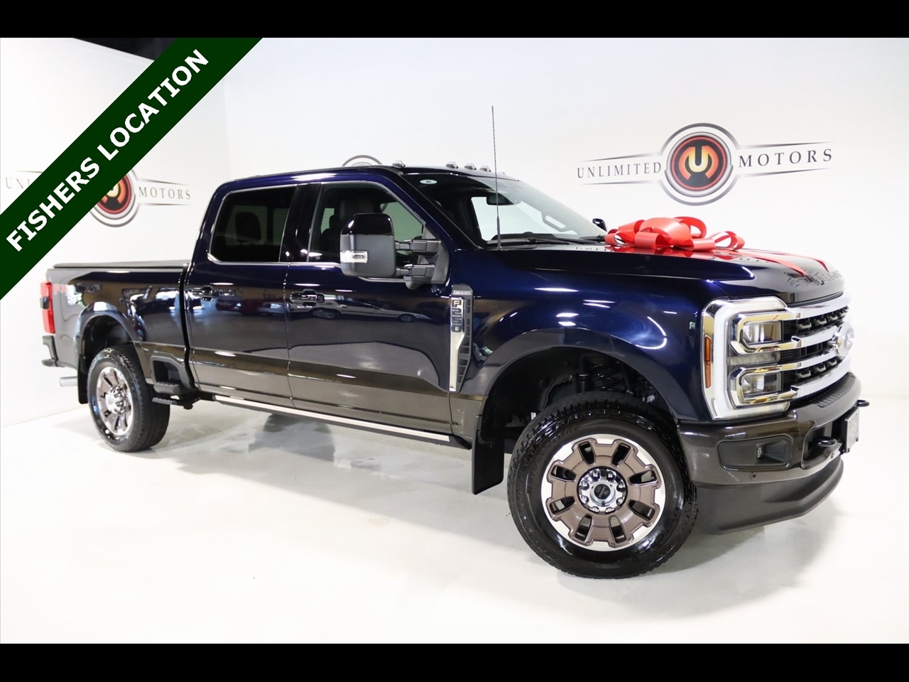 Navigation, Bluetooth, Back Up Camera, Panoramic Roof, Towing, Heated Seats, 4-Wheel Disc Brakes, ABS brakes, Adjustable pedals, Air Conditioning, AM/FM radio: SiriusXM with 360L, Auto High-beam Headlights, Auto tilt-away steering wheel, Auto-dimming Rear-View mirror, Automatic temperature control, Brake assist, Compass, Delay-off headlights, Driver door bin, Driver vanity mirror, Dual front impact airbags, Dual front side impact airbags, Electronic Stability Control, Electronic-Locking w/3.31 Axle Ratio, Emergency communication system: SYNC 4 911 Assist, Exterior Parking Camera Rear, F-250 >10K GVWR Package, Flow-Through Console, Front anti-roll bar, Front Bucket Seats, Front Center Armrest, Front dual zone A/C, Front fog lights, Front reading lights, Fully automatic headlights, Garage door transmitter, Heated door mirrors, Heated front seats, Heated rear seats, Heated steering wheel, Illuminated entry, Leather steering wheel, Low tire pressure warning, Memory seat, Navigation system: Connected Navigation (includes complimentary 1-year trial), Outside temperature display, Overhead airbag, Overhead console, Panic alarm, Passenger door bin, Passenger vanity mirror, Pedal memory, Power door mirrors, Power driver seat, Power passenger seat, Power steering, Power windows, Rain sensing wipers, Rear reading lights, Rear seat center armrest, Rear step bumper, Rear window defroster, Remote keyless entry, Security system, SiriusXM Radio w/360L, Speed control, Split folding rear seat, Steering wheel memory, Steering wheel mounted audio controls, SYNC 4 w/Enhanced Voice Recognition, Tachometer, Telescoping steering wheel, Tilt steering wheel, Traction control, Trip computer, Turn signal indicator mirrors, Variably intermittent wipers, Ventilated front seats. Clean CARFAX. Odometer is 5734 miles below market average! Priced below KBB Fair Purchase Price!2024 Antimatter Blue Metallic Ford 4D Crew Cab F-250SD King Ranch 4WD 10-Speed Automatic 7.3L 8-Cylinder PFIVisit our website www.iumotors.com to view 100s of newer vehicles, more pictures and info, or to apply for financing. Rates are incredibly low for approved credit. We offer extended warranties, protection packages, and insurance. We assure you the best experience at any of our 4 locations and unbeatable prices and quality. At Unlimited Motors we believe in MARKET VALUE PRICING. We use real-time Internet price comparisons to constantly adjust prices to provide ALL BUYERS The BEST PRICE possible. We do not mark them up, to mark them down! Our entire team is committed to helping you buy a car the way we would want to buy a car! We utilize state-of-the-art technology to constantly monitor pricing trends to offer our shoppers the best competitive pricing, value, and experience. We sell and service all makes and models of Pre-owned / Used Vehicles Used Cars, Used Trucks, Used Sport Utility, Lamborghini, Ferrari, Bentley, Rolls Royce, McLaren, Maserati, Ford, Chevrolet/Chevy, Honda, Toyota, Porsche, Land Rover, Jaguar, INFINITI, Audi, Nissan, Mazda, Hyundai, Chrysler, Jeep, Dodge, Ram, SRT, Mitsubishi, Lexus, Kia, Volkswagen, Mini, BMW, Mercedes, Fiat, Volvo, GMC, Cadillac, Lincoln as well as other brands. Proudly serving these areas of Indianapolis, Fishers, Carmel, Noblesville, Greenwood, Avon, Plainfield, Zionsville, & Brownsburg, Indiana, Midwest. We also serve the entire nation with our seamless and easy online purchasing process, and offer shipping nationwide.Advertised prices DO NOT include Sales Tax, Dealer Fees, Title Processing Charges, and Dealer Pre-installed Products.