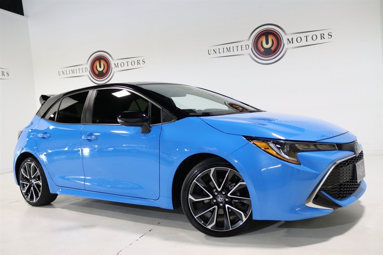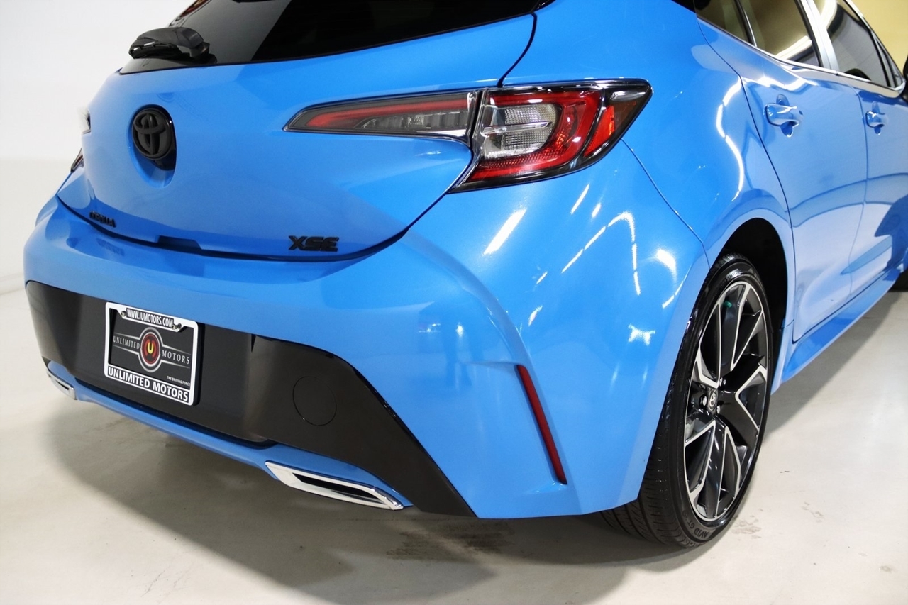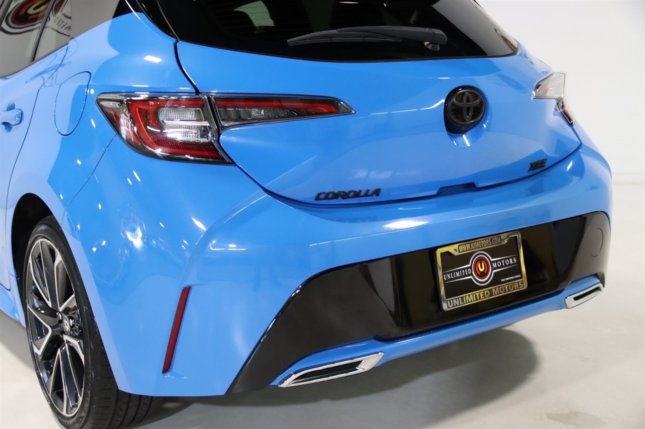 Bluetooth, Back Up Camera, Heated Seats, Touch Screen, 4-Wheel Disc Brakes, 6 Speakers, ABS brakes, Air Conditioning, Alloy wheels, AM/FM radio: SiriusXM, Apple CarPlay/Android Auto, Auto High-beam Headlights, Automatic temperature control, Blind Spot Monitor (BSM), Brake assist, Bumpers: body-color, Compass, Delay-off headlights, Driver 8-Way Power & Passenger Manual Front Seats, Driver door bin, Driver vanity mirror, Dual front impact airbags, Dual front side impact airbags, Dual Mode Air Conditioner, Electronic Stability Control, Emergency communication system: Safety Connect with 1-year trial, Exterior Parking Camera Rear, Four wheel independent suspension, Front anti-roll bar, Front Bucket Seats, Front Center Armrest, Front dual zone A/C, Front Fog & Driving Lamp, Front fog lights, Front reading lights, Heated door mirrors, Heated front seats, Heated Sport Front Seats, Illuminated entry, Knee airbag, Leather Shift Knob, Leather Upholstery, Low tire pressure warning, mph Speedometer, Occupant sensing airbag, Outside temperature display, Overhead airbag, Overhead console, Panic alarm, Passenger door bin, Passenger vanity mirror, Piano Black Inner Door, Power door mirrors, Power driver seat, Power steering, Power windows, Radio data system, Radio: Audio Plus, Rear anti-roll bar, Rear seat center armrest, Rear side impact airbag, Rear window defroster, Rear window wiper, Remote keyless entry, Security system, Speed control, Speed-sensing steering, Split folding rear seat, Spoiler, Steering wheel mounted audio controls, Tachometer, Telescoping steering wheel, Tilt steering wheel, Traction control, Trip computer, Turn signal indicator mirrors, Variably intermittent wipers, Wheels: 18 Bright Machine-Finished Aluminum. Clean CARFAX. 30/38 City/Highway MPG2021 Blue Flame w/Midnight Black Toyota 5D Hatchback Corolla Hatchback XSE FWD CVT 2.0L I4Visit our website www.iumotors.com to view 100s of newer vehicles, more pictures and info, or to apply for financing. Rates are incredibly low for approved credit. We offer extended warranties, protection packages, and insurance. We assure you the best experience at any of our 4 locations and unbeatable prices and quality. At Unlimited Motors we believe in MARKET VALUE PRICING. We use real-time Internet price comparisons to constantly adjust prices to provide ALL BUYERS The BEST PRICE possible. We do not mark them up, to mark them down! Our entire team is committed to helping you buy a car the way we would want to buy a car! We utilize state-of-the-art technology to constantly monitor pricing trends to offer our shoppers the best competitive pricing, value, and experience. We sell and service all makes and models of Pre-owned / Used Vehicles Used Cars, Used Trucks, Used Sport Utility, Lamborghini, Ferrari, Bentley, Rolls Royce, McLaren, Maserati, Ford, Chevrolet/Chevy, Honda, Toyota, Porsche, Land Rover, Jaguar, INFINITI, Audi, Nissan, Mazda, Hyundai, Chrysler, Jeep, Dodge, Ram, SRT, Mitsubishi, Lexus, Kia, Volkswagen, Mini, BMW, Mercedes, Fiat, Volvo, GMC, Cadillac, Lincoln as well as other brands. Proudly serving these areas of Indianapolis, Fishers, Carmel, Noblesville, Greenwood, Avon, Plainfield, Zionsville, & Brownsburg, Indiana, Midwest. We also serve the entire nation with our seamless and easy online purchasing process, and offer shipping nationwide.Advertised prices DO NOT include Sales Tax, Dealer Fees, Title Processing Charges, and Dealer Pre-installed Products.