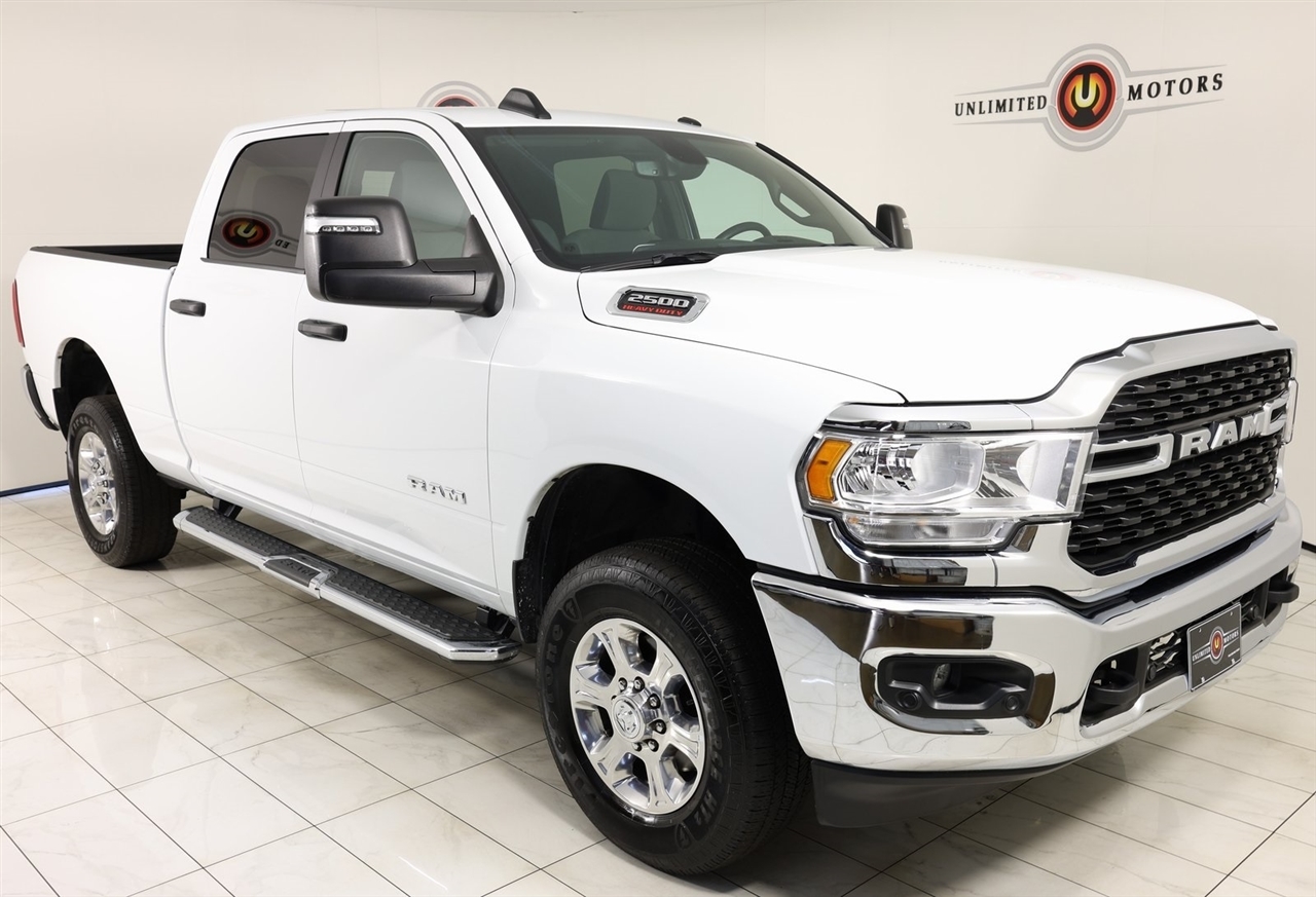 Navigation, Back Up Camera, Bluetooth, Towing, Touch Screen, Blind Spot, 1-Owner, Clean Carfax.2024 Bright White Clearcoat Ram 4D Crew Cab 2500 Big Horn 4WD 8-Speed Automatic 6.4L V8Visit our website www.iumotors.com to view 100s of newer vehicles, more pictures and info, or to apply for financing. Rates are incredibly low for approved credit. We offer extended warranties, protection packages, and insurance. We assure you the best experience at any of our 4 locations and unbeatable prices and quality. At Unlimited Motors we believe in MARKET VALUE PRICING. We use real-time Internet price comparisons to constantly adjust prices to provide ALL BUYERS The BEST PRICE possible. We do not mark them up, to mark them down! Our entire team is committed to helping you buy a car the way we would want to buy a car! We utilize state-of-the-art technology to constantly monitor pricing trends to offer our shoppers the best competitive pricing, value, and experience. We sell and service all makes and models of Pre-owned / Used Vehicles Used Cars, Used Trucks, Used Sport Utility, Lamborghini, Ferrari, Bentley, Rolls Royce, McLaren, Maserati, Ford, Chevrolet/Chevy, Honda, Toyota, Porsche, Land Rover, Jaguar, INFINITI, Audi, Nissan, Mazda, Hyundai, Chrysler, Jeep, Dodge, Ram, SRT, Mitsubishi, Lexus, Kia, Volkswagen, Mini, BMW, Mercedes, Fiat, Volvo, GMC, Cadillac, Lincoln as well as other brands. Proudly serving these areas of Indianapolis, Fishers, Carmel, Noblesville, Greenwood, Avon, Plainfield, Zionsville, & Brownsburg, Indiana, Midwest. We also serve the entire nation with our seamless and easy online purchasing process, and offer shipping nationwide.Advertised prices DO NOT include Sales Tax, Dealer Fees, Title Processing Charges, and Dealer Pre-installed Products.