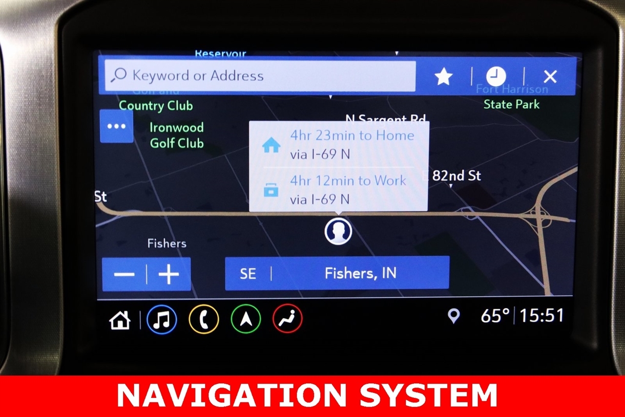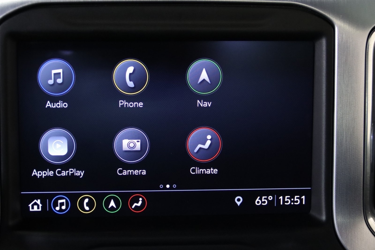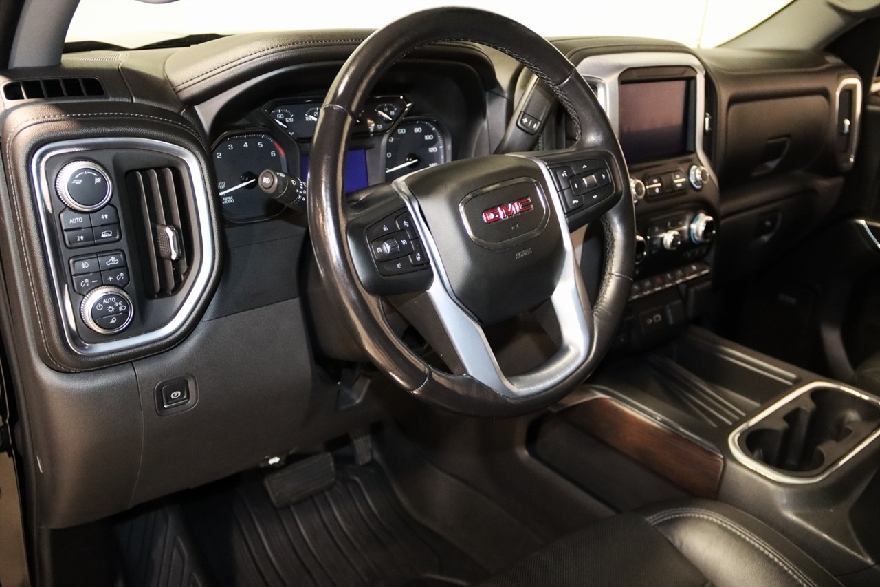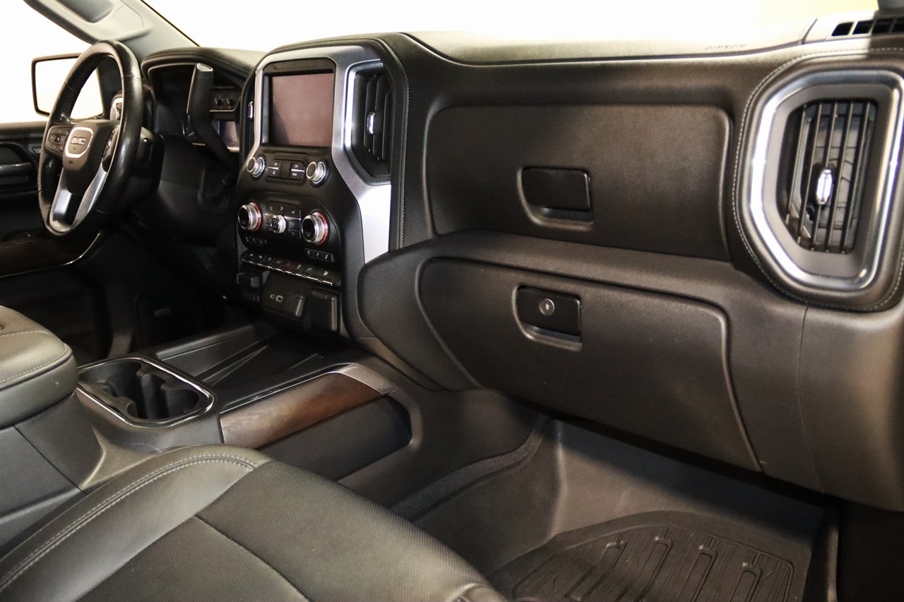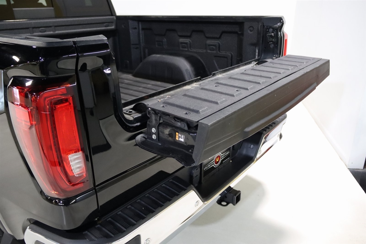 Navigation, Bluetooth, Back Up Camera, Sun/Moon Roof, Touch Screen, 10-Way Power Driver Seat Adjuster w/Lumbar, 10-Way Power Passenger Seat Adjuster w/Lumbar, 12-Volt Rear Auxiliary Power Outlet, 120-Volt Bed Mounted Power Outlet, 120-Volt Instrument Panel Power Outlet, 170 Amp Alternator, 2 USB Ports, 2 USB Ports (1st Row), 20 x 9 Polished Aluminum Wheels, 3.23 Rear Axle Ratio, 4-Wheel Disc Brakes, 6 Speakers, 6-Speaker Audio System Feature, ABS brakes, Air Conditioning, All-Weather Floor Liner (LPO), Alloy wheels, AM/FM radio: SiriusXM, Apple CarPlay/Android Auto, Auto-dimming door mirrors, Auto-dimming Rear-View mirror, Automatic temperature control, Auxiliary External Transmission Oil Cooler, Brake assist, Bumpers: chrome, Chrome Assist Steps, Chrome Grille, Color-Keyed Carpeting Floor Covering, Compass, Deep-Tinted Glass, Delay-off headlights, Driver Alert Package I, Driver Alert Package II, Driver door bin, Driver Memory, Driver vanity mirror, Dual front impact airbags, Dual front side impact airbags, Electric Rear-Window Defogger, Electrical Lock Control Steering Column, Electronic Stability Control, Floor Mounted Console, Following Distance Indicator, Forward Collision Alert, Front & Rear Black Molded Splash Guards (LPO), Front 40/20/40 Split-Bench Seat, Front anti-roll bar, Front Bucket Seats, Front Center Armrest w/Storage, Front dual zone A/C, Front fog lights, Front Frame-Mounted Black Recovery Hooks, Front Pedestrian Braking, Front reading lights, Front wheel independent suspension, Fully automatic headlights, GMC 4G LTE, GMC Connected Access, GMC Protection Package (LPO), HD Radio, Heated 2nd Row Outboard Seats, Heated door mirrors, Heated Driver & Front Passenger Seating, Heated front seats, Heated steering wheel, Heavy Duty Suspension, Heavy-Duty Rear Locking Differential, Hitch Guidance, Hitch Guidance w/Hitch View, Illuminated entry, In-Vehicle Trailering App, Integrated Trailer Brake Controller, IntelliBeam Automatic High Beam On/Off, Keyless Open & Start, Lane Change Alert w/Side Blind Zone Alert, Lane Keep Assist w/Lane Departure Warning, LED Cargo Area Lighting, Low Speed Forward Automatic Braking, Low tire pressure warning, Manual Tilt-Wheel & Telescoping Steering Column, Memory seat, Occupant sensing airbag, OnStar & GMC Connected Services Capable, Outside temperature display, Overhead airbag, Overhead console, Panic alarm, Passenger door bin, Passenger vanity mirror, Perforated Leather-Appointed Seat Trim, Perimeter Lighting, Polished Exhaust Tip, Power Door Locks, Power door mirrors, Power driver seat, Power Front Passenger Windows w/Express Up/Down, Power Front Windows w/Driver Express Up/Down, Power passenger seat, Power Rear Windows w/Express Down, Power Sliding Rear Window w/Rear Defogger, Power steering, Power Sunroof, Power windows, Preferred Equipment Group 4SA, Premium audio system: GMC Infotainment System, Premium Bose 7-Speaker Sound System, Radio data system, Radio: Premium GMC Infotainment Sys w/Multi-Touch, Radio: Premium GMC Infotainment Sys w/Navigation, Rear Cross Traffic Alert, Rear Dual USB Charging-Only Ports, Rear reading lights, Rear seat center armrest, Rear step bumper, Rear Wheelhouse Liners, Rear window defroster, Remote keyless entry, Remote Vehicle Starter System, Safety Alert Seat, Security system, SiriusXM Radio, SLT Convenience Package, SLT Preferred Package, SLT Premium Plus Package, Speed control, Speed-sensing steering, Split folding rear seat, Spray-On Pickup Bed Liner w/GMC Logo, Steering Wheel Audio Controls, Steering wheel mounted audio controls, Tachometer, Telescoping steering wheel, Theft Deterrent System (Unauthorized Entry), Tilt steering wheel, Traction control, Trailer Tire Pressure Monitor System, Trailering Package, Trip computer, Ultrasonic Front & Rear Park Assist, Universal Home Remote, Ventilated Driver & Front Passenger Seats, Voltmeter, Wireless Charging. CARFAX One-Owner. Clean CARFAX. Odometer is 50916 miles below market average! Priced below KBB