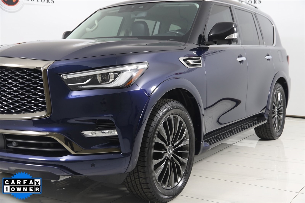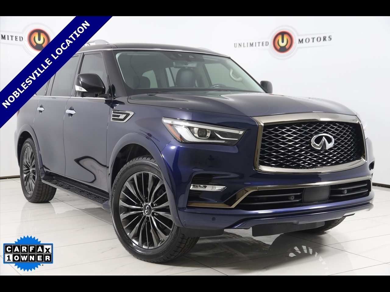 4x4, AWD, Back Up Camera, Bluetooth, Heated Seats, Navigation/GPS, Sun/Moon Roof, Push Button Start, and much more ..., Touch Screen, QX80 Premium Select, 4D Sport Utility, 5.6L V8, 7-Speed Automatic, 4WD, Hermosa Blue, Black Leather, All-Season Floor Mats, All-Season Package, Cargo Protector, Navigation System, Navigation system: INFINITI InTouch Navigation, Split Bench Seat Package. Odometer is 9854 miles below market average!2021 INFINITI QX80 Premium Select 4D Sport Utility 7-Speed Automatic 5.6L V8CARFAX One-Owner. Clean CARFAX.Visit our website www.iumotors.com to view 100s of newer vehicles, more pictures and info, or to apply for financing. Rates are incredibly low for approved credit. We offer extended warranties, protection packages, and insurance. We assure you the best experience at any of our 4 locations and unbeatable prices and quality. At Unlimited Motors we believe in MARKET VALUE PRICING. We use real-time Internet price comparisons to constantly adjust prices to provide ALL BUYERS The BEST PRICE possible. We do not mark them up, to mark them down! Our entire team is committed to helping you buy a car the way we would want to buy a car! We utilize state-of-the-art technology to constantly monitor pricing trends to offer our shoppers the best competitive pricing, value, and experience. We sell and service all makes and models of Pre-owned / Used Vehicles Used Cars, Used Trucks, Used Sport Utility, Lamborghini, Ferrari, Bentley, Rolls Royce, McLaren, Maserati, Ford, Chevrolet/Chevy, Honda, Toyota, Porsche, Land Rover, Jaguar, INFINITI, Audi, Nissan, Mazda, Hyundai, Chrysler, Jeep, Dodge, Ram, SRT, Mitsubishi, Lexus, Kia, Volkswagen, Mini, BMW, Mercedes, Fiat, Volvo, GMC, Cadillac, Lincoln as well as other brands. Proudly serving these areas of Indianapolis, Fishers, Carmel, Noblesville, Greenwood, Avon, Plainfield, Zionsville, & Brownsburg, Indiana, Midwest. We also serve the entire nation with our seamless and easy online purchasing process, and offer shipping nationwide.Advertised prices DO NOT include Sales Tax, Dealer Fees, Title Processing Charges, and Dealer Pre-installed Products.