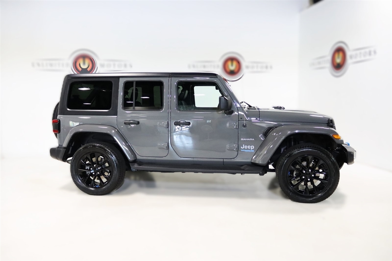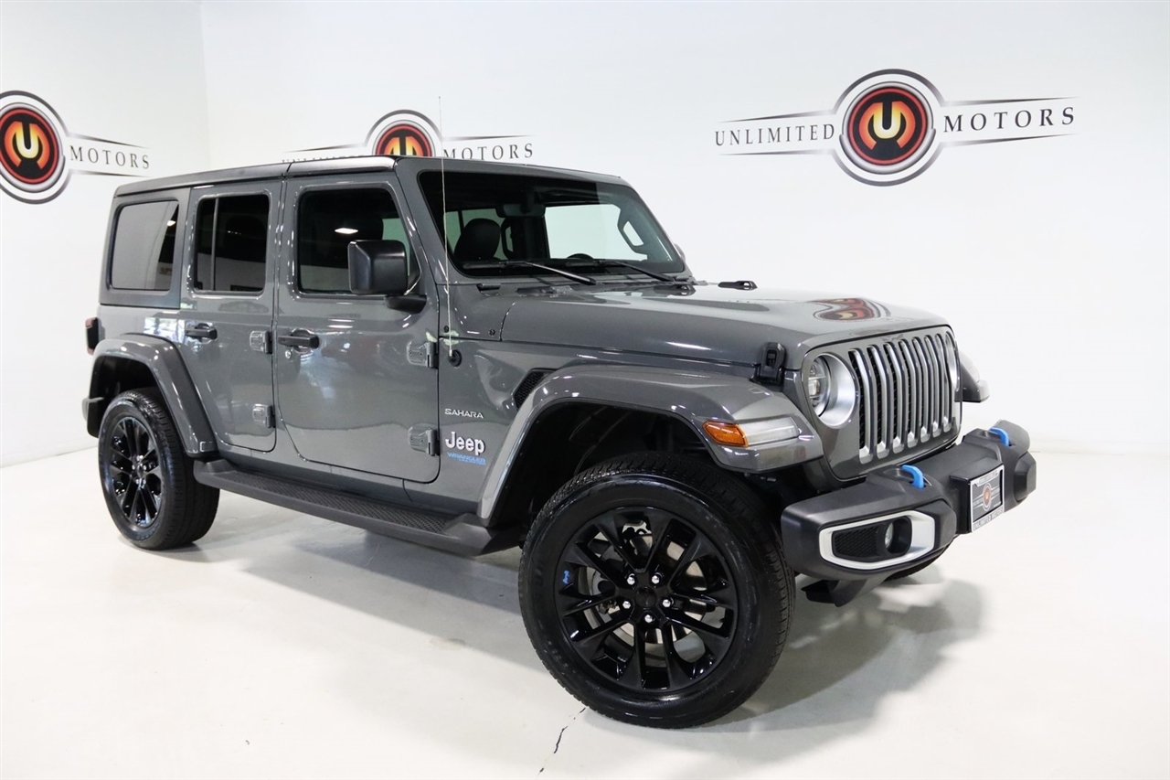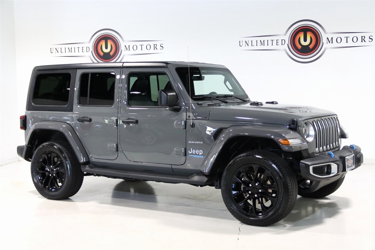 Navigation, Bluetooth, Back Up Camera, Hard Top, Heated Seats, 3.73 Rear Axle Ratio, 4-Wheel Disc Brakes, 9 Speakers, ABS brakes, Air Conditioning, Alloy wheels, AM/FM radio, Apple CarPlay/Android Auto, Auto-dimming Rear-View mirror, Automatic temperature control, Brake assist, Compass, Delay-off headlights, Driver door bin, Driver vanity mirror, Dual front impact airbags, Dual front side impact airbags, Electronic Stability Control, Emergency communication system: SiriusXM Guardian, Front anti-roll bar, Front Bucket Seats, Front Center Armrest w/Storage, Front dual zone A/C, Front fog lights, Front reading lights, Fully automatic headlights, Garage door transmitter, Heated door mirrors, Illuminated entry, Integrated roll-over protection, Leather Shift Knob, Leather steering wheel, Low tire pressure warning, Navigation System, Occupant sensing airbag, Outside temperature display, Panic alarm, ParkView Rear Back-Up Camera, Passenger door bin, Passenger vanity mirror, Power door mirrors, Power steering, Power windows, Premium McKinley Trimmed Seats, Radio data system, Radio: Uconnect 4C Nav w/8.4 Display, Rear anti-roll bar, Rear reading lights, Rear seat center armrest, Remote keyless entry, Security system, Speed control, Split folding rear seat, Sport Suspension, Steering wheel mounted audio controls, Tachometer, Telescoping steering wheel, Tilt steering wheel, Traction control, Trip computer, Variably intermittent wipers, Voltmeter, Wheels: 20 x 8 Fully Painted Aluminum. CARFAX One-Owner.2022 Sting-Gray Clearcoat Jeep 4D Sport Utility Wrangler Unlimited Sahara 4xe 4WD 8-Speed Automatic 2.0L I4 DOHCVisit our website www.iumotors.com to view 100s of newer vehicles, more pictures and info, or to apply for financing. Rates are incredibly low for approved credit. We offer extended warranties, protection packages, and insurance. We assure you the best experience at any of our 4 locations and unbeatable prices and quality. At Unlimited Motors we believe in MARKET VALUE PRICING. We use real-time Internet price comparisons to constantly adjust prices to provide ALL BUYERS The BEST PRICE possible. We do not mark them up, to mark them down! Our entire team is committed to helping you buy a car the way we would want to buy a car! We utilize state-of-the-art technology to constantly monitor pricing trends to offer our shoppers the best competitive pricing, value, and experience. We sell and service all makes and models of Pre-owned / Used Vehicles Used Cars, Used Trucks, Used Sport Utility, Lamborghini, Ferrari, Bentley, Rolls Royce, McLaren, Maserati, Ford, Chevrolet/Chevy, Honda, Toyota, Porsche, Land Rover, Jaguar, INFINITI, Audi, Nissan, Mazda, Hyundai, Chrysler, Jeep, Dodge, Ram, SRT, Mitsubishi, Lexus, Kia, Volkswagen, Mini, BMW, Mercedes, Fiat, Volvo, GMC, Cadillac, Lincoln as well as other brands. Proudly serving these areas of Indianapolis, Fishers, Carmel, Noblesville, Greenwood, Avon, Plainfield, Zionsville, & Brownsburg, Indiana, Midwest. We also serve the entire nation with our seamless and easy online purchasing process, and offer shipping nationwide.Advertised prices DO NOT include Sales Tax, Dealer Fees, Title Processing Charges, and Dealer Pre-installed Products.