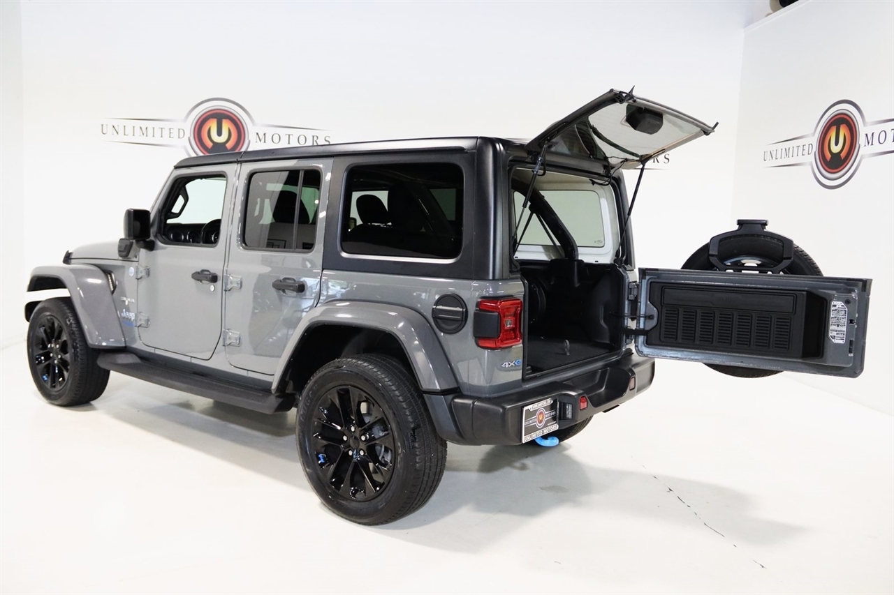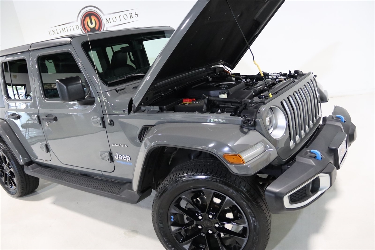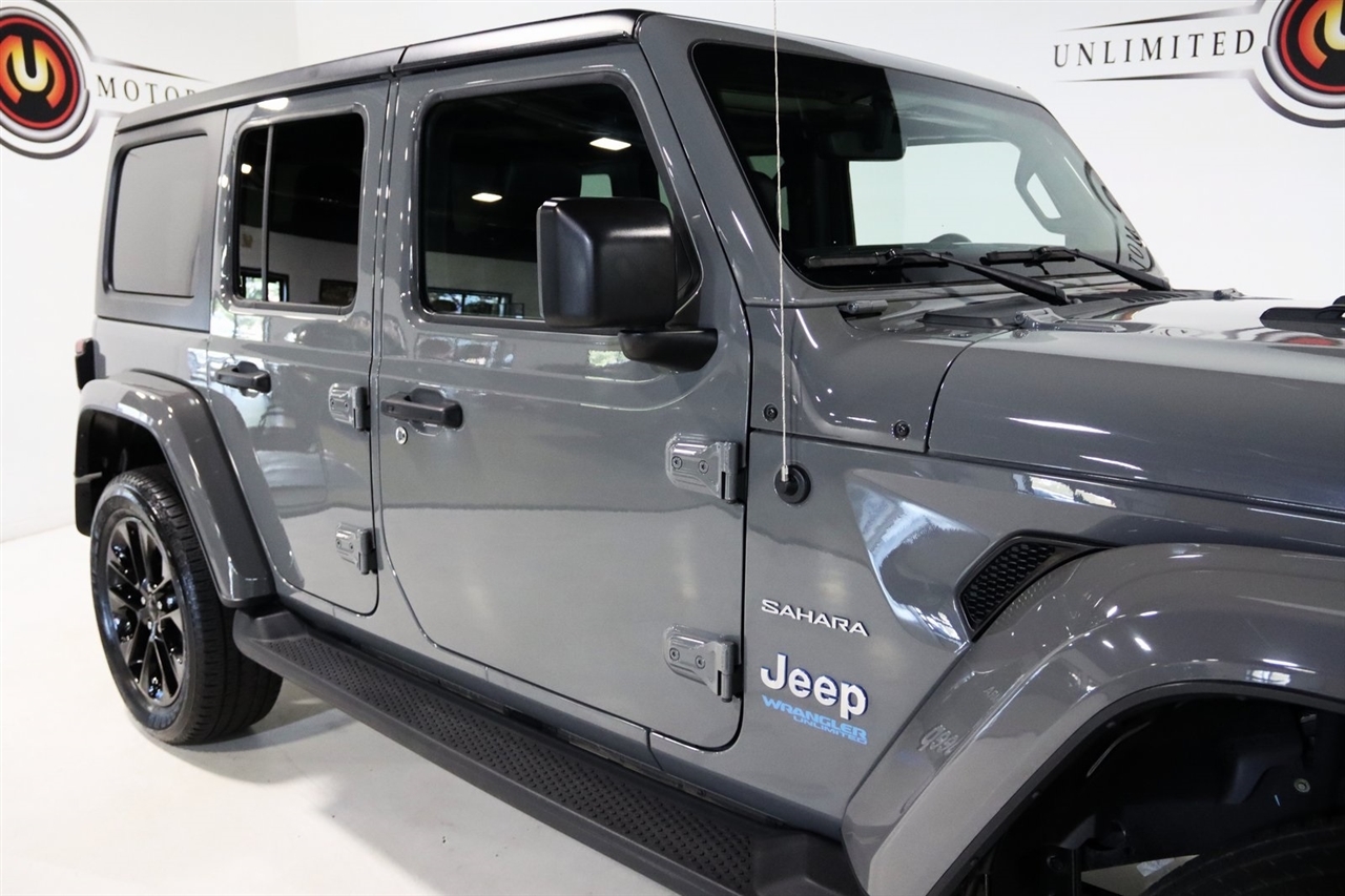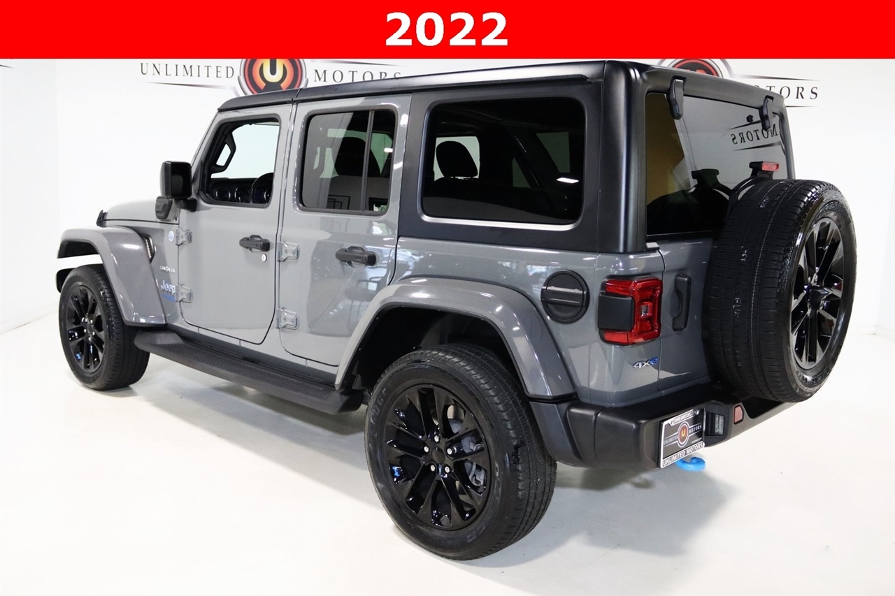 Navigation, Bluetooth, Back Up Camera, Hard Top, Heated Seats, 3.73 Rear Axle Ratio, 4-Wheel Disc Brakes, 9 Speakers, ABS brakes, Air Conditioning, Alloy wheels, AM/FM radio, Apple CarPlay/Android Auto, Auto-dimming Rear-View mirror, Automatic temperature control, Brake assist, Compass, Delay-off headlights, Driver door bin, Driver vanity mirror, Dual front impact airbags, Dual front side impact airbags, Electronic Stability Control, Emergency communication system: SiriusXM Guardian, Front anti-roll bar, Front Bucket Seats, Front Center Armrest w/Storage, Front dual zone A/C, Front fog lights, Front reading lights, Fully automatic headlights, Garage door transmitter, Heated door mirrors, Illuminated entry, Integrated roll-over protection, Leather Shift Knob, Leather steering wheel, Low tire pressure warning, Navigation System, Occupant sensing airbag, Outside temperature display, Panic alarm, ParkView Rear Back-Up Camera, Passenger door bin, Passenger vanity mirror, Power door mirrors, Power steering, Power windows, Premium McKinley Trimmed Seats, Radio data system, Radio: Uconnect 4C Nav w/8.4 Display, Rear anti-roll bar, Rear reading lights, Rear seat center armrest, Remote keyless entry, Security system, Speed control, Split folding rear seat, Sport Suspension, Steering wheel mounted audio controls, Tachometer, Telescoping steering wheel, Tilt steering wheel, Traction control, Trip computer, Variably intermittent wipers, Voltmeter, Wheels: 20 x 8 Fully Painted Aluminum. CARFAX One-Owner.2022 Sting-Gray Clearcoat Jeep 4D Sport Utility Wrangler Unlimited Sahara 4xe 4WD 8-Speed Automatic 2.0L I4 DOHCVisit our website www.iumotors.com to view 100s of newer vehicles, more pictures and info, or to apply for financing. Rates are incredibly low for approved credit. We offer extended warranties, protection packages, and insurance. We assure you the best experience at any of our 4 locations and unbeatable prices and quality. At Unlimited Motors we believe in MARKET VALUE PRICING. We use real-time Internet price comparisons to constantly adjust prices to provide ALL BUYERS The BEST PRICE possible. We do not mark them up, to mark them down! Our entire team is committed to helping you buy a car the way we would want to buy a car! We utilize state-of-the-art technology to constantly monitor pricing trends to offer our shoppers the best competitive pricing, value, and experience. We sell and service all makes and models of Pre-owned / Used Vehicles Used Cars, Used Trucks, Used Sport Utility, Lamborghini, Ferrari, Bentley, Rolls Royce, McLaren, Maserati, Ford, Chevrolet/Chevy, Honda, Toyota, Porsche, Land Rover, Jaguar, INFINITI, Audi, Nissan, Mazda, Hyundai, Chrysler, Jeep, Dodge, Ram, SRT, Mitsubishi, Lexus, Kia, Volkswagen, Mini, BMW, Mercedes, Fiat, Volvo, GMC, Cadillac, Lincoln as well as other brands. Proudly serving these areas of Indianapolis, Fishers, Carmel, Noblesville, Greenwood, Avon, Plainfield, Zionsville, & Brownsburg, Indiana, Midwest. We also serve the entire nation with our seamless and easy online purchasing process, and offer shipping nationwide.Advertised prices DO NOT include Sales Tax, Dealer Fees, Title Processing Charges, and Dealer Pre-installed Products.