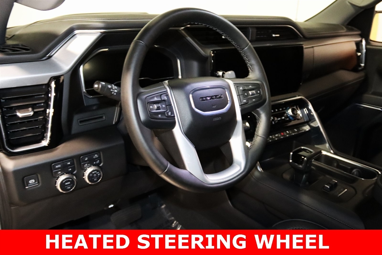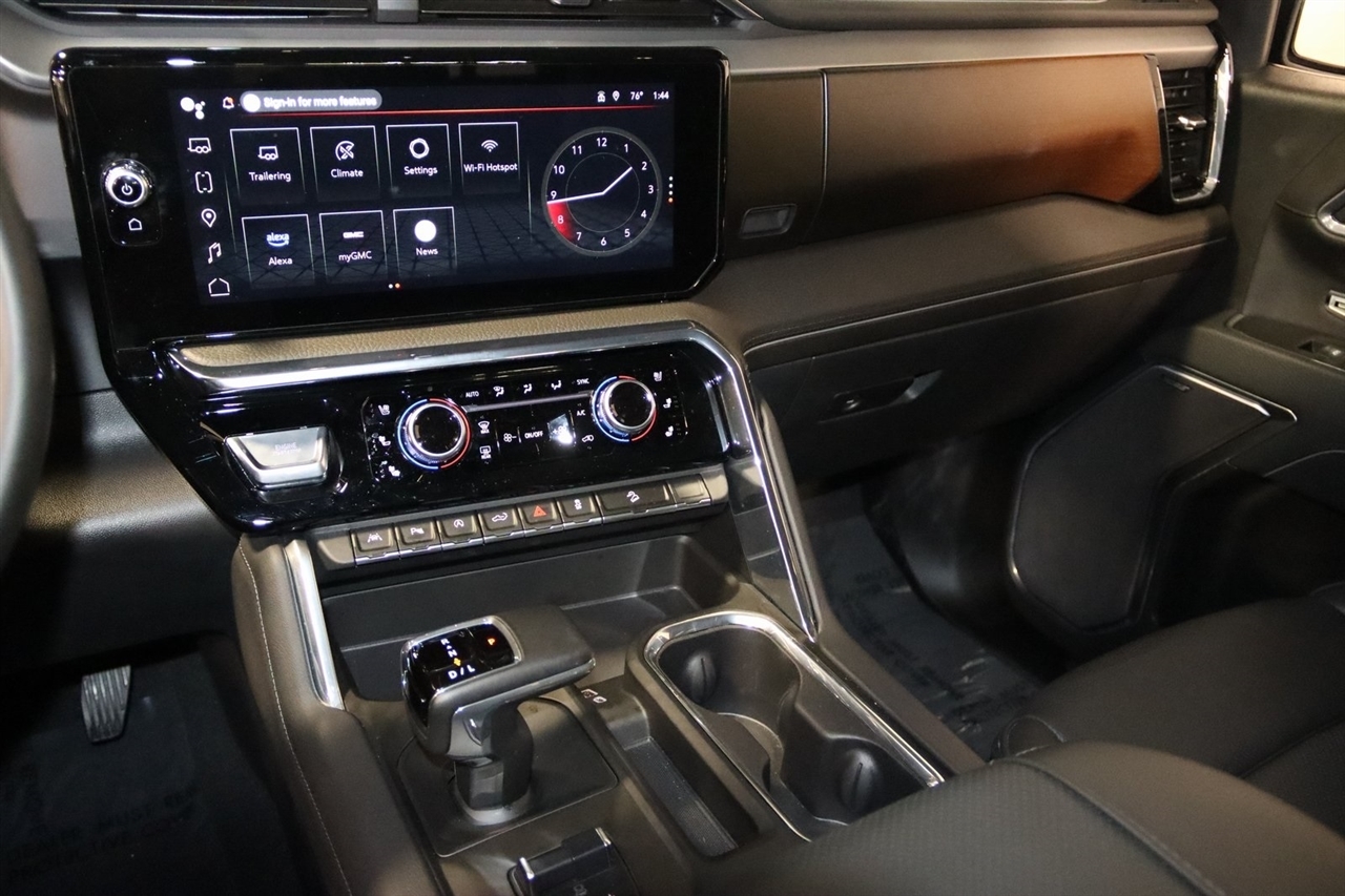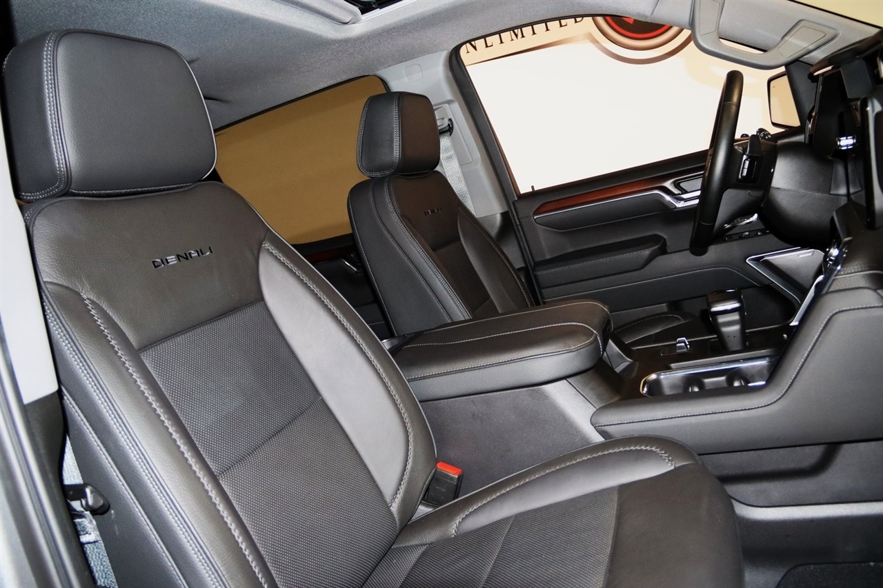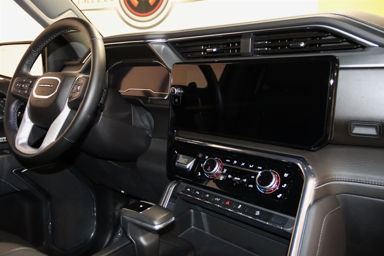 Navigation, Bluetooth, Back Up Camera, Sun/Moon Roof, Heated Seats, Touch Screen, 12-Way Power Driver Seat Adjuster w/Lumbar, 12-Way Power Passenger Seat Adjuster w/Lumbar, 120-Volt Bed Mounted Power Outlet, 120-Volt Interior Power Outlet, 170 Amp Alternator, 2 Charge/Data USB Ports Inside Center Console, 2 Type-C Charge-Only Rear USB Ports, 2 USB Ports, 220 Amp Alternator, 3.23 Rear Axle Ratio, 4-Wheel Disc Brakes, 7 Speakers, ABS brakes, Adaptive suspension, Air Conditioning, Alloy wheels, AM/FM radio: SiriusXM with 360L, Apple CarPlay/Android Auto, Auto High-beam Headlights, Auto-dimming door mirrors, Auto-dimming Rear-View mirror, Auto-Locking Rear Differential, Automatic temperature control, Auxiliary External Transmission Oil Cooler, Bed View Camera, Brake assist, Buckle to Drive, Bumpers: body-color, Chrome Header w/Signature Denali Chrome Grille, Chrome Recovery Hooks, Chrome Wheel To Wheel Assist Steps, Color-Keyed Carpeting Floor Covering, Compass, Deep-Tinted Glass, Delay-off headlights, Denali Premium Suspension w/Adaptive Ride Control, Driver door bin, Driver Memory, Driver vanity mirror, Dual front impact airbags, Dual front side impact airbags, Electric Rear-Window Defogger, Electronic Stability Control, Emergency communication system: OnStar, Engine Block Heater, Enhanced Automatic Emergency Braking, Floor-Mounted Center Console, Following Distance Indicator, Forge Perforated Leather Seat Trim, Forward Collision Alert, Front anti-roll bar, Front Bucket Seats, Front Center Armrest, Front dual zone A/C, Front fog lights, Front Pedestrian Braking, Front Rain-Sensing Wipers, Front reading lights, Front wheel independent suspension, Fully automatic headlights, Garage door transmitter, Genuine wood console insert, Genuine wood dashboard insert, Genuine wood door panel insert, HD Surround Vision, Heated 2nd Row Outboard Seats, Heated door mirrors, Heated Driver & Front Outboard Passenger Seating, Heated front seats, Heated rear seats, Heated steering wheel, Heavy-Duty Air Filter, Hill Descent Control, Hitch Guidance, Hitch View, Illuminated entry, In-Vehicle Trailering System App, Integrated Trailer Brake Controller, IntelliBeam Automatic High Beam On/Off, Keyless Open & Start, Lane Keep Assist w/Lane Departure Warning, LED Cargo Area Lighting, Low tire pressure warning, Memory seat, Navigation System, Occupant sensing airbag, OnStar Services Capable, Outside temperature display, Overhead airbag, Overhead console, Panic alarm, Passenger door bin, Passenger vanity mirror, Perimeter Lighting, Power Door Locks, Power door mirrors, Power driver seat, Power Front Passenger Windows w/Express Up/Down, Power Front Windows w/Driver Express Up/Down, Power passenger seat, Power Rake & Telescoping Steering Column, Power Rear Windows w/Express Down, Power Sliding Rear Window w/Rear Defogger, Power steering, Power Sunroof, Power windows, Preferred Equipment Group 5SA, Premium Bose 7-Speaker Sound System, Push Button Start, Radio data system, Radio: Premium GMC Infotainment Audio System, Rain sensing wipers, Rear Cross Traffic Braking, Rear Pedestrian Detection, Rear reading lights, Rear seat center armrest, Rear step bumper, Rear Wheelhouse Liners, Rear window defroster, Remote keyless entry, Remote Vehicle Starter System, Safety Alert Seat, Security system, SiriusXM w/360L Trial Subscription, Speed control, Speed-sensing steering, Split folding rear seat, Spray-On Pickup Bedliner w/GMC Logo, Steering Wheel Audio Controls, Steering wheel mounted audio controls, Tachometer, Telescoping steering wheel, Theft Deterrent System (Unauthorized Entry), Tilt steering wheel, Traction control, Trailer Camera Provisions, Trailer Side Blind Zone Alert, Trailering Package, Trip computer, Ultrasonic Front & Rear Park Assist, Universal Home Remote, Variably intermittent wipers, Ventilated Driver & Front Passenger Seats, Ventilated front seats, Voltmeter, Wheels: 20 x 9 Multi-Dimensional Polished Alum, Wi-Fi Hotspot Capable, Wireless Apple CarPla