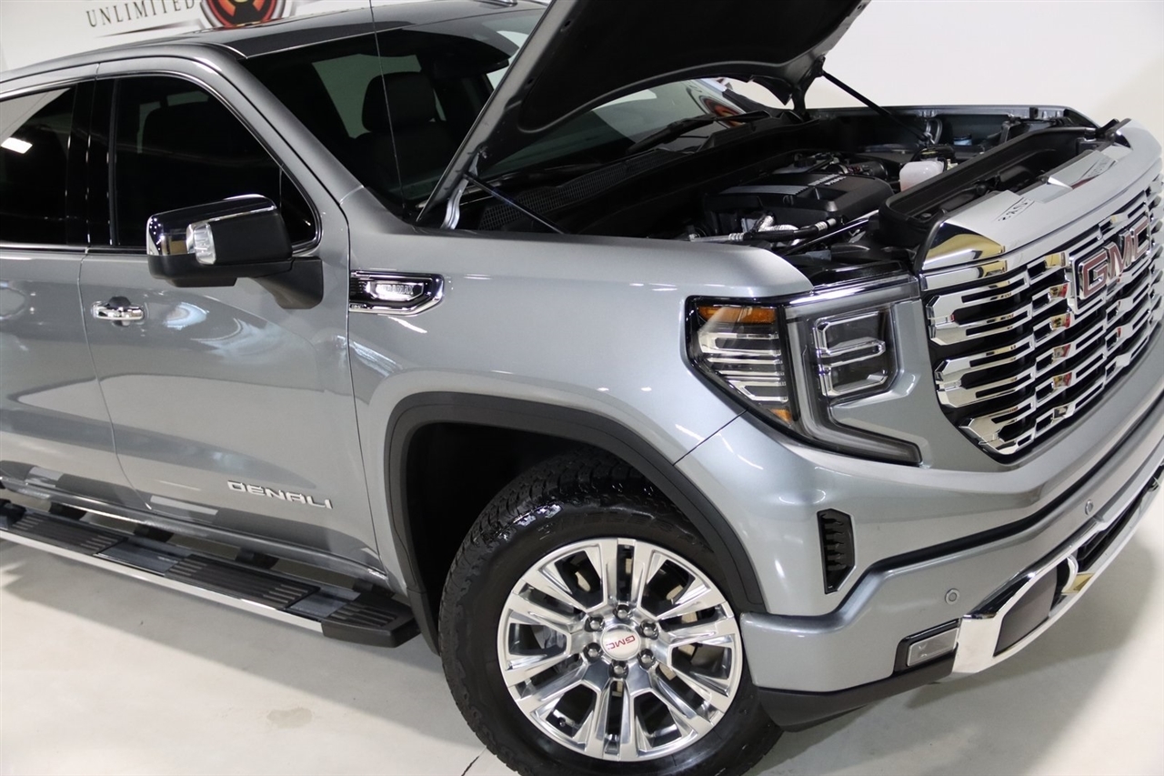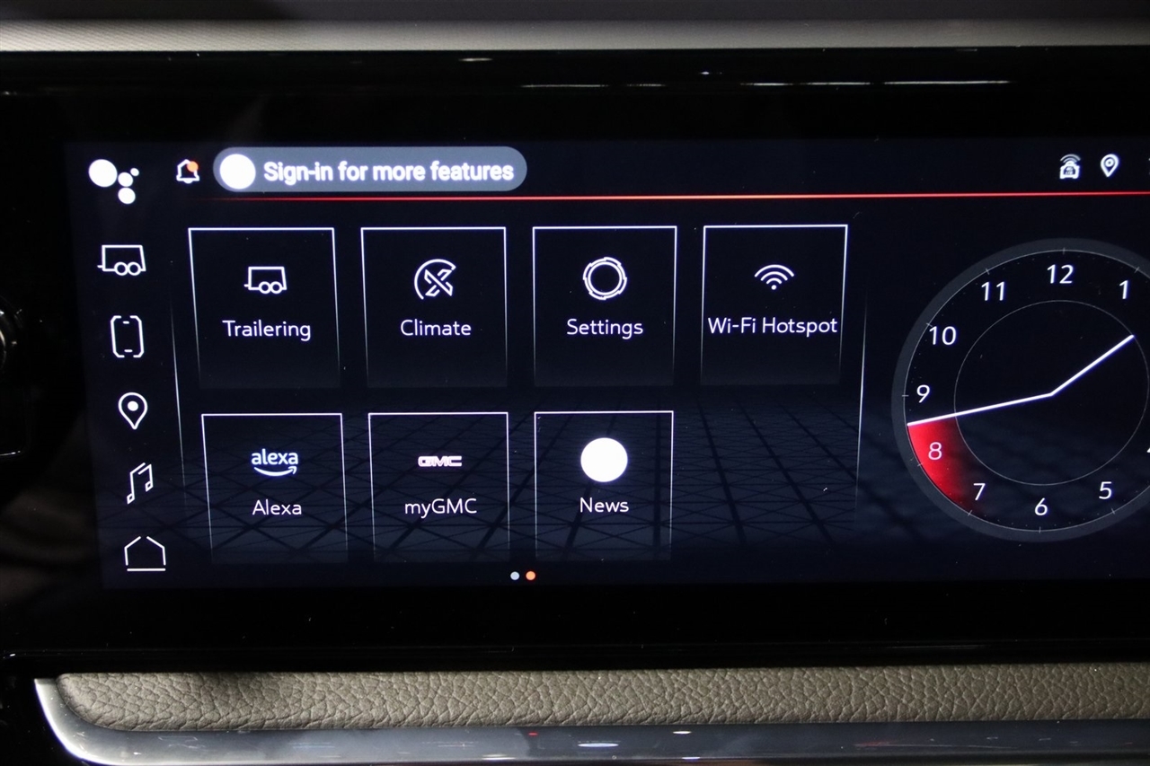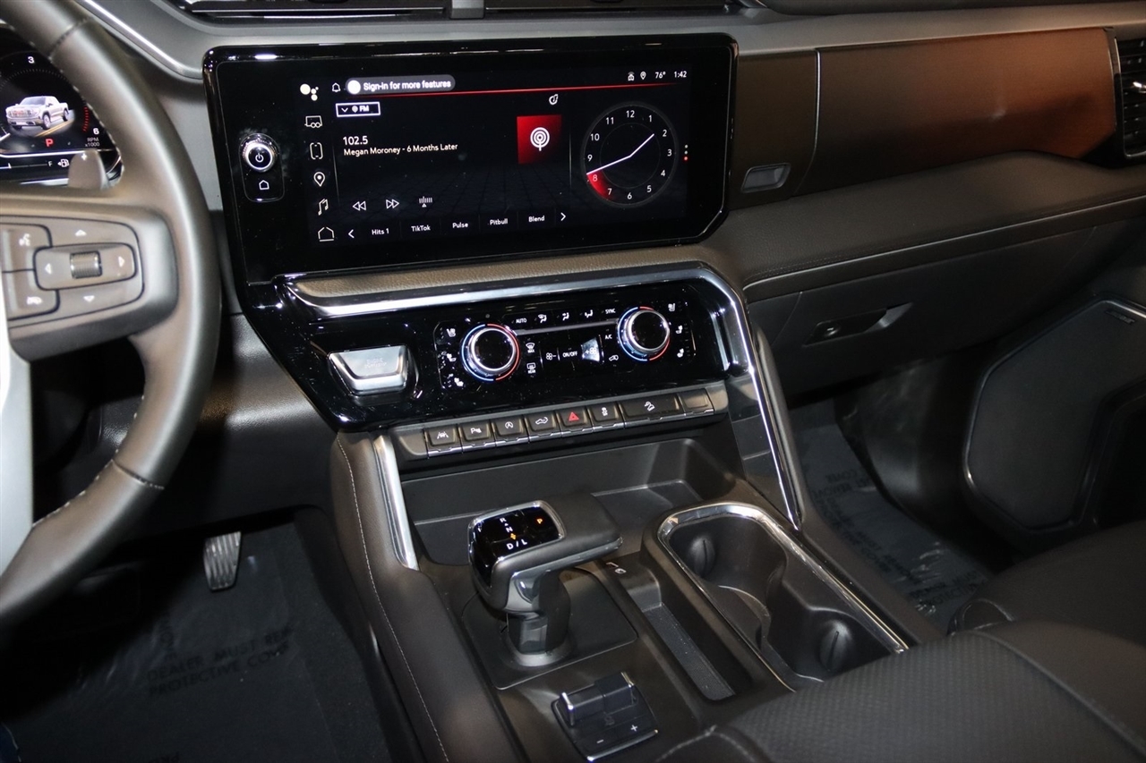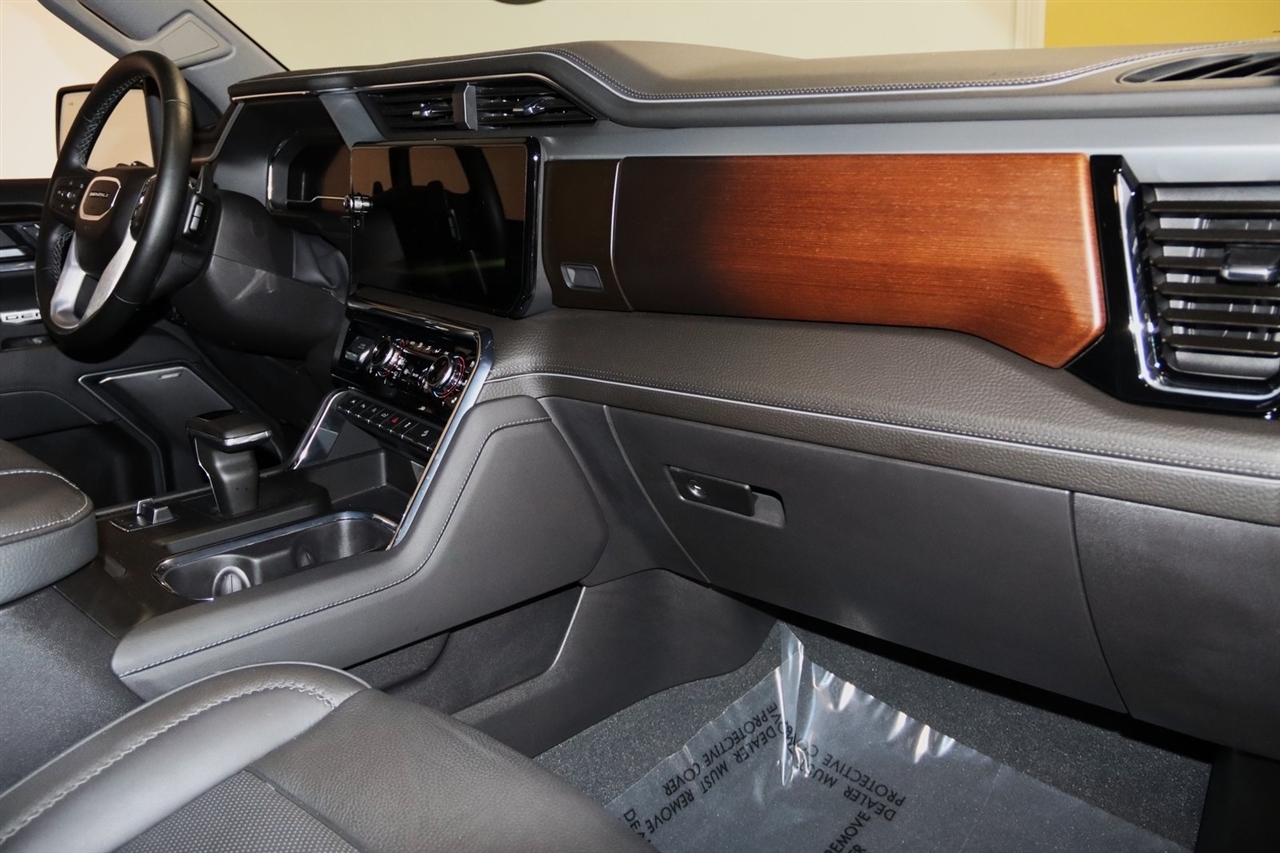 Navigation, Bluetooth, Back Up Camera, Sun/Moon Roof, Heated Seats, Touch Screen, 12-Way Power Driver Seat Adjuster w/Lumbar, 12-Way Power Passenger Seat Adjuster w/Lumbar, 120-Volt Bed Mounted Power Outlet, 120-Volt Interior Power Outlet, 170 Amp Alternator, 2 Charge/Data USB Ports Inside Center Console, 2 Type-C Charge-Only Rear USB Ports, 2 USB Ports, 220 Amp Alternator, 3.23 Rear Axle Ratio, 4-Wheel Disc Brakes, 7 Speakers, ABS brakes, Adaptive suspension, Air Conditioning, Alloy wheels, AM/FM radio: SiriusXM with 360L, Apple CarPlay/Android Auto, Auto High-beam Headlights, Auto-dimming door mirrors, Auto-dimming Rear-View mirror, Auto-Locking Rear Differential, Automatic temperature control, Auxiliary External Transmission Oil Cooler, Bed View Camera, Brake assist, Buckle to Drive, Bumpers: body-color, Chrome Header w/Signature Denali Chrome Grille, Chrome Recovery Hooks, Chrome Wheel To Wheel Assist Steps, Color-Keyed Carpeting Floor Covering, Compass, Deep-Tinted Glass, Delay-off headlights, Denali Premium Suspension w/Adaptive Ride Control, Driver door bin, Driver Memory, Driver vanity mirror, Dual front impact airbags, Dual front side impact airbags, Electric Rear-Window Defogger, Electronic Stability Control, Emergency communication system: OnStar, Engine Block Heater, Enhanced Automatic Emergency Braking, Floor-Mounted Center Console, Following Distance Indicator, Forge Perforated Leather Seat Trim, Forward Collision Alert, Front anti-roll bar, Front Bucket Seats, Front Center Armrest, Front dual zone A/C, Front fog lights, Front Pedestrian Braking, Front Rain-Sensing Wipers, Front reading lights, Front wheel independent suspension, Fully automatic headlights, Garage door transmitter, Genuine wood console insert, Genuine wood dashboard insert, Genuine wood door panel insert, HD Surround Vision, Heated 2nd Row Outboard Seats, Heated door mirrors, Heated Driver & Front Outboard Passenger Seating, Heated front seats, Heated rear seats, Heated steering wheel, Heavy-Duty Air Filter, Hill Descent Control, Hitch Guidance, Hitch View, Illuminated entry, In-Vehicle Trailering System App, Integrated Trailer Brake Controller, IntelliBeam Automatic High Beam On/Off, Keyless Open & Start, Lane Keep Assist w/Lane Departure Warning, LED Cargo Area Lighting, Low tire pressure warning, Memory seat, Navigation System, Occupant sensing airbag, OnStar Services Capable, Outside temperature display, Overhead airbag, Overhead console, Panic alarm, Passenger door bin, Passenger vanity mirror, Perimeter Lighting, Power Door Locks, Power door mirrors, Power driver seat, Power Front Passenger Windows w/Express Up/Down, Power Front Windows w/Driver Express Up/Down, Power passenger seat, Power Rake & Telescoping Steering Column, Power Rear Windows w/Express Down, Power Sliding Rear Window w/Rear Defogger, Power steering, Power Sunroof, Power windows, Preferred Equipment Group 5SA, Premium Bose 7-Speaker Sound System, Push Button Start, Radio data system, Radio: Premium GMC Infotainment Audio System, Rain sensing wipers, Rear Cross Traffic Braking, Rear Pedestrian Detection, Rear reading lights, Rear seat center armrest, Rear step bumper, Rear Wheelhouse Liners, Rear window defroster, Remote keyless entry, Remote Vehicle Starter System, Safety Alert Seat, Security system, SiriusXM w/360L Trial Subscription, Speed control, Speed-sensing steering, Split folding rear seat, Spray-On Pickup Bedliner w/GMC Logo, Steering Wheel Audio Controls, Steering wheel mounted audio controls, Tachometer, Telescoping steering wheel, Theft Deterrent System (Unauthorized Entry), Tilt steering wheel, Traction control, Trailer Camera Provisions, Trailer Side Blind Zone Alert, Trailering Package, Trip computer, Ultrasonic Front & Rear Park Assist, Universal Home Remote, Variably intermittent wipers, Ventilated Driver & Front Passenger Seats, Ventilated front seats, Voltmeter, Wheels: 20 x 9 Multi-Dimensional Polished Alum, Wi-Fi Hotspot Capable, Wireless Apple CarPla