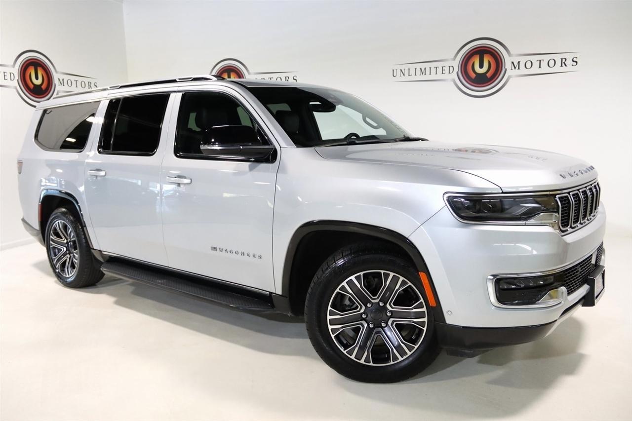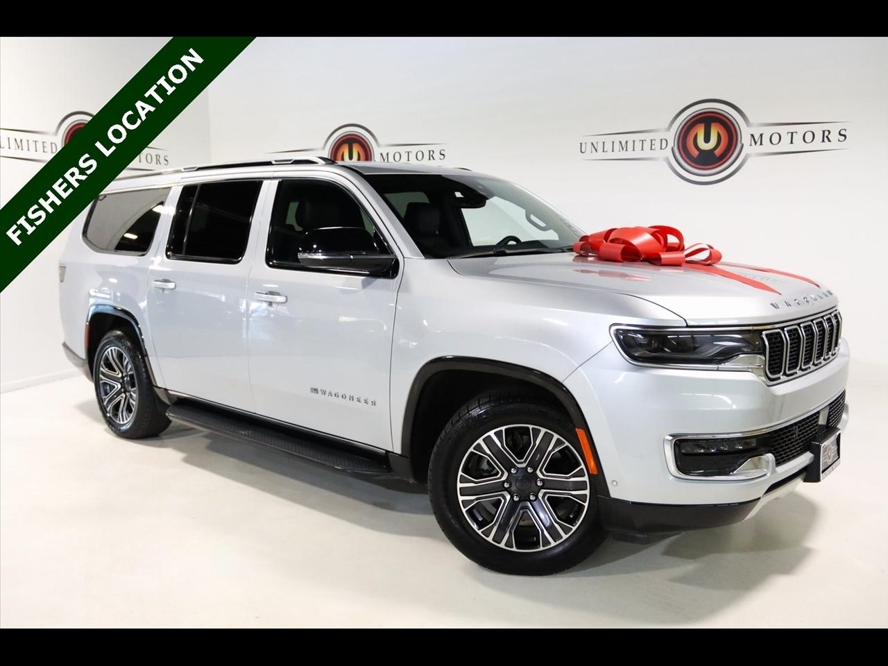 Navigation, Bluetooth, Back Up Camera, 3rd Row, Towing, Heated Seats, Touch Screen, 10 Speakers, 3.55 Rear Axle Ratio, 3rd row seats: bench, 4-Wheel Disc Brakes, ABS brakes, Adjustable pedals, Air Conditioning, Alloy wheels, AM/FM radio: SiriusXM with 360L, Anti-whiplash front head restraints, Apple CarPlay/Android Auto, Audio memory, Auto-dimming door mirrors, Auto-dimming Rear-View mirror, Auto-leveling suspension, Automatic temperature control, Brake assist, Bumpers: body-color, Compass, Delay-off headlights, Driver door bin, Driver vanity mirror, Driver's Seat Mounted Armrest, Dual front impact airbags, Dual front side impact airbags, Electronic Stability Control, Emergency communication system: Wagoneer Connect, Exterior Parking Camera Rear, Four wheel independent suspension, Front anti-roll bar, Front Bucket Seats, Front Center Armrest w/Storage, Front dual zone A/C, Front fog lights, Front reading lights, Full Length Floor Console, Fully automatic headlights, Garage door transmitter, Genuine wood console insert, Genuine wood dashboard insert, Genuine wood door panel insert, Heated door mirrors, Heated front seats, Heated steering wheel, Illuminated entry, Knee airbag, Leather Trimmed Bucket Seats, Low tire pressure warning, Memory seat, Navigation System, Normal Duty Suspension, Occupant sensing airbag, Outside temperature display, Overhead airbag, Overhead console, Panic alarm, Passenger door bin, Passenger seat mounted armrest, Passenger vanity mirror, Pedal memory, Power adjustable front head restraints, Power door mirrors, Power driver seat, Power Liftgate, Power passenger seat, Power steering, Power windows, Quick Order Package 25J, Radio data system, Radio: Uconnect 5 Nav w/10.1 Display, Rain sensing wipers, Rear air conditioning, Rear anti-roll bar, Rear reading lights, Rear seat center armrest, Rear window defroster, Rear window wiper, Reclining 3rd row seat, Remote keyless entry, Security system, Speed control, Speed-sensing steering, Speed-Sensitive Wipers, Split folding rear seat, Steering wheel memory, Steering wheel mounted audio controls, Tachometer, Telescoping steering wheel, Tilt steering wheel, Traction control, Trip computer, Turn signal indicator mirrors, Variably intermittent wipers, Ventilated front seats, Voltmeter, Wheels: 20 x 9.0 Aluminum Painted Gloss Black. CARFAX One-Owner.2024 Silver Zynith Jeep 4D Sport Utility Wagoneer L Series II 4WD 8-Speed Automatic 3.0L I6Visit our website www.iumotors.com to view 100s of newer vehicles, more pictures and info, or to apply for financing. Rates are incredibly low for approved credit. We offer extended warranties, protection packages, and insurance. We assure you the best experience at any of our 4 locations and unbeatable prices and quality. At Unlimited Motors we believe in MARKET VALUE PRICING. We use real-time Internet price comparisons to constantly adjust prices to provide ALL BUYERS The BEST PRICE possible. We do not mark them up, to mark them down! Our entire team is committed to helping you buy a car the way we would want to buy a car! We utilize state-of-the-art technology to constantly monitor pricing trends to offer our shoppers the best competitive pricing, value, and experience. We sell and service all makes and models of Pre-owned / Used Vehicles Used Cars, Used Trucks, Used Sport Utility, Lamborghini, Ferrari, Bentley, Rolls Royce, McLaren, Maserati, Ford, Chevrolet/Chevy, Honda, Toyota, Porsche, Land Rover, Jaguar, INFINITI, Audi, Nissan, Mazda, Hyundai, Chrysler, Jeep, Dodge, Ram, SRT, Mitsubishi, Lexus, Kia, Volkswagen, Mini, BMW, Mercedes, Fiat, Volvo, GMC, Cadillac, Lincoln as well as other brands. Proudly serving these areas of Indianapolis, Fishers, Carmel, Noblesville, Greenwood, Avon, Plainfield, Zionsville, & Brownsburg, Indiana, Midwest. We also serve the entire nation with our seamless and easy online purchasing process, and offer shipping nationwide.Advertised prices DO NOT include Sales