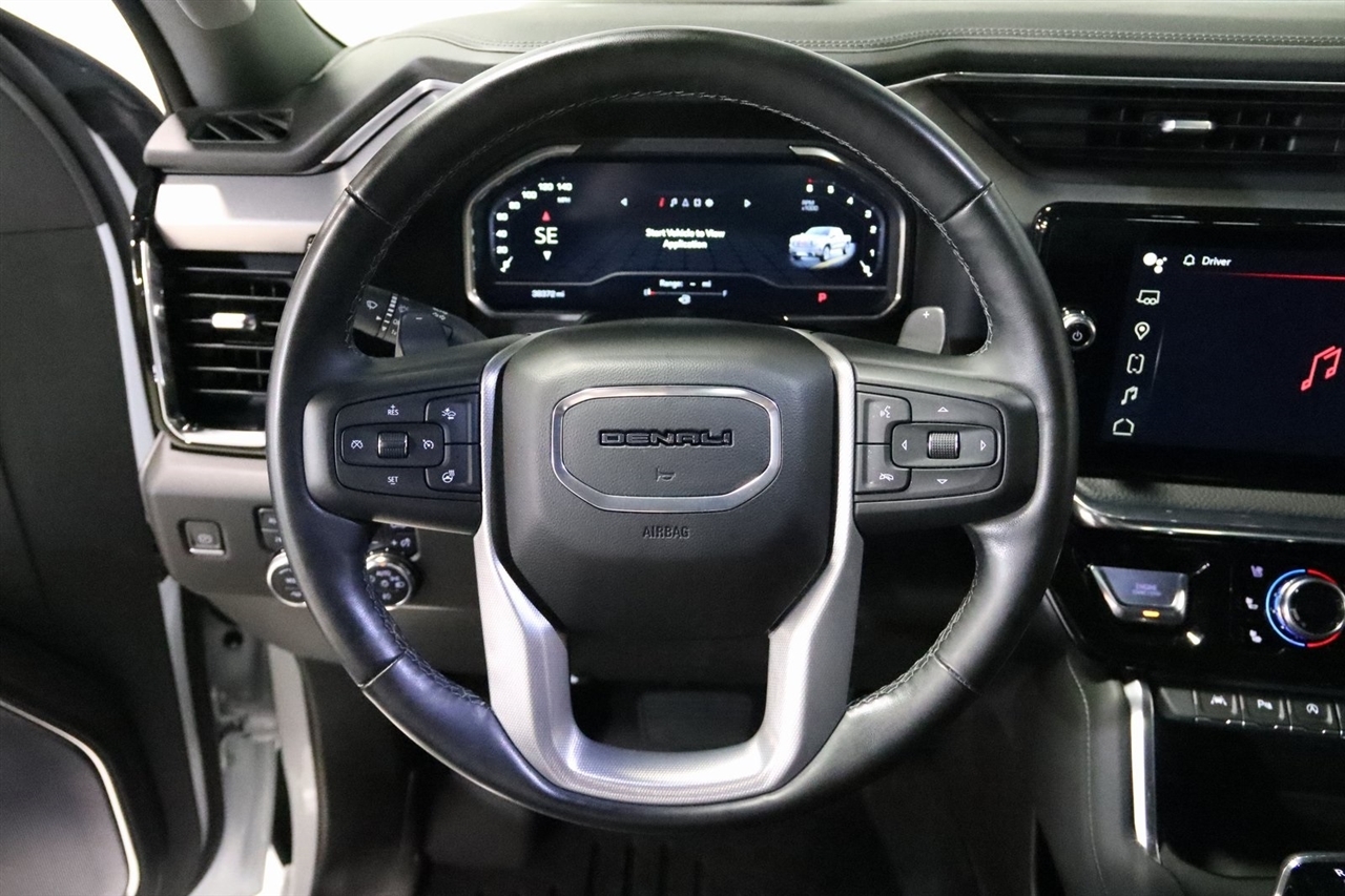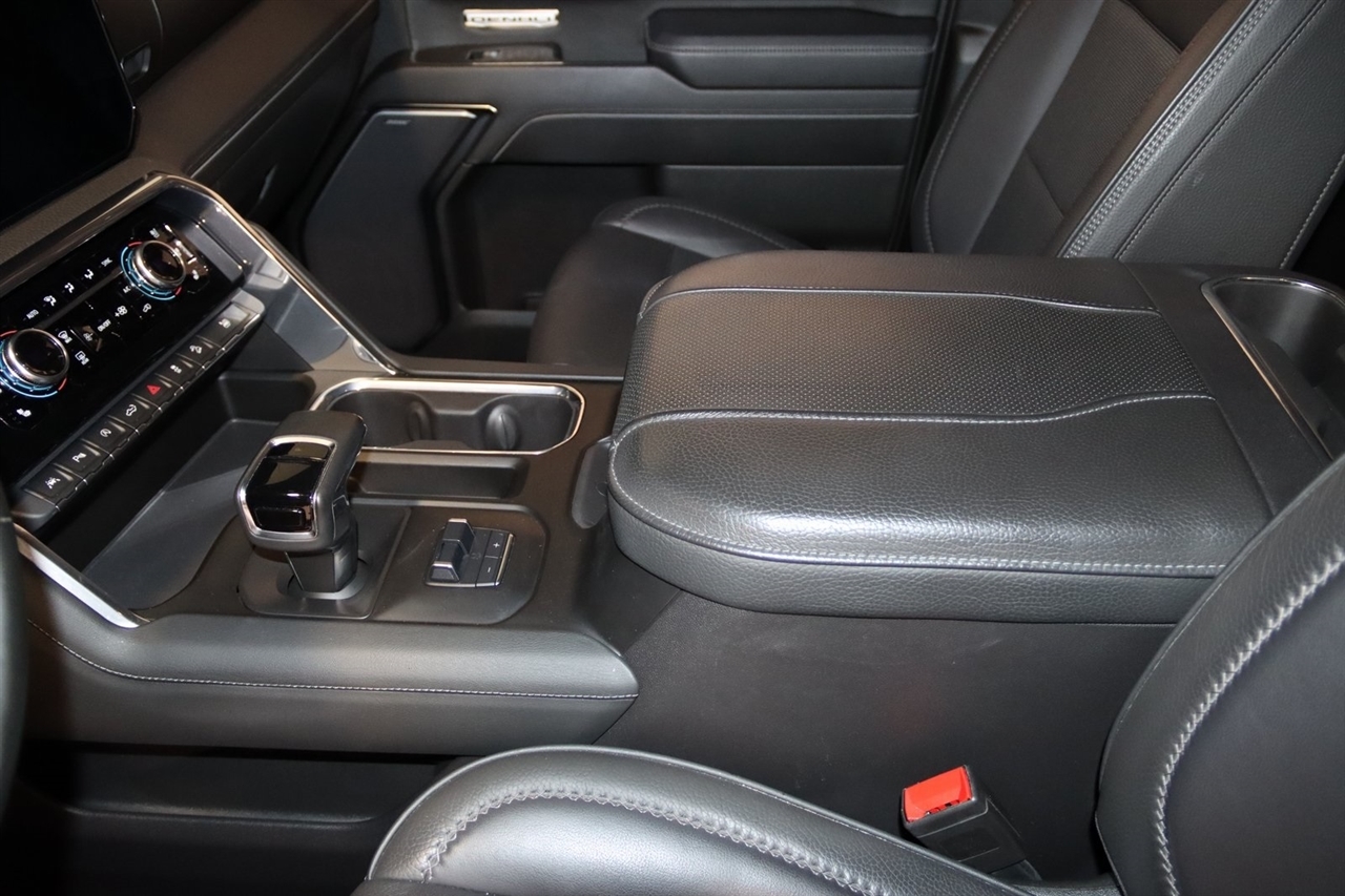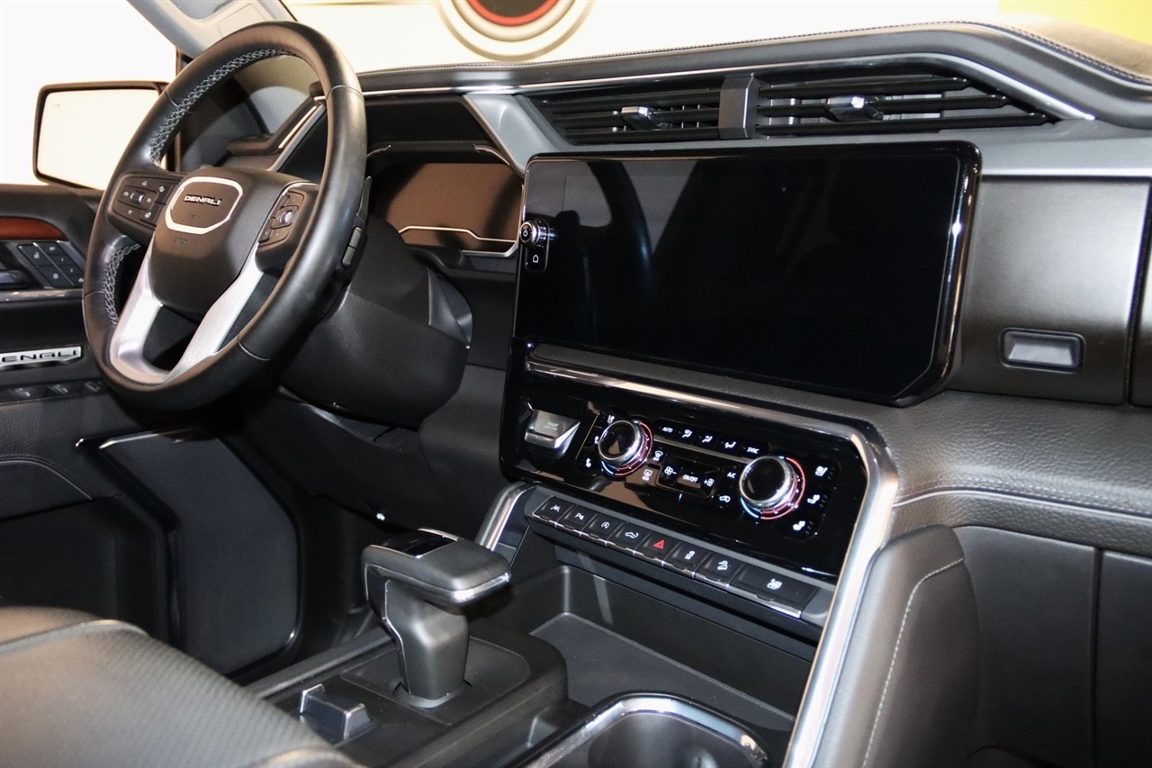 Navigation, Bluetooth, Back Up Camera, Touch Screen, 10-Way Power Driver Seat Adjuster w/Lumbar, 10-Way Power Passenger Seat Adjuster w/Lumbar, 120-Volt Bed Mounted Power Outlet, 120-Volt Instrument Panel Power Outlet, 170 Amp Alternator, 2 Charge/Data USB Ports Inside Center Console, 2 Type-C Charge-Only Rear USB Ports, 2 USB Ports, 3.23 Rear Axle Ratio, 4-Wheel Disc Brakes, 7 Speakers, ABS brakes, Adaptive Cruise Control, Adaptive suspension, Air Conditioning, Alloy wheels, AM/FM radio, Apple CarPlay/Android Auto, Auto High-beam Headlights, Auto-dimming door mirrors, Auto-dimming Rear-View mirror, Auto-Locking Rear Differential, Automatic Emergency Braking, Automatic temperature control, Auxiliary External Transmission Oil Cooler, Bed View Camera, Brake assist, Buckle to Drive, Bumpers: body-color, Chrome Header w/Signature Denali Chrome Grille, Chrome Recovery Hooks, Chrome Wheel To Wheel Assist Steps, Color-Keyed Carpeting Floor Covering, Compass, Deep-Tinted Glass, Delay-off headlights, Denali Premium Suspension w/Adaptive Ride Control, Driver door bin, Driver Memory, Driver vanity mirror, Dual front impact airbags, Dual front side impact airbags, Electric Rear-Window Defogger, Electrical Steering Column Lock, Electronic Stability Control, Emergency communication system: OnStar and GMC connected services capable, Floor-Mounted Center Console, Following Distance Indicator, Forge Perforated Leather Seat Trim, Forward Collision Alert, Front anti-roll bar, Front Bucket Seats, Front Center Armrest, Front dual zone A/C, Front fog lights, Front Pedestrian Braking, Front Rainsensing Wipers, Front reading lights, Front wheel independent suspension, Fully automatic headlights, Garage door transmitter, Genuine wood console insert, Genuine wood dashboard insert, Genuine wood door panel insert, GMC Connected Access Capable, GMC MultiPro Power Steps, HD Surround Vision, Heated 2nd Row Outboard Seats, Heated door mirrors, Heated Driver & Front Outboard Passenger Seating, Heated front seats, Heated rear seats, Heated steering wheel, Heavy-Duty Air Filter, Hill Descent Control, Hitch Guidance, Hitch Guidance w/Hitch View, Illuminated entry, In-Vehicle Trailering App, Integrated Trailer Brake Controller, IntelliBeam Automatic High Beam On/Off, Keyless Open & Start, Lane Keep Assist w/Lane Departure Warning, LED Cargo Area Lighting, Low tire pressure warning, Memory seat, Multicolor 15 Diagonal Head-Up Display, Navigation System, Not Equipped w/Steering Column Lock, Occupant sensing airbag, OnStar & GMC Connected Services Capable, Outside temperature display, Overhead airbag, Overhead console, Panic alarm, Passenger door bin, Passenger vanity mirror, Perimeter Lighting, Power Door Locks, Power door mirrors, Power driver seat, Power Front Passenger Windows w/Express Up/Down, Power Front Windows w/Driver Express Up/Down, Power passenger seat, Power Rake & Telescoping Steering Column, Power Rear Windows w/Express Down, Power Sliding Rear Window w/Rear Defogger, Power steering, Power Sunroof, Power windows, Preferred Equipment Group 5SA, Premium audio system: GMC Infotainment System, Premium Bose 7-Speaker Sound System, Push Button Start, Radio data system, Radio: Premium GMC Infotainment Audio System, Rain sensing wipers, Rear Camera Mirror, Rear Cross Traffic Braking, Rear Pedestrian Detection, Rear reading lights, Rear seat center armrest, Rear step bumper, Rear Wheelhouse Liners, Rear window defroster, Remote keyless entry, Remote Vehicle Starter System, Safety Alert Seat, Security system, SiriusXM w/360L, Speed control, Speed-sensing steering, Split folding rear seat, Spray-On Pickup Bed Liner w/Denali Logo, Steering Wheel Audio Controls, Steering wheel mounted audio controls, Tachometer, Technology Package, Telescoping steering wheel, Theft Deterrent System (Unauthorized Entry), Tilt steering wheel, Traction control, Trailer Camera Provisions, Trailer Side Blind Zone Alert, Trailering Package, Trip computer, Ultrasonic Front & Rear Park