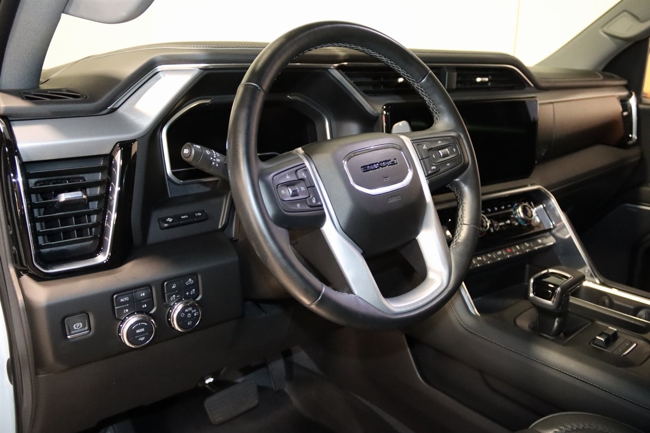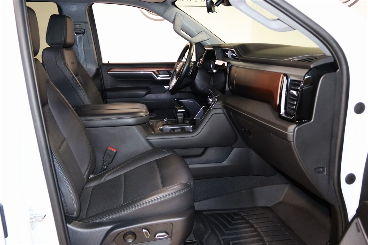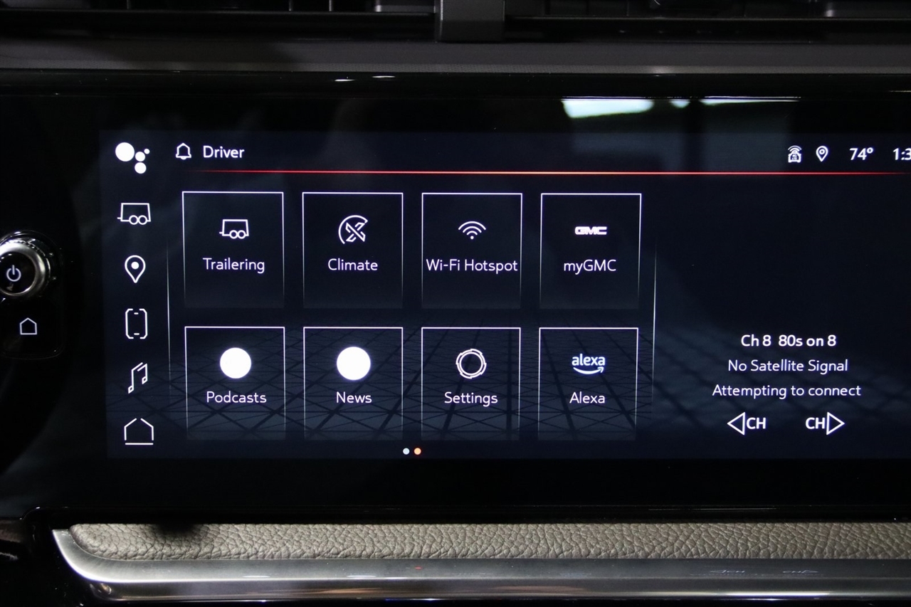 Navigation, Bluetooth, Back Up Camera, Touch Screen, 10-Way Power Driver Seat Adjuster w/Lumbar, 10-Way Power Passenger Seat Adjuster w/Lumbar, 120-Volt Bed Mounted Power Outlet, 120-Volt Instrument Panel Power Outlet, 170 Amp Alternator, 2 Charge/Data USB Ports Inside Center Console, 2 Type-C Charge-Only Rear USB Ports, 2 USB Ports, 3.23 Rear Axle Ratio, 4-Wheel Disc Brakes, 7 Speakers, ABS brakes, Adaptive Cruise Control, Adaptive suspension, Air Conditioning, Alloy wheels, AM/FM radio, Apple CarPlay/Android Auto, Auto High-beam Headlights, Auto-dimming door mirrors, Auto-dimming Rear-View mirror, Auto-Locking Rear Differential, Automatic Emergency Braking, Automatic temperature control, Auxiliary External Transmission Oil Cooler, Bed View Camera, Brake assist, Buckle to Drive, Bumpers: body-color, Chrome Header w/Signature Denali Chrome Grille, Chrome Recovery Hooks, Chrome Wheel To Wheel Assist Steps, Color-Keyed Carpeting Floor Covering, Compass, Deep-Tinted Glass, Delay-off headlights, Denali Premium Suspension w/Adaptive Ride Control, Driver door bin, Driver Memory, Driver vanity mirror, Dual front impact airbags, Dual front side impact airbags, Electric Rear-Window Defogger, Electrical Steering Column Lock, Electronic Stability Control, Emergency communication system: OnStar and GMC connected services capable, Floor-Mounted Center Console, Following Distance Indicator, Forge Perforated Leather Seat Trim, Forward Collision Alert, Front anti-roll bar, Front Bucket Seats, Front Center Armrest, Front dual zone A/C, Front fog lights, Front Pedestrian Braking, Front Rainsensing Wipers, Front reading lights, Front wheel independent suspension, Fully automatic headlights, Garage door transmitter, Genuine wood console insert, Genuine wood dashboard insert, Genuine wood door panel insert, GMC Connected Access Capable, GMC MultiPro Power Steps, HD Surround Vision, Heated 2nd Row Outboard Seats, Heated door mirrors, Heated Driver & Front Outboard Passenger Seating, Heated front seats, Heated rear seats, Heated steering wheel, Heavy-Duty Air Filter, Hill Descent Control, Hitch Guidance, Hitch Guidance w/Hitch View, Illuminated entry, In-Vehicle Trailering App, Integrated Trailer Brake Controller, IntelliBeam Automatic High Beam On/Off, Keyless Open & Start, Lane Keep Assist w/Lane Departure Warning, LED Cargo Area Lighting, Low tire pressure warning, Memory seat, Multicolor 15 Diagonal Head-Up Display, Navigation System, Not Equipped w/Steering Column Lock, Occupant sensing airbag, OnStar & GMC Connected Services Capable, Outside temperature display, Overhead airbag, Overhead console, Panic alarm, Passenger door bin, Passenger vanity mirror, Perimeter Lighting, Power Door Locks, Power door mirrors, Power driver seat, Power Front Passenger Windows w/Express Up/Down, Power Front Windows w/Driver Express Up/Down, Power passenger seat, Power Rake & Telescoping Steering Column, Power Rear Windows w/Express Down, Power Sliding Rear Window w/Rear Defogger, Power steering, Power Sunroof, Power windows, Preferred Equipment Group 5SA, Premium audio system: GMC Infotainment System, Premium Bose 7-Speaker Sound System, Push Button Start, Radio data system, Radio: Premium GMC Infotainment Audio System, Rain sensing wipers, Rear Camera Mirror, Rear Cross Traffic Braking, Rear Pedestrian Detection, Rear reading lights, Rear seat center armrest, Rear step bumper, Rear Wheelhouse Liners, Rear window defroster, Remote keyless entry, Remote Vehicle Starter System, Safety Alert Seat, Security system, SiriusXM w/360L, Speed control, Speed-sensing steering, Split folding rear seat, Spray-On Pickup Bed Liner w/Denali Logo, Steering Wheel Audio Controls, Steering wheel mounted audio controls, Tachometer, Technology Package, Telescoping steering wheel, Theft Deterrent System (Unauthorized Entry), Tilt steering wheel, Traction control, Trailer Camera Provisions, Trailer Side Blind Zone Alert, Trailering Package, Trip computer, Ultrasonic Front & Rear Park