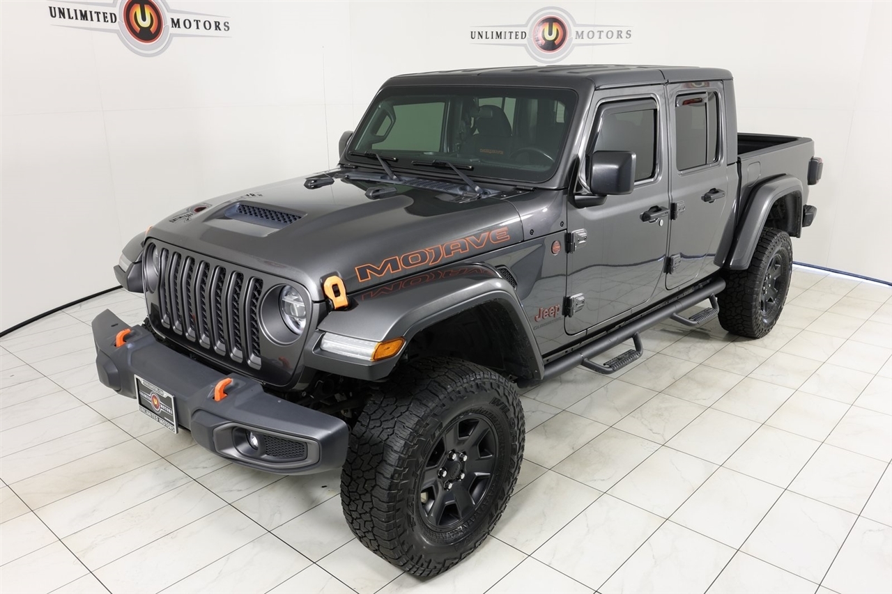 Navigation, Back Up Camera, Bluetooth, Towing, Heated Seats, Heated Steering Wheel, Blind Spot, Clean Carfax.2021 Granite Crystal Metallic Clearcoat Jeep 4D Crew Cab Gladiator Mojave 4WD 8-Speed Automatic 3.6L V6 24V VVTAwards:  * JD Power Initial Quality Study (IQS)Visit our website www.iumotors.com to view 100s of newer vehicles, more pictures and info, or to apply for financing. Rates are incredibly low for approved credit. We offer extended warranties, protection packages, and insurance. We assure you the best experience at any of our 4 locations and unbeatable prices and quality. At Unlimited Motors we believe in MARKET VALUE PRICING. We use real-time Internet price comparisons to constantly adjust prices to provide ALL BUYERS The BEST PRICE possible. We do not mark them up, to mark them down! Our entire team is committed to helping you buy a car the way we would want to buy a car! We utilize state-of-the-art technology to constantly monitor pricing trends to offer our shoppers the best competitive pricing, value, and experience. We sell and service all makes and models of Pre-owned / Used Vehicles Used Cars, Used Trucks, Used Sport Utility, Lamborghini, Ferrari, Bentley, Rolls Royce, McLaren, Maserati, Ford, Chevrolet/Chevy, Honda, Toyota, Porsche, Land Rover, Jaguar, INFINITI, Audi, Nissan, Mazda, Hyundai, Chrysler, Jeep, Dodge, Ram, SRT, Mitsubishi, Lexus, Kia, Volkswagen, Mini, BMW, Mercedes, Fiat, Volvo, GMC, Cadillac, Lincoln as well as other brands. Proudly serving these areas of Indianapolis, Fishers, Carmel, Noblesville, Greenwood, Avon, Plainfield, Zionsville, & Brownsburg, Indiana, Midwest. We also serve the entire nation with our seamless and easy online purchasing process, and offer shipping nationwide.Advertised prices DO NOT include Sales Tax, Dealer Fees, Title Processing Charges, and Dealer Pre-installed Products.