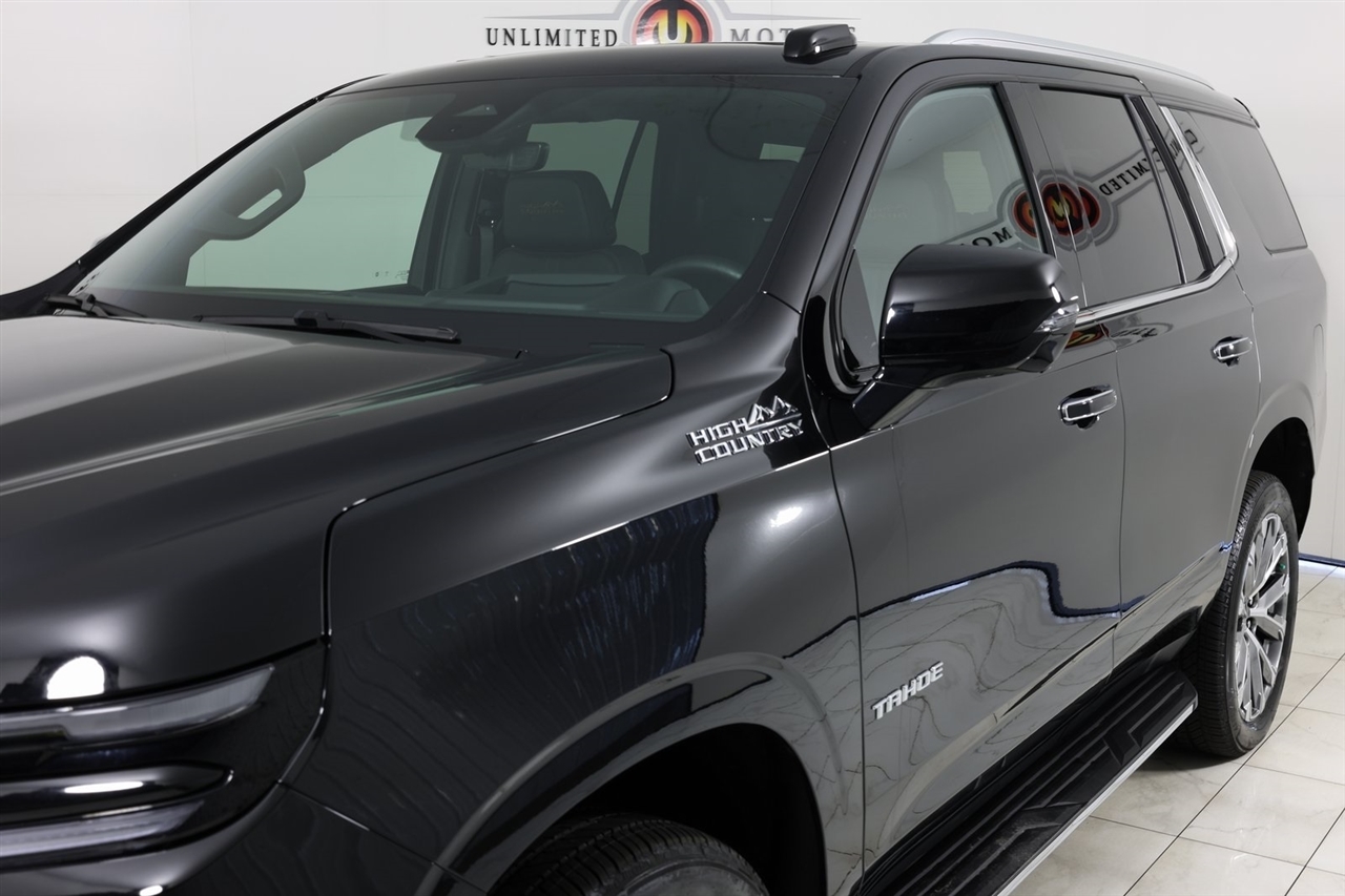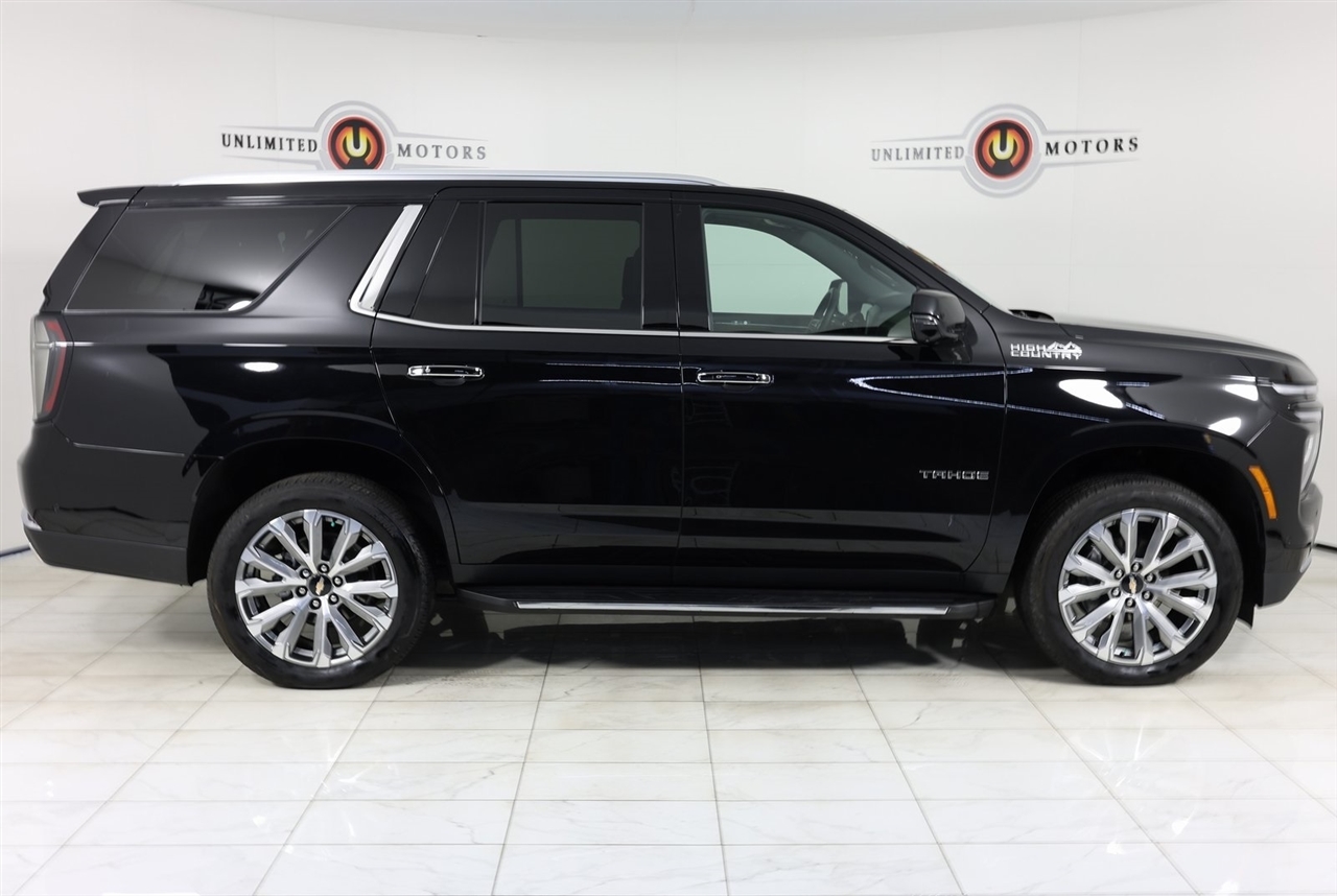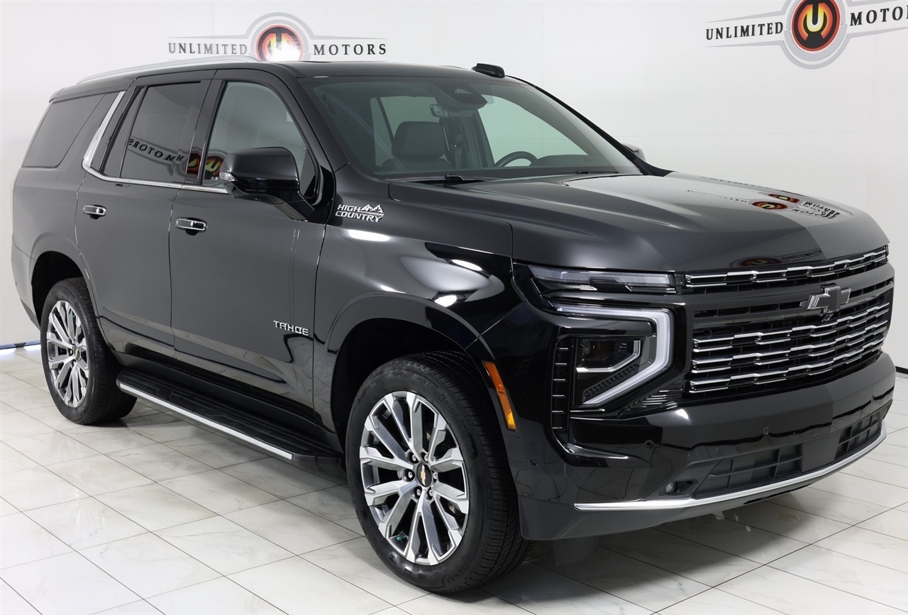 Navigation, Back Up Camera, Sunroof, Panoramic Sunroof, Bluetooth, Towing, Touch Screen, Running Boards, Heated Seats, Heated Steering Wheel, Power Lift Gate, Apple Car Play, Blind Spot, Low Miles, Lane Assist.2025 Black Chevrolet 4D Sport Utility Tahoe High Country 4WD 10-Speed Automatic with Overdrive EcoTec3 6.2L V8Visit our website www.iumotors.com to view 100s of newer vehicles, more pictures and info, or to apply for financing. Rates are incredibly low for approved credit. We offer extended warranties, protection packages, and insurance. We assure you the best experience at any of our 4 locations and unbeatable prices and quality. At Unlimited Motors we believe in MARKET VALUE PRICING. We use real-time Internet price comparisons to constantly adjust prices to provide ALL BUYERS The BEST PRICE possible. We do not mark them up, to mark them down! Our entire team is committed to helping you buy a car the way we would want to buy a car! We utilize state-of-the-art technology to constantly monitor pricing trends to offer our shoppers the best competitive pricing, value, and experience. We sell and service all makes and models of Pre-owned / Used Vehicles Used Cars, Used Trucks, Used Sport Utility, Lamborghini, Ferrari, Bentley, Rolls Royce, McLaren, Maserati, Ford, Chevrolet/Chevy, Honda, Toyota, Porsche, Land Rover, Jaguar, INFINITI, Audi, Nissan, Mazda, Hyundai, Chrysler, Jeep, Dodge, Ram, SRT, Mitsubishi, Lexus, Kia, Volkswagen, Mini, BMW, Mercedes, Fiat, Volvo, GMC, Cadillac, Lincoln as well as other brands. Proudly serving these areas of Indianapolis, Fishers, Carmel, Noblesville, Greenwood, Avon, Plainfield, Zionsville, & Brownsburg, Indiana, Midwest. We also serve the entire nation with our seamless and easy online purchasing process, and offer shipping nationwide.Advertised prices DO NOT include Sales Tax, Dealer Fees, Title Processing Charges, and Dealer Pre-installed Products.