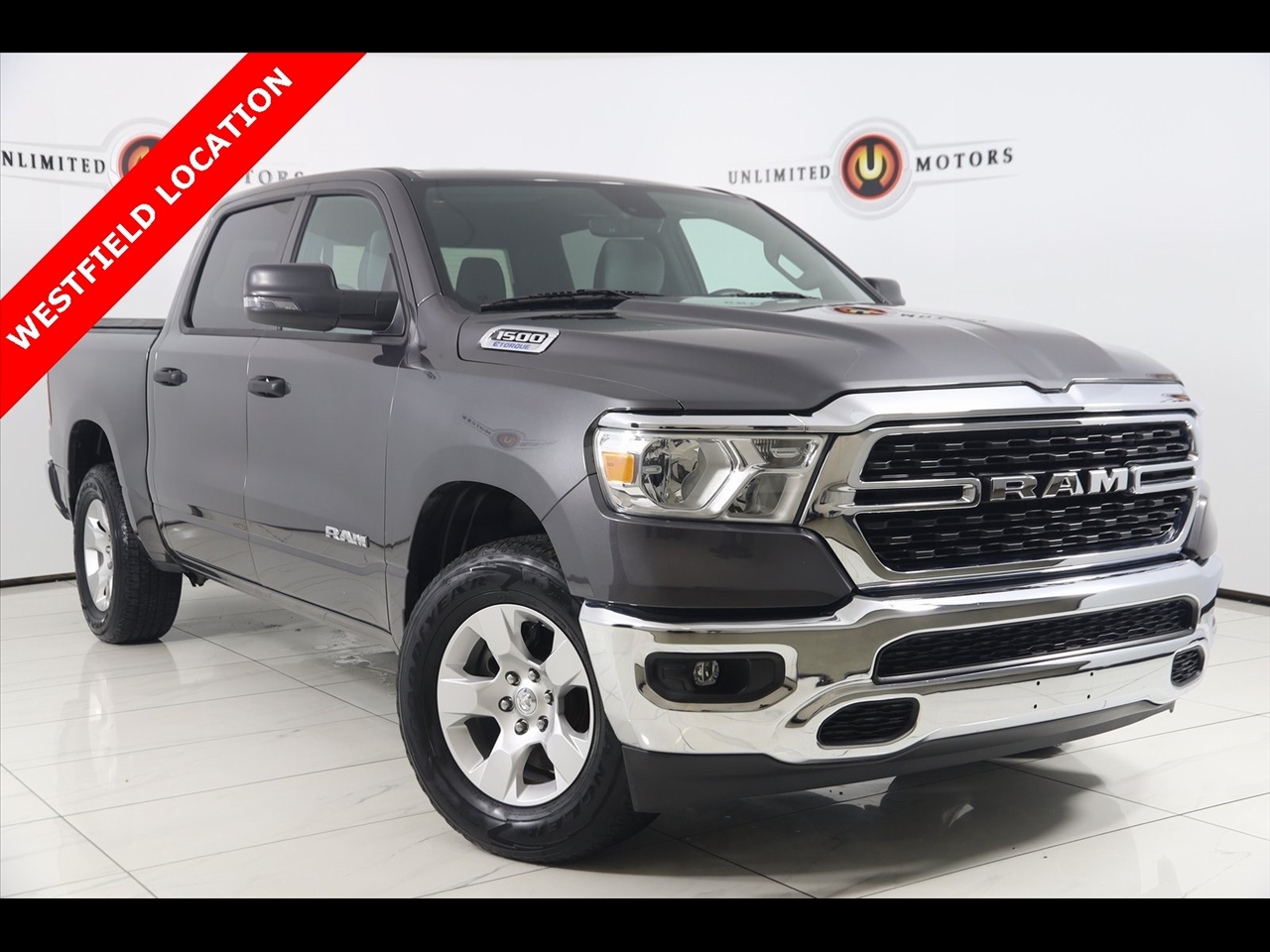 2023 Ram 1500 Granite Crystal Metallic Clearcoat Now Available at Unlimited Motors Westfield! With over 20 years in business and 4 Indiana locations, Unlimited Motors is known for offering high-quality, hand-selected vehicles at excellent pricing with outstanding customer service. Our inventory of over 1,000 vehicles includes major makes such as Ford, Chevrolet, Ram, Jeep, GMC, Dodge, BMW, Mercedes-Benz, Audi, Cadillac, Porsche, Maserati, Ferrari, and Lamborghini, giving customers one of the largest selections of quality vehicles in the Midwest. Vehicle Highlights:Back Up Camera, Bluetooth, Heated Seats, Winch, Touch Screen, 1500 Big Horn/Lone Star, 4D Crew Cab, 3.6L V6 24V VVT, 8-Speed Automatic, 4WD, Granite Crystal Metallic Clearcoat, Black Cloth, 2nd Row In Floor Storage Bins, 4G LTE Wi-Fi Hot Spot, 8.4 Touchscreen Display, Apple CarPlay, Auto-Dimming Exterior Driver Mirror, Auto-Dimming Rear-View Mirror, Big Horn Badge, Big Horn Level 1 Equipment Group, Black Exterior Mirrors, Black Premium Power Mirrors, Bluetooth Handsfree Phone & Audio, Class IV Receiver Hitch, Connectivity - US/Canada, Convex Wide-Angle Exterior Mirror Insert, Electric Shift-On-Demand Transfer Case, Exterior Mirrors Courtesy Lamps, Exterior Mirrors w/Heating Element, Exterior Mirrors w/Supplemental Signals, For Details, Visit DriveUconnect.com, For More Info, Call 800-643-2112, Front Fog Lamps, Glove Box Lamp, Google Android Auto, GPS Antenna Input, Heated Front Seats, Heated Steering Wheel, Integrated Center Stack Radio, Passenger Sun Visor w/Illuminated Mirror, Power-Folding Mirrors, Quick Order Package 23Z Big Horn, Radio: Uconnect 5 W w/8.4 Display, Rear Dome w/On/Off Switch Lamp, Rear Power Sliding Window, Rear Window Defroster, SiriusXM Satellite Radio, USB Host Flip.CARFAX One-Owner. Priced below KBB Fair Purchase Price!Visit www.iumotors.com to explore our full inventory of over 1,000 hand-picked vehicles across our Westfield, Fishers, Noblesville, and Elwood locations. At Unlimited Motors, we offer a premium car-buying experience with competitive financing through local credit unions and national lenders, top trade-in values, full auto repair and maintenance services for customer vehicles, and nationwide shipping to all 50 states. Youll also find many of the most searched and in-demand models, including Ford F-150, Chevrolet Silverado, Ram 1500, Jeep Wrangler, Jeep Grand Cherokee, Chevrolet Tahoe, Chevrolet Suburban, GMC Yukon, GMC Sierra, Dodge Charger, Dodge Durango, Ford Explorer, BMW X5, BMW X3, BMW 3 Series, Mercedes-Benz GLE, Mercedes-Benz GLC, Cadillac Escalade, Audi Q5, Audi Q7, Porsche Cayenne, Porsche Macan, Maserati Ghibli, and more. Whether youre visiting from Westfield, Indianapolis, Carmel, Fishers, Noblesville, Zionsville, Greenwood, Lawrence, Brownsburg, Avon, Plainfield, Lebanon, Anderson, Muncie, Kokomo, Lafayette, Bloomington, Columbus, or anywhere across Central and Northern Indiana, we are here to help you find the perfect vehicle with exceptional service and unbeatable value. Call us today at 317-896-4488 1470 W Tournament Trl, Westfield, IN 46074. Disclaimer: Advertised prices DO NOT include Sales Tax, Dealer Fees, Title Processing Charges, and Dealer Pre-installed Products.