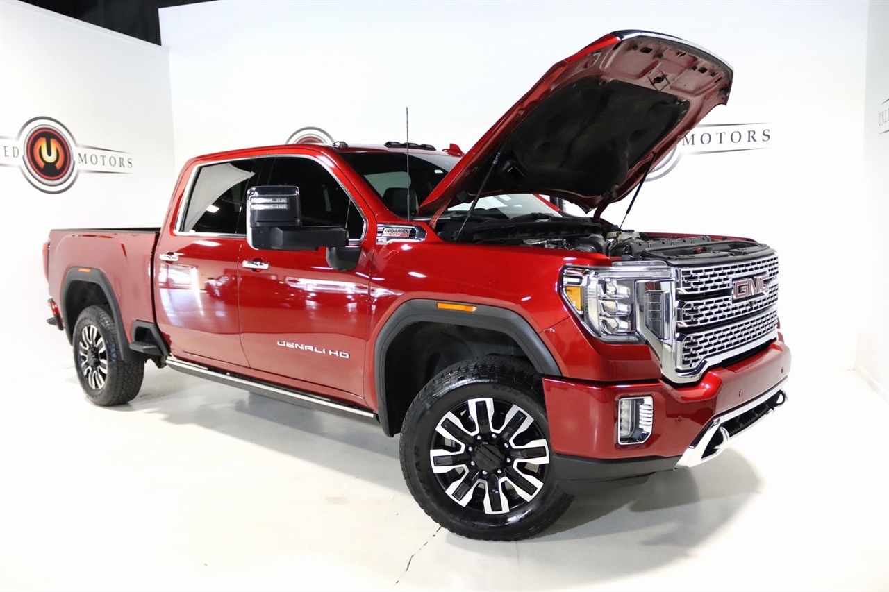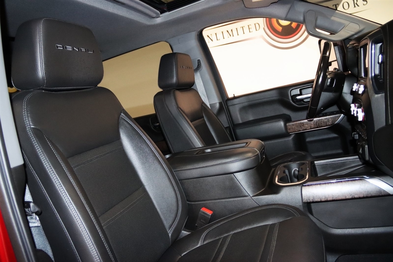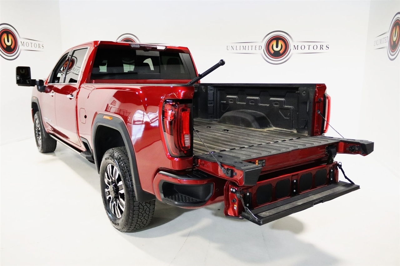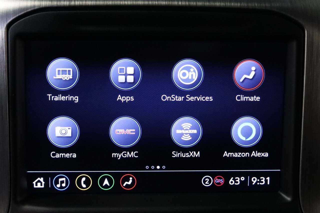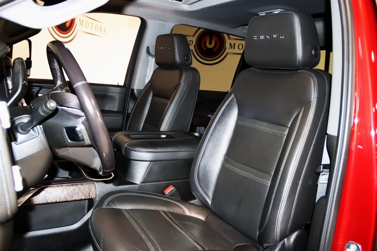 Navigation, Bluetooth, Back Up Camera, Towing, Heated Seats, Touch Screen, 10-Way Power Driver Seat Adjuster w/Lumbar, 10-Way Power Passenger Seat Adjuster w/Lumbar, 12-Volt Rear Auxiliary Power Outlet, 120-Volt Bed Mounted Power Outlet, 120-Volt Instrument Panel Power Outlet, 2 USB Ports (First Row), 2 USB Ports Inside Console, 2-Speed Active Transfer Case, 2nd Row Dual USB Charge-Only Ports, 3.42 Rear Axle Ratio, 4-Wheel Disc Brakes, 6 Rectangular Chromed Tubular Assist Steps, 7 Speakers, ABS brakes, Air Conditioning, Alloy wheels, AM/FM radio: SiriusXM with 360L, Apple CarPlay/Android Auto, Auto High-beam Headlights, Auto-dimming door mirrors, Auto-Dimming Inside Rearview Mirror w/Camera, Auto-dimming Rear-View mirror, Automatic Emergency Braking, Automatic temperature control, Bed View Camera w/2 Trailer Camera Provisions, Bose Premium 7 Speaker Sound System, Brake assist, Bumpers: body-color, Compass, Compass Located In Instrument Cluster, Deep-Tinted Glass, Delay-off headlights, Denali Ultimate Package, Driver Alert Package I, Driver Alert Package II, Driver door bin, Driver Memory, Driver vanity mirror, Dual 220-Amps Primary/170-Amps Aux Alternators, Dual front impact airbags, Dual front side impact airbags, Electric Rear-Window Defogger, Electrical Lock Control Steering Column, Electronic Stability Control, Engine Block Heater, Exhaust Brake, Exterior Parking Camera Rear, Floor-Mounted Center Console, Following Distance Indicator, Forge Perforated Leather-Appointed Seat Trim, Forward Collision Alert, Front anti-roll bar, Front Bucket Seats, Front Center Armrest, Front Chrome Recovery Hooks, Front dual zone A/C, Front fog lights, Front reading lights, Front wheel independent suspension, Fully automatic headlights, Garage door transmitter, Genuine wood console insert, Genuine wood door panel insert, GMC Connected Access Capable, Gooseneck/5th Wheel Prep Package, HD Rear Vision Camera, HD Surround Vision w/2 Trailer View Camera Provisions, Heated 2nd Row Outboard Seats, Heated door mirrors, Heated Driver & Front Outboard Passenger Seats, Heated front seats, Heated steering wheel, Heavy-Duty 80 Amp Battery, Hitch Guidance w/Hitch View, Hitch Package (LPO), Illuminated entry, In-Vehicle Trailering System App, Integrated Trailer Brake Controller, IntelliBeam Automatic High Beam On/Off, Keyless Open & Start, Lane Change Alert w/Side Blind Zone Alert, Lane Departure Warning System, LED Cargo Area Lighting, Low tire pressure warning, Manual Tilt-Wheel/Telescoping Steering Column, Memory seat, Multicolor 15 Diagonal Head-Up Display, Navigation System, Not Equipped w/Front & Rear Park Assist, Occupant sensing airbag, OnStar & GMC Connected Services Capable, Outside temperature display, Overhead airbag, Overhead console, Panic alarm, Passenger door bin, Passenger vanity mirror, Pickup Bed, Polished Exhaust Tip, Power Door Locks, Power door mirrors, Power driver seat, Power Front Passenger Windows w/Express Up/Down, Power Front Windows w/Driver Express Up/Down, Power passenger seat, Power Rear Windows w/Express Down, Power Sliding Rear Window w/Defogger, Power steering, Power Sunroof, Power windows, Power-Retractable Assist Steps, Preferred Equipment Group 5SA, Premium audio system: Premium GMC Infotainment System, ProGrade Trailering System, Radio: AM/FM w/Prem GMC Infotainment System & Navi, Rear Cross Traffic Alert, Rear reading lights, Rear seat center armrest, Rear step bumper, Rear Wheelhouse Liners, Rear window defroster, Remote keyless entry, Remote Vehicle Starter System, Safety Alert Seat, Security system, Signature Denali Grille w/High Gloss Black Mesh, SiriusXM w/360L, Speed control, Speed-sensing steering, Split folding rear seat, Spray-On Pickup Bed Liner w/Denali Logo, Steering Wheel Audio Controls, Steering wheel mounted audio controls, Tachometer, Technology Package, Telescoping steering wheel, Tilt steering wheel, Traction control, Trip computer, Turn signal indicator mirrors, Unauthorized Entry Theft-Deterrent