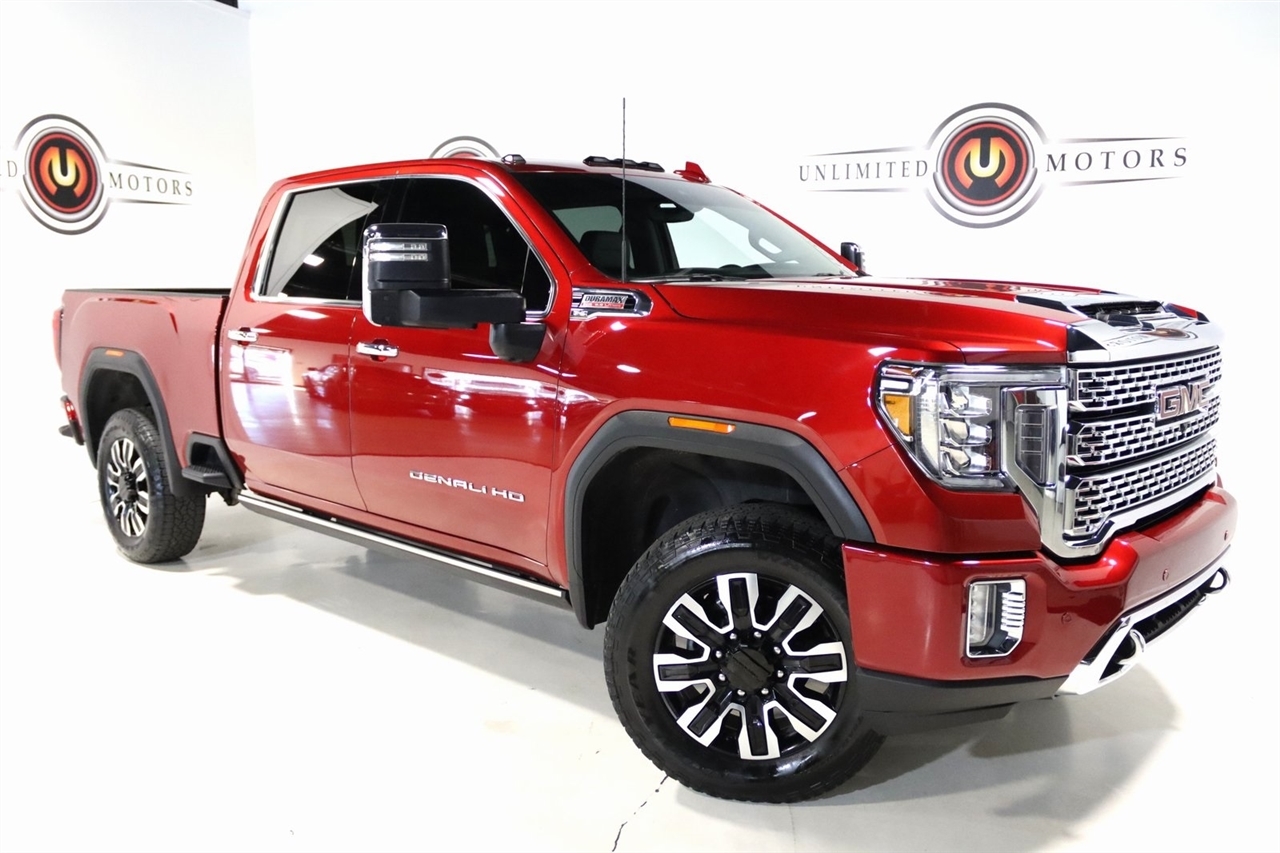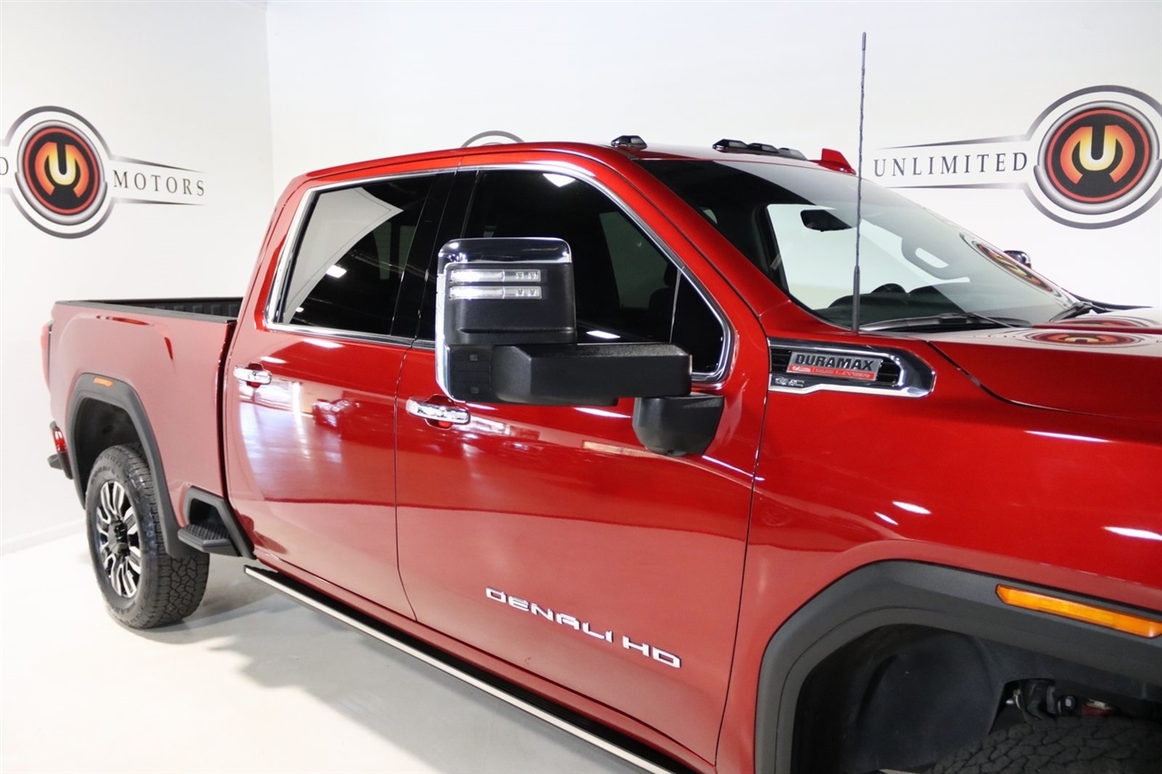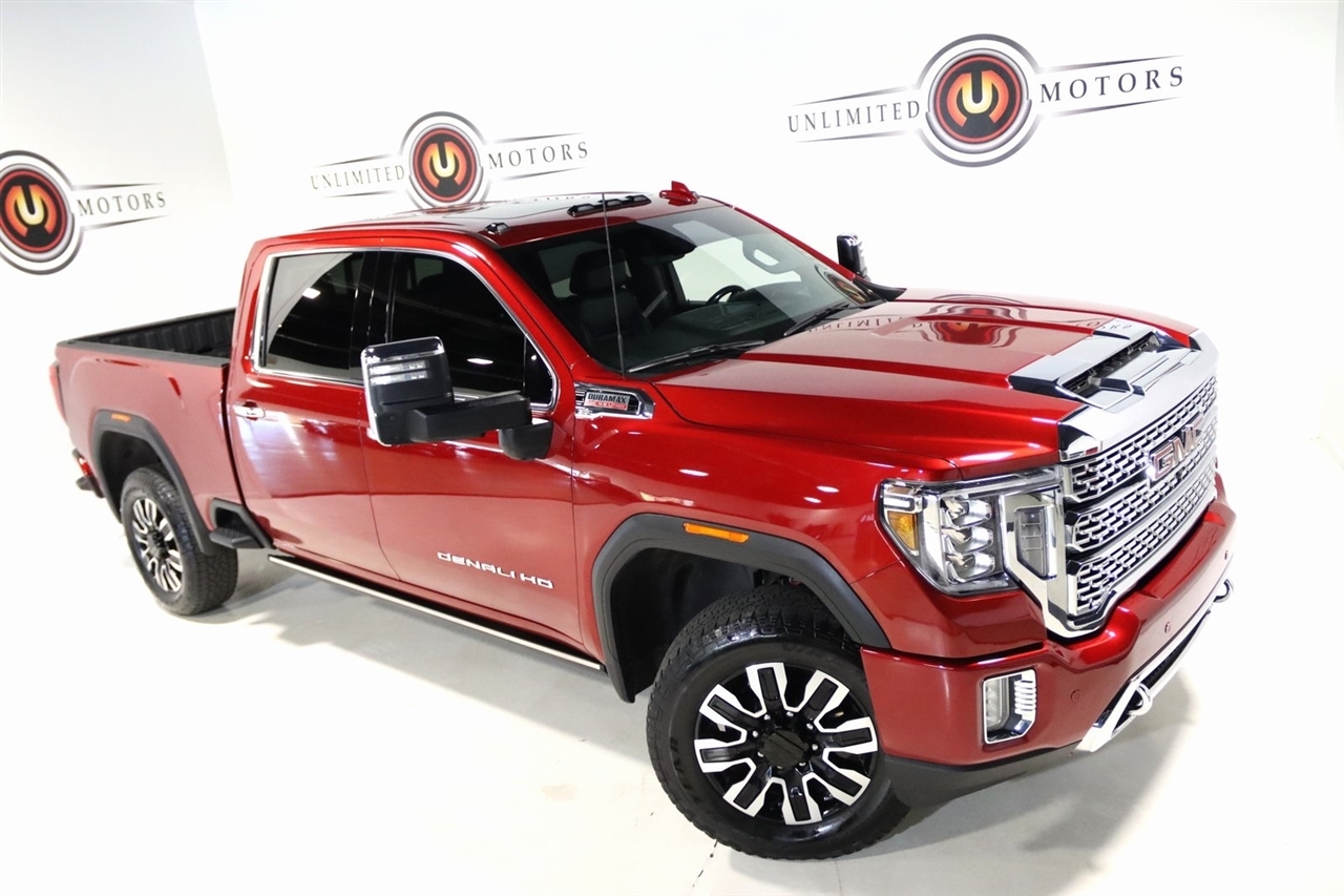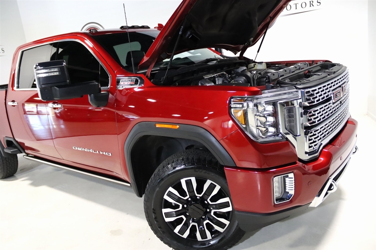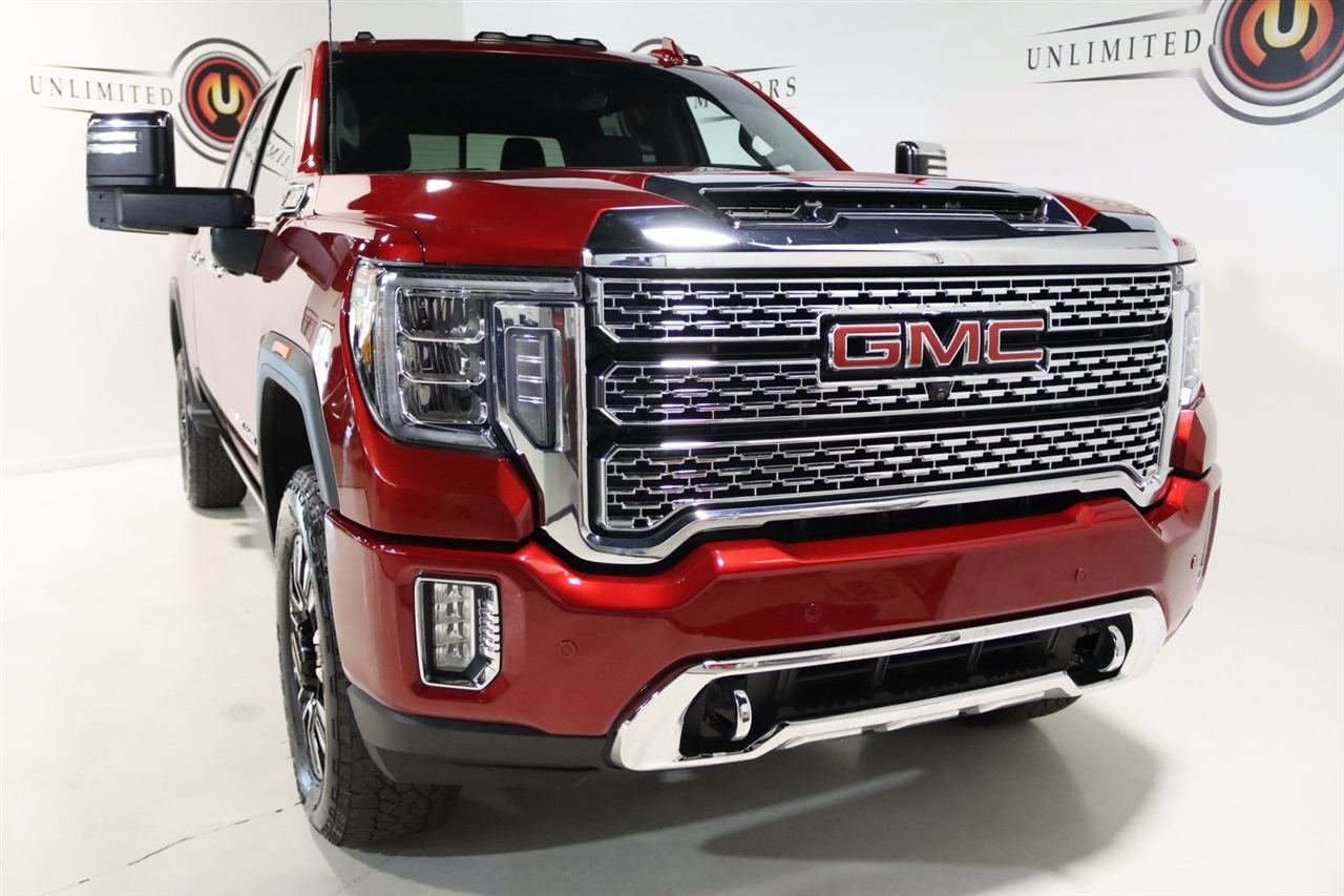 Navigation, Bluetooth, Back Up Camera, Towing, Heated Seats, Touch Screen, 10-Way Power Driver Seat Adjuster w/Lumbar, 10-Way Power Passenger Seat Adjuster w/Lumbar, 12-Volt Rear Auxiliary Power Outlet, 120-Volt Bed Mounted Power Outlet, 120-Volt Instrument Panel Power Outlet, 2 USB Ports (First Row), 2 USB Ports Inside Console, 2-Speed Active Transfer Case, 2nd Row Dual USB Charge-Only Ports, 3.42 Rear Axle Ratio, 4-Wheel Disc Brakes, 6 Rectangular Chromed Tubular Assist Steps, 7 Speakers, ABS brakes, Air Conditioning, Alloy wheels, AM/FM radio: SiriusXM with 360L, Apple CarPlay/Android Auto, Auto High-beam Headlights, Auto-dimming door mirrors, Auto-Dimming Inside Rearview Mirror w/Camera, Auto-dimming Rear-View mirror, Automatic Emergency Braking, Automatic temperature control, Bed View Camera w/2 Trailer Camera Provisions, Bose Premium 7 Speaker Sound System, Brake assist, Bumpers: body-color, Compass, Compass Located In Instrument Cluster, Deep-Tinted Glass, Delay-off headlights, Denali Ultimate Package, Driver Alert Package I, Driver Alert Package II, Driver door bin, Driver Memory, Driver vanity mirror, Dual 220-Amps Primary/170-Amps Aux Alternators, Dual front impact airbags, Dual front side impact airbags, Electric Rear-Window Defogger, Electrical Lock Control Steering Column, Electronic Stability Control, Engine Block Heater, Exhaust Brake, Exterior Parking Camera Rear, Floor-Mounted Center Console, Following Distance Indicator, Forge Perforated Leather-Appointed Seat Trim, Forward Collision Alert, Front anti-roll bar, Front Bucket Seats, Front Center Armrest, Front Chrome Recovery Hooks, Front dual zone A/C, Front fog lights, Front reading lights, Front wheel independent suspension, Fully automatic headlights, Garage door transmitter, Genuine wood console insert, Genuine wood door panel insert, GMC Connected Access Capable, Gooseneck/5th Wheel Prep Package, HD Rear Vision Camera, HD Surround Vision w/2 Trailer View Camera Provisions, Heated 2nd Row Outboard Seats, Heated door mirrors, Heated Driver & Front Outboard Passenger Seats, Heated front seats, Heated steering wheel, Heavy-Duty 80 Amp Battery, Hitch Guidance w/Hitch View, Hitch Package (LPO), Illuminated entry, In-Vehicle Trailering System App, Integrated Trailer Brake Controller, IntelliBeam Automatic High Beam On/Off, Keyless Open & Start, Lane Change Alert w/Side Blind Zone Alert, Lane Departure Warning System, LED Cargo Area Lighting, Low tire pressure warning, Manual Tilt-Wheel/Telescoping Steering Column, Memory seat, Multicolor 15 Diagonal Head-Up Display, Navigation System, Not Equipped w/Front & Rear Park Assist, Occupant sensing airbag, OnStar & GMC Connected Services Capable, Outside temperature display, Overhead airbag, Overhead console, Panic alarm, Passenger door bin, Passenger vanity mirror, Pickup Bed, Polished Exhaust Tip, Power Door Locks, Power door mirrors, Power driver seat, Power Front Passenger Windows w/Express Up/Down, Power Front Windows w/Driver Express Up/Down, Power passenger seat, Power Rear Windows w/Express Down, Power Sliding Rear Window w/Defogger, Power steering, Power Sunroof, Power windows, Power-Retractable Assist Steps, Preferred Equipment Group 5SA, Premium audio system: Premium GMC Infotainment System, ProGrade Trailering System, Radio: AM/FM w/Prem GMC Infotainment System & Navi, Rear Cross Traffic Alert, Rear reading lights, Rear seat center armrest, Rear step bumper, Rear Wheelhouse Liners, Rear window defroster, Remote keyless entry, Remote Vehicle Starter System, Safety Alert Seat, Security system, Signature Denali Grille w/High Gloss Black Mesh, SiriusXM w/360L, Speed control, Speed-sensing steering, Split folding rear seat, Spray-On Pickup Bed Liner w/Denali Logo, Steering Wheel Audio Controls, Steering wheel mounted audio controls, Tachometer, Technology Package, Telescoping steering wheel, Tilt steering wheel, Traction control, Trip computer, Turn signal indicator mirrors, Unauthorized Entry Theft-Deterrent