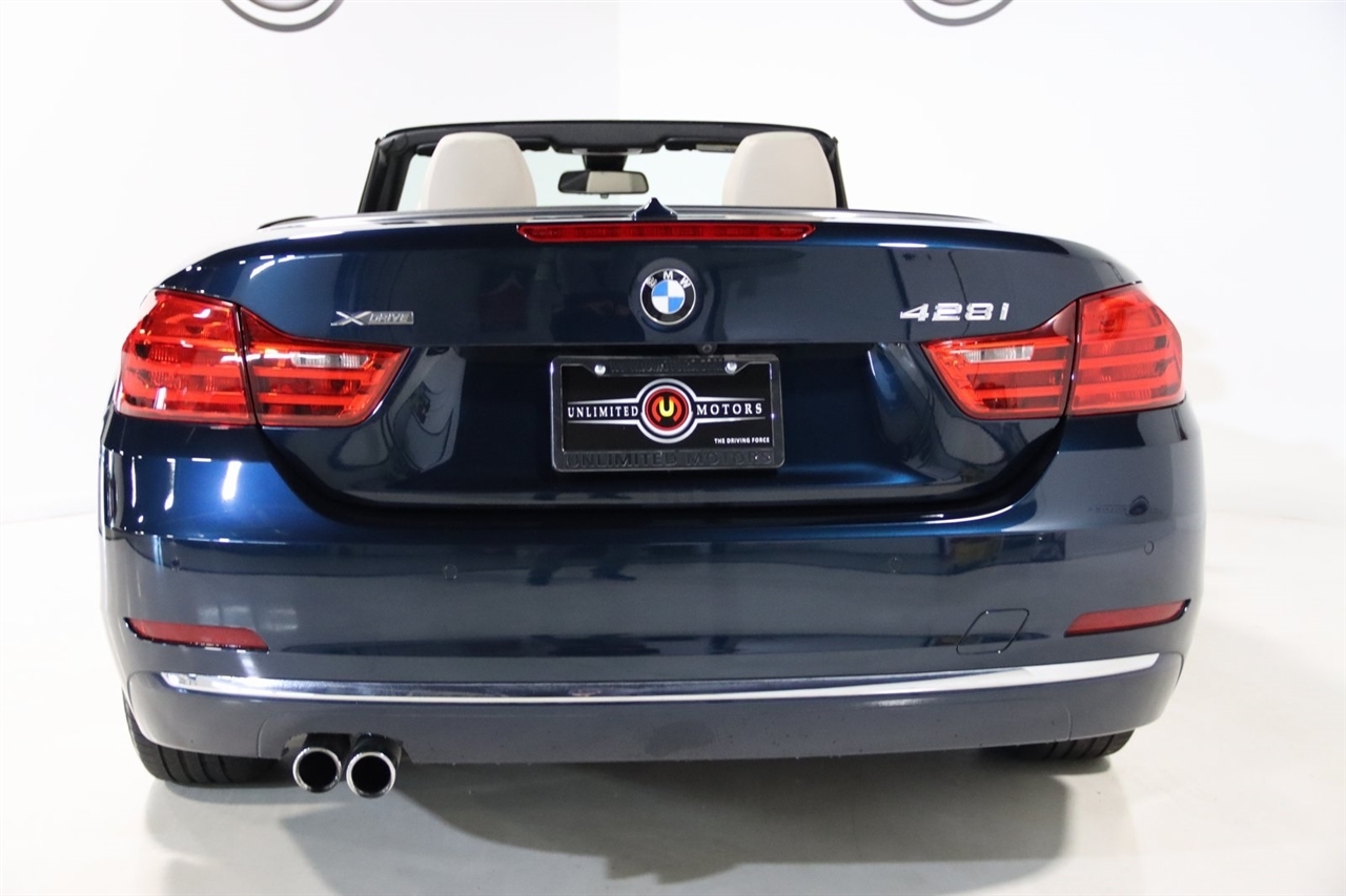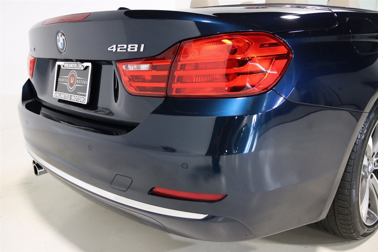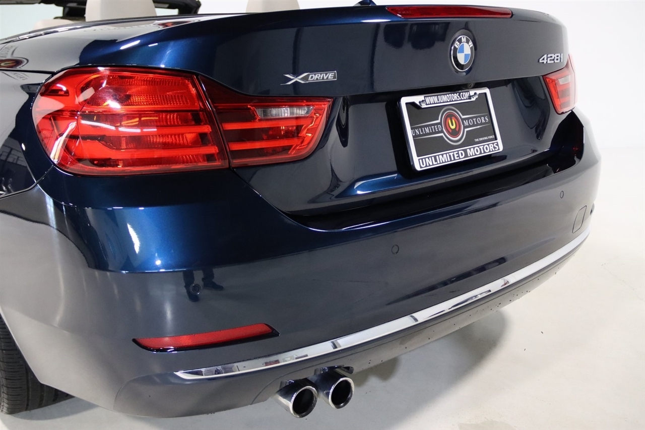 Navigation, Bluetooth, Back Up Camera, Hard Top, Heated Seats, Touch Screen, 4-Wheel Disc Brakes, 9 Speakers, ABS brakes, Active Blind Spot Detection, Active Driving Assistant, Adaptive Full LED Lights, Advanced Real-Time Traffic Information, Air Conditioning, Alloy wheels, AM/FM radio, Anti-whiplash front head restraints, Auto-dimming door mirrors, Auto-dimming Rear-View mirror, Automatic High Beams, Automatic temperature control, BMW Online & BMW Apps, Brake assist, Bumpers: body-color, CD player, Comfort Access Keyless Entry, Convertible HardTop, Convertible roof lining, Convertible roof wind blocker, Delay-off headlights, Driver door bin, Driver vanity mirror, Dual front impact airbags, Dual front side impact airbags, Electronic Stability Control, Emergency communication system: BMW Assist eCall, Enhanced USB & Bluetooth w/Smartphone Integration, Fineline Anthracite Wood Trim w/Pearl Gloss Chrome, Four wheel independent suspension, Front anti-roll bar, Front Bucket Seats, Front Center Armrest, Front dual zone A/C, Front fog lights, Front reading lights, Fully automatic headlights, Garage door transmitter, Genuine wood console insert, Genuine wood dashboard insert, Genuine wood door panel insert, Glass rear window, Hands-Free Bluetooth & USB Audio Connection, harman/kardon Surround Sound System, Head-Up Display, Heated door mirrors, Heated Front Seats, Heated Steering Wheel, Hi-Fi Sound System, High intensity discharge headlights: Bi-xenon, Illuminated entry, Instrument Cluster w/Extended Contents, Integrated roll-over protection, Knee airbag, Leather Shift Knob, Leather steering wheel, Low tire pressure warning, Lumbar Support, Memory seat, Navigation System, Neck Warmer, Occupant sensing airbag, Outside temperature display, Panic alarm, Park Distance Control, Passenger door bin, Passenger vanity mirror, Power convertible roof, Power door mirrors, Power driver seat, Power Front Seats, Power passenger seat, Power steering, Power windows, Radio data system, Radio: Anti-Theft AM/FM/HD Stereo CD/MP3 Player, Rain sensing wipers, Rear air conditioning, Rear anti-roll bar, Rear reading lights, Rear seat center armrest, Rear window defroster, Rear-View Camera, Remote keyless entry, Remote Services, Retractable Headlight Washers, Satellite Radio, Security system, SensaTec Leatherette Upholstery, Side & Top View Cameras, Speed control, Speed Limit Information, Speed-sensing steering, Speed-Sensitive Wipers, Sport Seats, Sport steering wheel, Steering wheel mounted audio controls, Tachometer, Telescoping steering wheel, Tilt steering wheel, Traction control, Trip computer, Turn signal indicator mirrors, Variably intermittent wipers. CARFAX One-Owner. 21/33 City/Highway MPG2016 Midnight Blue Metallic BMW 2D Convertible 4 Series 428i xDrive AWD 8-Speed Automatic 2.0L 4-Cylinder DOHC 16V TwinPower TurboVisit our website www.iumotors.com to view 100s of newer vehicles, more pictures and info, or to apply for financing. Rates are incredibly low for approved credit. We offer extended warranties, protection packages, and insurance. We assure you the best experience at any of our 4 locations and unbeatable prices and quality. At Unlimited Motors we believe in MARKET VALUE PRICING. We use real-time Internet price comparisons to constantly adjust prices to provide ALL BUYERS The BEST PRICE possible. We do not mark them up, to mark them down! Our entire team is committed to helping you buy a car the way we would want to buy a car! We utilize state-of-the-art technology to constantly monitor pricing trends to offer our shoppers the best competitive pricing, value, and experience. We sell and service all makes and models of Pre-owned / Used Vehicles Used Cars, Used Trucks, Used Sport Utility, Lamborghini, Ferrari, Bentley, Rolls Royce, McLaren, Maserati, Ford, Chevrolet/Chevy, Honda, Toyota, Porsche, Land Rover, Jaguar, INFINITI, Audi, Nissan, Mazda, Hyundai, Chrysler, Jeep, Dodge, Ram, SRT, Mitsubishi, Lexus, Kia, Volk
