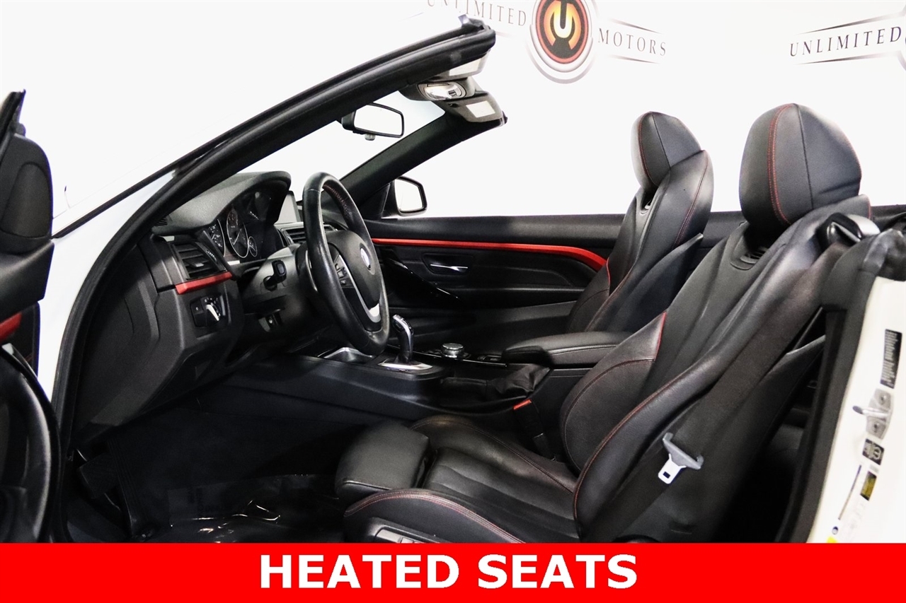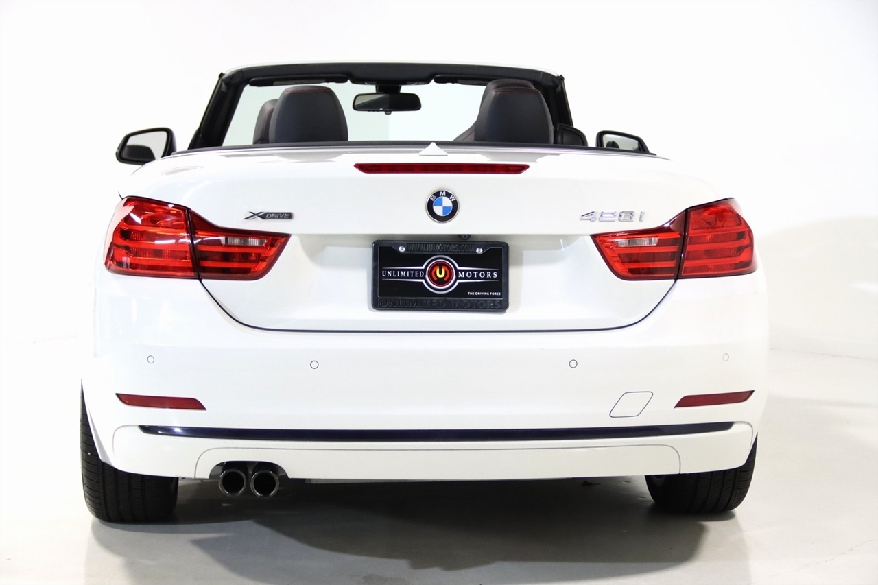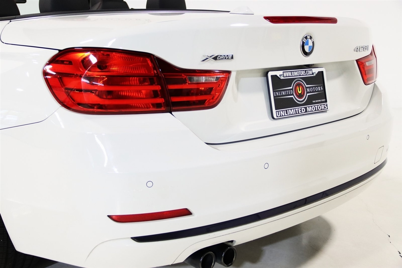 Navigation, Bluetooth, Back Up Camera, Hard Top, Heated Seats, Touch Screen, 4-Wheel Disc Brakes, 9 Speakers, ABS brakes, Advanced Real-Time Traffic Information, Air Conditioning, Alloy wheels, AM/FM radio, Anti-whiplash front head restraints, Auto-dimming door mirrors, Auto-dimming Rear-View mirror, Automatic temperature control, Black Door Mirror Caps, BMW Online & BMW Apps, Brake assist, Bumpers: body-color, CD player, Cold Weather Package, Comfort Access Keyless Entry, Convertible HardTop, Convertible roof lining, Convertible roof wind blocker, Dakota Leather Upholstery, Delay-off headlights, Driver Assistance Package, Driver door bin, Driver vanity mirror, Dual front impact airbags, Dual front side impact airbags, Electronic Stability Control, Emergency communication system, Four wheel independent suspension, Front anti-roll bar, Front Bucket Seats, Front Center Armrest, Front dual zone A/C, Front fog lights, Front reading lights, Fully automatic headlights, Garage door transmitter, Genuine wood console insert, Genuine wood dashboard insert, Genuine wood door panel insert, Glass rear window, Hands-Free Bluetooth & USB Audio Connection, Heated door mirrors, Heated Front Seats, Heated Steering Wheel, Hi-Fi Sound System, High intensity discharge headlights: Bi-xenon, High-Gloss Black Interior Trim, Illuminated entry, Instrument Cluster w/Extended Contents, Integrated roll-over protection, Knee airbag, Leather Shift Knob, Leather steering wheel, Low tire pressure warning, Lumbar Support, Luxury Line Aesthetic Elements, Matte Coral Red Highlight Trim Finishers, Memory seat, Navigation System, Neck Warmer, Occupant sensing airbag, Outside temperature display, Park Distance Control, Passenger door bin, Passenger vanity mirror, Power convertible roof, Power door mirrors, Power driver seat, Power Front Seats w/Driver Memory, Power passenger seat, Power steering, Power windows, Premium Package, Radio data system, Radio: Anti-Theft AM/FM/HD Stereo CD/MP3 Player, Rain sensing wipers, Rear air conditioning, Rear anti-roll bar, Rear reading lights, Rear seat center armrest, Rear window defroster, Rear-View Camera, Remote keyless entry, Remote Services, Retractable Headlight Washers, Satellite Radio, SensaTec Leatherette Upholstery, Speed control, Speed-sensing steering, Speed-Sensitive Wipers, Sport Line, Sport Line Aesthetic Elements, Sport Seats, Sport steering wheel, Steering wheel mounted audio controls, Tachometer, Telescoping steering wheel, Tilt steering wheel, Traction control, Trip computer, Turn signal indicator mirrors, Variably intermittent wipers, Wheels: 18 x 8 Lt Alloy Double-Spoke (Style 397), Without Lines Designation Outside. 21/33 City/Highway MPG2015 Alpine White BMW 2D Convertible 4 Series 428i xDrive AWD 8-Speed Automatic 2.0L 4-Cylinder DOHC 16V TwinPower TurboAwards: * JD Power Automotive Performance, Execution and Layout (APEAL) Study, Initial Quality Study (IQS)Visit our website www.iumotors.com to view 100s of newer vehicles, more pictures and info, or to apply for financing. Rates are incredibly low for approved credit. We offer extended warranties, protection packages, and insurance. We assure you the best experience at any of our 4 locations and unbeatable prices and quality. At Unlimited Motors we believe in MARKET VALUE PRICING. We use real-time Internet price comparisons to constantly adjust prices to provide ALL BUYERS The BEST PRICE possible. We do not mark them up, to mark them down! Our entire team is committed to helping you buy a car the way we would want to buy a car! We utilize state-of-the-art technology to constantly monitor pricing trends to offer our shoppers the best competitive pricing, value, and experience. We sell and service all makes and models of Pre-owned / Used Vehicles Used Cars, Used Trucks, Used Sport Utility, Lamborghini, Ferrari, Bentley, Rolls Royce, McLaren, Maserati, Ford, Chevrolet/Chevy, Honda, Toyota, Porsche, Land Rover, Jaguar, INFIN