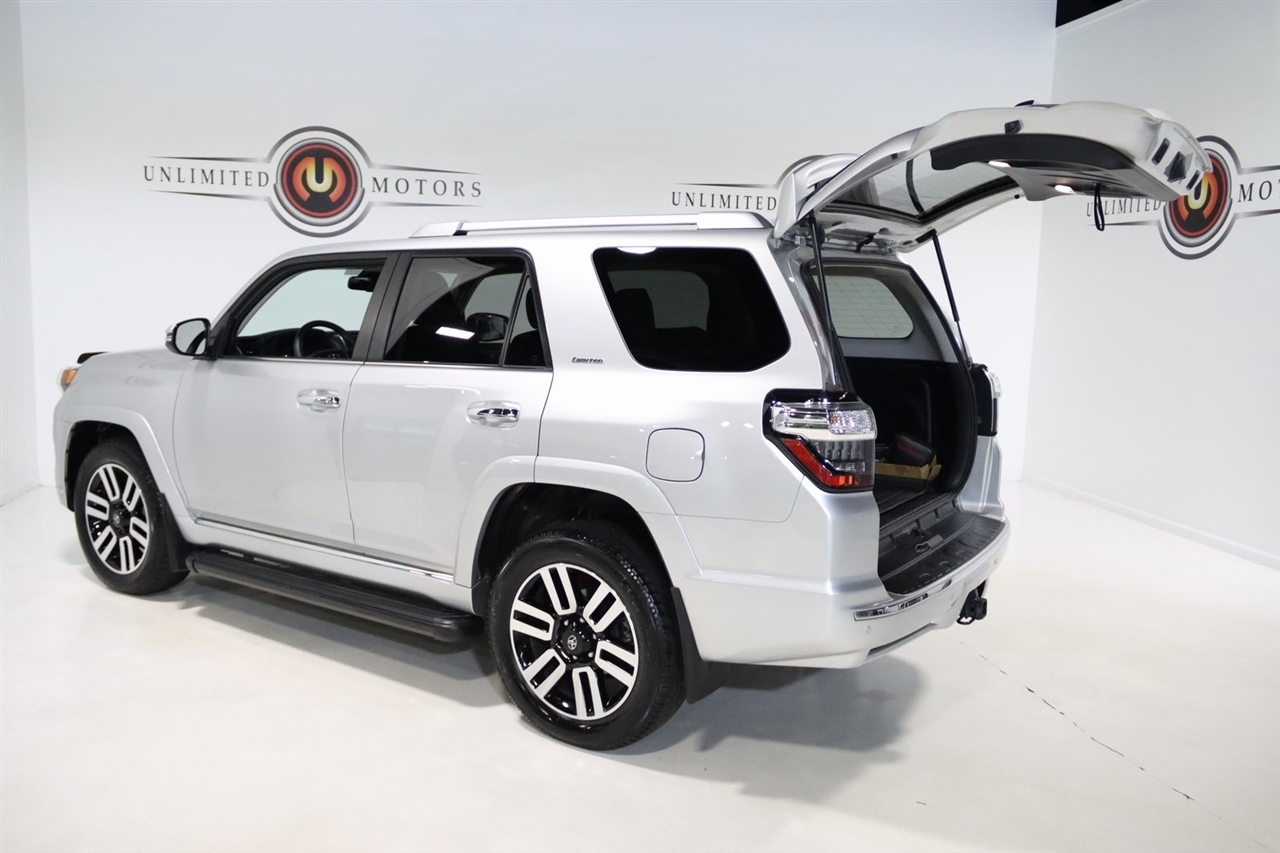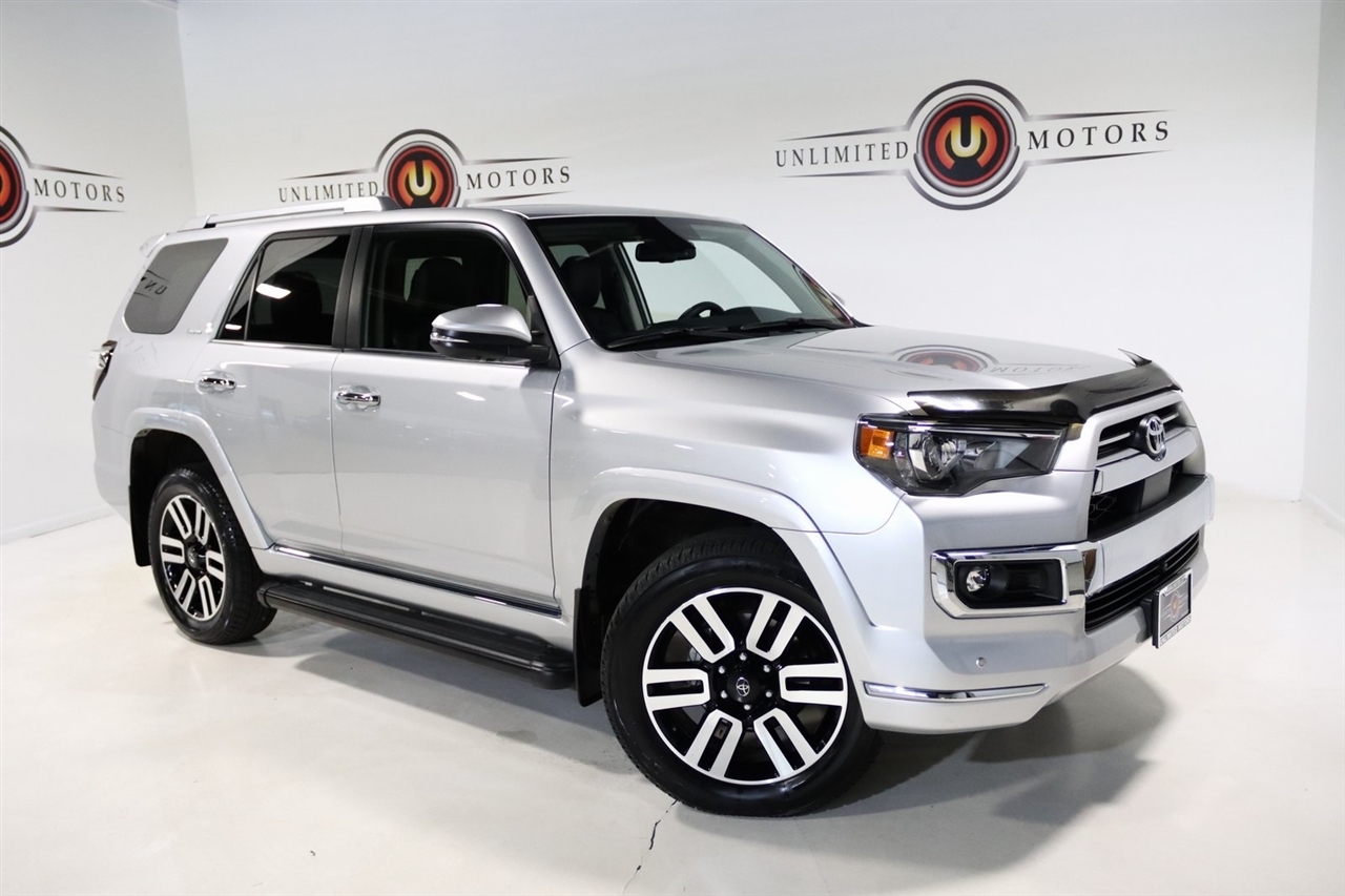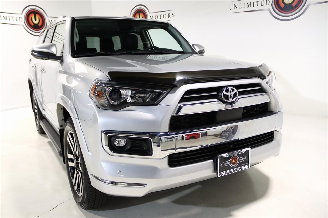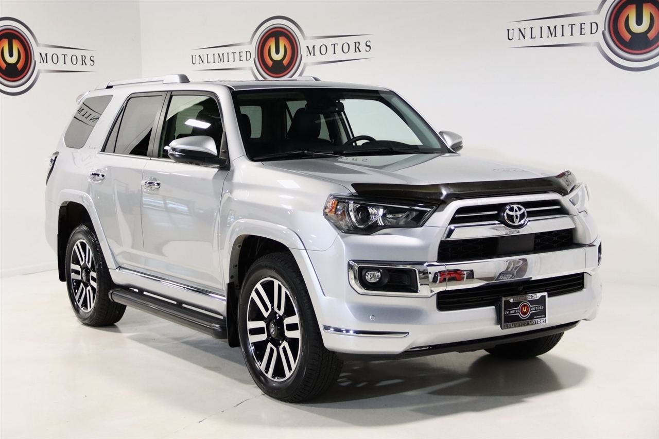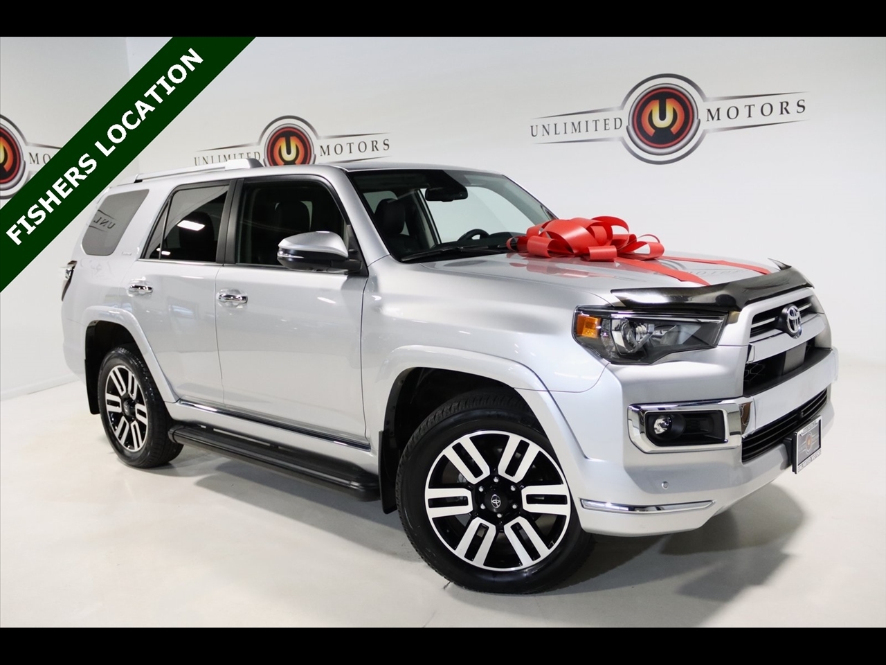 Navigation, Bluetooth, Back Up Camera, Sun/Moon Roof, Towing, Heated Seats, Touch Screen, 15 Speakers, 3.727 Axle Ratio, 4-Wheel Disc Brakes, ABS brakes, Air Conditioning, Alloy wheels, AM/FM radio: SiriusXM, Anti-whiplash front head restraints, Apple CarPlay/Android Auto, Auto High-beam Headlights, Auto-dimming Rear-View mirror, Automatic temperature control, Blind Spot Monitor (BSM), Brake assist, Bumpers: body-color, Compass, Delay-off headlights, Driver door bin, Driver vanity mirror, Dual front impact airbags, Dual front side impact airbags, Dual Zone Auto Climate Control, Electronic Stability Control, Emergency communication system: Safety Connect with 1-year trial, Front anti-roll bar, Front Bucket Seats, Front Center Armrest, Front dual zone A/C, Front fog lights, Front reading lights, Front wheel independent suspension, Fully automatic headlights, Garage Door Opener, Garage door transmitter: HomeLink, Heated door mirrors, Heated front seats, Heated/Ventilated Front Bucket Seats, Illuminated entry, Knee airbag, Leather Seat Trim, Low tire pressure warning, Memory seat, Moonroof w/Tilt Up & Slide, Navigation System, Occupant sensing airbag, Outside Rear View Mirror, Outside temperature display, Overhead airbag, Overhead console, Panic alarm, Panoramic Back Monitor, Passenger door bin, Passenger vanity mirror, Power door mirrors, Power driver seat, Power moonroof, Power passenger seat, Power steering, Power windows, Radio: Premium Audio w/JBL, Rear anti-roll bar, Rear seat center armrest, Rear window defroster, Rear window wiper, Remote keyless entry, Roof rack: rails only, Security system, Silver Roof Rails, Speed control, Speed-sensing steering, Split folding rear seat, Spoiler, Steering wheel mounted audio controls, Tachometer, Telescoping steering wheel, Tilt steering wheel, Traction control, Trip computer, Turn signal indicator mirrors, Variably intermittent wipers, Ventilated front seats, Wheels: 20 Unique Dual 6-Spoke Alloy. CARFAX One-Owner. Clean CARFAX. Odometer is 29575 miles below market average! Priced below KBB Fair Purchase Price!2022 Classic Silver Metallic Toyota 4D Sport Utility 4Runner Limited 4WD 5-Speed with ECT 4.0L V6 DOHC 24VVisit our website www.iumotors.com to view 100s of newer vehicles, more pictures and info, or to apply for financing. Rates are incredibly low for approved credit. We offer extended warranties, protection packages, and insurance. We assure you the best experience at any of our 4 locations and unbeatable prices and quality. At Unlimited Motors we believe in MARKET VALUE PRICING. We use real-time Internet price comparisons to constantly adjust prices to provide ALL BUYERS The BEST PRICE possible. We do not mark them up, to mark them down! Our entire team is committed to helping you buy a car the way we would want to buy a car! We utilize state-of-the-art technology to constantly monitor pricing trends to offer our shoppers the best competitive pricing, value, and experience. We sell and service all makes and models of Pre-owned / Used Vehicles Used Cars, Used Trucks, Used Sport Utility, Lamborghini, Ferrari, Bentley, Rolls Royce, McLaren, Maserati, Ford, Chevrolet/Chevy, Honda, Toyota, Porsche, Land Rover, Jaguar, INFINITI, Audi, Nissan, Mazda, Hyundai, Chrysler, Jeep, Dodge, Ram, SRT, Mitsubishi, Lexus, Kia, Volkswagen, Mini, BMW, Mercedes, Fiat, Volvo, GMC, Cadillac, Lincoln as well as other brands. Proudly serving these areas of Indianapolis, Fishers, Carmel, Noblesville, Greenwood, Avon, Plainfield, Zionsville, & Brownsburg, Indiana, Midwest. We also serve the entire nation with our seamless and easy online purchasing process, and offer shipping nationwide.Advertised prices DO NOT include Sales Tax, Dealer Fees, Title Processing Charges, and Dealer Pre-installed Products.
