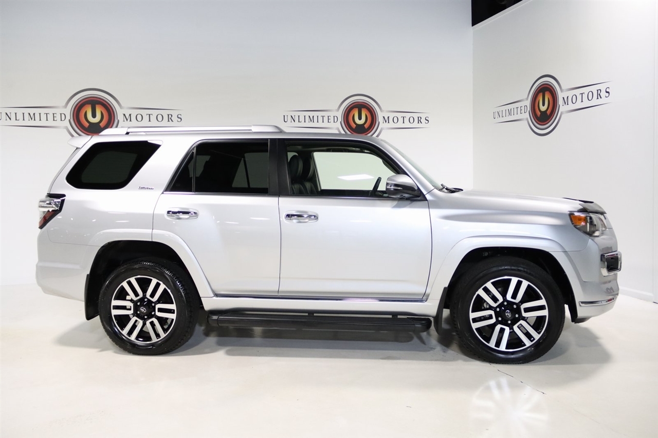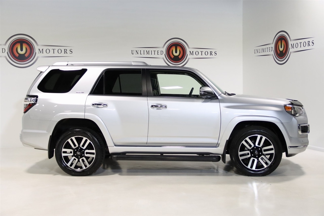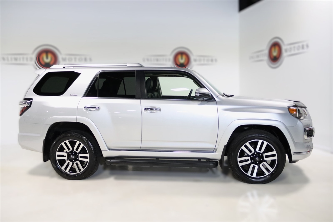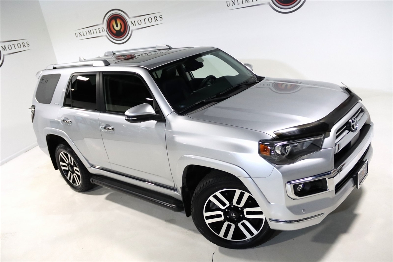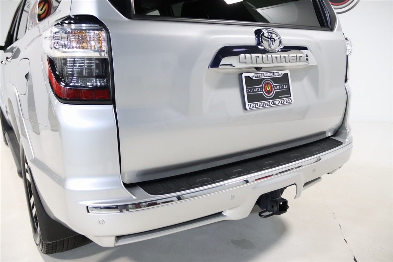 Navigation, Bluetooth, Back Up Camera, Sun/Moon Roof, Towing, Heated Seats, Touch Screen, 15 Speakers, 3.727 Axle Ratio, 4-Wheel Disc Brakes, ABS brakes, Air Conditioning, Alloy wheels, AM/FM radio: SiriusXM, Anti-whiplash front head restraints, Apple CarPlay/Android Auto, Auto High-beam Headlights, Auto-dimming Rear-View mirror, Automatic temperature control, Blind Spot Monitor (BSM), Brake assist, Bumpers: body-color, Compass, Delay-off headlights, Driver door bin, Driver vanity mirror, Dual front impact airbags, Dual front side impact airbags, Dual Zone Auto Climate Control, Electronic Stability Control, Emergency communication system: Safety Connect with 1-year trial, Front anti-roll bar, Front Bucket Seats, Front Center Armrest, Front dual zone A/C, Front fog lights, Front reading lights, Front wheel independent suspension, Fully automatic headlights, Garage Door Opener, Garage door transmitter: HomeLink, Heated door mirrors, Heated front seats, Heated/Ventilated Front Bucket Seats, Illuminated entry, Knee airbag, Leather Seat Trim, Low tire pressure warning, Memory seat, Moonroof w/Tilt Up & Slide, Navigation System, Occupant sensing airbag, Outside Rear View Mirror, Outside temperature display, Overhead airbag, Overhead console, Panic alarm, Panoramic Back Monitor, Passenger door bin, Passenger vanity mirror, Power door mirrors, Power driver seat, Power moonroof, Power passenger seat, Power steering, Power windows, Radio: Premium Audio w/JBL, Rear anti-roll bar, Rear seat center armrest, Rear window defroster, Rear window wiper, Remote keyless entry, Roof rack: rails only, Security system, Silver Roof Rails, Speed control, Speed-sensing steering, Split folding rear seat, Spoiler, Steering wheel mounted audio controls, Tachometer, Telescoping steering wheel, Tilt steering wheel, Traction control, Trip computer, Turn signal indicator mirrors, Variably intermittent wipers, Ventilated front seats, Wheels: 20 Unique Dual 6-Spoke Alloy. CARFAX One-Owner. Clean CARFAX. Odometer is 29575 miles below market average! Priced below KBB Fair Purchase Price!2022 Classic Silver Metallic Toyota 4D Sport Utility 4Runner Limited 4WD 5-Speed with ECT 4.0L V6 DOHC 24VVisit our website www.iumotors.com to view 100s of newer vehicles, more pictures and info, or to apply for financing. Rates are incredibly low for approved credit. We offer extended warranties, protection packages, and insurance. We assure you the best experience at any of our 4 locations and unbeatable prices and quality. At Unlimited Motors we believe in MARKET VALUE PRICING. We use real-time Internet price comparisons to constantly adjust prices to provide ALL BUYERS The BEST PRICE possible. We do not mark them up, to mark them down! Our entire team is committed to helping you buy a car the way we would want to buy a car! We utilize state-of-the-art technology to constantly monitor pricing trends to offer our shoppers the best competitive pricing, value, and experience. We sell and service all makes and models of Pre-owned / Used Vehicles Used Cars, Used Trucks, Used Sport Utility, Lamborghini, Ferrari, Bentley, Rolls Royce, McLaren, Maserati, Ford, Chevrolet/Chevy, Honda, Toyota, Porsche, Land Rover, Jaguar, INFINITI, Audi, Nissan, Mazda, Hyundai, Chrysler, Jeep, Dodge, Ram, SRT, Mitsubishi, Lexus, Kia, Volkswagen, Mini, BMW, Mercedes, Fiat, Volvo, GMC, Cadillac, Lincoln as well as other brands. Proudly serving these areas of Indianapolis, Fishers, Carmel, Noblesville, Greenwood, Avon, Plainfield, Zionsville, & Brownsburg, Indiana, Midwest. We also serve the entire nation with our seamless and easy online purchasing process, and offer shipping nationwide.Advertised prices DO NOT include Sales Tax, Dealer Fees, Title Processing Charges, and Dealer Pre-installed Products.