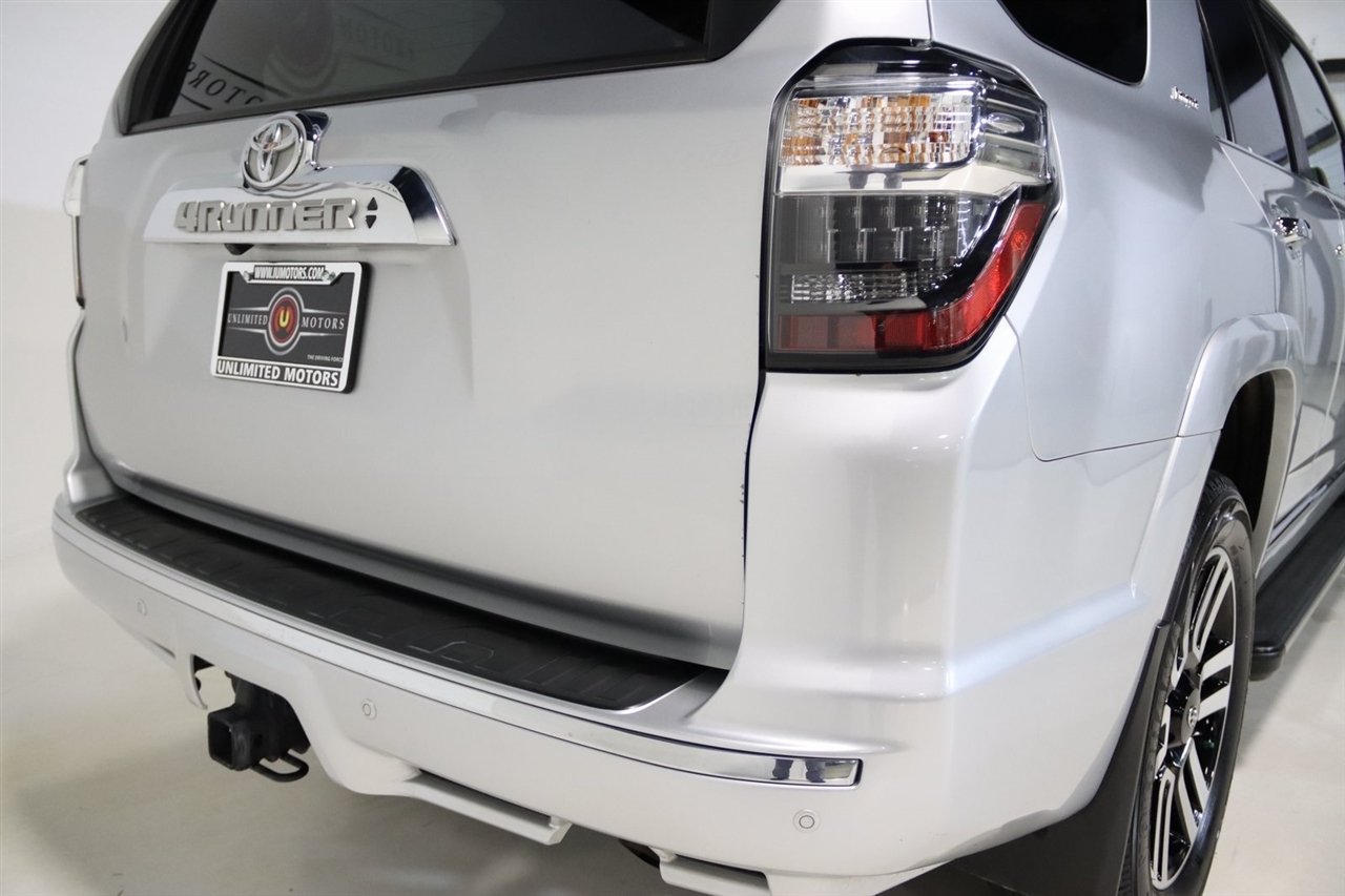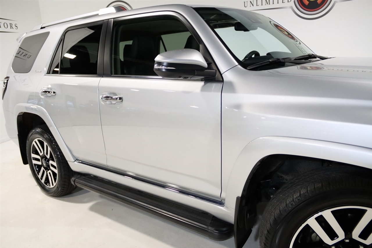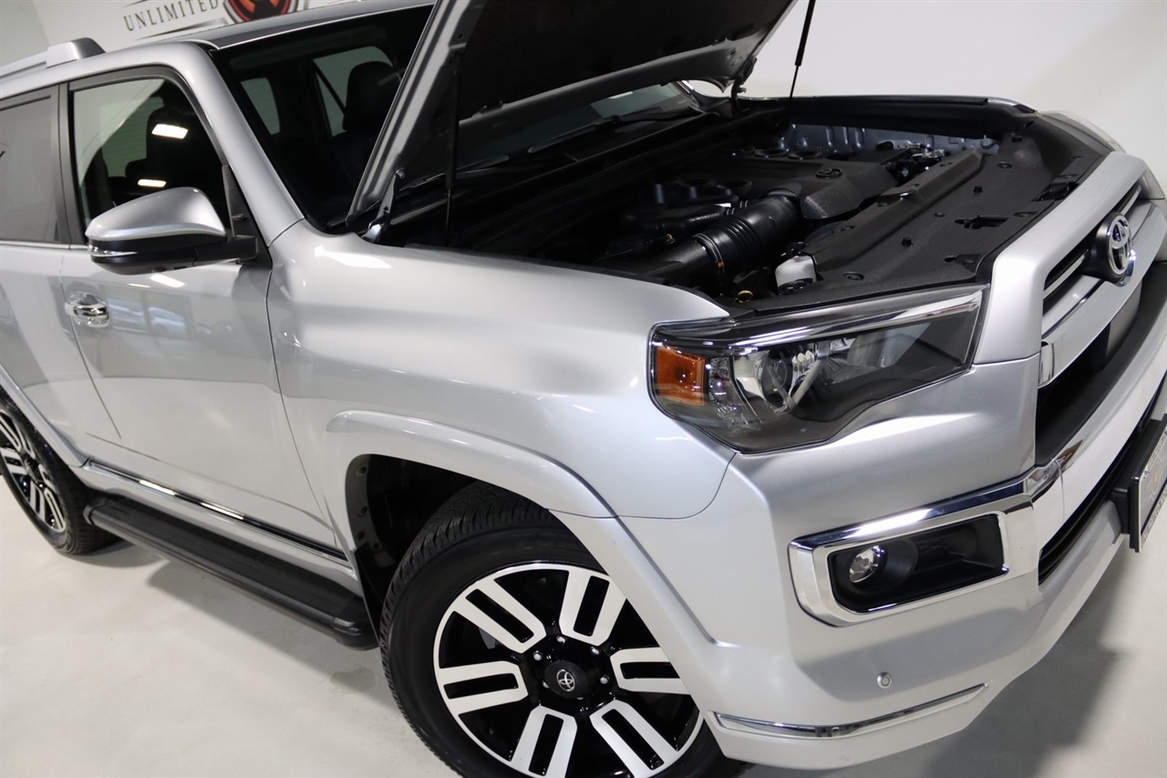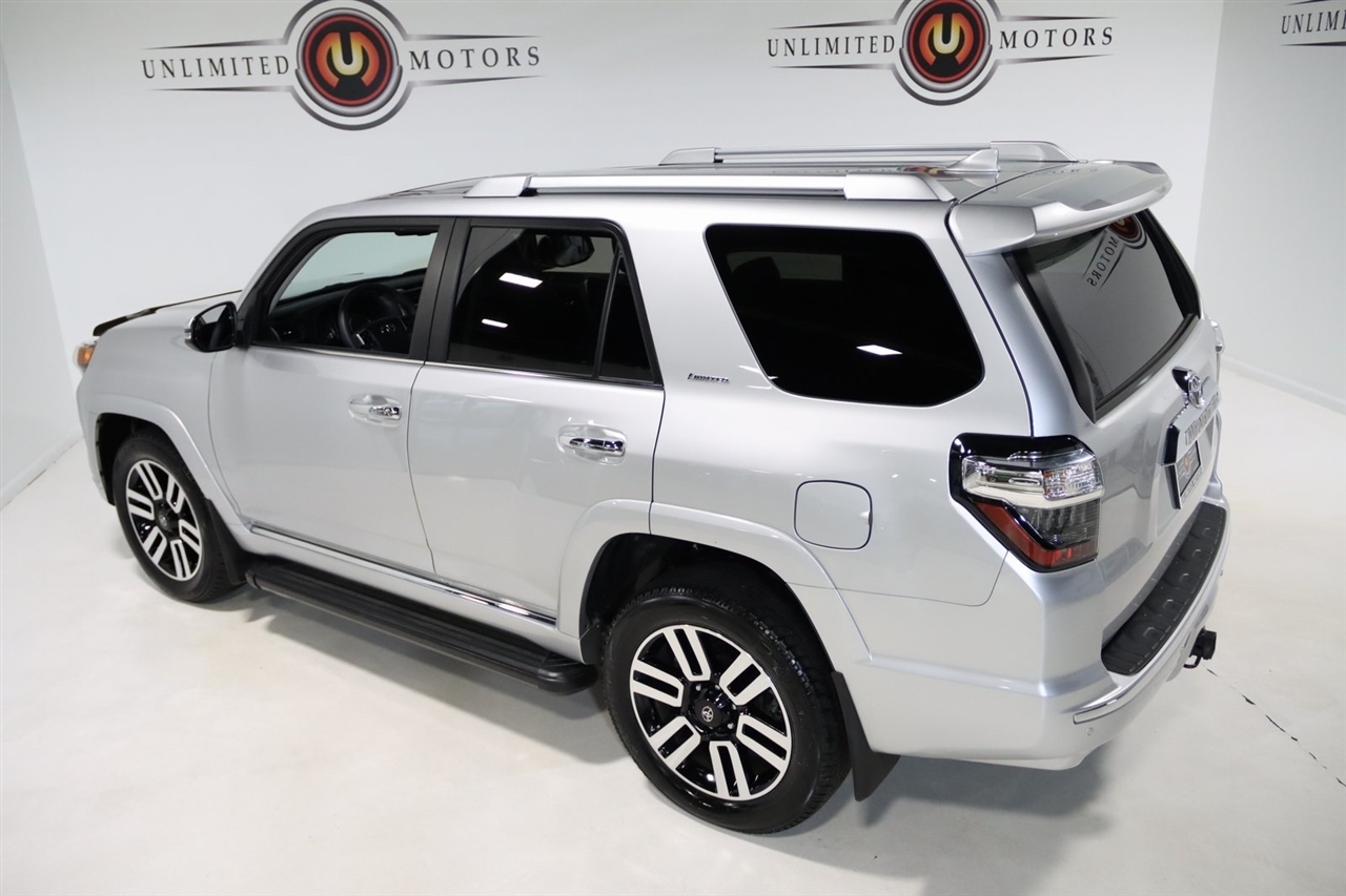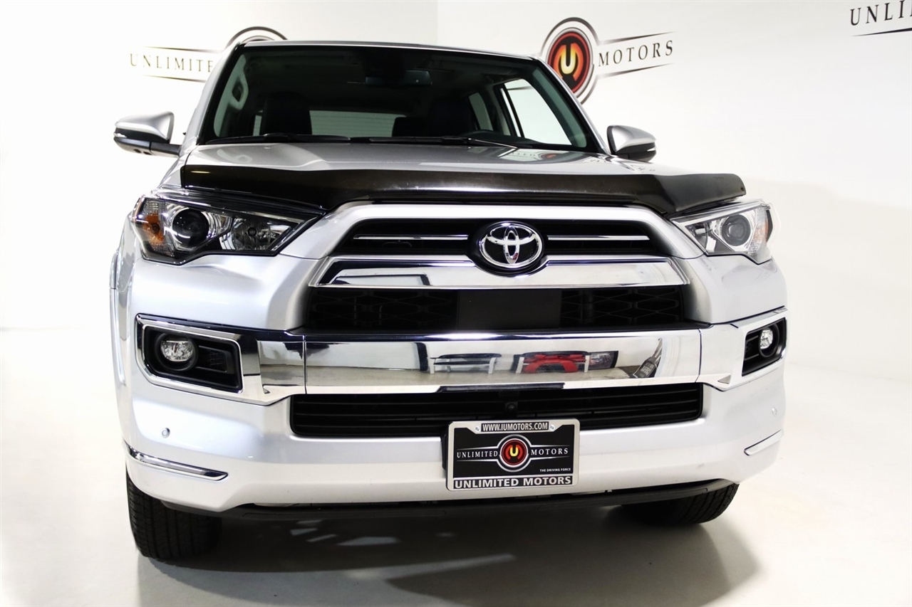 Navigation, Bluetooth, Back Up Camera, Sun/Moon Roof, Towing, Heated Seats, Touch Screen, 15 Speakers, 3.727 Axle Ratio, 4-Wheel Disc Brakes, ABS brakes, Air Conditioning, Alloy wheels, AM/FM radio: SiriusXM, Anti-whiplash front head restraints, Apple CarPlay/Android Auto, Auto High-beam Headlights, Auto-dimming Rear-View mirror, Automatic temperature control, Blind Spot Monitor (BSM), Brake assist, Bumpers: body-color, Compass, Delay-off headlights, Driver door bin, Driver vanity mirror, Dual front impact airbags, Dual front side impact airbags, Dual Zone Auto Climate Control, Electronic Stability Control, Emergency communication system: Safety Connect with 1-year trial, Front anti-roll bar, Front Bucket Seats, Front Center Armrest, Front dual zone A/C, Front fog lights, Front reading lights, Front wheel independent suspension, Fully automatic headlights, Garage Door Opener, Garage door transmitter: HomeLink, Heated door mirrors, Heated front seats, Heated/Ventilated Front Bucket Seats, Illuminated entry, Knee airbag, Leather Seat Trim, Low tire pressure warning, Memory seat, Moonroof w/Tilt Up & Slide, Navigation System, Occupant sensing airbag, Outside Rear View Mirror, Outside temperature display, Overhead airbag, Overhead console, Panic alarm, Panoramic Back Monitor, Passenger door bin, Passenger vanity mirror, Power door mirrors, Power driver seat, Power moonroof, Power passenger seat, Power steering, Power windows, Radio: Premium Audio w/JBL, Rear anti-roll bar, Rear seat center armrest, Rear window defroster, Rear window wiper, Remote keyless entry, Roof rack: rails only, Security system, Silver Roof Rails, Speed control, Speed-sensing steering, Split folding rear seat, Spoiler, Steering wheel mounted audio controls, Tachometer, Telescoping steering wheel, Tilt steering wheel, Traction control, Trip computer, Turn signal indicator mirrors, Variably intermittent wipers, Ventilated front seats, Wheels: 20 Unique Dual 6-Spoke Alloy. CARFAX One-Owner. Clean CARFAX. Odometer is 29575 miles below market average! Priced below KBB Fair Purchase Price!2022 Classic Silver Metallic Toyota 4D Sport Utility 4Runner Limited 4WD 5-Speed with ECT 4.0L V6 DOHC 24VVisit our website www.iumotors.com to view 100s of newer vehicles, more pictures and info, or to apply for financing. Rates are incredibly low for approved credit. We offer extended warranties, protection packages, and insurance. We assure you the best experience at any of our 4 locations and unbeatable prices and quality. At Unlimited Motors we believe in MARKET VALUE PRICING. We use real-time Internet price comparisons to constantly adjust prices to provide ALL BUYERS The BEST PRICE possible. We do not mark them up, to mark them down! Our entire team is committed to helping you buy a car the way we would want to buy a car! We utilize state-of-the-art technology to constantly monitor pricing trends to offer our shoppers the best competitive pricing, value, and experience. We sell and service all makes and models of Pre-owned / Used Vehicles Used Cars, Used Trucks, Used Sport Utility, Lamborghini, Ferrari, Bentley, Rolls Royce, McLaren, Maserati, Ford, Chevrolet/Chevy, Honda, Toyota, Porsche, Land Rover, Jaguar, INFINITI, Audi, Nissan, Mazda, Hyundai, Chrysler, Jeep, Dodge, Ram, SRT, Mitsubishi, Lexus, Kia, Volkswagen, Mini, BMW, Mercedes, Fiat, Volvo, GMC, Cadillac, Lincoln as well as other brands. Proudly serving these areas of Indianapolis, Fishers, Carmel, Noblesville, Greenwood, Avon, Plainfield, Zionsville, & Brownsburg, Indiana, Midwest. We also serve the entire nation with our seamless and easy online purchasing process, and offer shipping nationwide.Advertised prices DO NOT include Sales Tax, Dealer Fees, Title Processing Charges, and Dealer Pre-installed Products.