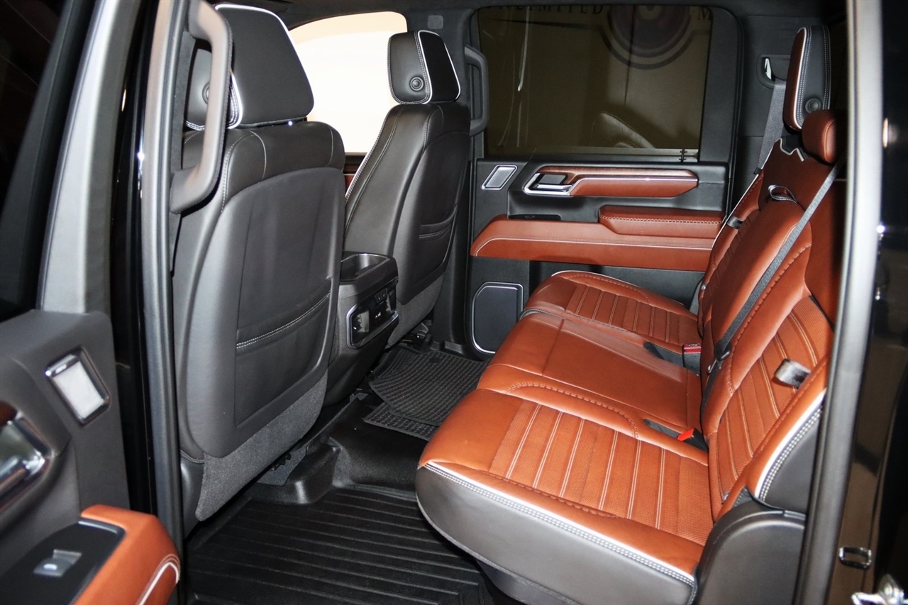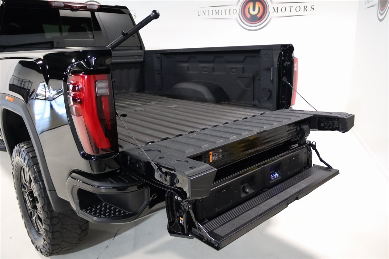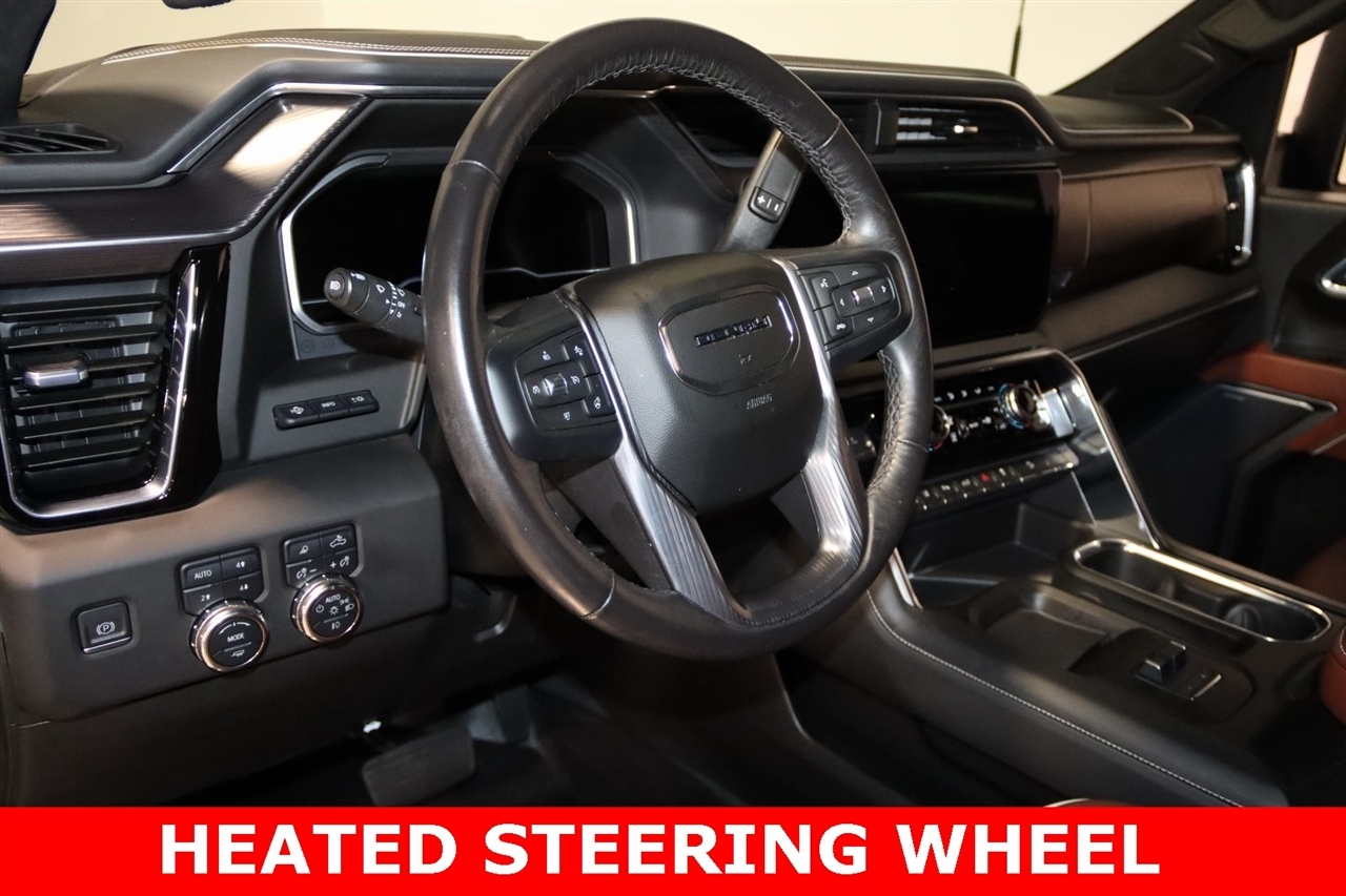 Navigation, Bluetooth, Sun/Moon Roof, Towing, Heated Seats, Touch Screen, 12 Speakers, 120-Volt Bed Mounted Power Outlet, 120-Volt Instrument Panel Power Outlet, 16-Way Power Driver Seat Adjuster w/Lumbar, 16-Way Power Passenger Seat Adjuster w/Lumbar, 2 Charge-Only Rear USB Ports, 2 Charge/Data USB Ports Inside Center Console, 2 USB Ports, 2-Speed Active Transfer Case, 220 Amp Alternator, 3.42 Rear Axle Ratio, 4-Wheel Disc Brakes, ABS brakes, Alloy wheels, AM/FM radio: SiriusXM with 360L, Apple CarPlay/Android Auto, Auto High-beam Headlights, Auto-dimming door mirrors, Auto-Dimming Inside Rearview Mirror w/Camera, Auto-dimming Rear-View mirror, Automatic Emergency Braking, Automatic temperature control, Bed View Camera w/2 Trailer Camera Provisions, Block heater, Bose Premium Series 12-Speaker System, Brake assist, Buckle to Drive, Bumpers: body-color, Compass, Console-Mounted Safe (LPO), Deep-Tinted Glass, Delay-off headlights, Driver door bin, Driver Memory, Driver vanity mirror, Dual front impact airbags, Dual front side impact airbags, Dual Heavy-Duty 70 Amp-Hr Battery, Electric Rear-Window Defogger, Electronic Stability Control, Emergency communication system: OnStar and GMC connected services capable, Floor-Mounted Center Console, Following Distance Indicator, Forward Collision Alert, Front anti-roll bar, Front Bucket Seats, Front Center Armrest, Front dual zone A/C, Front fog lights, Front License Plate Kit, Front Pedestrian Braking, Front Rain-Sensing Wipers, Front reading lights, Front wheel independent suspension, Full Grain Leather Seat Trim, Fully automatic headlights, Garage door transmitter, Genuine wood dashboard insert, Genuine wood door panel insert, GMC Premium 13.4 Diagonal Information Display, Gooseneck/5th Wheel Prep Package, HD Surround Vision, Heads-Up Display, Heated 2nd Row Outboard Seats, Heated door mirrors, Heated Driver & Front Outboard Passenger Seats, Heated front seats, Heated rear seats, Heated steering wheel, Hitch Guidance w/Hitch View, Illuminated entry, In-Vehicle Trailering App, Integrated Trailer Brake Controller, IntelliBeam Automatic High Beam On/Off, Keyless Open & Start, Lane Departure Warning System, Leather steering wheel, LED Cargo Area Lighting, LED Smoked Amber Roof Marker Lamps, Low tire pressure warning, Manual Tilt-Wheel/Telescoping Steering Column, Memory seat, Multicolor 15 Diagonal Head-Up Display, Navigation System, Occupant sensing airbag, Outside temperature display, Overhead airbag, Overhead console, Panic alarm, Passenger door bin, Passenger vanity mirror, Pickup Bed, Power door mirrors, Power driver seat, Power Front Windows w/Passenger Express Up/Down, Power moonroof, Power passenger seat, Power Sliding Rear Window w/Defogger, Power steering, Power Sunroof, Power windows, Preferred Equipment Group 5SB, Premium audio system: Premium GMC Infotainment System, ProGrade Trailering System, Push Button Start, Radio: AM/FM w/Premium GMC Infotainment System, Rain sensing wipers, Rear Cross Traffic Alert, Rear reading lights, Rear seat center armrest, Rear step bumper, Rear Underseat Storage (LPO), Rear Wheelhouse Liners, Rear window defroster, Remote keyless entry, Remote Vehicle Starter System, Safety Alert Seat, Security system, Signature Denali Grille in Vader Chrome, SiriusXM w/360L, Snow Plow Prep/Camper Package, Speed control, Speed-sensing steering, Split folding rear seat, Spray-On Pickup Bedliner w/Denali Logo, Steering Wheel Audio Controls, Steering wheel mounted audio controls, Tachometer, Technology Package, Telescoping steering wheel, Tilt steering wheel, Traction control, Trailer Camera Provisions, Trailer Side Blind Zone Alert, Trailer Tire Pressure Monitor Sensors, Trip computer, Turn signal indicator mirrors, Ultrasonic Front & Rear Park Assist, Unauthorized Entry Theft-Deterrent System, Universal Home Remote, Variably intermittent wipers, Ventilated Driver & Front Passenger Seats, Ventilated front seats, Voltmeter, Wireless Charging, Wireless Phone Projec