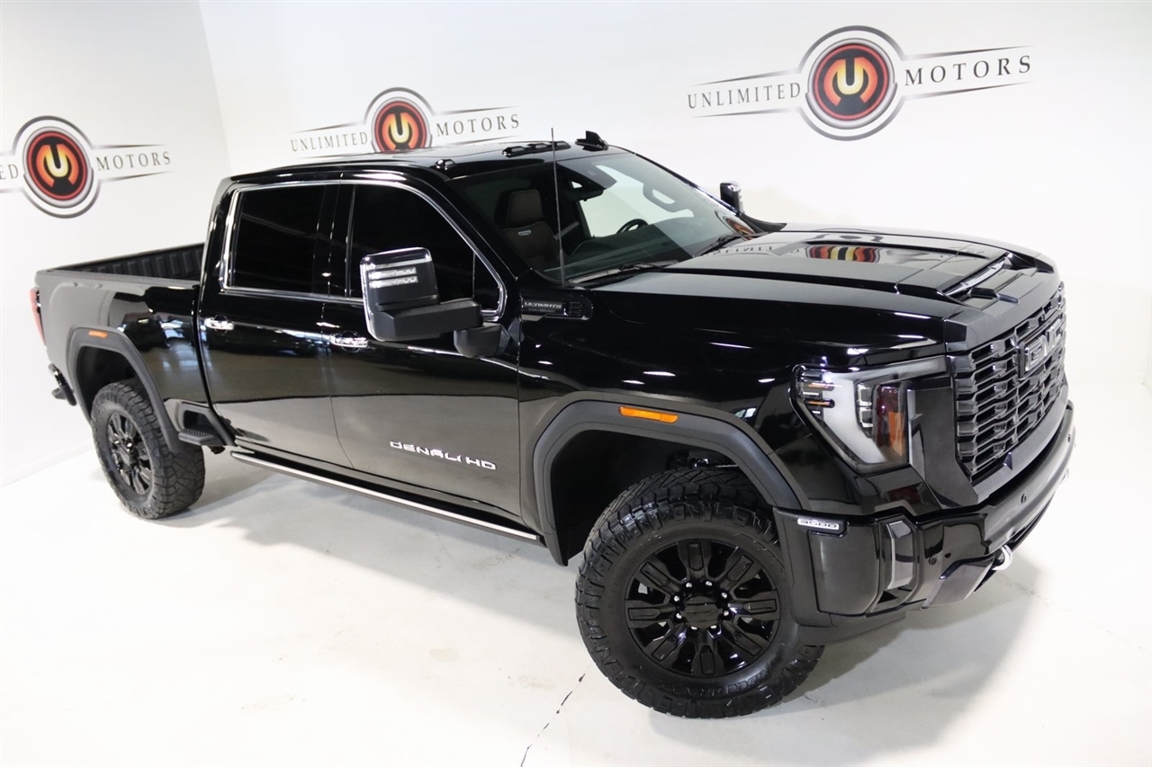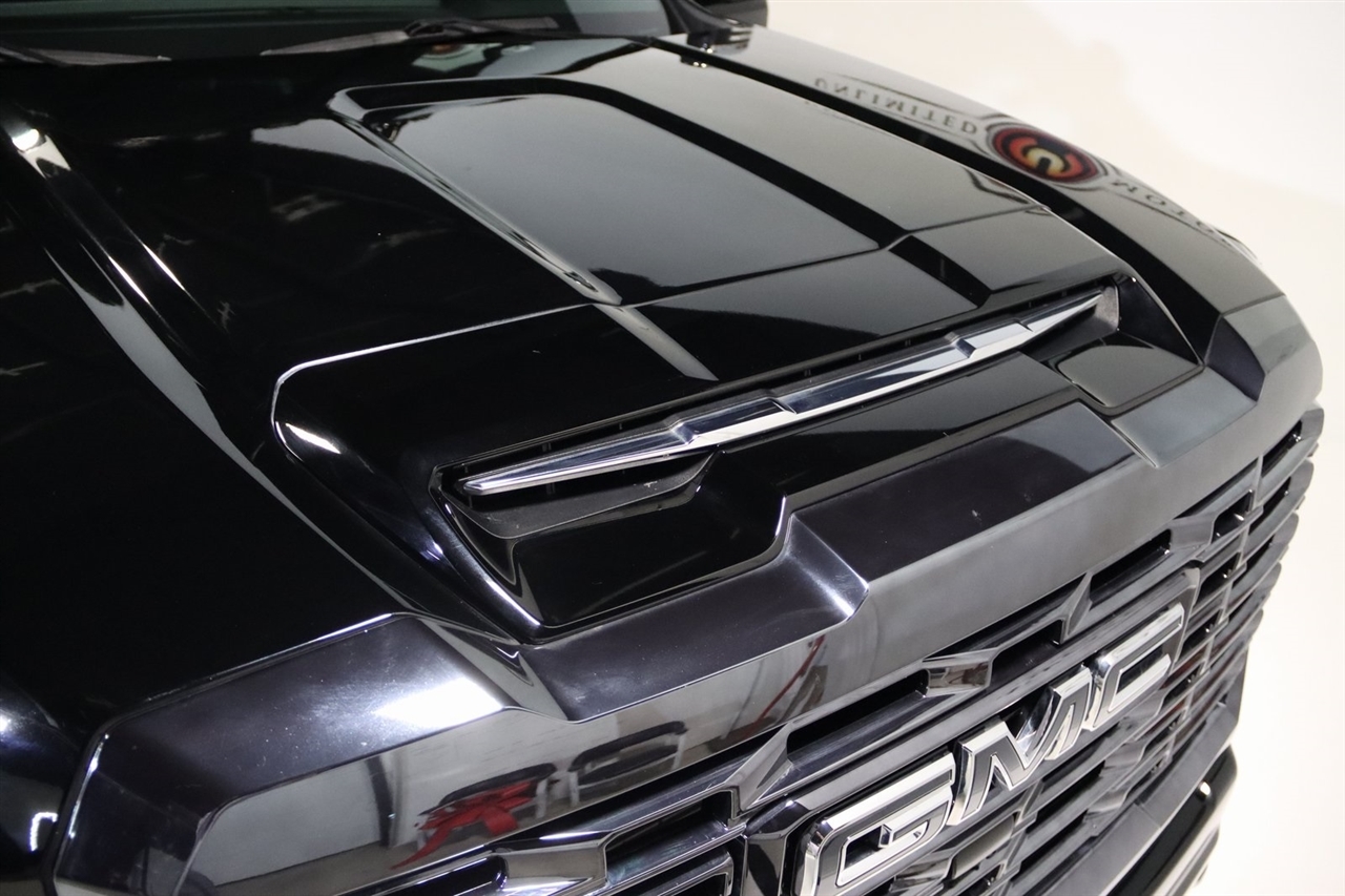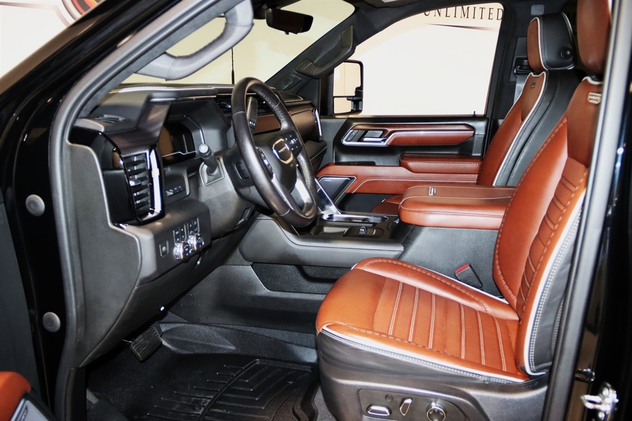 Navigation, Bluetooth, Sun/Moon Roof, Towing, Heated Seats, Touch Screen, 12 Speakers, 120-Volt Bed Mounted Power Outlet, 120-Volt Instrument Panel Power Outlet, 16-Way Power Driver Seat Adjuster w/Lumbar, 16-Way Power Passenger Seat Adjuster w/Lumbar, 2 Charge-Only Rear USB Ports, 2 Charge/Data USB Ports Inside Center Console, 2 USB Ports, 2-Speed Active Transfer Case, 220 Amp Alternator, 3.42 Rear Axle Ratio, 4-Wheel Disc Brakes, ABS brakes, Alloy wheels, AM/FM radio: SiriusXM with 360L, Apple CarPlay/Android Auto, Auto High-beam Headlights, Auto-dimming door mirrors, Auto-Dimming Inside Rearview Mirror w/Camera, Auto-dimming Rear-View mirror, Automatic Emergency Braking, Automatic temperature control, Bed View Camera w/2 Trailer Camera Provisions, Block heater, Bose Premium Series 12-Speaker System, Brake assist, Buckle to Drive, Bumpers: body-color, Compass, Console-Mounted Safe (LPO), Deep-Tinted Glass, Delay-off headlights, Driver door bin, Driver Memory, Driver vanity mirror, Dual front impact airbags, Dual front side impact airbags, Dual Heavy-Duty 70 Amp-Hr Battery, Electric Rear-Window Defogger, Electronic Stability Control, Emergency communication system: OnStar and GMC connected services capable, Floor-Mounted Center Console, Following Distance Indicator, Forward Collision Alert, Front anti-roll bar, Front Bucket Seats, Front Center Armrest, Front dual zone A/C, Front fog lights, Front License Plate Kit, Front Pedestrian Braking, Front Rain-Sensing Wipers, Front reading lights, Front wheel independent suspension, Full Grain Leather Seat Trim, Fully automatic headlights, Garage door transmitter, Genuine wood dashboard insert, Genuine wood door panel insert, GMC Premium 13.4 Diagonal Information Display, Gooseneck/5th Wheel Prep Package, HD Surround Vision, Heads-Up Display, Heated 2nd Row Outboard Seats, Heated door mirrors, Heated Driver & Front Outboard Passenger Seats, Heated front seats, Heated rear seats, Heated steering wheel, Hitch Guidance w/Hitch View, Illuminated entry, In-Vehicle Trailering App, Integrated Trailer Brake Controller, IntelliBeam Automatic High Beam On/Off, Keyless Open & Start, Lane Departure Warning System, Leather steering wheel, LED Cargo Area Lighting, LED Smoked Amber Roof Marker Lamps, Low tire pressure warning, Manual Tilt-Wheel/Telescoping Steering Column, Memory seat, Multicolor 15 Diagonal Head-Up Display, Navigation System, Occupant sensing airbag, Outside temperature display, Overhead airbag, Overhead console, Panic alarm, Passenger door bin, Passenger vanity mirror, Pickup Bed, Power door mirrors, Power driver seat, Power Front Windows w/Passenger Express Up/Down, Power moonroof, Power passenger seat, Power Sliding Rear Window w/Defogger, Power steering, Power Sunroof, Power windows, Preferred Equipment Group 5SB, Premium audio system: Premium GMC Infotainment System, ProGrade Trailering System, Push Button Start, Radio: AM/FM w/Premium GMC Infotainment System, Rain sensing wipers, Rear Cross Traffic Alert, Rear reading lights, Rear seat center armrest, Rear step bumper, Rear Underseat Storage (LPO), Rear Wheelhouse Liners, Rear window defroster, Remote keyless entry, Remote Vehicle Starter System, Safety Alert Seat, Security system, Signature Denali Grille in Vader Chrome, SiriusXM w/360L, Snow Plow Prep/Camper Package, Speed control, Speed-sensing steering, Split folding rear seat, Spray-On Pickup Bedliner w/Denali Logo, Steering Wheel Audio Controls, Steering wheel mounted audio controls, Tachometer, Technology Package, Telescoping steering wheel, Tilt steering wheel, Traction control, Trailer Camera Provisions, Trailer Side Blind Zone Alert, Trailer Tire Pressure Monitor Sensors, Trip computer, Turn signal indicator mirrors, Ultrasonic Front & Rear Park Assist, Unauthorized Entry Theft-Deterrent System, Universal Home Remote, Variably intermittent wipers, Ventilated Driver & Front Passenger Seats, Ventilated front seats, Voltmeter, Wireless Charging, Wireless Phone Projec