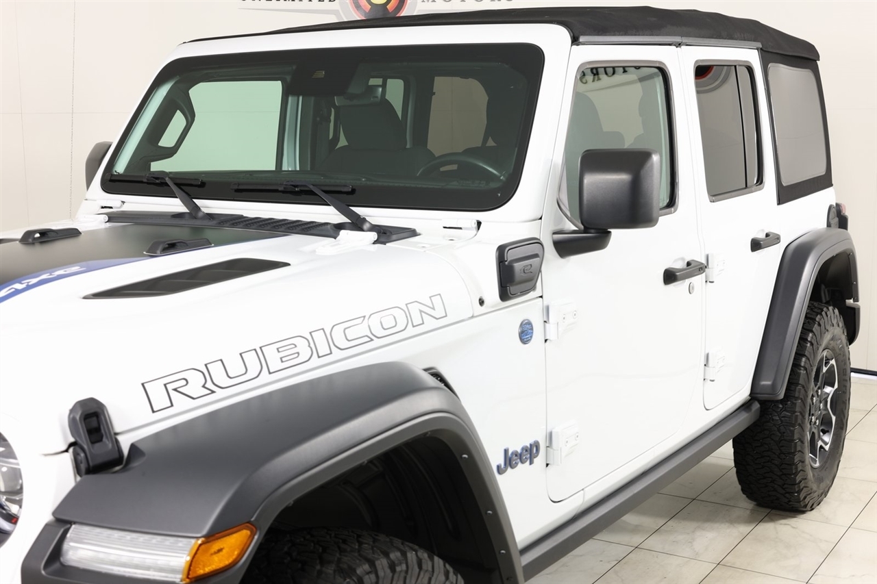 Navigation, Back Up Camera, Bluetooth, Touch Screen, Clean Carfax. Odometer is 14999 miles below market average! Priced below KBB Fair Purchase Price!2022 Bright White Clearcoat Jeep 4D Sport Utility Wrangler Unlimited Rubicon 4xe 4WD 8-Speed Automatic 2.0L I4 DOHCVisit our website www.iumotors.com to view 100s of newer vehicles, more pictures and info, or to apply for financing. Rates are incredibly low for approved credit. We offer extended warranties, protection packages, and insurance. We assure you the best experience at any of our 4 locations and unbeatable prices and quality. At Unlimited Motors we believe in MARKET VALUE PRICING. We use real-time Internet price comparisons to constantly adjust prices to provide ALL BUYERS The BEST PRICE possible. We do not mark them up, to mark them down! Our entire team is committed to helping you buy a car the way we would want to buy a car! We utilize state-of-the-art technology to constantly monitor pricing trends to offer our shoppers the best competitive pricing, value, and experience. We sell and service all makes and models of Pre-owned / Used Vehicles Used Cars, Used Trucks, Used Sport Utility, Lamborghini, Ferrari, Bentley, Rolls Royce, McLaren, Maserati, Ford, Chevrolet/Chevy, Honda, Toyota, Porsche, Land Rover, Jaguar, INFINITI, Audi, Nissan, Mazda, Hyundai, Chrysler, Jeep, Dodge, Ram, SRT, Mitsubishi, Lexus, Kia, Volkswagen, Mini, BMW, Mercedes, Fiat, Volvo, GMC, Cadillac, Lincoln as well as other brands. Proudly serving these areas of Indianapolis, Fishers, Carmel, Noblesville, Greenwood, Avon, Plainfield, Zionsville, & Brownsburg, Indiana, Midwest. We also serve the entire nation with our seamless and easy online purchasing process, and offer shipping nationwide.Advertised prices DO NOT include Sales Tax, Dealer Fees, Title Processing Charges, and Dealer Pre-installed Products.