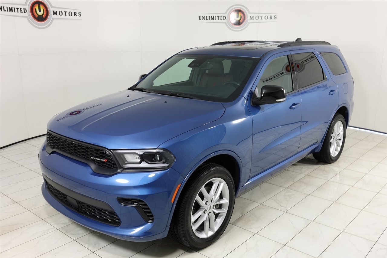 Navigation, Back Up Camera, Sunroof, Bluetooth, Towing, Touch Screen, Heated Seats, Heated Steering Wheel, Power Lift Gate, Apple Car Play, Low Miles, Lane Assist. Odometer is 13258 miles below market average! Priced below KBB Fair Purchase Price!2024 Frostbite Pearlcoat Dodge 4D Sport Utility Durango GT Plus AWD 8-Speed Automatic 3.6L V6 24V VVTVisit our website www.iumotors.com to view 100s of newer vehicles, more pictures and info, or to apply for financing. Rates are incredibly low for approved credit. We offer extended warranties, protection packages, and insurance. We assure you the best experience at any of our 4 locations and unbeatable prices and quality. At Unlimited Motors we believe in MARKET VALUE PRICING. We use real-time Internet price comparisons to constantly adjust prices to provide ALL BUYERS The BEST PRICE possible. We do not mark them up, to mark them down! Our entire team is committed to helping you buy a car the way we would want to buy a car! We utilize state-of-the-art technology to constantly monitor pricing trends to offer our shoppers the best competitive pricing, value, and experience. We sell and service all makes and models of Pre-owned / Used Vehicles Used Cars, Used Trucks, Used Sport Utility, Lamborghini, Ferrari, Bentley, Rolls Royce, McLaren, Maserati, Ford, Chevrolet/Chevy, Honda, Toyota, Porsche, Land Rover, Jaguar, INFINITI, Audi, Nissan, Mazda, Hyundai, Chrysler, Jeep, Dodge, Ram, SRT, Mitsubishi, Lexus, Kia, Volkswagen, Mini, BMW, Mercedes, Fiat, Volvo, GMC, Cadillac, Lincoln as well as other brands. Proudly serving these areas of Indianapolis, Fishers, Carmel, Noblesville, Greenwood, Avon, Plainfield, Zionsville, & Brownsburg, Indiana, Midwest. We also serve the entire nation with our seamless and easy online purchasing process, and offer shipping nationwide.Advertised prices DO NOT include Sales Tax, Dealer Fees, Title Processing Charges, and Dealer Pre-installed Products.