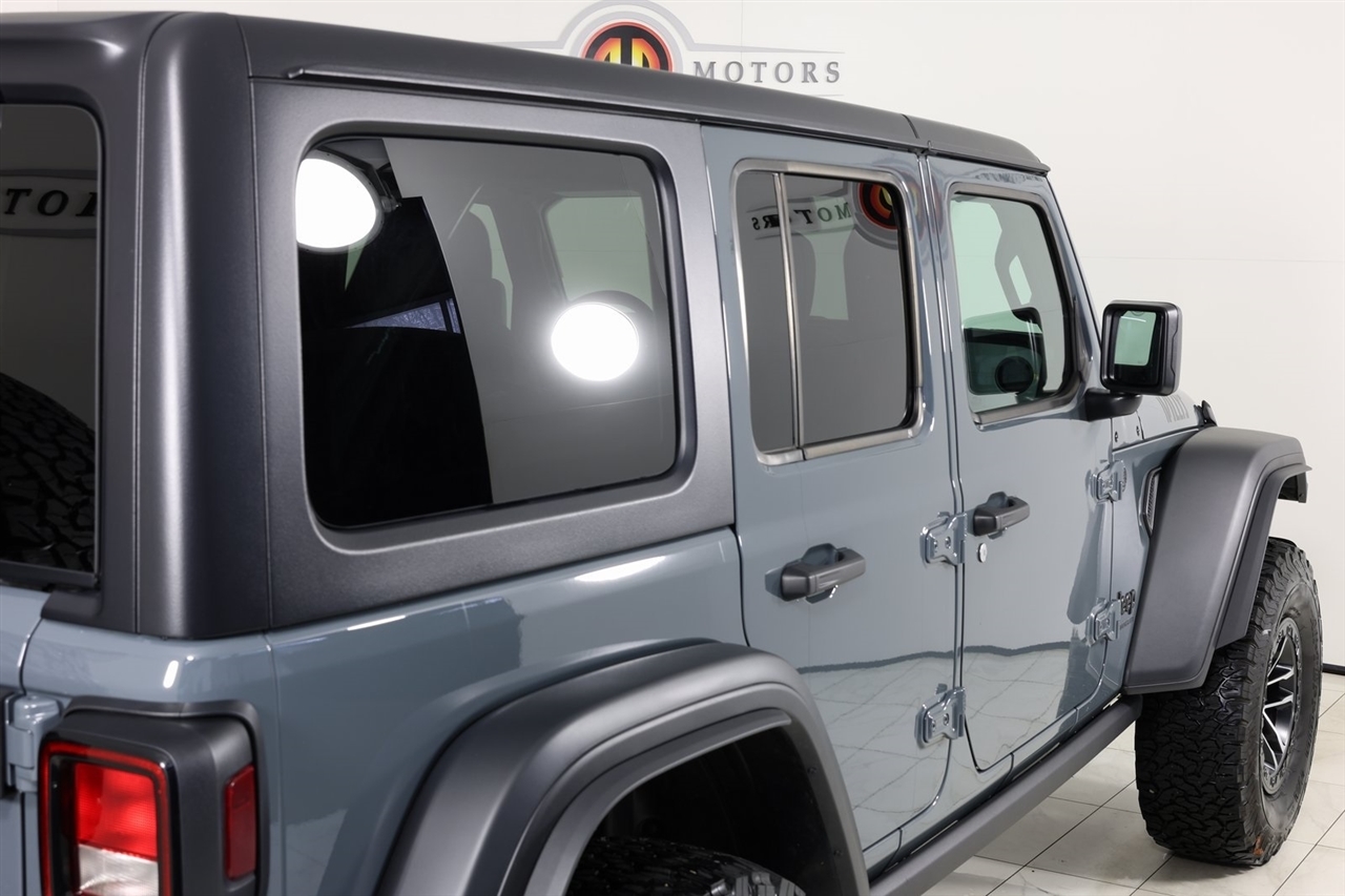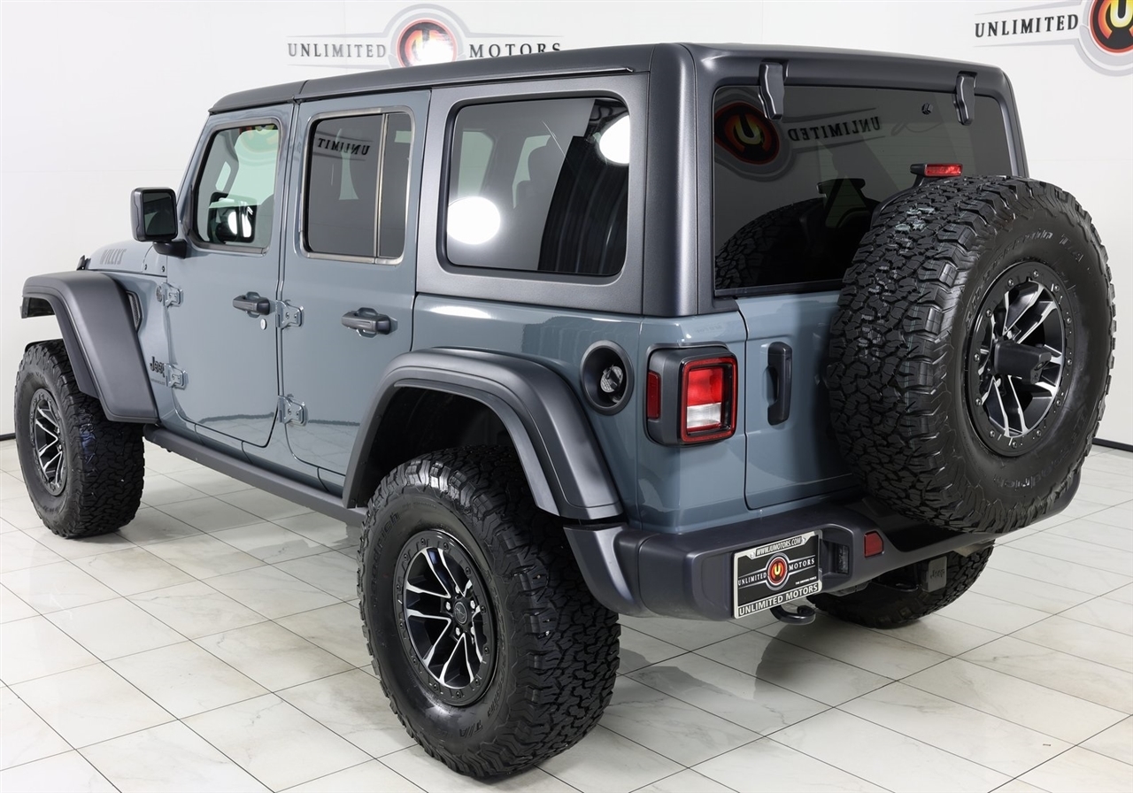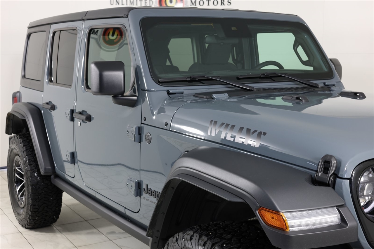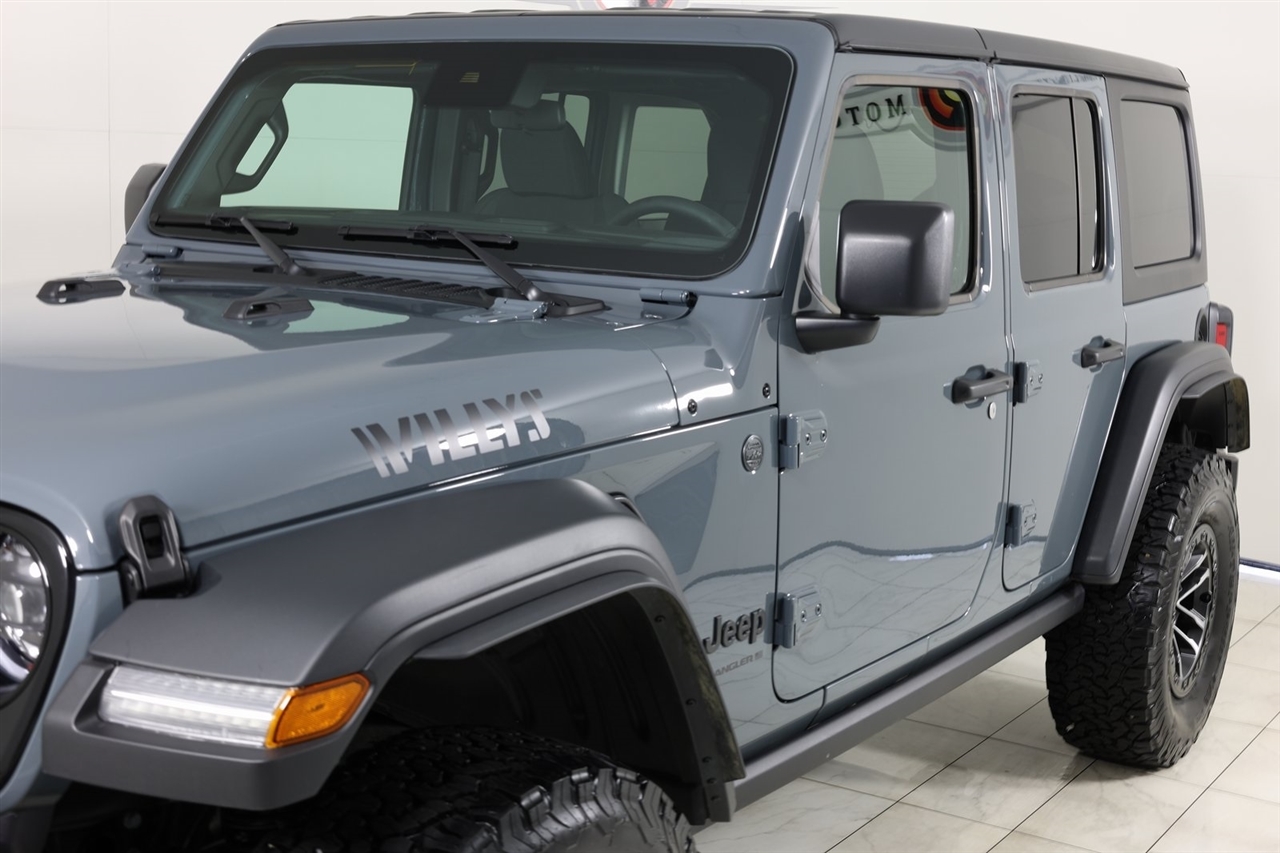 Back Up Camera, Bluetooth, Towing, Touch Screen, 1-Owner, Clean Carfax, Low Miles. Odometer is 4677 miles below market average!2025 Anvil Clear Coat Jeep 4D Sport Utility Wrangler Willys 4WD 8-Speed Automatic 3.6L V6 24V VVTVisit our website www.iumotors.com to view 100s of newer vehicles, more pictures and info, or to apply for financing. Rates are incredibly low for approved credit. We offer extended warranties, protection packages, and insurance. We assure you the best experience at any of our 4 locations and unbeatable prices and quality. At Unlimited Motors we believe in MARKET VALUE PRICING. We use real-time Internet price comparisons to constantly adjust prices to provide ALL BUYERS The BEST PRICE possible. We do not mark them up, to mark them down! Our entire team is committed to helping you buy a car the way we would want to buy a car! We utilize state-of-the-art technology to constantly monitor pricing trends to offer our shoppers the best competitive pricing, value, and experience. We sell and service all makes and models of Pre-owned / Used Vehicles Used Cars, Used Trucks, Used Sport Utility, Lamborghini, Ferrari, Bentley, Rolls Royce, McLaren, Maserati, Ford, Chevrolet/Chevy, Honda, Toyota, Porsche, Land Rover, Jaguar, INFINITI, Audi, Nissan, Mazda, Hyundai, Chrysler, Jeep, Dodge, Ram, SRT, Mitsubishi, Lexus, Kia, Volkswagen, Mini, BMW, Mercedes, Fiat, Volvo, GMC, Cadillac, Lincoln as well as other brands. Proudly serving these areas of Indianapolis, Fishers, Carmel, Noblesville, Greenwood, Avon, Plainfield, Zionsville, & Brownsburg, Indiana, Midwest. We also serve the entire nation with our seamless and easy online purchasing process, and offer shipping nationwide.Advertised prices DO NOT include Sales Tax, Dealer Fees, Title Processing Charges, and Dealer Pre-installed Products.
