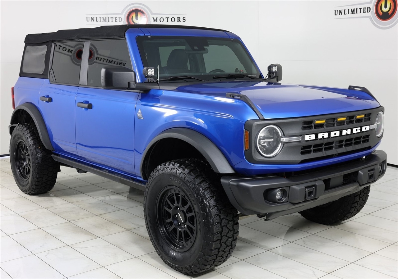 Back Up Camera, Bluetooth, Towing, Touch Screen, Apple Car Play, Clean Carfax. Priced below KBB Fair Purchase Price!2022 Velocity Blue Metallic Ford 4D Sport Utility Bronco Black Diamond 4WD 10-Speed Automatic 2.3L EcoBoost I-4Awards: * NACTOY 2022 North American Utility of the YearVisit our website www.iumotors.com to view 100s of newer vehicles, more pictures and info, or to apply for financing. Rates are incredibly low for approved credit. We offer extended warranties, protection packages, and insurance. We assure you the best experience at any of our 4 locations and unbeatable prices and quality. At Unlimited Motors we believe in MARKET VALUE PRICING. We use real-time Internet price comparisons to constantly adjust prices to provide ALL BUYERS The BEST PRICE possible. We do not mark them up, to mark them down! Our entire team is committed to helping you buy a car the way we would want to buy a car! We utilize state-of-the-art technology to constantly monitor pricing trends to offer our shoppers the best competitive pricing, value, and experience. We sell and service all makes and models of Pre-owned / Used Vehicles Used Cars, Used Trucks, Used Sport Utility, Lamborghini, Ferrari, Bentley, Rolls Royce, McLaren, Maserati, Ford, Chevrolet/Chevy, Honda, Toyota, Porsche, Land Rover, Jaguar, INFINITI, Audi, Nissan, Mazda, Hyundai, Chrysler, Jeep, Dodge, Ram, SRT, Mitsubishi, Lexus, Kia, Volkswagen, Mini, BMW, Mercedes, Fiat, Volvo, GMC, Cadillac, Lincoln as well as other brands. Proudly serving these areas of Indianapolis, Fishers, Carmel, Noblesville, Greenwood, Avon, Plainfield, Zionsville, & Brownsburg, Indiana, Midwest. We also serve the entire nation with our seamless and easy online purchasing process, and offer shipping nationwide.Advertised prices DO NOT include Sales Tax, Dealer Fees, Title Processing Charges, and Dealer Pre-installed Products.