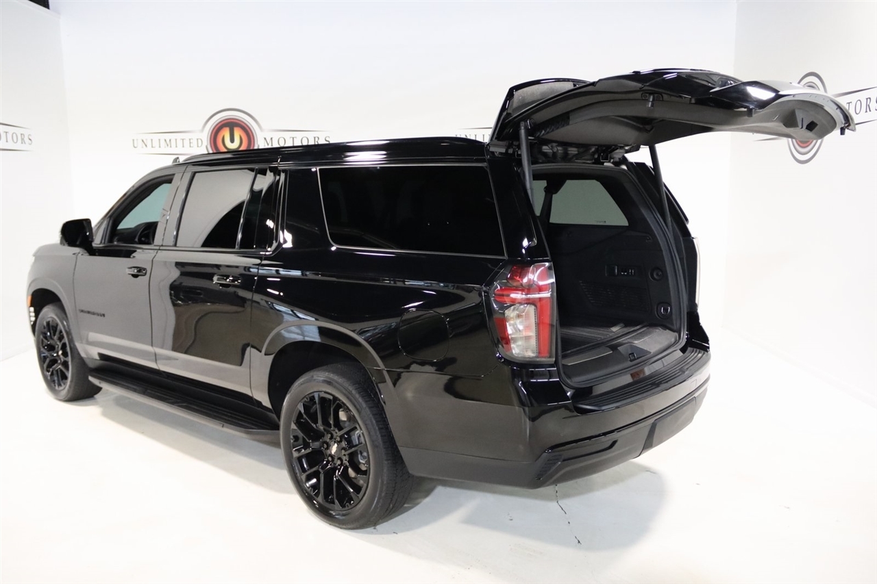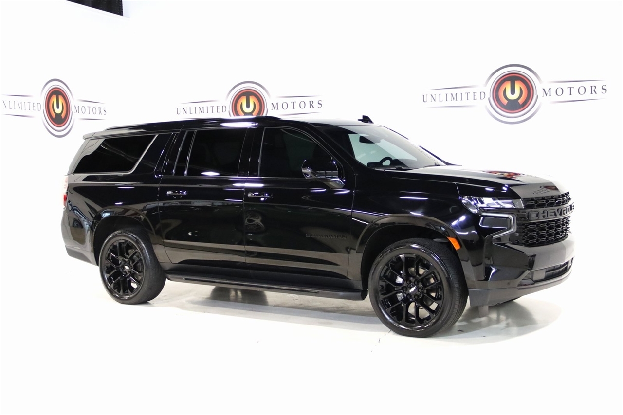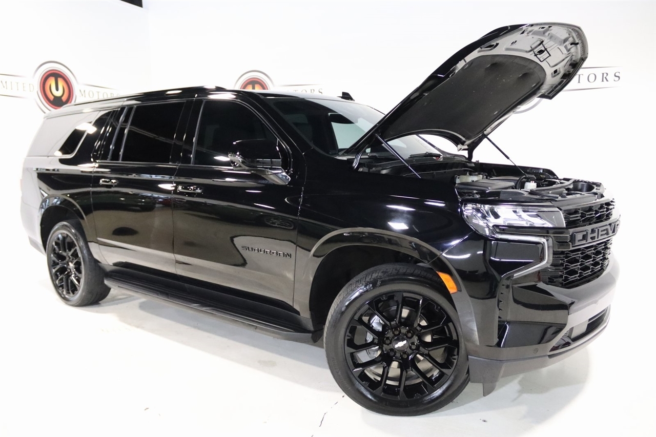 Bluetooth, Back Up Camera, 3rd Row, Heated Seats, Touch Screen, 10-Way Power Driver & Passenger Seat Adjusters, 1st & 2nd Row Color-Keyed Carpeted Floor Mats, 2-Speed Active Electronic AutoTrac Transfer Case, 2nd Row Pwr Release 60/40 Split-Folding Bench Seat, 3.23 Rear Axle Ratio, 3rd Row 60/40 Power-Folding Split-Bench, 3rd row seats: split-bench, 4-Wheel Disc Brakes, 9 Speakers, ABS brakes, Adaptive Cruise Control, Advanced Trailering Package, Air Conditioning, Alloy wheels, AM/FM radio: SiriusXM with 360L, Apple CarPlay/Android Auto, Auto High-beam Headlights, Auto-Dimming Inside Rear-View Mirror, Auto-dimming Rear-View mirror, Automatic temperature control, Black Grille w/Chevrolet Lettering (LPO) (DISC), Bose 9-Speaker Stereo Audio System Feature, Brake assist, Bright Front & Rear Door Sill Plates, Bumpers: body-color, Color-Keyed Carpeting Floor Covering, Compass, Delay-off headlights, Driver & Front Outboard Passenger Airbags, Driver Alert Package, Driver door bin, Driver vanity mirror, Dual front impact airbags, Dual front side impact airbags, Electronic Stability Control, Emergency communication system: OnStar and Chevrolet connected services capable, Engine Block Heater, Enhanced Automatic Emergency Braking, Enhanced Driver Information Center, Extra Capacity Cooling System, Floor Console w/Storage Area, Four wheel independent suspension, Front anti-roll bar, Front Bucket Seats, Front Center Armrest, Front dual zone A/C, Front reading lights, Fully automatic headlights, Garage door transmitter, Hands-Free Rear Power Programmable Liftgate, HD Surround Vision, Heated 2nd Row Outboard Seats, Heated door mirrors, Heated Driver & Front Passenger Seats, Heated front seats, Heated Steering Wheel, Hitch Guidance w/Hitch View, Illuminated entry, Infotainment Display, Integrated Trailer Brake Controller, Lane Change Alert w/Side Blind Zone Alert, LED Daytime Running Lamps, Low tire pressure warning, Luxury Package, Max Trailering Package, Memory seat, Memory Settings, Memory Settings For Driver, Not Equipped w/Wireless Charging, Occupant sensing airbag, Outside Heated Power-Adjustable Mirrors, Outside temperature display, Overhead airbag, Overhead console, Panic alarm, Passenger door bin, Passenger vanity mirror, Perforated Leather Seating Surfaces, Power door mirrors, Power driver seat, Power Liftgate, Power passenger seat, Power Release 2nd Row Bucket Seats, Power steering, Power Tilt & Telescopic Steering Column, Power windows, Preferred Equipment Group 1SP, Premium audio system: Chevrolet Infotainment 3 Premium, Premium Smooth Ride Suspension, Radio: Chevrolet Infotainment 3 Premium System, Rain sensing wipers, Rear air conditioning, Rear anti-roll bar, Rear Cross Traffic Alert, Rear Pedestrian Alert, Rear reading lights, Rear seat center armrest, Rear window defroster, Rear window wiper, Remote keyless entry, Remote Start, Roof rack: rails only, Security system, SiriusXM Radio w/360L, Smart Trailer Integration Indicator, Speed control, Speed-sensing steering, Split folding rear seat, Spoiler, Steering wheel mounted audio controls, Tachometer, Telescoping steering wheel, Tilt steering wheel, Traction control, Trip computer, Universal Home Remote, Variably intermittent wipers, Voltmeter, Wireless Charging, Wrapped Steering Wheel. Clean CARFAX. Odometer is 2617 miles below market average!2023 Black Chevrolet 4D Sport Utility Suburban RST 4WD 10-Speed Automatic with Overdrive EcoTec3 5.3L V8Visit our website www.iumotors.com to view 100s of newer vehicles, more pictures and info, or to apply for financing. Rates are incredibly low for approved credit. We offer extended warranties, protection packages, and insurance. We assure you the best experience at any of our 4 locations and unbeatable prices and quality. At Unlimited Motors we believe in MARKET VALUE PRICING. We use real-time Internet price comparisons to constantly adjust prices to provide ALL BUYERS The BEST PRICE possible. We do not mark the