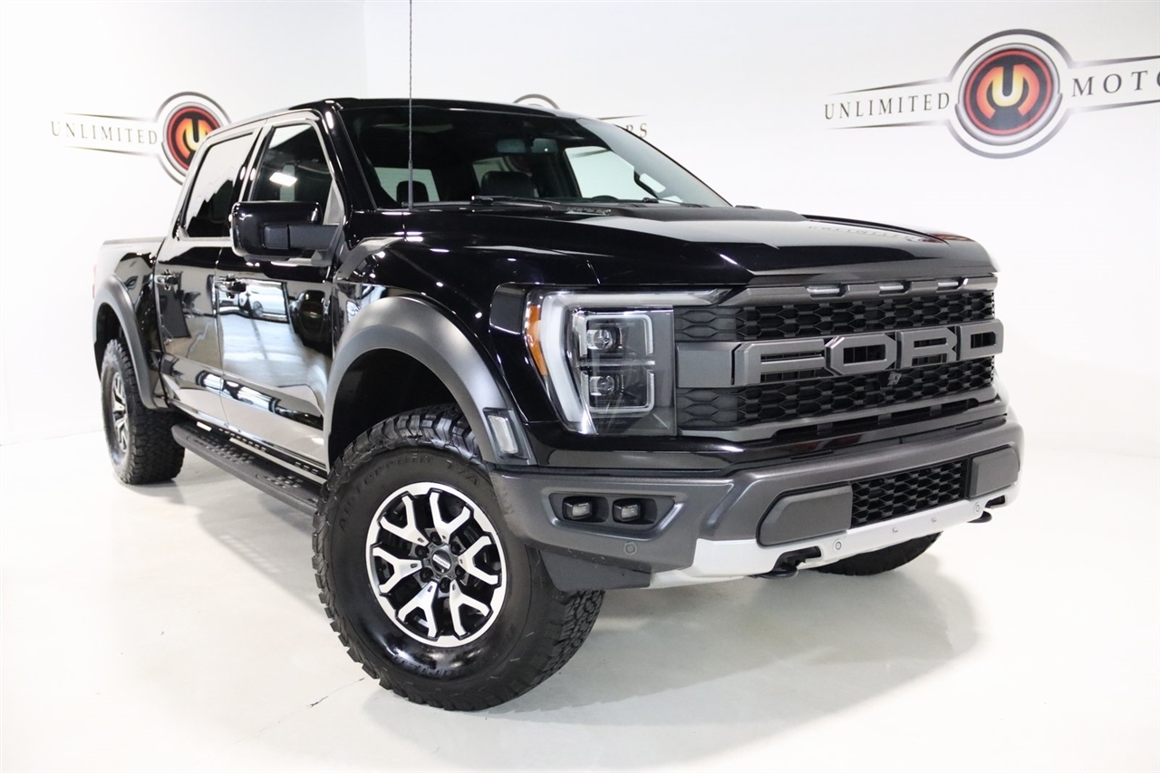Navigation, Bluetooth, Back Up Camera, Sun/Moon Roof, Towing, Heated Seats, 17 Cast Aluminum Wheels, 360 Degree Camera, 4-Wheel Disc Brakes, 7 Speakers, ABS brakes, Adaptive suspension, Adjustable pedals, Air Conditioning, Alloy wheels, AM/FM radio: SiriusXM with 360L, Auto High-beam Headlights, Auto Start-Stop Removal, Auto-dimming door mirrors, Auto-dimming Rear-View mirror, Automatic temperature control, Brake assist, Bumpers: body-color, Compass, Connected Built-In Navigation, Convenience Package, Delay-off headlights, Driver door bin, Driver vanity mirror, Dual front impact airbags, Dual front side impact airbags, Electronic Locking w/4.10 Axle Ratio, Electronic Stability Control, Emergency communication system, Equipment Group 801A High, Exterior Parking Camera Rear, Forward Sensing System, Front anti-roll bar, Front Bucket Seats, Front Center Armrest, Front dual zone A/C, Front reading lights, Front wheel independent suspension, Front-Axle w/Torsen Differential, Fully automatic headlights, GVWR: 7,050 lbs Payload Package, Heated door mirrors, Heated front seats, Heated Steering Wheel, Illuminated entry, Integrated Trailer Brake Controller, Interior Work Surface, Lane Departure Warning System, Leather Trim Seats, Leather Trim Seats w/Heated 2nd Row, LED Projector w/Dynamic Bending Headlamps, Low tire pressure warning, Memory seat, Moonroof & Tailgate, Navigation System, Navigation system: Connected Navigation, Occupant sensing airbag, Outside temperature display, Overhead airbag, Overhead console, Panic alarm, Partitioned Lockable Fold-Flat Storage, Passenger door bin, Passenger vanity mirror, Pedal memory, Power door mirrors, Power driver seat, Power passenger seat, Power steering, Power Tailgate, Power Tilt/Telescoping Steering Column w/Memory, Power windows, Pro Power Onboard - 2KW, Radio data system, Radio: AM/FM SiriusXM w/360L, Radio: B&O Unleashed Sound System by Bang & Olufsen, Rain-Sensing Wipers, Rear reading lights, Rear step bumper, Rear window defroster, Remote keyless entry, Rigid LED Fog Lamp, Security system, Speed control, Speed-sensing steering, Split folding rear seat, Steering wheel mounted audio controls, SYNC 4 w/Enhanced Voice Recognition, Tachometer, Tailgate Applique FORD, Telescoping steering wheel, Tilt steering wheel, Torsen Package, Tough Bed Spray-In Bedliner, Tow Technology Package, Traction control, Trip computer, Turn signal indicator mirrors, Twin Panel Moonroof, Universal Garage Door Opener, Variably intermittent wipers, Ventilated front seats, Wireless Charging Pad. CARFAX One-Owner.2022 Agate Black Metallic Ford 4D SuperCrew F-150 Raptor 4WD 10-Speed Automatic 3.5L V6 EcoBoostVisit our website www.iumotors.com to view 100s of newer vehicles, more pictures and info, or to apply for financing. Rates are incredibly low for approved credit. We offer extended warranties, protection packages, and insurance. We assure you the best experience at any of our 4 locations and unbeatable prices and quality. At Unlimited Motors we believe in MARKET VALUE PRICING. We use real-time Internet price comparisons to constantly adjust prices to provide ALL BUYERS The BEST PRICE possible. We do not mark them up, to mark them down! Our entire team is committed to helping you buy a car the way we would want to buy a car! We utilize state-of-the-art technology to constantly monitor pricing trends to offer our shoppers the best competitive pricing, value, and experience. We sell and service all makes and models of Pre-owned / Used Vehicles Used Cars, Used Trucks, Used Sport Utility, Lamborghini, Ferrari, Bentley, Rolls Royce, McLaren, Maserati, Ford, Chevrolet/Chevy, Honda, Toyota, Porsche, Land Rover, Jaguar, INFINITI, Audi, Nissan, Mazda, Hyundai, Chrysler, Jeep, Dodge, Ram, SRT, Mitsubishi, Lexus, Kia, Volkswagen, Mini, BMW, Mercedes, Fiat, Volvo, GMC, Cadillac, Lincoln as well as other brands. Proudly serving these areas of Indianapolis, Fishers, Carmel, Noblesville, Greenwood, A