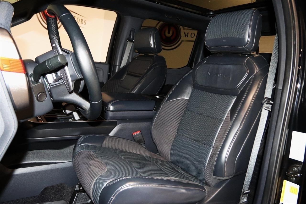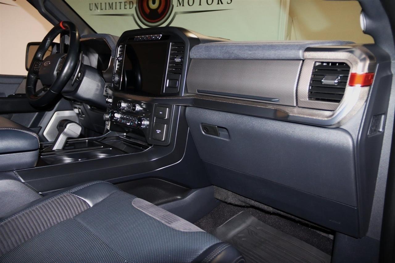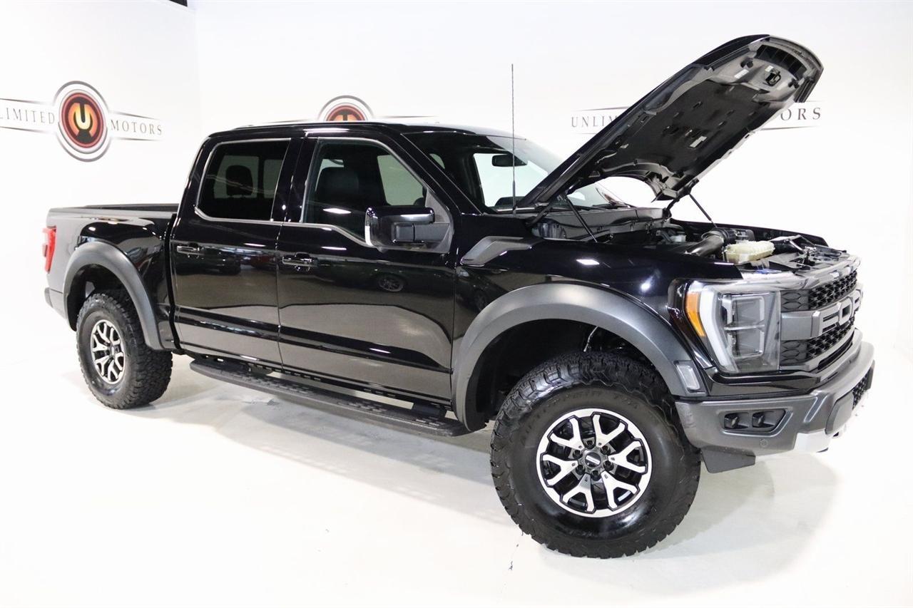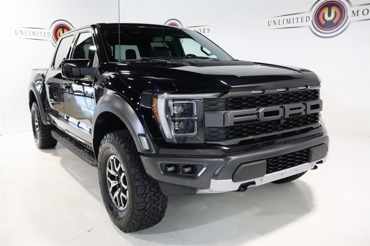 Navigation, Bluetooth, Back Up Camera, Sun/Moon Roof, Towing, Heated Seats, 17 Cast Aluminum Wheels, 360 Degree Camera, 4-Wheel Disc Brakes, 7 Speakers, ABS brakes, Adaptive suspension, Adjustable pedals, Air Conditioning, Alloy wheels, AM/FM radio: SiriusXM with 360L, Auto High-beam Headlights, Auto Start-Stop Removal, Auto-dimming door mirrors, Auto-dimming Rear-View mirror, Automatic temperature control, Brake assist, Bumpers: body-color, Compass, Connected Built-In Navigation, Convenience Package, Delay-off headlights, Driver door bin, Driver vanity mirror, Dual front impact airbags, Dual front side impact airbags, Electronic Locking w/4.10 Axle Ratio, Electronic Stability Control, Emergency communication system, Equipment Group 801A High, Exterior Parking Camera Rear, Forward Sensing System, Front anti-roll bar, Front Bucket Seats, Front Center Armrest, Front dual zone A/C, Front reading lights, Front wheel independent suspension, Front-Axle w/Torsen Differential, Fully automatic headlights, GVWR: 7,050 lbs Payload Package, Heated door mirrors, Heated front seats, Heated Steering Wheel, Illuminated entry, Integrated Trailer Brake Controller, Interior Work Surface, Lane Departure Warning System, Leather Trim Seats, Leather Trim Seats w/Heated 2nd Row, LED Projector w/Dynamic Bending Headlamps, Low tire pressure warning, Memory seat, Moonroof & Tailgate, Navigation System, Navigation system: Connected Navigation, Occupant sensing airbag, Outside temperature display, Overhead airbag, Overhead console, Panic alarm, Partitioned Lockable Fold-Flat Storage, Passenger door bin, Passenger vanity mirror, Pedal memory, Power door mirrors, Power driver seat, Power passenger seat, Power steering, Power Tailgate, Power Tilt/Telescoping Steering Column w/Memory, Power windows, Pro Power Onboard - 2KW, Radio data system, Radio: AM/FM SiriusXM w/360L, Radio: B&O Unleashed Sound System by Bang & Olufsen, Rain-Sensing Wipers, Rear reading lights, Rear step bumper, Rear window defroster, Remote keyless entry, Rigid LED Fog Lamp, Security system, Speed control, Speed-sensing steering, Split folding rear seat, Steering wheel mounted audio controls, SYNC 4 w/Enhanced Voice Recognition, Tachometer, Tailgate Applique FORD, Telescoping steering wheel, Tilt steering wheel, Torsen Package, Tough Bed Spray-In Bedliner, Tow Technology Package, Traction control, Trip computer, Turn signal indicator mirrors, Twin Panel Moonroof, Universal Garage Door Opener, Variably intermittent wipers, Ventilated front seats, Wireless Charging Pad. CARFAX One-Owner. Priced below KBB Fair Purchase Price!2022 Agate Black Metallic Ford 4D SuperCrew F-150 Raptor 4WD 10-Speed Automatic 3.5L V6 EcoBoostVisit our website www.iumotors.com to view 100s of newer vehicles, more pictures and info, or to apply for financing. Rates are incredibly low for approved credit. We offer extended warranties, protection packages, and insurance. We assure you the best experience at any of our 4 locations and unbeatable prices and quality. At Unlimited Motors we believe in MARKET VALUE PRICING. We use real-time Internet price comparisons to constantly adjust prices to provide ALL BUYERS The BEST PRICE possible. We do not mark them up, to mark them down! Our entire team is committed to helping you buy a car the way we would want to buy a car! We utilize state-of-the-art technology to constantly monitor pricing trends to offer our shoppers the best competitive pricing, value, and experience. We sell and service all makes and models of Pre-owned / Used Vehicles Used Cars, Used Trucks, Used Sport Utility, Lamborghini, Ferrari, Bentley, Rolls Royce, McLaren, Maserati, Ford, Chevrolet/Chevy, Honda, Toyota, Porsche, Land Rover, Jaguar, INFINITI, Audi, Nissan, Mazda, Hyundai, Chrysler, Jeep, Dodge, Ram, SRT, Mitsubishi, Lexus, Kia, Volkswagen, Mini, BMW, Mercedes, Fiat, Volvo, GMC, Cadillac, Lincoln as well as other brands. Proudly serving these areas of Indianapolis, Fish