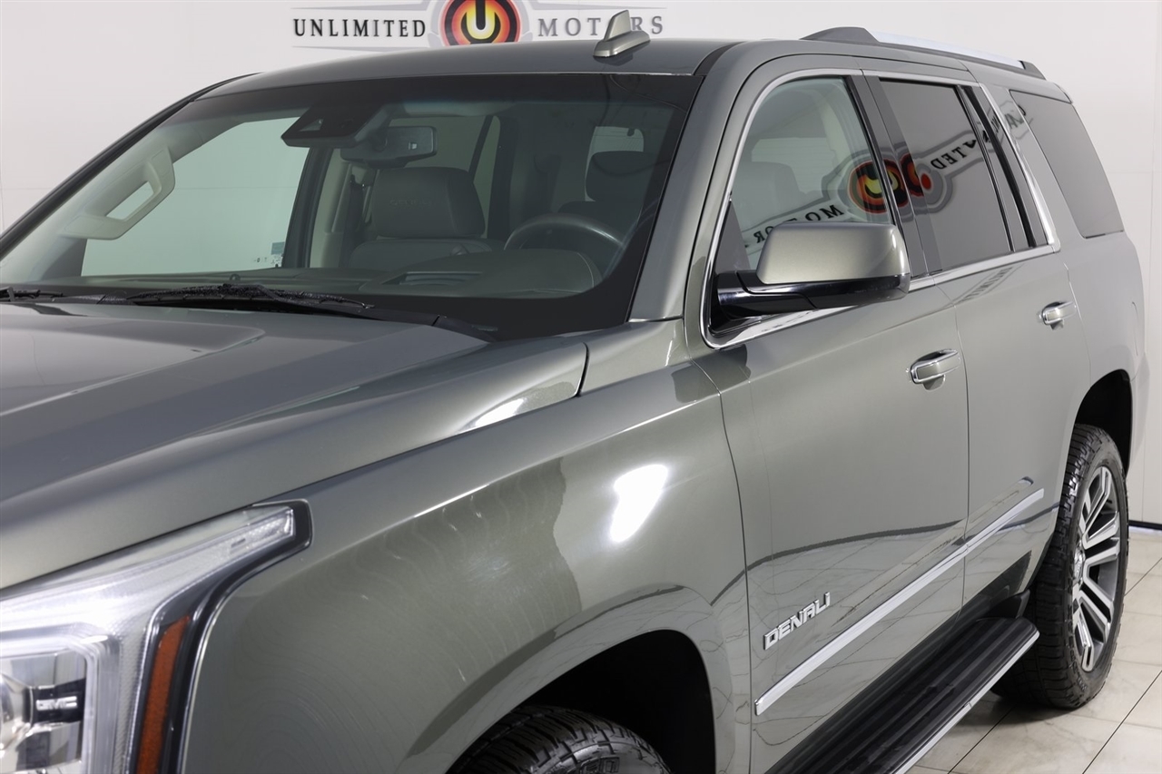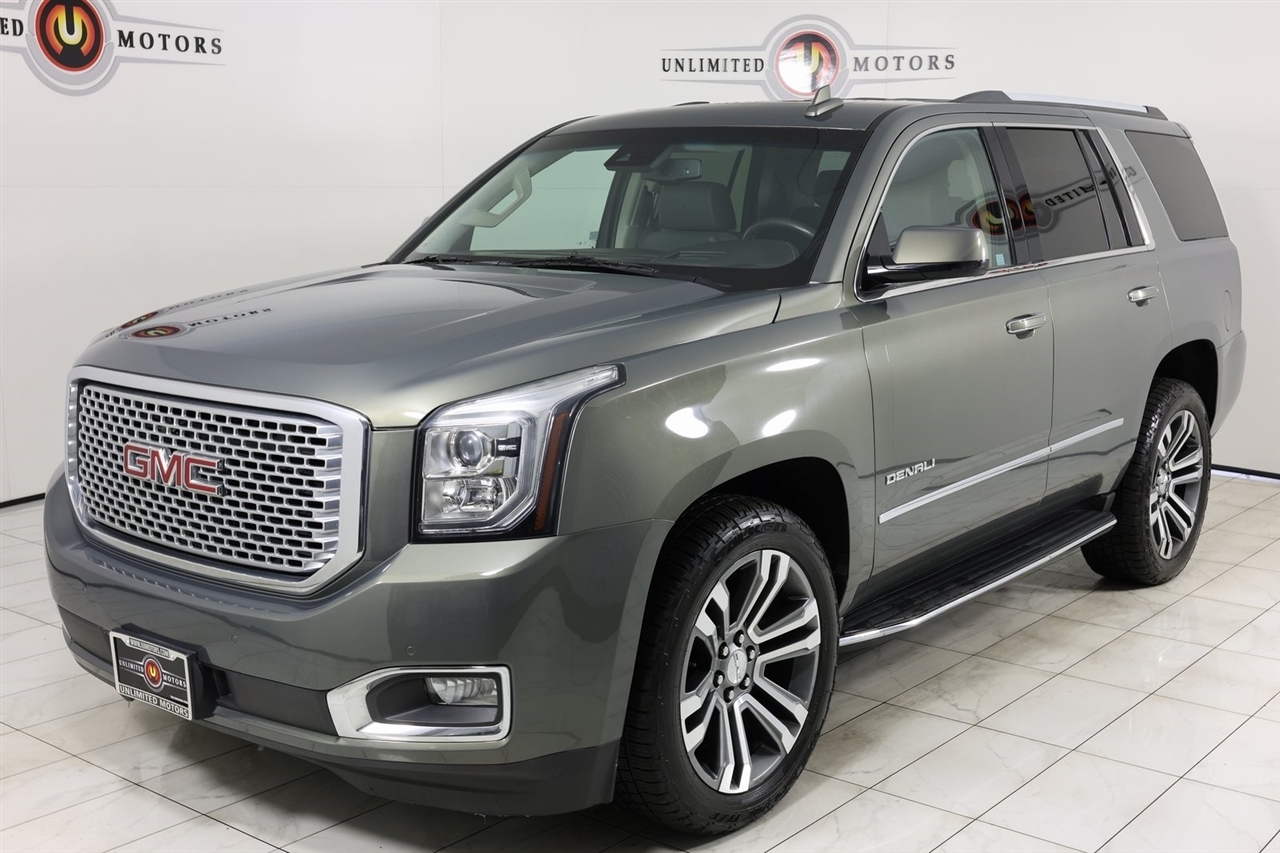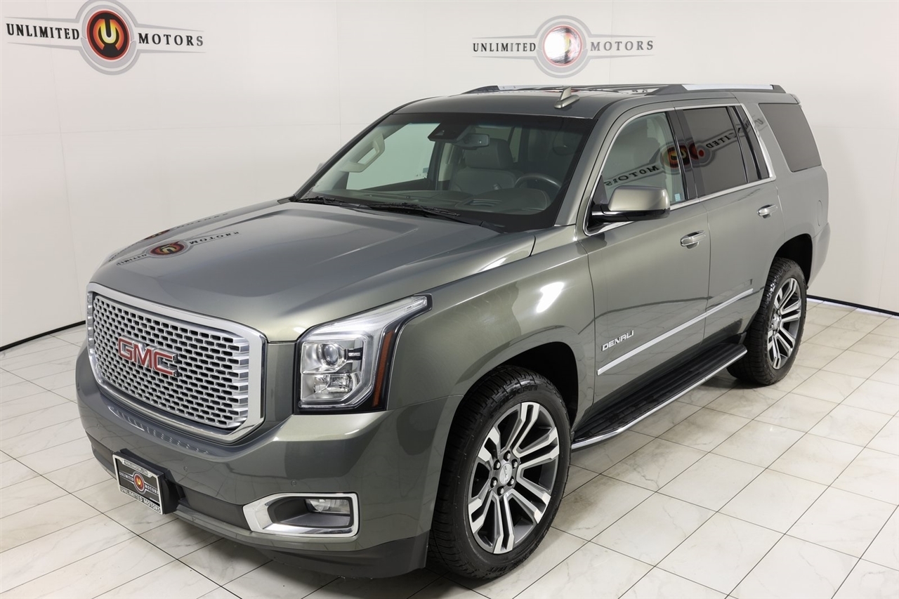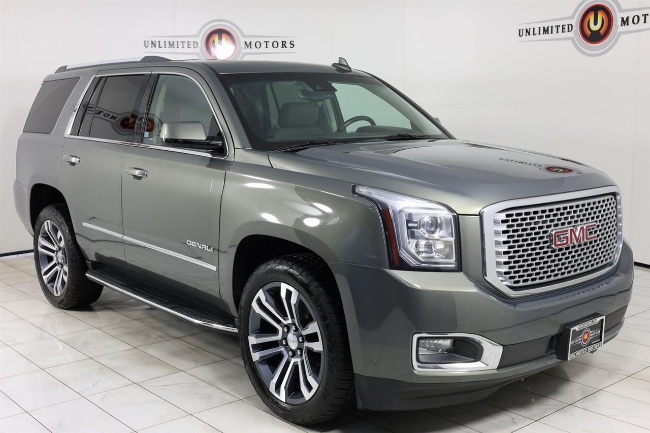 Navigation, Back Up Camera, Sunroof, Bluetooth, Towing, Touch Screen, Heated Seats, Heated Steering Wheel, Ventilated Seats, Power Lift Gate, Apple Car Play, Blind Spot, Clean Carfax, Low Miles, Lane Assist. Odometer is 20793 miles below market average!2017 Mineral Metallic GMC 4D Sport Utility Yukon Denali 4WD 8-Speed Automatic with Overdrive EcoTec3 6.2L V8Awards: * 2017 KBB.com Brand Image AwardsVisit our website www.iumotors.com to view 100s of newer vehicles, more pictures and info, or to apply for financing. Rates are incredibly low for approved credit. We offer extended warranties, protection packages, and insurance. We assure you the best experience at any of our 4 locations and unbeatable prices and quality. At Unlimited Motors we believe in MARKET VALUE PRICING. We use real-time Internet price comparisons to constantly adjust prices to provide ALL BUYERS The BEST PRICE possible. We do not mark them up, to mark them down! Our entire team is committed to helping you buy a car the way we would want to buy a car! We utilize state-of-the-art technology to constantly monitor pricing trends to offer our shoppers the best competitive pricing, value, and experience. We sell and service all makes and models of Pre-owned / Used Vehicles Used Cars, Used Trucks, Used Sport Utility, Lamborghini, Ferrari, Bentley, Rolls Royce, McLaren, Maserati, Ford, Chevrolet/Chevy, Honda, Toyota, Porsche, Land Rover, Jaguar, INFINITI, Audi, Nissan, Mazda, Hyundai, Chrysler, Jeep, Dodge, Ram, SRT, Mitsubishi, Lexus, Kia, Volkswagen, Mini, BMW, Mercedes, Fiat, Volvo, GMC, Cadillac, Lincoln as well as other brands. Proudly serving these areas of Indianapolis, Fishers, Carmel, Noblesville, Greenwood, Avon, Plainfield, Zionsville, & Brownsburg, Indiana, Midwest. We also serve the entire nation with our seamless and easy online purchasing process, and offer shipping nationwide.Advertised prices DO NOT include Sales Tax, Dealer Fees, Title Processing Charges, and Dealer Pre-installed Products.