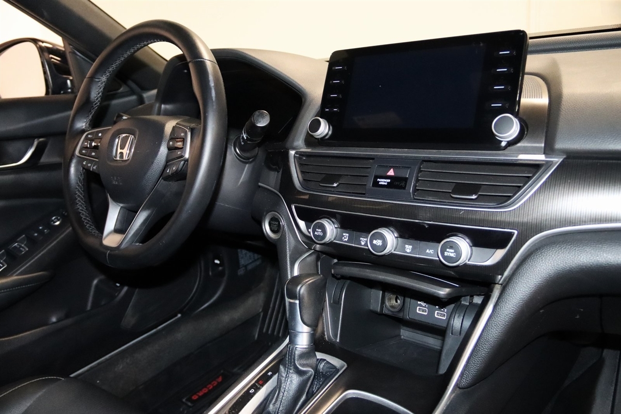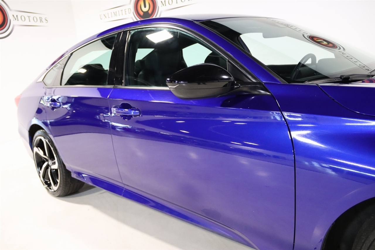 Bluetooth, Back Up Camera, Touch Screen, 4-Wheel Disc Brakes, 8 Speakers, ABS brakes, Adaptive Cruise Control: Adaptive Cruise Control (ACC) with Low-Speed Follow, Air Conditioning, Alloy wheels, AM/FM radio, Apple CarPlay/Android Auto, Auto High-beam Headlights, Automatic temperature control, Brake assist, Bumpers: body-color, Delay-off headlights, Driver door bin, Driver vanity mirror, Dual front impact airbags, Dual front side impact airbags, Electronic Stability Control, Emergency communication system: HondaLink, Exterior Parking Camera Rear, Fabric w/Synthetic Leather Seat Trim, Forward collision: Collision Mitigation Braking System (CMBS) + FCW mitigation, Four wheel independent suspension, Front anti-roll bar, Front Bucket Seats, Front Center Armrest, Front dual zone A/C, Front fog lights, Front reading lights, Fully automatic headlights, Illuminated entry, Knee airbag, Lane Departure Warning System, Leather Shift Knob, Leather steering wheel, Low tire pressure warning, Occupant sensing airbag, Outside temperature display, Overhead airbag, Overhead console, Panic alarm, Passenger door bin, Passenger vanity mirror, Power door mirrors, Power driver seat, Power steering, Power windows, Radio data system, Radio: 180-Watt AM/FM Audio System, Rear anti-roll bar, Rear seat center armrest, Rear window defroster, Remote keyless entry, Security system, Speed control, Speed-sensing steering, Speed-Sensitive Wipers, Split folding rear seat, Spoiler, Steering wheel mounted audio controls, Tachometer, Telescoping steering wheel, Tilt steering wheel, Traction control, Trip computer, Variably intermittent wipers, Wheels: 19 Machine-Finished Alloy w/Black Inserts. CARFAX One-Owner. 29/35 City/Highway MPG2022 Still Night Pearl Honda 4D Sedan Accord Sport FWD CVT 1.5T I4 DOHC 16V Turbocharged VTECVisit our website www.iumotors.com to view 100s of newer vehicles, more pictures and info, or to apply for financing. Rates are incredibly low for approved credit. We offer extended warranties, protection packages, and insurance. We assure you the best experience at any of our 4 locations and unbeatable prices and quality. At Unlimited Motors we believe in MARKET VALUE PRICING. We use real-time Internet price comparisons to constantly adjust prices to provide ALL BUYERS The BEST PRICE possible. We do not mark them up, to mark them down! Our entire team is committed to helping you buy a car the way we would want to buy a car! We utilize state-of-the-art technology to constantly monitor pricing trends to offer our shoppers the best competitive pricing, value, and experience. We sell and service all makes and models of Pre-owned / Used Vehicles Used Cars, Used Trucks, Used Sport Utility, Lamborghini, Ferrari, Bentley, Rolls Royce, McLaren, Maserati, Ford, Chevrolet/Chevy, Honda, Toyota, Porsche, Land Rover, Jaguar, INFINITI, Audi, Nissan, Mazda, Hyundai, Chrysler, Jeep, Dodge, Ram, SRT, Mitsubishi, Lexus, Kia, Volkswagen, Mini, BMW, Mercedes, Fiat, Volvo, GMC, Cadillac, Lincoln as well as other brands. Proudly serving these areas of Indianapolis, Fishers, Carmel, Noblesville, Greenwood, Avon, Plainfield, Zionsville, & Brownsburg, Indiana, Midwest. We also serve the entire nation with our seamless and easy online purchasing process, and offer shipping nationwide.Advertised prices DO NOT include Sales Tax, Dealer Fees, Title Processing Charges, and Dealer Pre-installed Products.