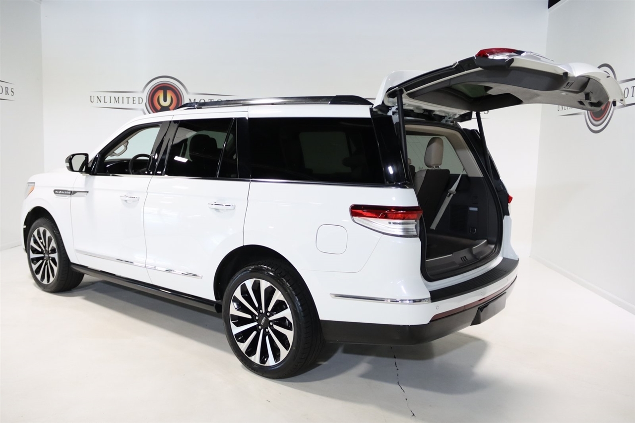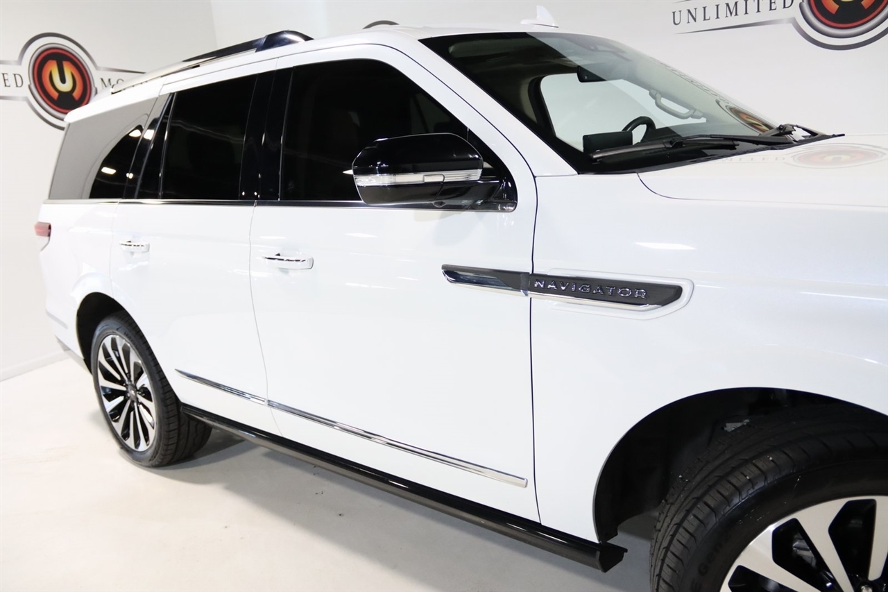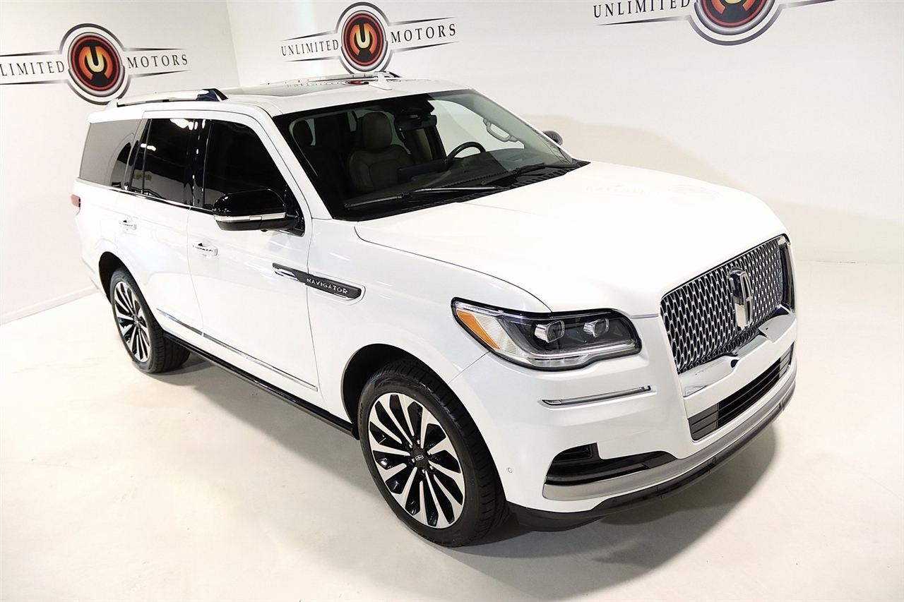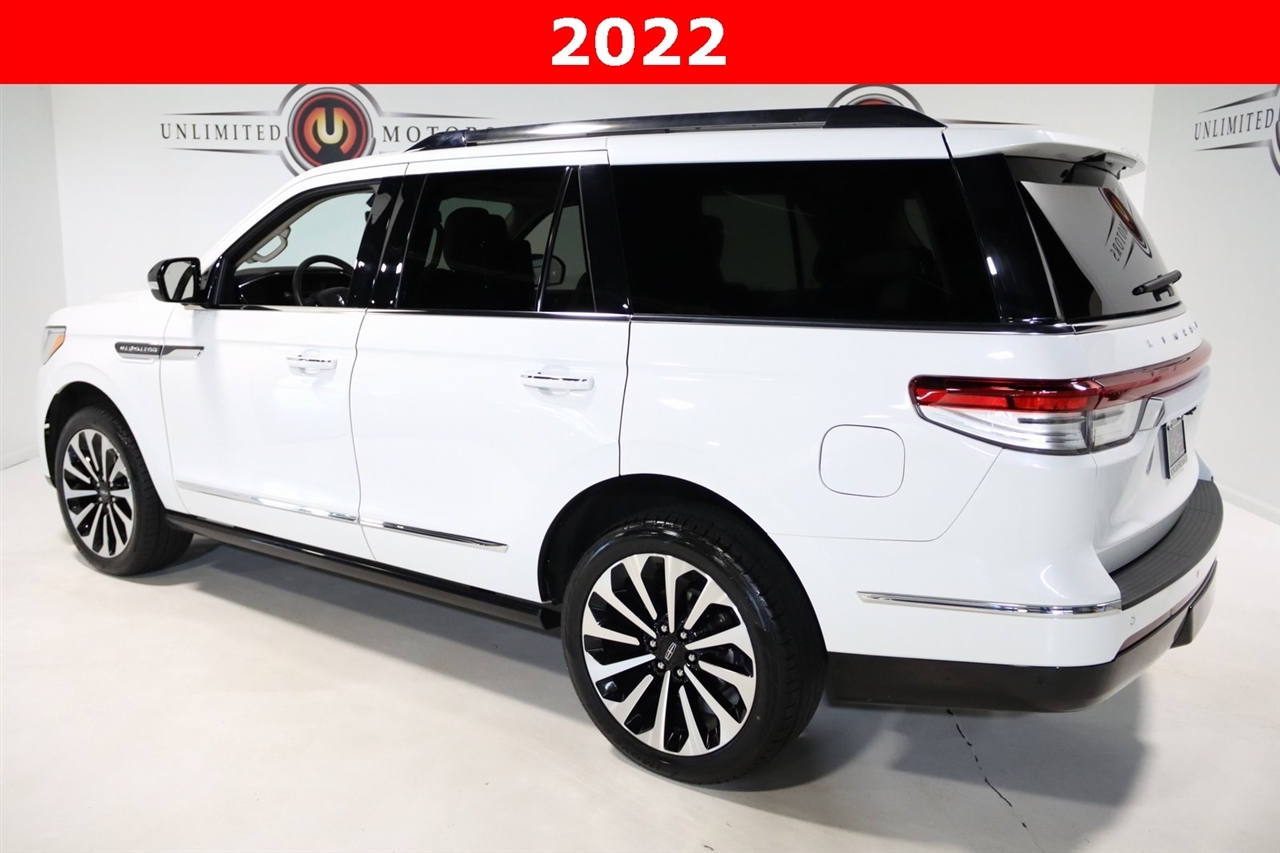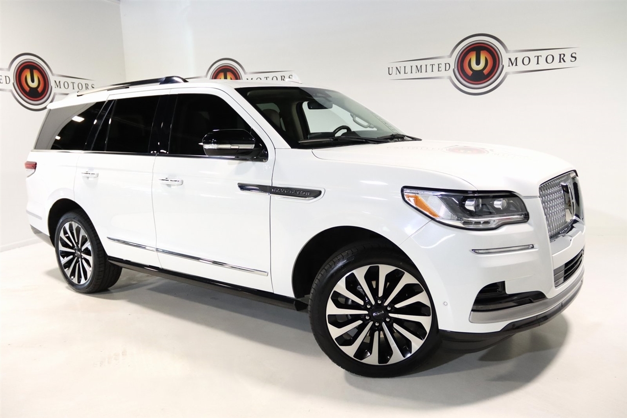 Navigation, Bluetooth, Back Up Camera, Panoramic Roof, 3rd Row, Heated Seats, Touch Screen, 14 Speakers, 2nd Row Htd/Vent Enhcd Massage Seats w/out Console, 3.73 Axle Ratio, 3rd row seats: split-bench, 4-Wheel Disc Brakes, ABS brakes, Adaptive suspension, Adjustable pedals, Air Conditioning, All-Weather Floor Liners w/Carpet Floor Mats, Alloy wheels, AM/FM radio: SiriusXM with 360L, Audio memory, Auto High-beam Headlights, Auto Start-Stop Technology, Auto tilt-away steering wheel, Auto-dimming door mirrors, Auto-dimming Rear-View mirror, Auto-leveling suspension, Automatic temperature control, Bodyside moldings, Brake assist, Bumpers: body-color, Chrome Roof Rack w/Black Crossbars, Compass, Delay-off headlights, Driver door bin, Driver vanity mirror, Driver's Seat Mounted Armrest, Dual front impact airbags, Dual front side impact airbags, Electronic Stability Control, Emergency communication system: 911 Assist, Equipment Group 201A Reserve I, Exterior Parking Camera Rear, Four wheel independent suspension, Front anti-roll bar, Front Bucket Seats, Front dual zone A/C, Front fog lights, Front reading lights, Fully automatic headlights, Garage door transmitter, Genuine wood dashboard insert, Genuine wood door panel insert, Head restraints memory, Heads-Up Display, Heated door mirrors, Heated front seats, Heated rear seats, Heated steering wheel, HVAC memory, Illuminated 1st & 2nd Row Seat Belts, Illuminated entry, Leather steering wheel, Lincoln Lit Star in Grille, Lincoln Play, Low tire pressure warning, Luxury Package, Memory seat, Navigation System, Navigation system: Connected Navigation (3-year trial), Occupant sensing airbag, Outside temperature display, Overhead airbag, Overhead console, Panic alarm, Passenger door bin, Passenger seat mounted armrest, Passenger vanity mirror, Pedal memory, Perfect Position Seats (30-Way) w/Active Motion, Power adjustable rear head restraints, Power door mirrors, Power driver seat, Power Liftgate, Power moonroof: Panoramic Vista Roof, Power passenger seat, Power steering, Power windows, Prem Lthr Auto Htd/Ventiltd Perfect Position Seats, Radio data system, Radio: Revel AM/FM/HD/MP3 Audio System, Rain sensing wipers, Rear air conditioning, Rear anti-roll bar, Rear audio controls, Rear reading lights, Rear window defroster, Rear window wiper, Reclining 3rd row seat, Remote keyless entry, Revel Ultima 3D Audio System w/28 Speakers, Security system, SiriusXM w/360L, Speed control, Speed-sensing steering, Speed-Sensitive Wipers, Split folding rear seat, Spoiler, Steering wheel memory, Steering wheel mounted audio controls, SYNC 4 Communications & Entertainment System, Tachometer, Telescoping steering wheel, Tilt steering wheel, Traction control, Trip computer, Turn signal indicator mirrors, Variably intermittent wipers, Ventilated front seats, Ventilated rear seats, Voice-Activated Touchscreen Navigation System, Wheels: 22 Bright Machined Aluminum. CARFAX One-Owner.2022 White Metallic Lincoln 4D Sport Utility Navigator Reserve 4WD 10-Speed Automatic V6Visit our website www.iumotors.com to view 100s of newer vehicles, more pictures and info, or to apply for financing. Rates are incredibly low for approved credit. We offer extended warranties, protection packages, and insurance. We assure you the best experience at any of our 4 locations and unbeatable prices and quality. At Unlimited Motors we believe in MARKET VALUE PRICING. We use real-time Internet price comparisons to constantly adjust prices to provide ALL BUYERS The BEST PRICE possible. We do not mark them up, to mark them down! Our entire team is committed to helping you buy a car the way we would want to buy a car! We utilize state-of-the-art technology to constantly monitor pricing trends to offer our shoppers the best competitive pricing, value, and experience. We sell and service all makes and models of Pre-owned / Used Vehicles Used Cars, Used Trucks, Used Sport Utility, Lamborghini, Ferrari, Bentley, Rolls