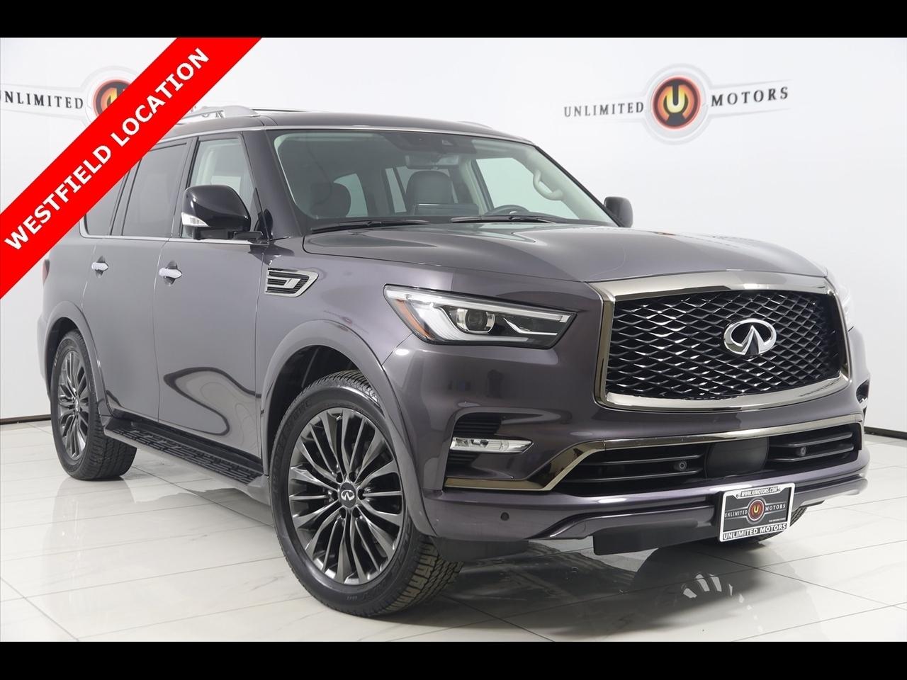 2023 INFINITI QX80 Anthracite Gray Now Available at Unlimited Motors Westfield! With over 20 years in business and 4 Indiana locations, Unlimited Motors is known for offering high-quality, hand-selected vehicles at excellent pricing with outstanding customer service. Our inventory of over 1,000 vehicles includes major makes such as Ford, Chevrolet, Ram, Jeep, GMC, Dodge, BMW, Mercedes-Benz, Audi, Cadillac, Porsche, Maserati, Ferrari, and Lamborghini, giving customers one of the largest selections of quality vehicles in the Midwest. Vehicle Highlights:Navigation, Back Up Camera, Bluetooth, Sun/Moon Roof, Running Boards, Heated Seats, Touch Screen, Heated Steering Wheel, Blind Spot, QX80 Premium Select, 4D Sport Utility, 5.6L V8, 7-Speed Automatic, 4WD, Anthracite Gray, graphite Leather, All-Season Floor Mats, All-Season Package, Cargo Area Mat, Cargo Net, Cargo Package, Carpeted Cargo Mat, Center Console Tray, Console Net, First-Aid Kit, Navigation System, Navigation system: INFINITI InTouch Navigation.CARFAX One-Owner. Clean CARFAX. Priced below KBB Fair Purchase Price!Visit www.iumotors.com to explore our full inventory of over 1,000 hand-picked vehicles across our Westfield, Fishers, Noblesville, and Elwood locations. At Unlimited Motors, we offer a premium car-buying experience with competitive financing through local credit unions and national lenders, top trade-in values, full auto repair and maintenance services for customer vehicles, and nationwide shipping to all 50 states. Youll also find many of the most searched and in-demand models, including Ford F-150, Chevrolet Silverado, Ram 1500, Jeep Wrangler, Jeep Grand Cherokee, Chevrolet Tahoe, Chevrolet Suburban, GMC Yukon, GMC Sierra, Dodge Charger, Dodge Durango, Ford Explorer, BMW X5, BMW X3, BMW 3 Series, Mercedes-Benz GLE, Mercedes-Benz GLC, Cadillac Escalade, Audi Q5, Audi Q7, Porsche Cayenne, Porsche Macan, Maserati Ghibli, and more. Whether youre visiting from Westfield, Indianapolis, Carmel, Fishers, Noblesville, Zionsville, Greenwood, Lawrence, Brownsburg, Avon, Plainfield, Lebanon, Anderson, Muncie, Kokomo, Lafayette, Bloomington, Columbus, or anywhere across Central and Northern Indiana, we are here to help you find the perfect vehicle with exceptional service and unbeatable value. Call us today at 317-896-4488 1470 W Tournament Trl, Westfield, IN 46074. Disclaimer: Advertised prices DO NOT include Sales Tax, Dealer Fees, Title Processing Charges, and Dealer Pre-installed Products.