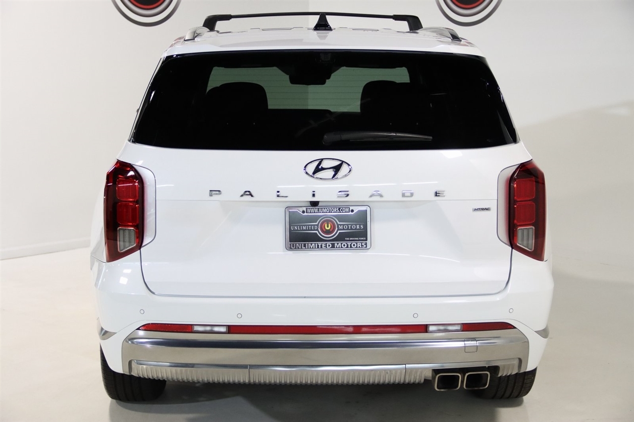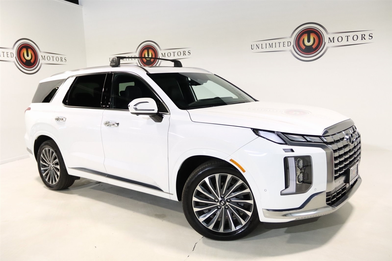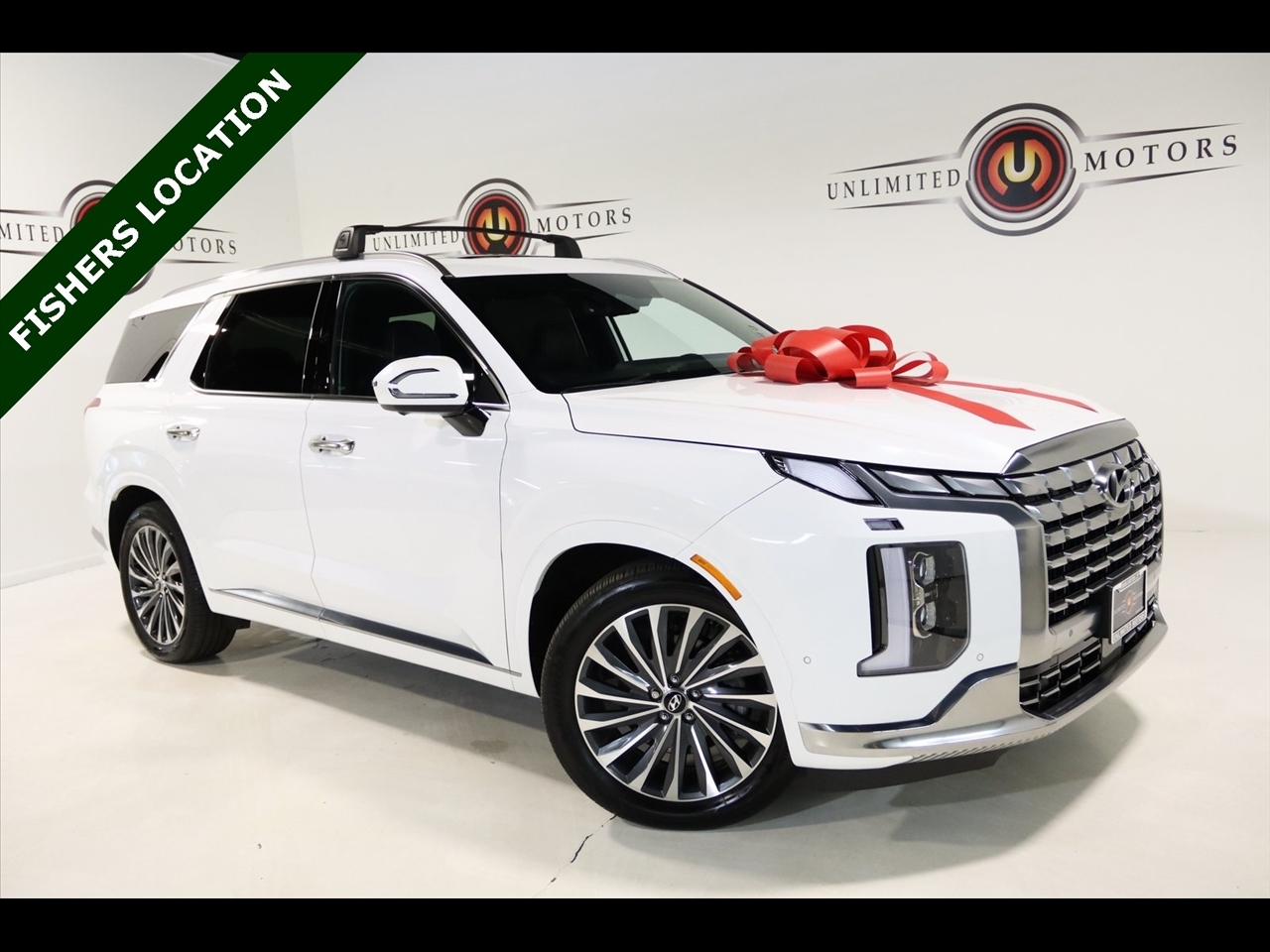 Navigation, Bluetooth, Back Up Camera, Sun/Moon Roof, 3rd Row, Luggage Rack, Heated Seats, Touch Screen, 12 Speakers, 3rd row seats: split-bench, 4-Wheel Disc Brakes, ABS brakes, Air Conditioning, Alloy wheels, AM/FM radio: SiriusXM, Apple CarPlay & Android Auto, Auto High-beam Headlights, Auto-dimming door mirrors, Auto-dimming Rear-View mirror, Auto-leveling suspension, Automatic temperature control, Brake assist, Bumpers: body-color, Cargo Net, Carpeted Floor Mats, Compass, Delay-off headlights, Driver door bin, Driver vanity mirror, Dual front impact airbags, Dual front side impact airbags, Electronic Stability Control, Emergency communication system, Exterior Parking Camera Rear, Four wheel independent suspension, Front anti-roll bar, Front Bucket Seats, Front Center Armrest, Front dual zone A/C, Front reading lights, Fully automatic headlights, Garage door transmitter: HomeLink, harman/kardon Speakers, Heads-Up Display, Heated & Ventilated Front Bucket Seats, Heated door mirrors, Heated front seats, Heated rear seats, Heated steering wheel, Illuminated entry, Knee airbag, Leather steering wheel, Low tire pressure warning, Memory seat, Navigation System, Occupant sensing airbag, Option Group 01, Outside temperature display, Overhead airbag, Overhead console, Panic alarm, Passenger door bin, Passenger vanity mirror, Power door mirrors, Power driver seat, Power Liftgate, Power moonroof, Power passenger seat, Power steering, Power windows, Premium Nappa Leather Seat Trim, Radio data system, Radio: AM/FM/MP3 Premium Audio System, Rain sensing wipers, Rear air conditioning, Rear anti-roll bar, Rear audio controls, Rear reading lights, Rear side impact airbag, Rear window defroster, Rear window wiper, Reclining 3rd row seat, Remote keyless entry, Security system, Speed control, Speed-sensing steering, Split folding rear seat, Spoiler, Steering wheel mounted audio controls, Tachometer, Telescoping steering wheel, Tilt steering wheel, Traction control, Trip computer, Turn signal indicator mirrors, Variably intermittent wipers, Ventilated front seats, Ventilated rear seats, Wheels: 20 x 7.5J Calligraphy Exclusive Alloy. CARFAX One-Owner.2025 Hyper White Hyundai 4D Sport Utility Palisade Calligraphy AWD 8-Speed Automatic with SHIFTRONIC V6Visit our website www.iumotors.com to view 100s of newer vehicles, more pictures and info, or to apply for financing. Rates are incredibly low for approved credit. We offer extended warranties, protection packages, and insurance. We assure you the best experience at any of our 4 locations and unbeatable prices and quality. At Unlimited Motors we believe in MARKET VALUE PRICING. We use real-time Internet price comparisons to constantly adjust prices to provide ALL BUYERS The BEST PRICE possible. We do not mark them up, to mark them down! Our entire team is committed to helping you buy a car the way we would want to buy a car! We utilize state-of-the-art technology to constantly monitor pricing trends to offer our shoppers the best competitive pricing, value, and experience. We sell and service all makes and models of Pre-owned / Used Vehicles Used Cars, Used Trucks, Used Sport Utility, Lamborghini, Ferrari, Bentley, Rolls Royce, McLaren, Maserati, Ford, Chevrolet/Chevy, Honda, Toyota, Porsche, Land Rover, Jaguar, INFINITI, Audi, Nissan, Mazda, Hyundai, Chrysler, Jeep, Dodge, Ram, SRT, Mitsubishi, Lexus, Kia, Volkswagen, Mini, BMW, Mercedes, Fiat, Volvo, GMC, Cadillac, Lincoln as well as other brands. Proudly serving these areas of Indianapolis, Fishers, Carmel, Noblesville, Greenwood, Avon, Plainfield, Zionsville, & Brownsburg, Indiana, Midwest. We also serve the entire nation with our seamless and easy online purchasing process, and offer shipping nationwide.Advertised prices DO NOT include Sales Tax, Dealer Fees, Title Processing Charges, and Dealer Pre-installed Products.