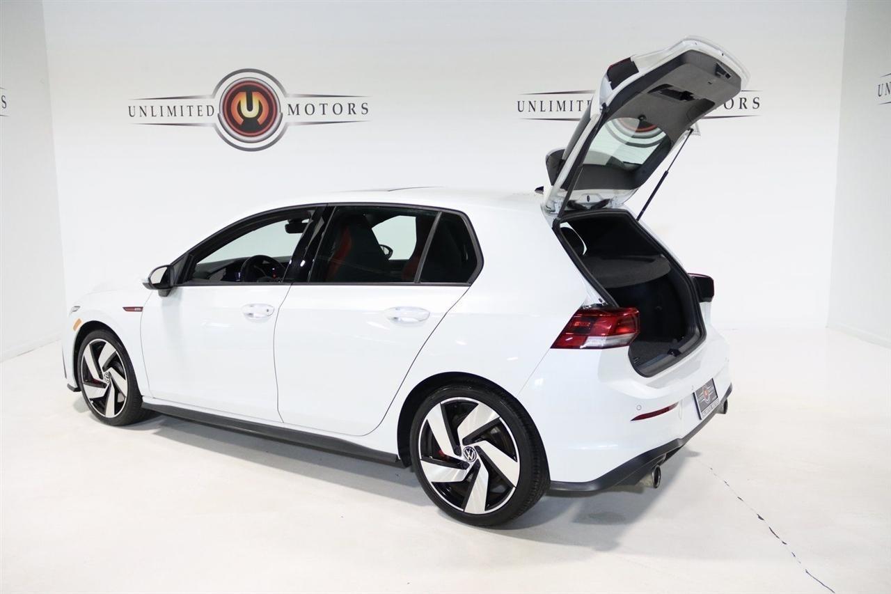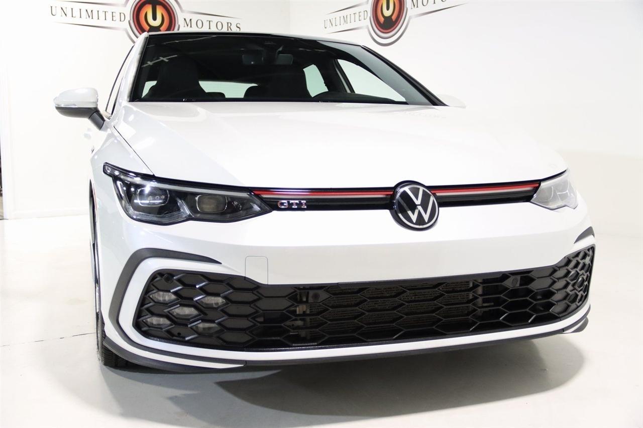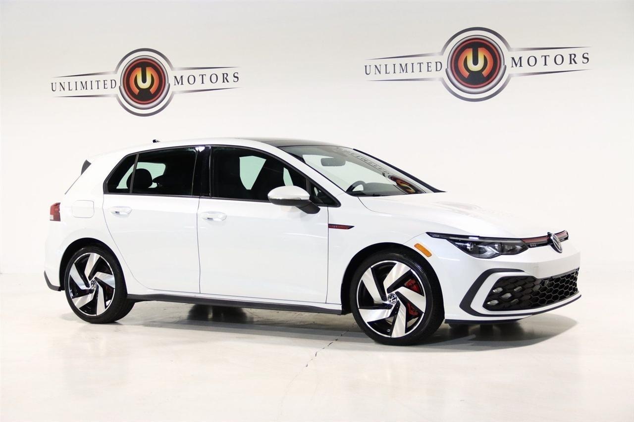 Bluetooth, Back Up Camera, Sun/Moon Roof, Heated Seats, Touch Screen, 4-Wheel Disc Brakes, 9 Speakers, ABS brakes, Air Conditioning, Alloy wheels, AM/FM radio: SiriusXM with 360L, Auto-dimming Rear-View mirror, Automatic temperature control, Brake assist, Bumpers: body-color, Cloth Seating Surfaces, Compass, Delay-off headlights, Driver door bin, Driver vanity mirror, Dual front impact airbags, Dual front side impact airbags, Electronic Stability Control, Emergency communication system: VW Car-Net services (capabilities require enrollment or subscription), Exterior Parking Camera Rear, Forward collision: FCW w/Autonomous Emergency Braking mitigation, Four wheel independent suspension, Front anti-roll bar, Front Bucket Seats, Front Center Armrest, Front fog lights, Front reading lights, Fully automatic headlights, harman/kardon Speakers, Heated door mirrors, Heated front seats, Heated Front Top Sport Seats, Heated steering wheel, Illuminated entry, Lane Departure Warning System, Leather steering wheel, Low tire pressure warning, Occupant sensing airbag, Outside temperature display, Overhead airbag, Overhead console, Panic alarm, Passenger door bin, Passenger vanity mirror, Power door mirrors, Power driver seat, Power moonroof: Panoramic, Power passenger seat, Power steering, Power windows, Radio data system, Radio: MIB3 Discover Pro w/10 Touchscreen Navi, Rain sensing wipers, Rear anti-roll bar, Rear reading lights, Rear seat center armrest, Rear window defroster, Rear window wiper, Remote keyless entry, Security system, Speed control, Speed-sensing steering, Speed-Sensitive Wipers, Split folding rear seat, Spoiler, Sport steering wheel, Steering wheel mounted audio controls, Tachometer, Telescoping steering wheel, Tilt steering wheel, Traction control, Trip computer, Turn signal indicator mirrors, Variably intermittent wipers, Wheels: 18 x 7.5J 2-Tone Machined Alloy. CARFAX One-Owner. 25/34 City/Highway MPG Priced below KBB Fair Purchase Price!2022 Oryx White Pearl Volkswagen 4D Hatchback Golf GTI 2.0T SE FWD 7-Speed DSG Automatic with Tiptronic 2.0L TSI DOHCVisit our website www.iumotors.com to view 100s of newer vehicles, more pictures and info, or to apply for financing. Rates are incredibly low for approved credit. We offer extended warranties, protection packages, and insurance. We assure you the best experience at any of our 4 locations and unbeatable prices and quality. At Unlimited Motors we believe in MARKET VALUE PRICING. We use real-time Internet price comparisons to constantly adjust prices to provide ALL BUYERS The BEST PRICE possible. We do not mark them up, to mark them down! Our entire team is committed to helping you buy a car the way we would want to buy a car! We utilize state-of-the-art technology to constantly monitor pricing trends to offer our shoppers the best competitive pricing, value, and experience. We sell and service all makes and models of Pre-owned / Used Vehicles Used Cars, Used Trucks, Used Sport Utility, Lamborghini, Ferrari, Bentley, Rolls Royce, McLaren, Maserati, Ford, Chevrolet/Chevy, Honda, Toyota, Porsche, Land Rover, Jaguar, INFINITI, Audi, Nissan, Mazda, Hyundai, Chrysler, Jeep, Dodge, Ram, SRT, Mitsubishi, Lexus, Kia, Volkswagen, Mini, BMW, Mercedes, Fiat, Volvo, GMC, Cadillac, Lincoln as well as other brands. Proudly serving these areas of Indianapolis, Fishers, Carmel, Noblesville, Greenwood, Avon, Plainfield, Zionsville, & Brownsburg, Indiana, Midwest. We also serve the entire nation with our seamless and easy online purchasing process, and offer shipping nationwide.Advertised prices DO NOT include Sales Tax, Dealer Fees, Title Processing Charges, and Dealer Pre-installed Products.